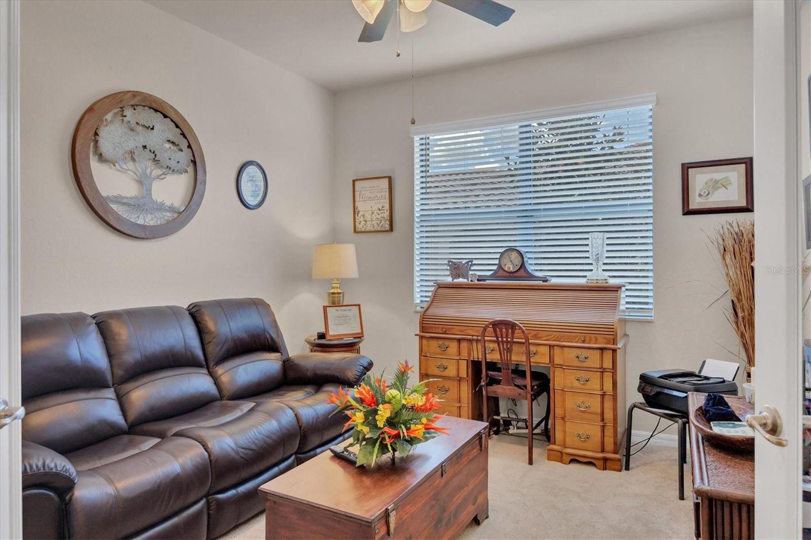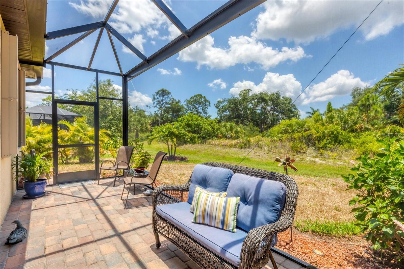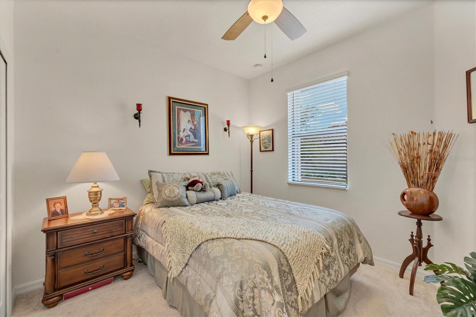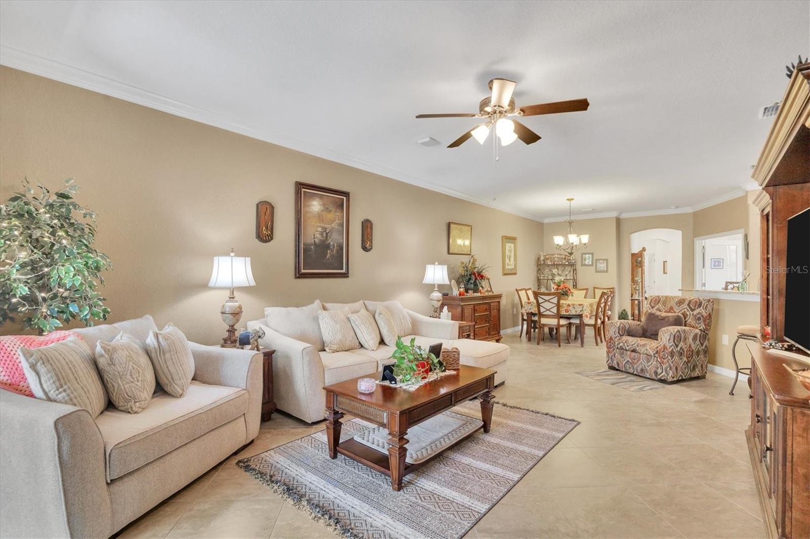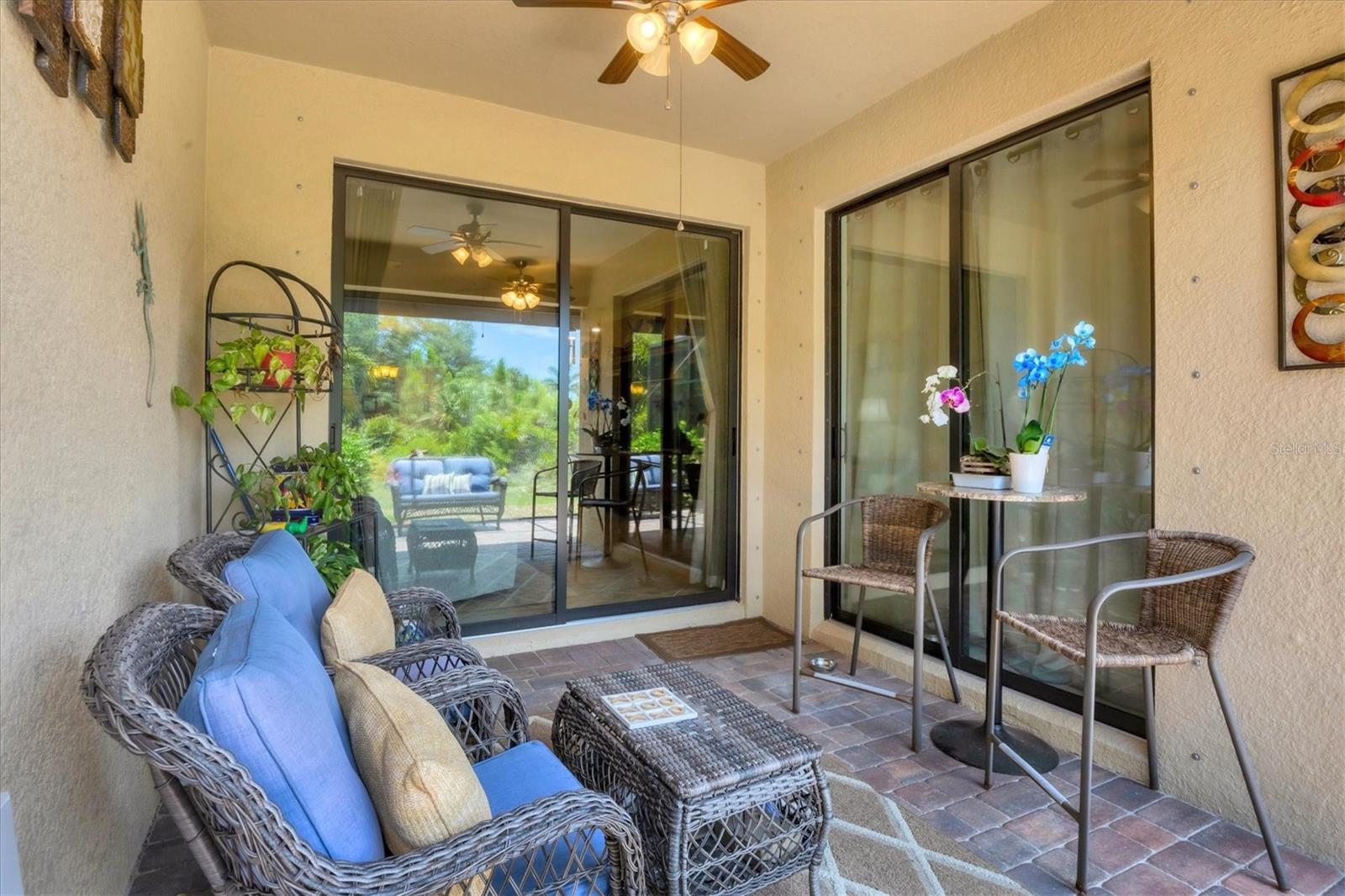 Discover this stunning 2-bedroom plus den, 2-bath, 2-car garage villa in the highly desirable Gran Paradiso community. This meticulously maintained home features an inviting open floor plan with high ceilings, crown molding, ceramic tile flooring, and cozy carpeted bedrooms. The bonus den/office with French doors offers a private retreat. The updated kitchen boasts granite counters, stainless steel appliances, ample cabinetry, and a convenient breakfast bar. The main bedroom includes an ensuite with double sinks, a soaking tub, and a spacious walk-in closet. The garage is roomy with plenty of room for storage. The exterior is beautifully landscaped with an irrigation system and features a screened entryway and an extended covered lanai, perfect for enjoying your morning coffee or evening views. Newly installed electric shade and hurricane shutters add an extra layer of security. This home provides maintenance-free, resort-style living! Gran Paradiso is an active social community offering 24-hour gated security and a wealth of amenities, including a stunning clubhouse, fitness center, heated community pool, tennis courts, pickleball, and scenic walking and biking trails. Conveniently located, you’re just moments away from shopping, dining, the new Wellan Park, historic downtown Venice, the Legacy Bike Trail, and the beautiful Gulf of Mexico beaches. Enjoy world-class boating, fishing, and golfing, all within easy reach. Central to major cities and airports, Gran Paradiso offers easy access to I-75, Sarasota, Punta Gorda, Ft. Myers, St. Pete, and Tampa airports. Embrace the best of Florida's warm climate and year-round sunshine. Schedule your private showing today!