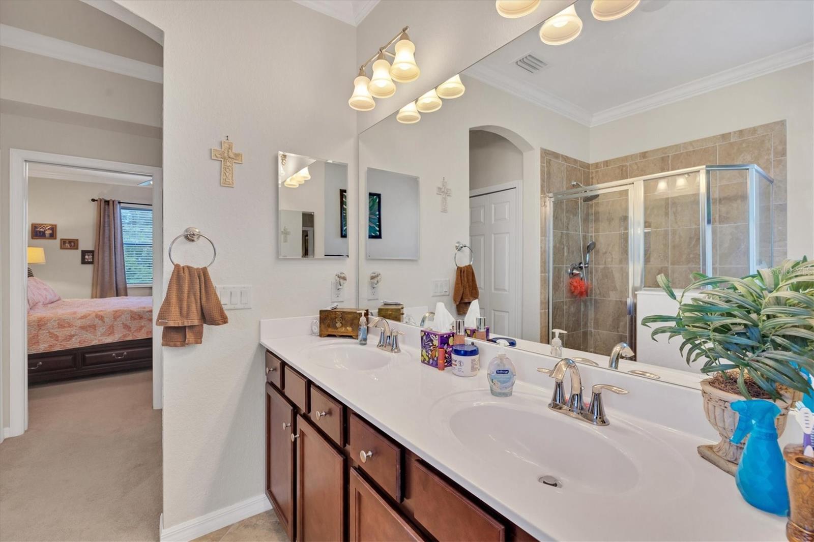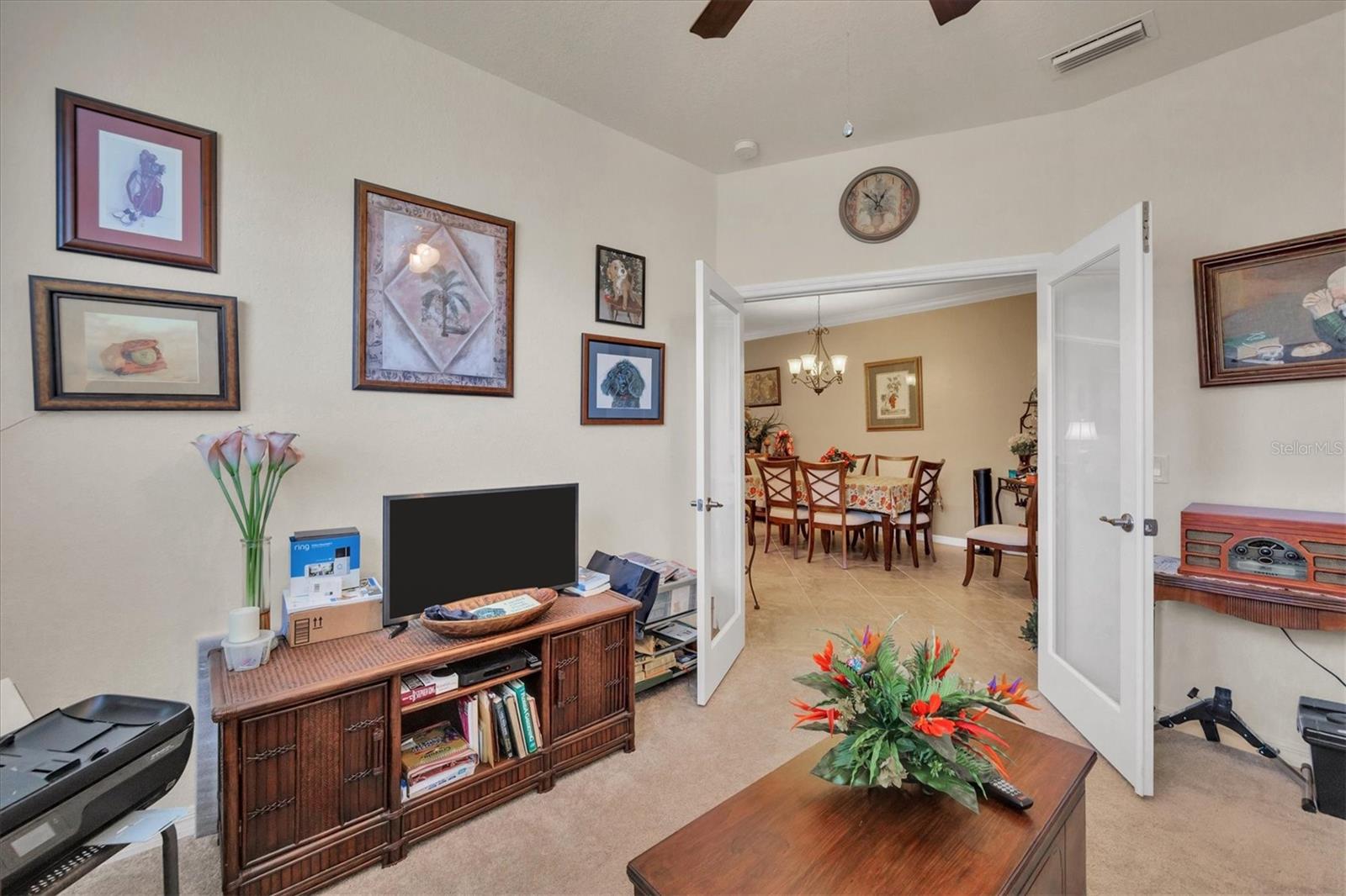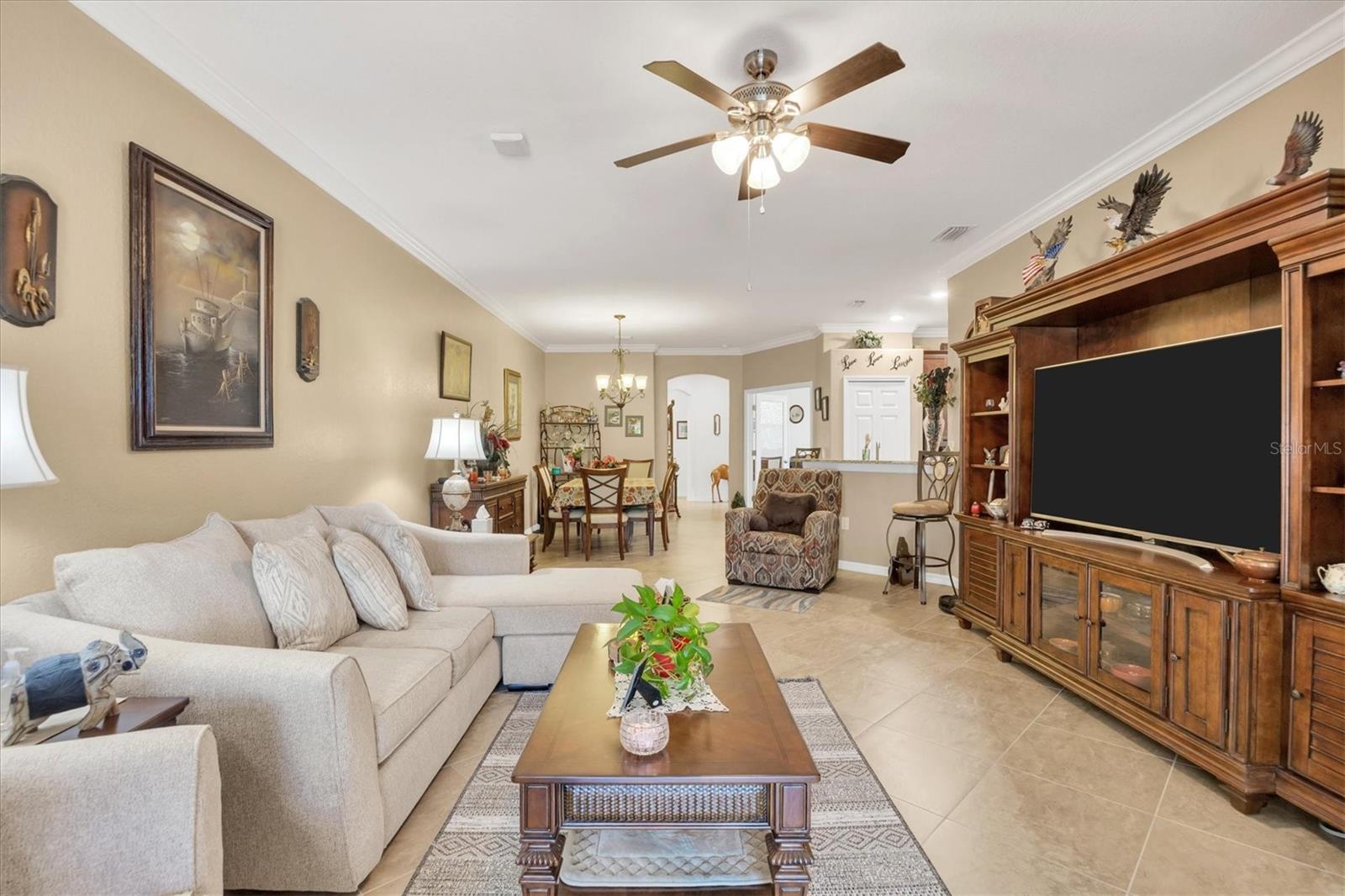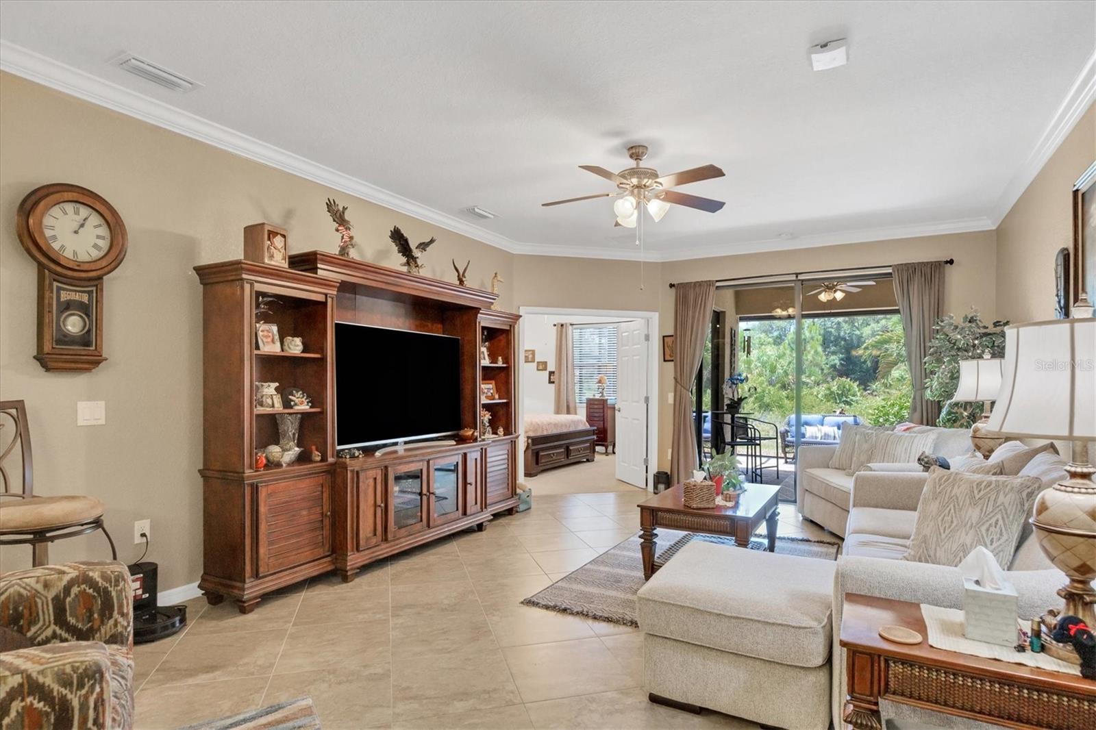 Discover this stunning 2-bedroom plus den, 2-bath, 2-car garage villa in the highly desirable Gran Paradiso community. This meticulously maintained home features an inviting open floor plan with high ceilings, crown molding, ceramic tile flooring, and cozy carpeted bedrooms. The bonus den/office with French doors offers a private retreat. The updated kitchen boasts granite counters, stainless steel appliances, ample cabinetry, and a convenient breakfast bar. The main bedroom includes an ensuite with double sinks, a soaking tub, and a spacious walk-in closet. The garage is roomy with plenty of room for storage. The exterior is beautifully landscaped with an irrigation system and features a screened entryway and an extended covered lanai, perfect for enjoying your morning coffee or evening views. Newly installed electric shade and hurricane shutters add an extra layer of security. This home provides maintenance-free, resort-style living! Gran Paradiso is an active social community offering 24-hour gated security and a wealth of amenities, including a stunning clubhouse, fitness center, heated community pool, tennis courts, pickleball, and scenic walking and biking trails. Conveniently located, you’re just moments away from shopping, dining, the new Wellan Park, historic downtown Venice, the Legacy Bike Trail, and the beautiful Gulf of Mexico beaches. Enjoy world-class boating, fishing, and golfing, all within easy reach. Central to major cities and airports, Gran Paradiso offers easy access to I-75, Sarasota, Punta Gorda, Ft. Myers, St. Pete, and Tampa airports. Embrace the best of Florida's warm climate and year-round sunshine. Schedule your private showing today!