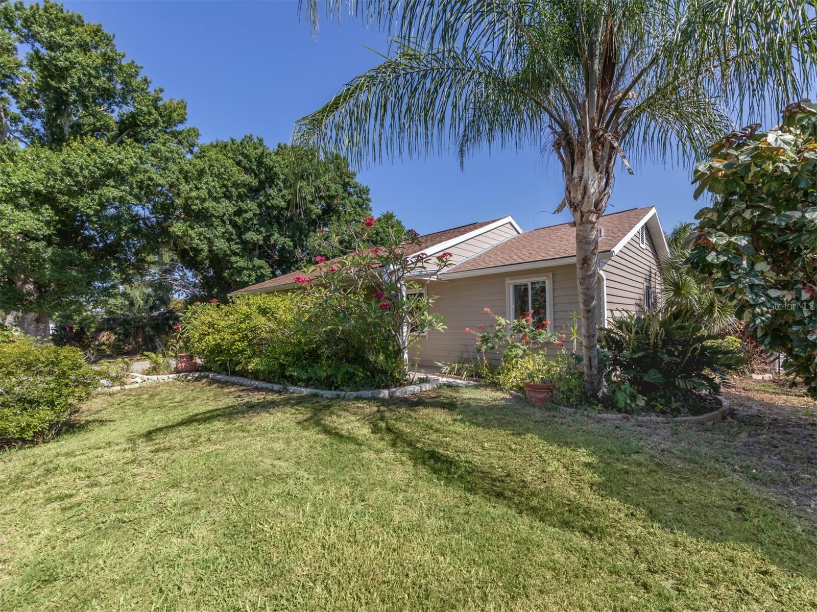 This 2 BR/2 Bath pool home is built on higher ground than most of the homes in this highly desirable neighborhood. The home sits on 3 lots, with an additional two lots adjoining to the east. These features, combined with the tasteful use of fencing, promotes a sense of privacy. and gives the homeowner "room to breathe". Additional 2 lots can be sold with purchase of home to include five lots. On this well maintained and beautifully landscaped property you will find hundreds of plants. There are shade trees including Laurel Oak, Pines, Evergreens, palms, fruit and flowering trees. A wide variety of shrubs, bushes, hedges, succulents and many Florida friendly plants. Garden "Islands" have been created with the use of landscaping stones to create an aesthetically pleasing look. This natural setting is haven for birds, butterflies and others. The adjoining two lots are cleared and landscaped. One of the lots have enclosed culvert allowing vehicle entry and exit. There is ample space to park/store recreational and other vehicles. Whole house generator, Newer A/C, Newer hot water heater, electric pool heater, Impact windows, reverse osmosis, new dishwasher, A/C in garage, hot tub with new pump/heater, and outdoor enclosed shower. Home has two outbuildings one is used for storage the other has power, A/C and currently used as a workshop.