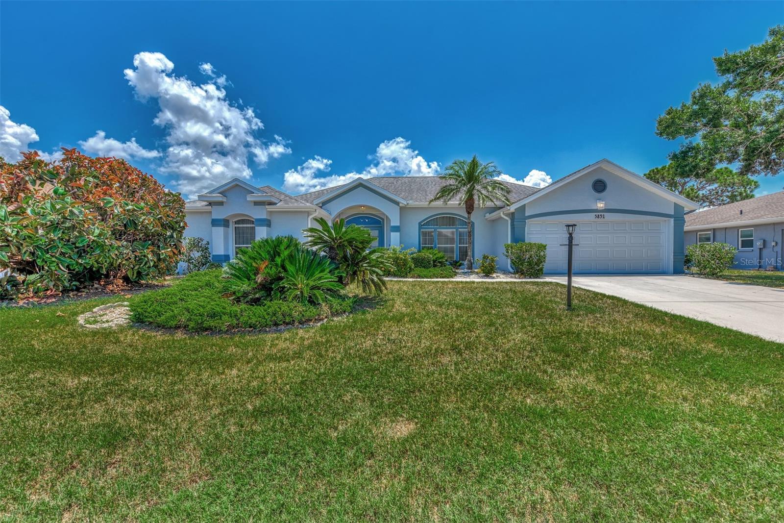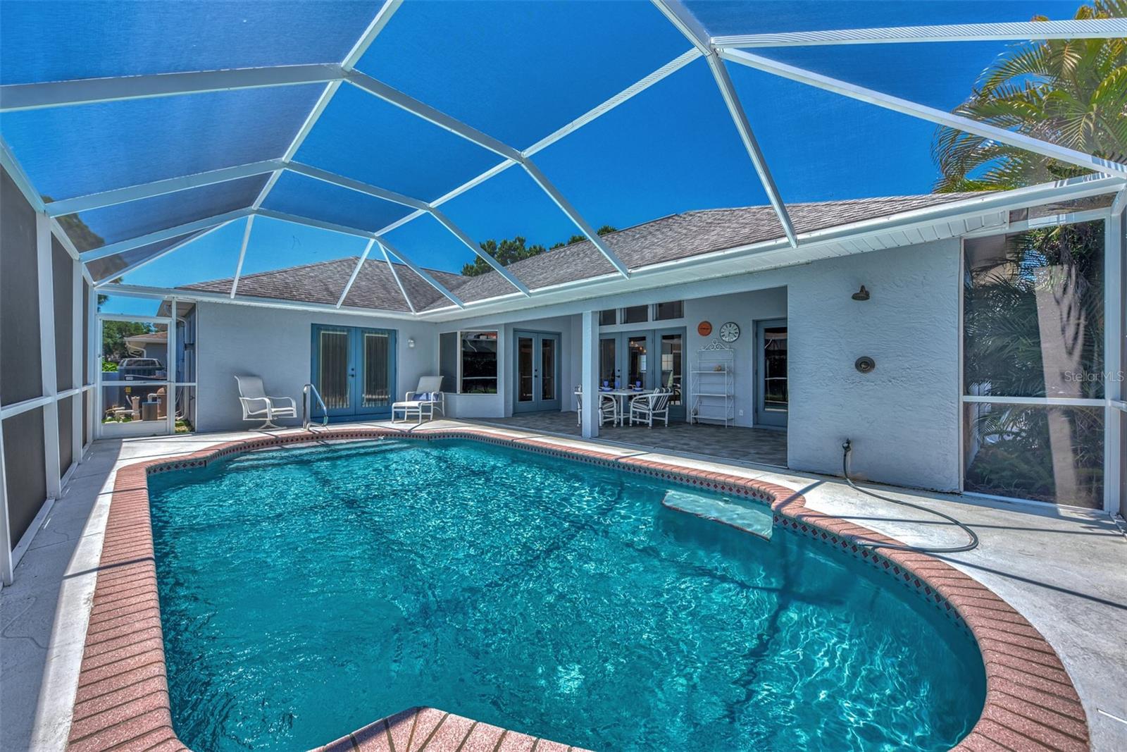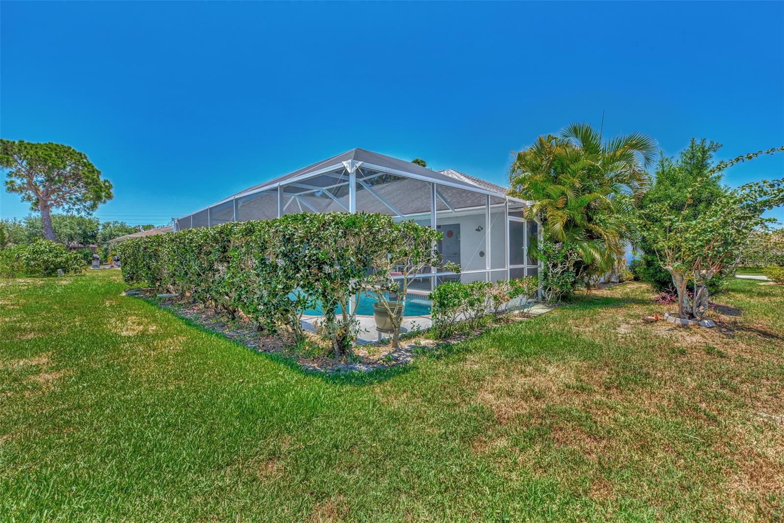 One or more photo(s) has been virtually staged. Welcome to this bright, open custom home featuring a spacious floorplan with three bedrooms, 2.5 baths, and a covered lanai and a sparkling 28x14 screened pool. Ideally located 5 minutes from Manasota Key Beach and just around the corner from great shopping, dining, and entertainment in the Venice area, including the New Atlanta Braves stadium! Situated in sought-after and friendly Gulf View Estates, a "Hidden Gem" deed-restricted community with low annual HOA fees of $325 and no CDD fees. This well-designed split floor plan perfectly blends space, comfort, and privacy. The formal living and dining rooms are filled with natural light, thanks to soaring ceilings and numerous windows. The spacious kitchen, breakfast nook, and family rooms provide easy access to the lanai, which includes a sparkling screened pool and convenient half-bath. The owner's suite boasts a tray ceiling, double French doors to the lanai, spacious double walk-in closets, and an En-suite Bathroom. Expect to be impressed with the owner's bath, featuring a raised double vanity and a designer walk-in shower big enough to include room for a large soaking tub! The two guest rooms and second bath are privately located on the opposite side of the home. A fully equipped laundry room leads to a two-car garage, which has been wired for an emergency generator. Additional features of this home include a new roof (Nov. '24), new exterior paint (Jan. '23), double-pane windows, 8-foot French doors (the family room doors have built-in blinds), hurricane shutters, tile floors throughout, plus the home has been replumbed. This home is on Public Water and Sewer. This well-maintained home is ready for a new owner!