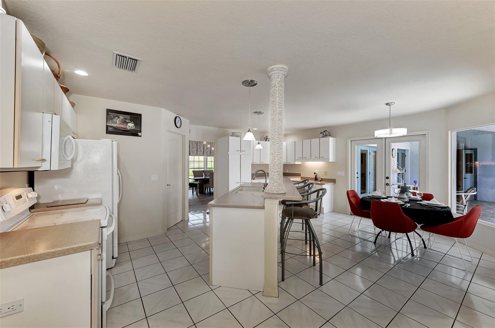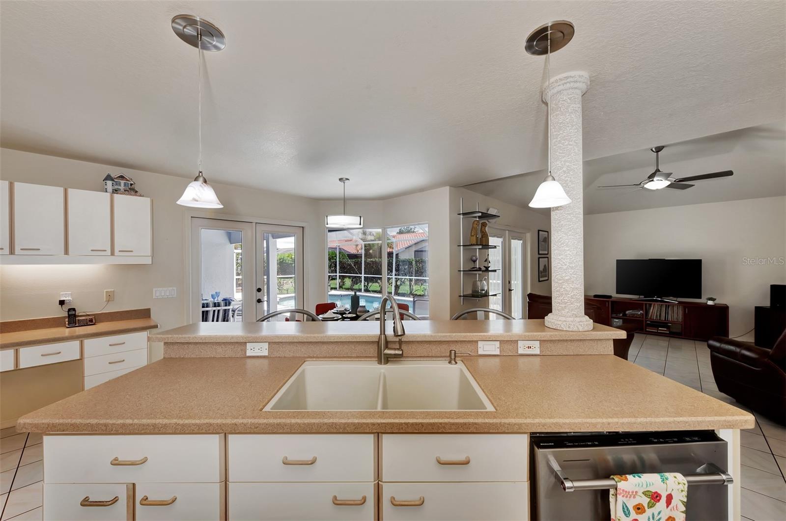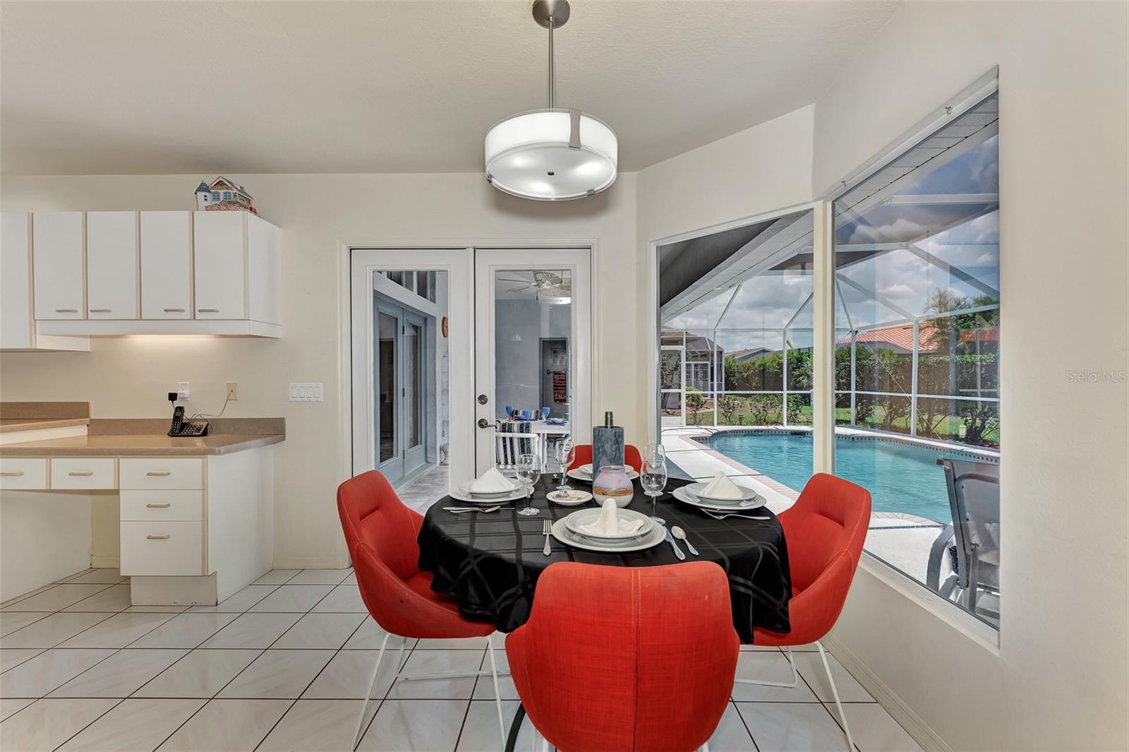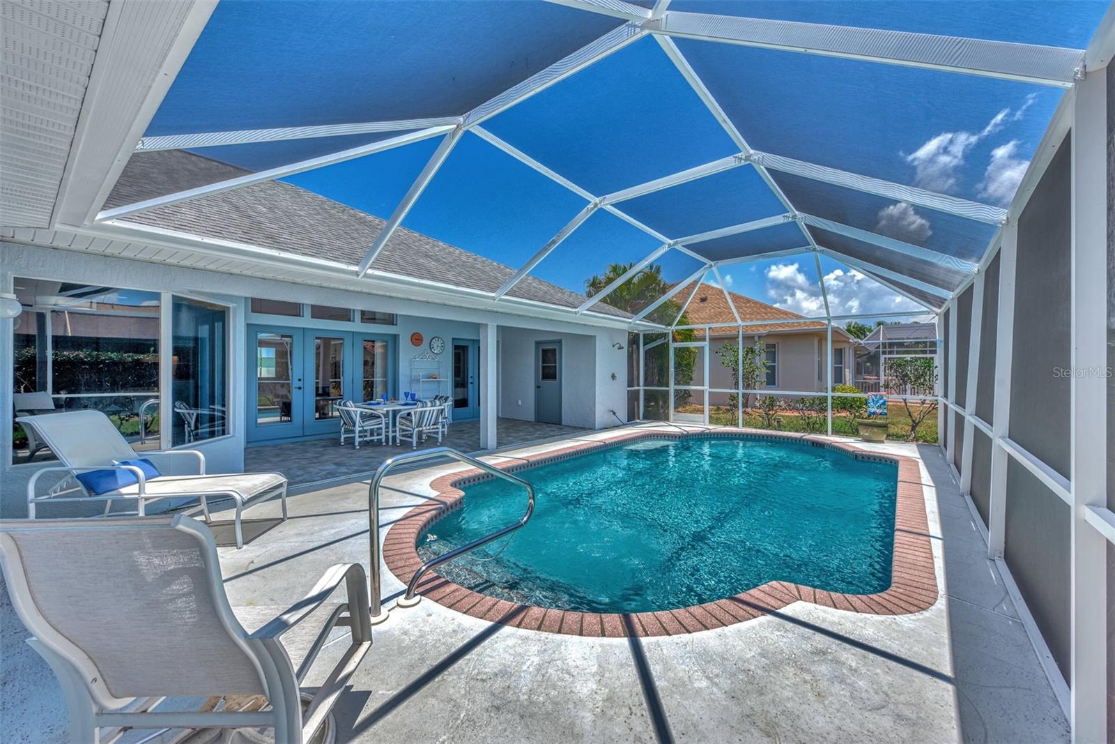 One or more photo(s) has been virtually staged. Welcome to this bright, open custom home featuring a spacious floorplan with three bedrooms, 2.5 baths, and a covered lanai and a sparkling 28x14 screened pool. Ideally located 5 minutes from Manasota Key Beach and just around the corner from great shopping, dining, and entertainment in the Venice area, including the New Atlanta Braves stadium! Situated in sought-after and friendly Gulf View Estates, a "Hidden Gem" deed-restricted community with low annual HOA fees of $325 and no CDD fees. This well-designed split floor plan perfectly blends space, comfort, and privacy. The formal living and dining rooms are filled with natural light, thanks to soaring ceilings and numerous windows. The spacious kitchen, breakfast nook, and family rooms provide easy access to the lanai, which includes a sparkling screened pool and convenient half-bath. The owner's suite boasts a tray ceiling, double French doors to the lanai, spacious double walk-in closets, and an En-suite Bathroom. Expect to be impressed with the owner's bath, featuring a raised double vanity and a designer walk-in shower big enough to include room for a large soaking tub! The two guest rooms and second bath are privately located on the opposite side of the home. A fully equipped laundry room leads to a two-car garage, which has been wired for an emergency generator. Additional features of this home include a new roof (Nov. '24), new exterior paint (Jan. '23), double-pane windows, 8-foot French doors (the family room doors have built-in blinds), hurricane shutters, tile floors throughout, plus the home has been replumbed. This home is on Public Water and Sewer. This well-maintained home is ready for a new owner!