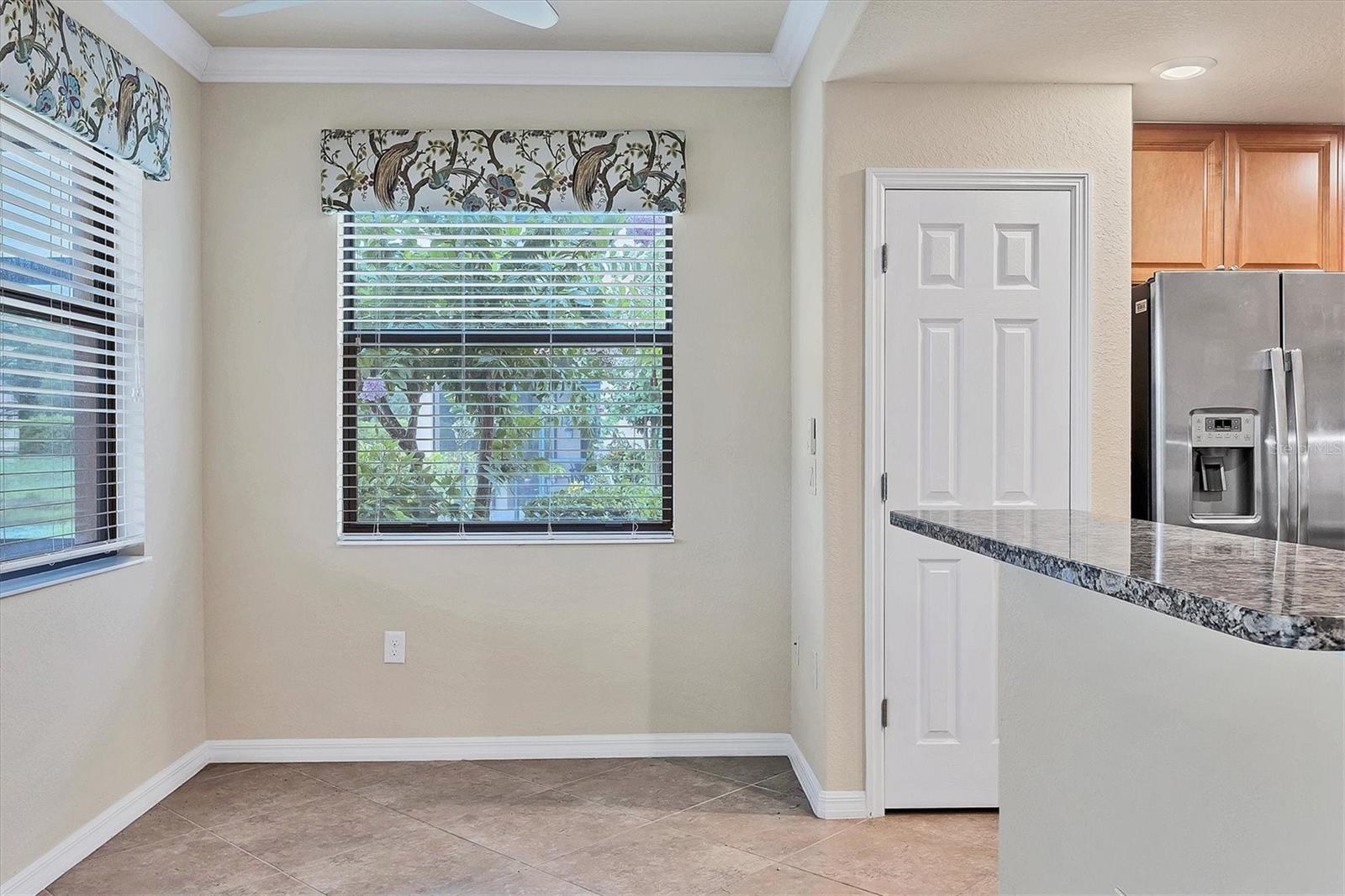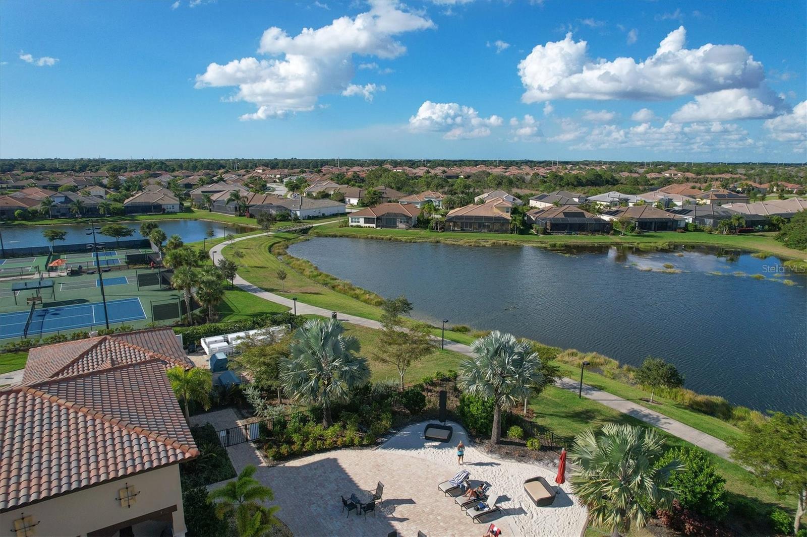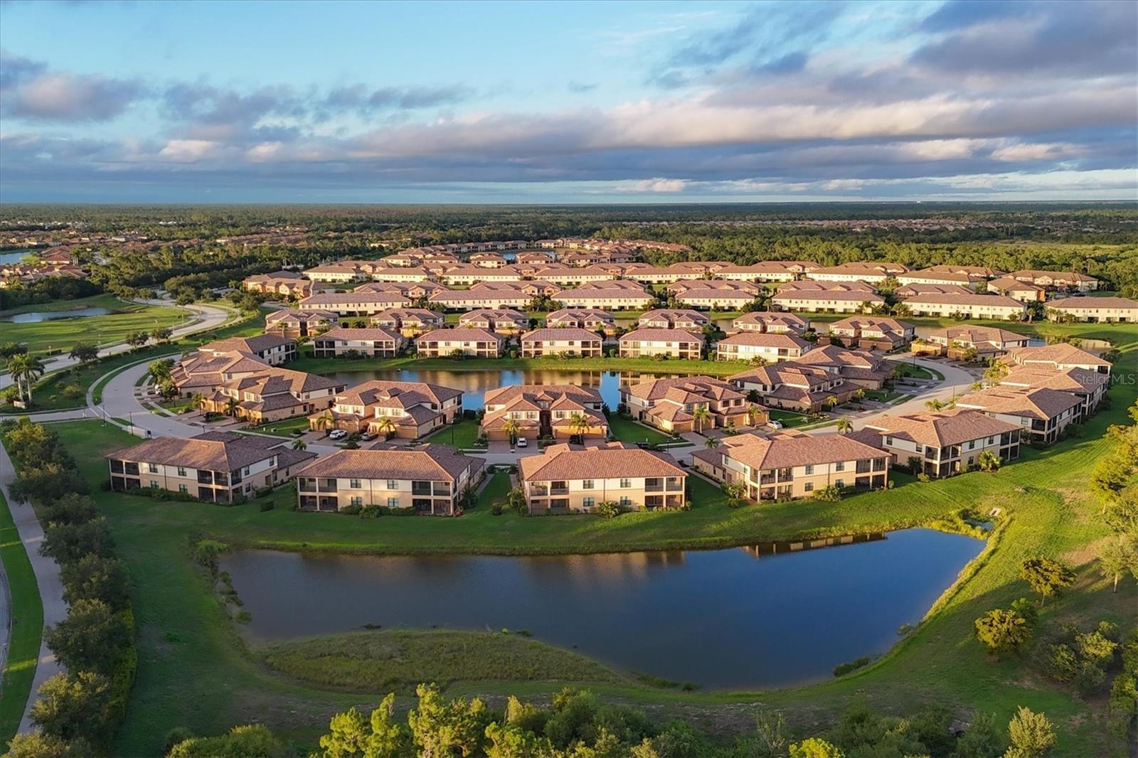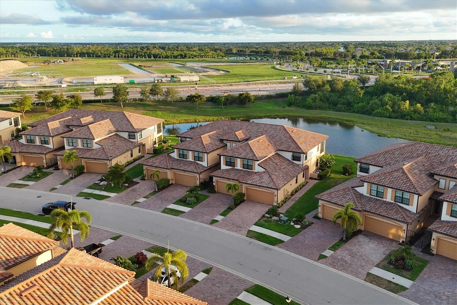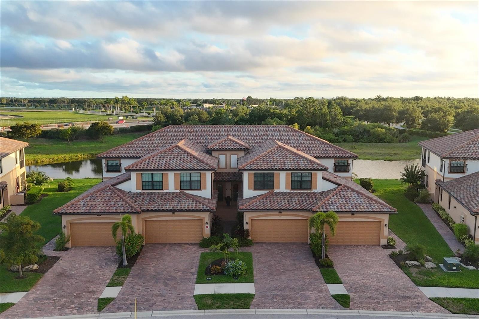LOCATION! LOCATION! LAKEVIEW! This 3-bedroom, 2-bath beautiful home offers luxury qualities with coffered ceilings, accent walls/custom woodwork, built-in shelves, and crown molding. Gourmet kitchen is loaded, stainless steel appliances, granite countertops, 42" wood cabinets, and porcelain floor tile set on the diagonal in the main living spaces. Why wait for a new home to be built? We are move-in ready now! It looks like a model with over 2296 sq. ft. Open floor plan. Large living and dining spaces open to kitchen! Enjoy the warm breezes on the oversized, screened lanai! The huge master suite is large enough for a sitting area and has two walk-in closets. The split floor plan separates the 2nd and 3rd bedrooms, bath and laundry. The two-car garage also has space for a golf cart or make it your workshop with a tandem layout. This beautiful condo also comes with hurricane-rated high-impact windows throughout for a secure peace of mind. This better-than-new home is located in the magnificent resort-style and maintenance free community of Gran Paradiso and offers so many amenities: a resort free form pool with beach entry, fitness center, walking trails, game room, library, grand clubhouse with spa, sauna, steam room, tennis courts, playground, and glorious function rooms. Conveniently located in the GROWING West Villages community South of Venice and near the Braves Spring Training Facility. Bring your bags and start enjoying this like-new Gran Paradiso townhome from day one! Built in 2021 and truly showing like a model home, you'll love taking in the Florida sunsets from your screened lanai overlooking a beautiful lake view! An open-concept kitchen with stainless steel appliances and granite countertops makes entertainment a breeze, while the downstairs powder room offers convenience to guests. Ample storage abounds with a generous single car garage, large pantry, under-stairs storage room, exterior lanai closet, and additional 'bonus closets' throughout! Crown molding and diagonal-set 18-inch floor tiles round out the list of things that make this home an absolute must-see. No flood zone (per Sarasota County) and hurricane shutter protection offer peace of mind to the lucky new owner. Your quarterly HOA fee includes landscaping, full access to the resort style amenities center, hi-speed internet, and cable TV. Enjoy this luxurious community with over 1,000 acres, miles of biking and walking trails, an expansive resort pool, a fitness center, 2 gated entries, security, a clubhouse, tennis & pickleball courts, and a full-time activity staff to keep you entertained! This prime location offers easy access to the beach, the Atlanta Braves stadium, and the new Wellen Park downtown, making it one of the most sought-after destinations in the Southwest Florida region. You'll truly feel like you're living on vacation every day in this outstanding lifestyle community. Don't miss this opportunity to own a piece of Floridian paradise. Schedule your private showing today before this gem of a home is gone.