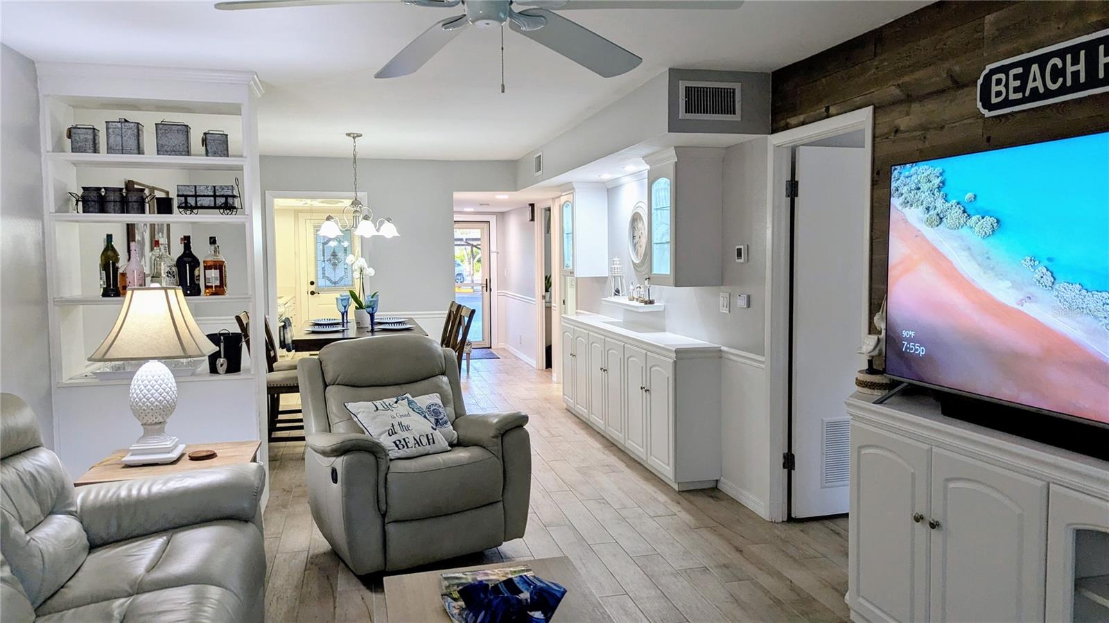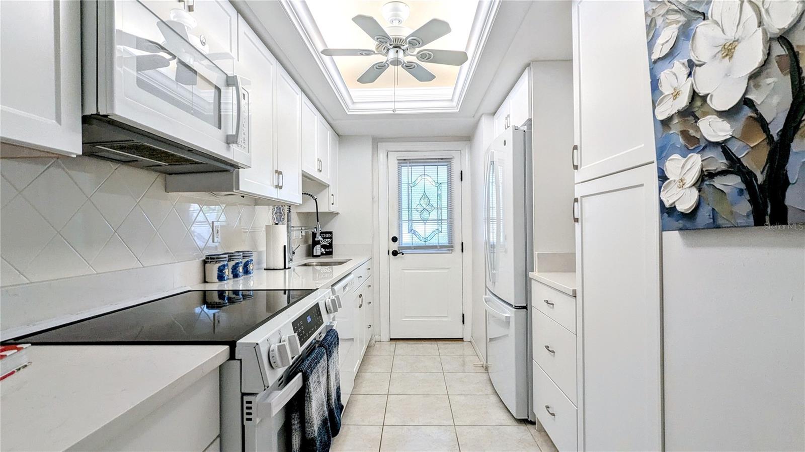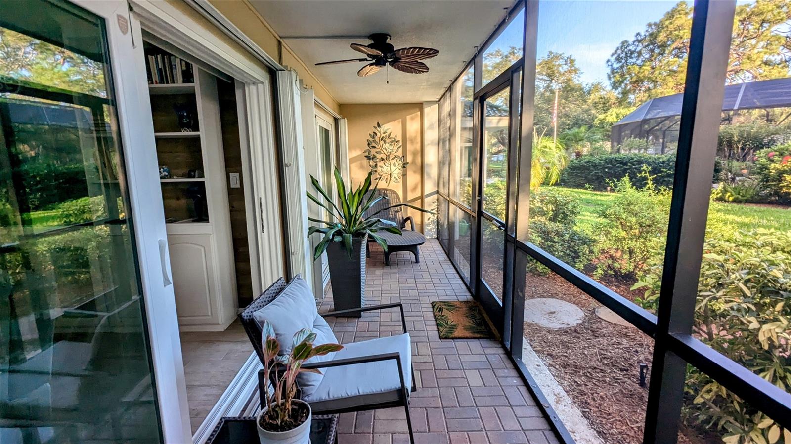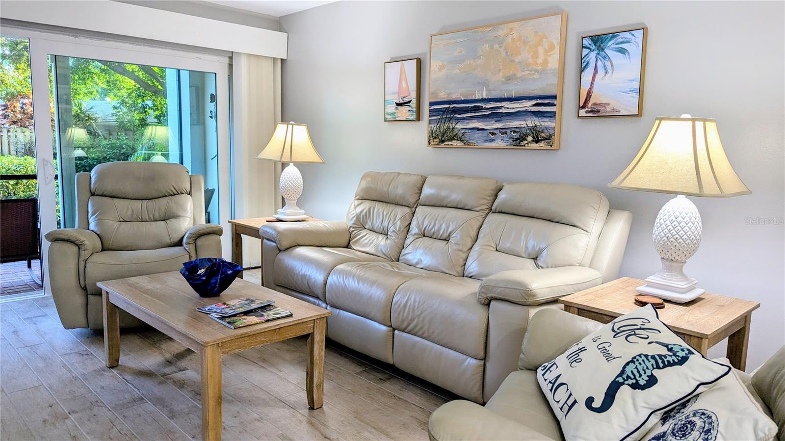 YOUR PIECE OF PARADISE AWAITS: BUT NOT FOR LONG! This unit will be taken off the market soon, so now is the time to act. While it's true that owning property in Florida today has its challenges, GOOD NEWS, not with this condo. The Venice Avenue Condominium is an established community, perfectly located in the heart of HISTORIC DOWNTOWN VENICE . . . and walking distance to the BEACH (without the hefty pricetag). Enjoy peace of mind knowing it is in FLOOD ZONE X, has SOLID INSURANCE and a NEW ROOF project underway! A well-run HOA keeping up with regular maintenance, projects and state inspections means owners’ costs have remained stable. Recent building improvements include: resealed parking lot with replaced carports (2023), a fresh coat of paint (2023), recently renovated lobby and patio (2022) and updated elevators (2021). All this means YOU can move in right in now and embrace the true Venice Florida Vibe. Let’s talk about the unit. True CONVENIENCE, on the GROUND FLOOR! No need to deal with stairs or elevators, this very private unit is just steps from the heated, screened-in pool, lobby, club room and parking, yet offers a secluded escape with serene views of lush tropical greenery from the long lanai. Offered TURNKEY, this 2BR/2BATH floor plan flows effortlessly between its open spaces, defined by stylish, storage-friendly "built-ins." Classy, coastal décor with premium tile throughout. NO CARPET! Many UPGRADES! Kitchen: BRAND NEW GE REFRIGERATOR and RANGE (Aug 2024); NEW DISHWASHER (2023), BRAND NEW QUARTZ counters and stainless-steel sinks, soft-close cabinets and drawers. Both bathrooms: BRAND NEW QUARTZ counters, sinks and tub glass door. AC (2022). IMPACT GLASS SLIDERS from both the living room and the primary suite lead to a peaceful, screened lanai overlooking a manicured landscape with diverse and colorful tropical plantings. There is additional, assigned storage on the 3rd floor for this unit. There is also resident-only storage on the ground floor with space for bikes, etc. Community areas include a stylish lobby and community gathering space, a bright sunroom, a patio and the centerpiece: an inviting community pool, completely screened for your comfort. This 55+ community has a full schedule of ongoing and seasonal social activities. No pets are permitted. Let's not forget: LOCATION LOCATION LOCATION! Be part of the vibrant Venice community! Find a perfect blend of convenient access and idyllic coastal living. WALK to beaches, Historic Downtown shopping and dining, farmer’s market and special events. Discover tranquility among the banyan trees along Heritage Trail just outside the building on Venice Ave. Centennial Park, Tennis, basketball and (soon) Pickleball courts are a block away at Hecksher Park. Just a short drive or bike ride on the island are Venice Theater, Yacht Club, Freedom Boat Club, Venice Performing Arts Center, Venice Community Center/Library, and South Jetty Park. There are many area golf courses to choose from, too. It’s time to make a move! Schedule a showing today and be prepared to fall in love!