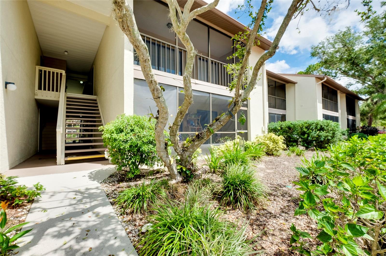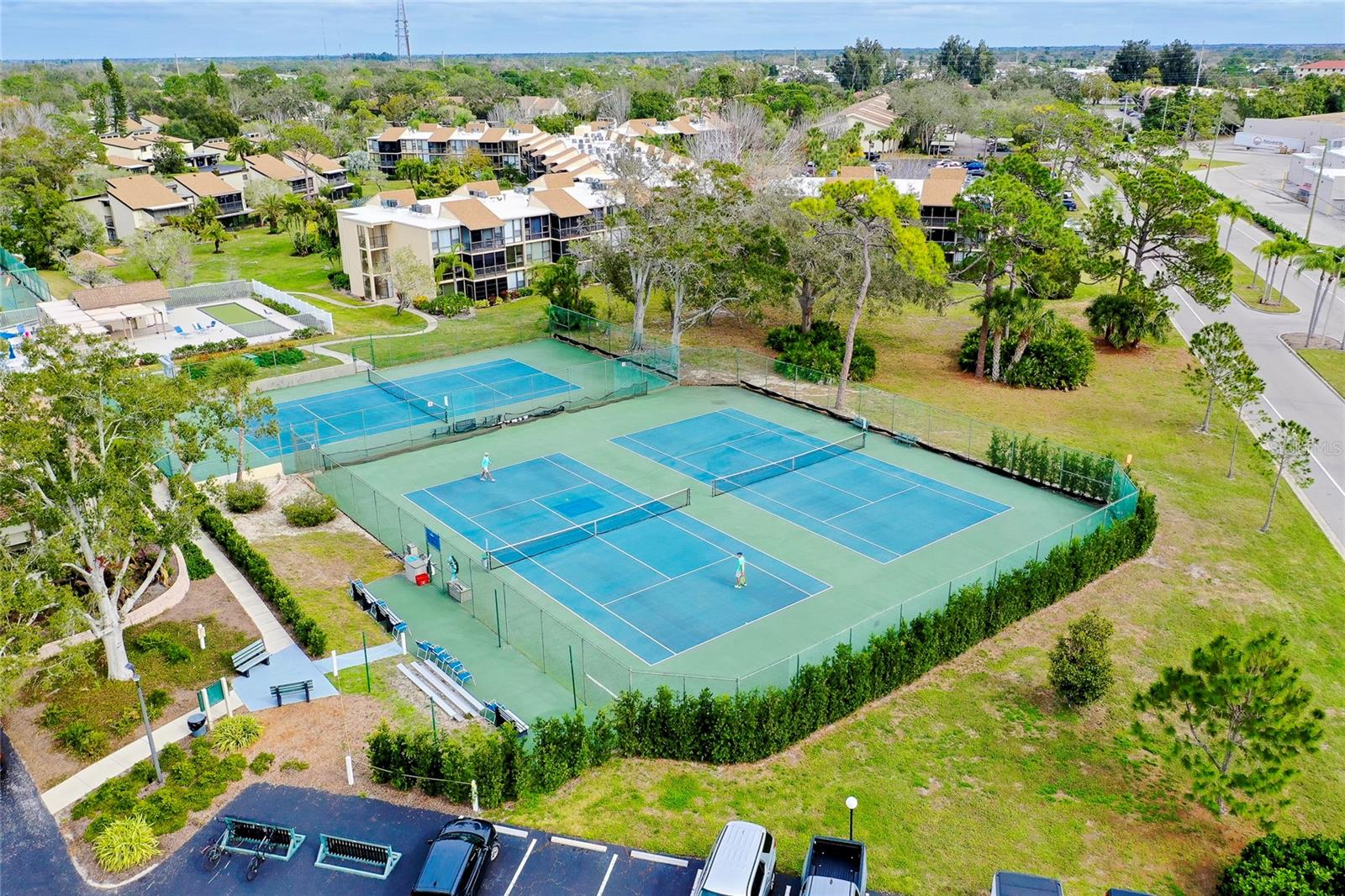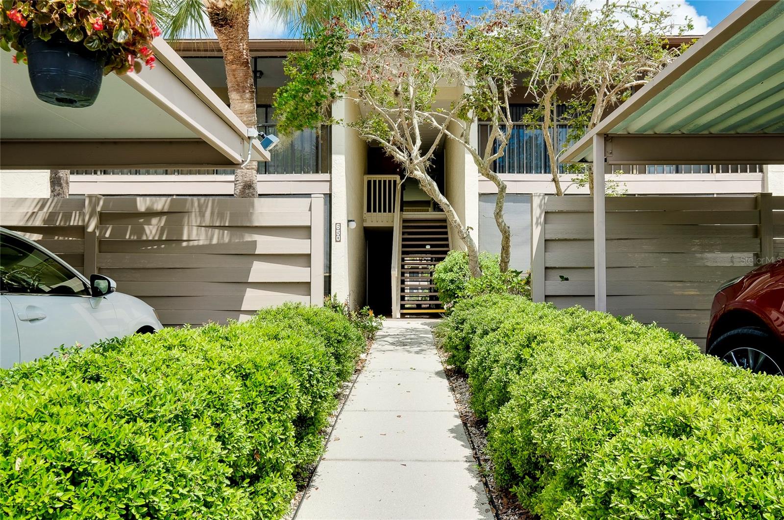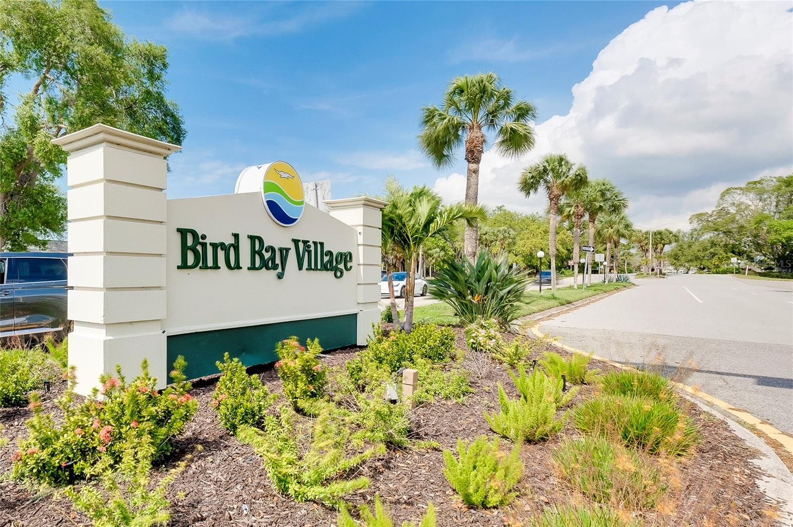 PRICE IMPROVEMENT.... Bird Bay Village Phase V. Beautiful 2 Bedrooms, 2 Baths convertible condo. This darling condo is move-in ready conveniently located next to Phase V pool, gazebo, and BB grill. The vaulted ceiling and natural light provide a warm, welcome and spacious feel. Open concept combo living room and dining room with beautiful Pergo laminate flooring can be found throughout the living and sleeping area, making clean up after your day at the beach or on the courts a breeze. You will enjoy the sunshine from the East facing you as you enjoy your coffee outside on one of the lovely, tiled lanais and appreciate the benefits of the morning sun rather than the heat of the day. Both bathrooms are equipped with updated vanities and sinks. New AC and Hot Water Heater 2022, Refrigerator 2023. This condo includes covered parking under a carport, as well as a storage closet for your toys. The Washer and Dryer are included in the unit. On site management company. HOA includes water, sewer, trash, basic cable, exterior maintenance of the building and grounds and all the amenities. Bird Bay Village is conveniently located about 2 minutes from the Island of Venice, and adjacent to the Bird Bay Shopping Center, located across from restaurant Row at Bird Bay Plaza. Adjacent to Bird Bay Village is the Legacy Trail, a dedicated bike path that extends all the way to Sarasota. Bird Bay also features a state-of-the art-fitness center, library and clubhouse. Enjoy the Pickleball courts, swimming pool and tennis courts. No need to ever leave the Property! Come for a visit, stay for a lifetime.