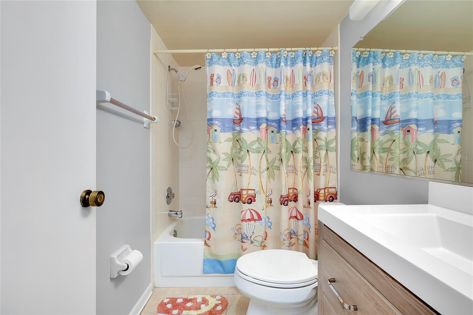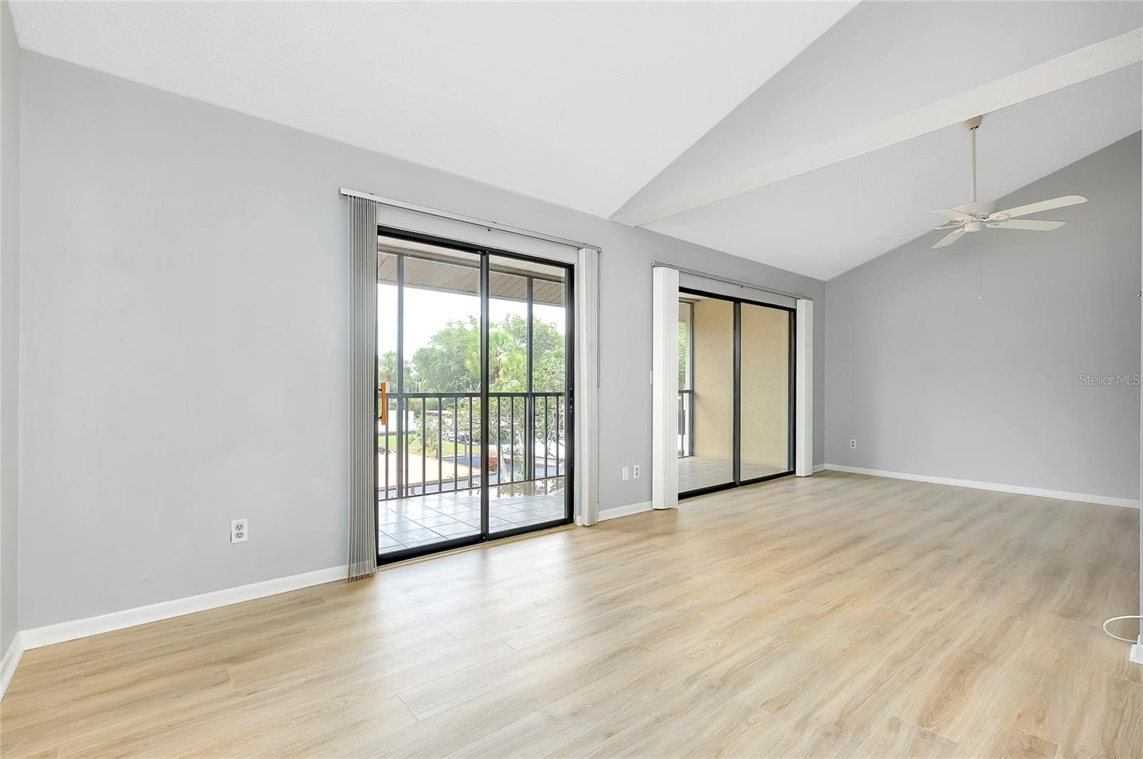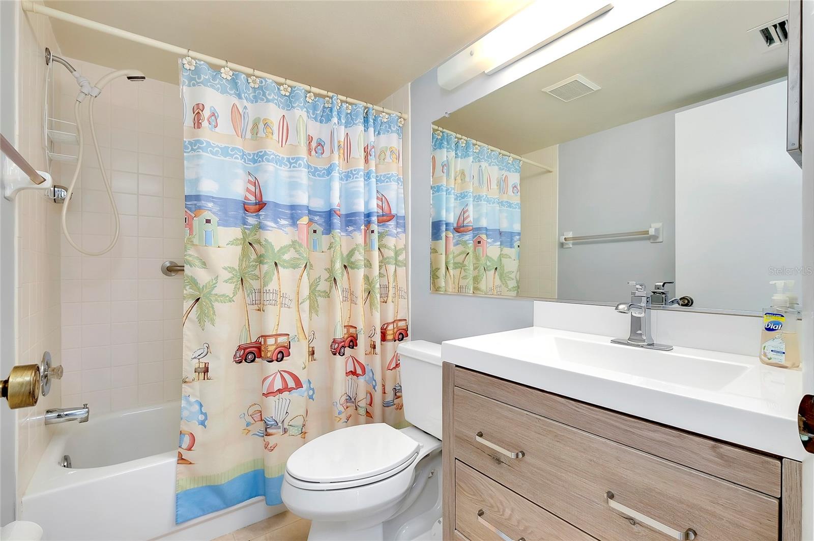 PRICE IMPROVEMENT.... Bird Bay Village Phase V. Beautiful 2 Bedrooms, 2 Baths convertible condo. This darling condo is move-in ready conveniently located next to Phase V pool, gazebo, and BB grill. The vaulted ceiling and natural light provide a warm, welcome and spacious feel. Open concept combo living room and dining room with beautiful Pergo laminate flooring can be found throughout the living and sleeping area, making clean up after your day at the beach or on the courts a breeze. You will enjoy the sunshine from the East facing you as you enjoy your coffee outside on one of the lovely, tiled lanais and appreciate the benefits of the morning sun rather than the heat of the day. Both bathrooms are equipped with updated vanities and sinks. New AC and Hot Water Heater 2022, Refrigerator 2023. This condo includes covered parking under a carport, as well as a storage closet for your toys. The Washer and Dryer are included in the unit. On site management company. HOA includes water, sewer, trash, basic cable, exterior maintenance of the building and grounds and all the amenities. Bird Bay Village is conveniently located about 2 minutes from the Island of Venice, and adjacent to the Bird Bay Shopping Center, located across from restaurant Row at Bird Bay Plaza. Adjacent to Bird Bay Village is the Legacy Trail, a dedicated bike path that extends all the way to Sarasota. Bird Bay also features a state-of-the art-fitness center, library and clubhouse. Enjoy the Pickleball courts, swimming pool and tennis courts. No need to ever leave the Property! Come for a visit, stay for a lifetime.