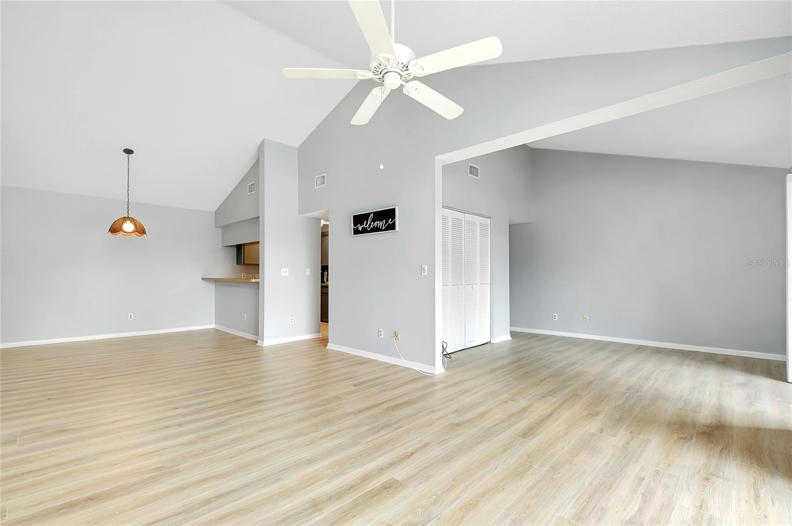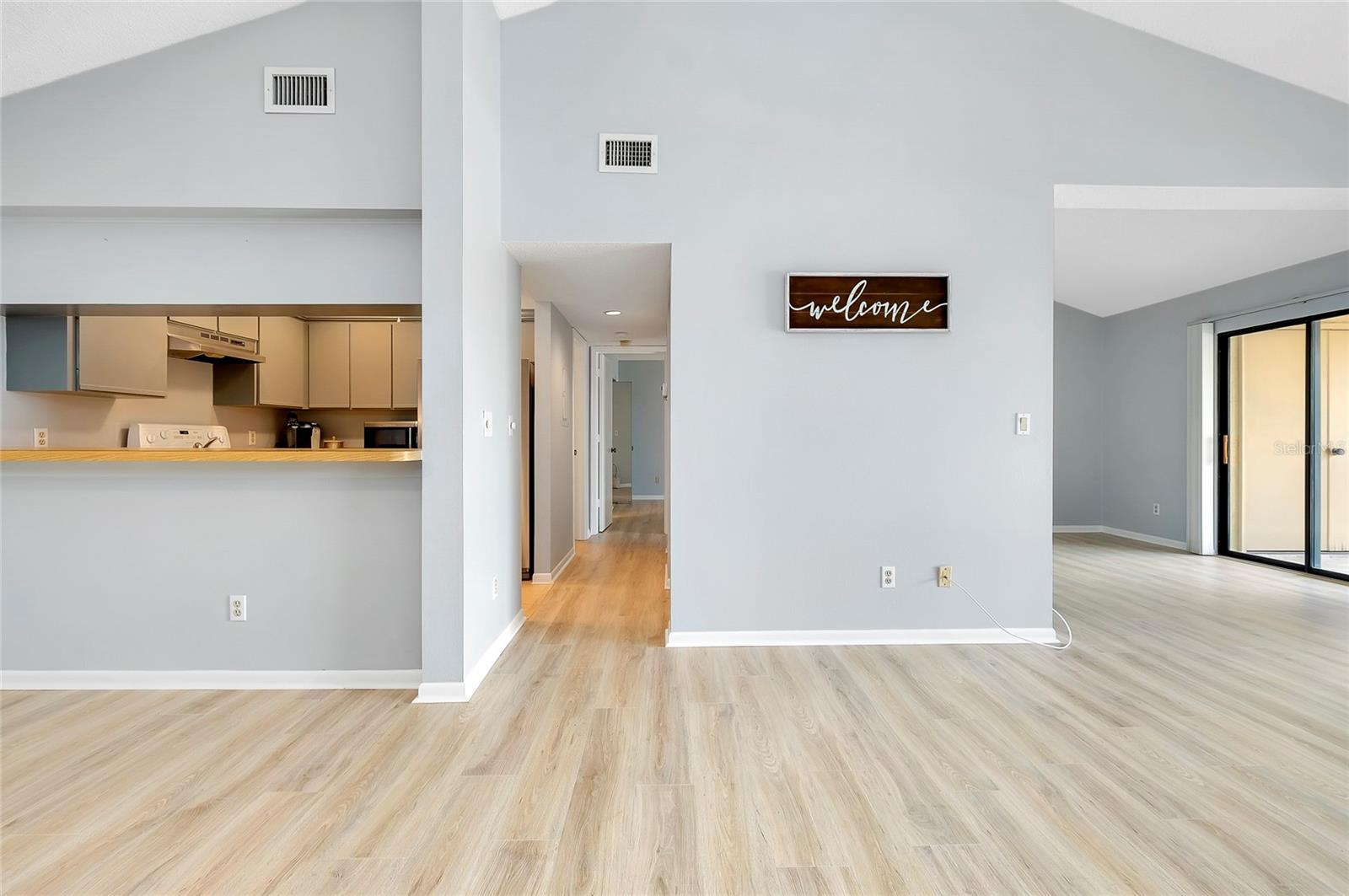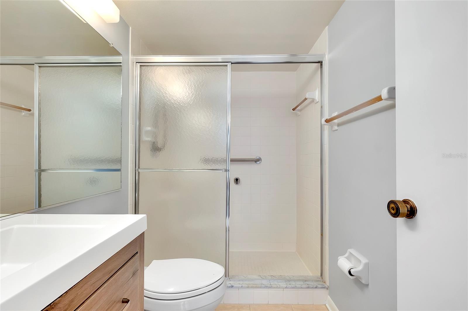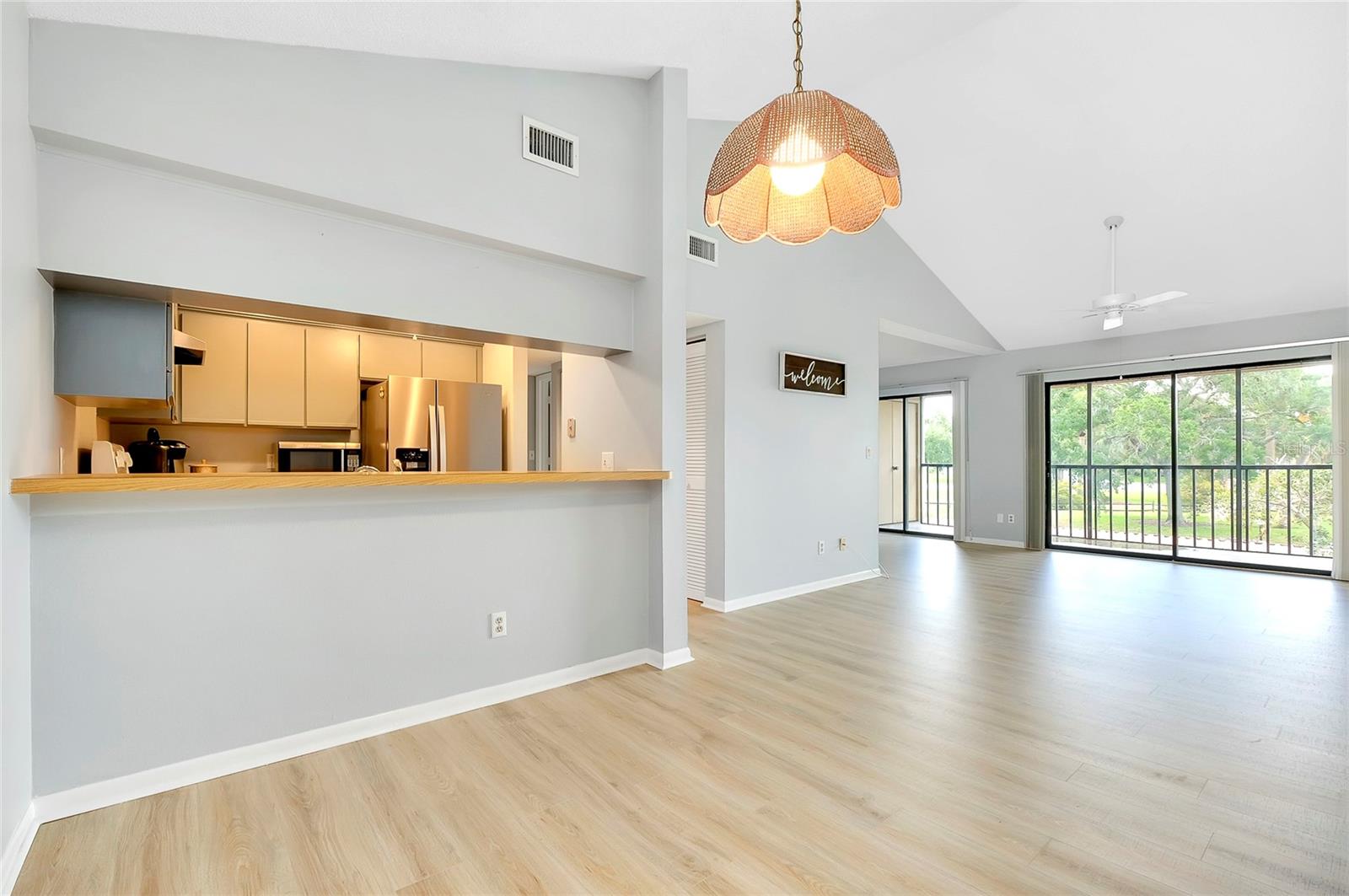 PRICE IMPROVEMENT.... Bird Bay Village Phase V. Beautiful 2 Bedrooms, 2 Baths convertible condo. This darling condo is move-in ready conveniently located next to Phase V pool, gazebo, and BB grill. The vaulted ceiling and natural light provide a warm, welcome and spacious feel. Open concept combo living room and dining room with beautiful Pergo laminate flooring can be found throughout the living and sleeping area, making clean up after your day at the beach or on the courts a breeze. You will enjoy the sunshine from the East facing you as you enjoy your coffee outside on one of the lovely, tiled lanais and appreciate the benefits of the morning sun rather than the heat of the day. Both bathrooms are equipped with updated vanities and sinks. New AC and Hot Water Heater 2022, Refrigerator 2023. This condo includes covered parking under a carport, as well as a storage closet for your toys. The Washer and Dryer are included in the unit. On site management company. HOA includes water, sewer, trash, basic cable, exterior maintenance of the building and grounds and all the amenities. Bird Bay Village is conveniently located about 2 minutes from the Island of Venice, and adjacent to the Bird Bay Shopping Center, located across from restaurant Row at Bird Bay Plaza. Adjacent to Bird Bay Village is the Legacy Trail, a dedicated bike path that extends all the way to Sarasota. Bird Bay also features a state-of-the art-fitness center, library and clubhouse. Enjoy the Pickleball courts, swimming pool and tennis courts. No need to ever leave the Property! Come for a visit, stay for a lifetime.