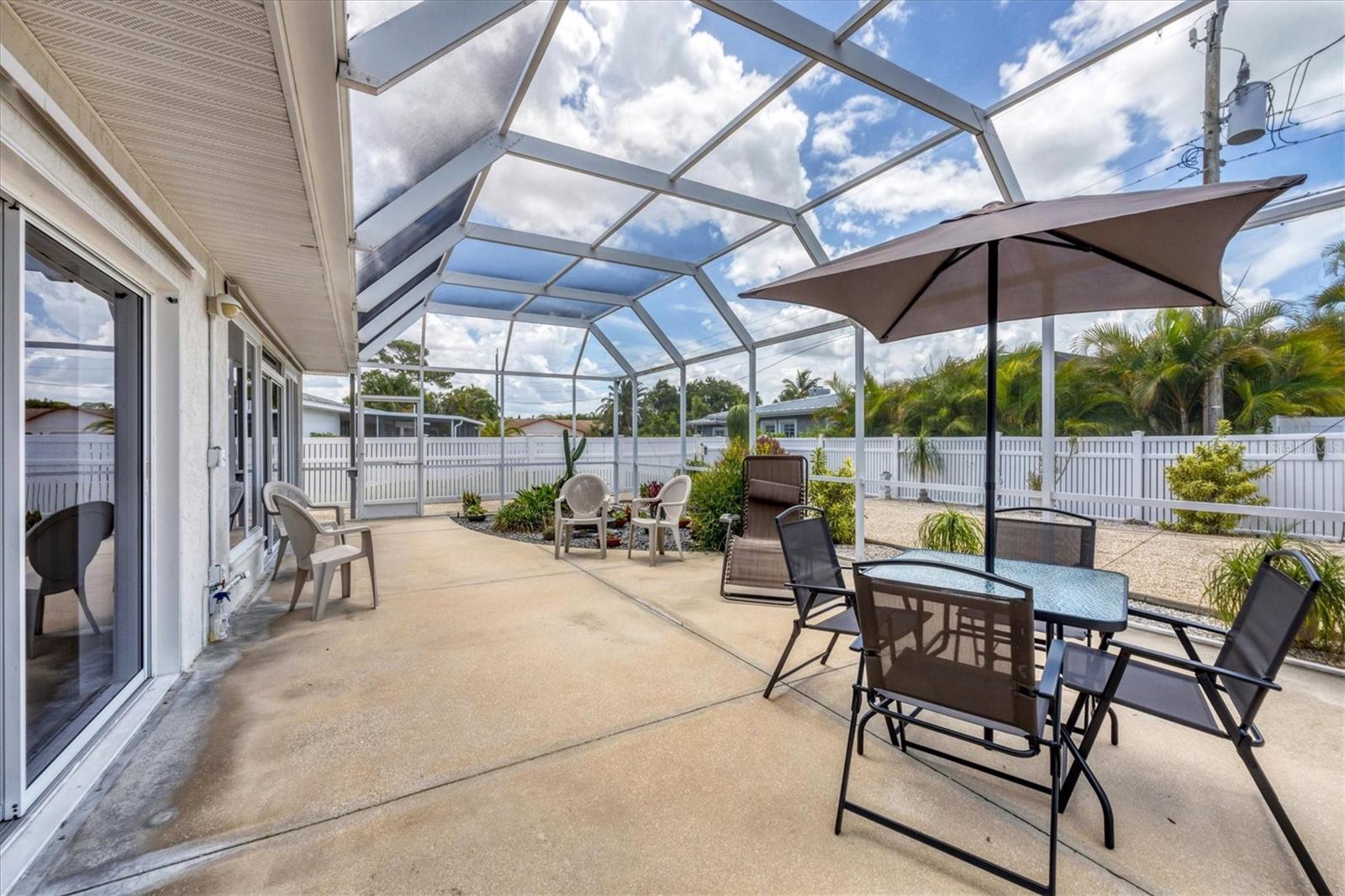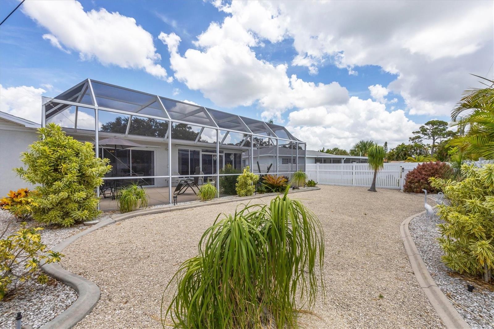 Welcome to this beautifully single-family home on Venice Island, where comfort meets coastal charm***The recently updated roof in 2023 ensures peace of mind, and its prime location offers proximity to the turquoise waters of the Gulf of Mexico and historic downtown Venice with its excellent restaurants, cafes, shopping and much more***This lovely home was extensively and tastefully renovated featuring spacious and bright bedrooms, a well-sized kitchen and a fabulous family room with sliding doors that open to the very large screened-in lanai perfect for entertaining***Park in the driveway and appreciate the clean look of the landscaped front yard laid out with shells for easy maintenance***Inside, discover a large casual living room with a cozy sitting area overlooking the front yard, providing a warm welcome to residents and guests alike***The split bedroom design ensures privacy for both guests and owners***Both suites are oversized. The primary bedroom features a comfortable en-suite bath and pocket doors that open to a walk-in closet***The two other guest bedroom has great space and a large closet***At the heart of this home is the perfectly sized kitchen with ample cabinetry with a sink and breakfast bar overlooking the spacious dining room. Whether having a coffee indoors or enjoying a book outdoors, the open sliding doors seamlessly connect the interior to the serene outdoor area***Embrace the coastal lifestyle in the thoughtfully designed lanai and backyard***To the right find a very private outdoor shower with hot and cold; just what you need after a day at the beach***A large shed with electricity and working bench, offers versatile space while the oversized under air one-car garage, equipped with a refrigerator, ample storage space, complements the property's functionality. This home has been meticulously maintained and loved***Pride in ownership and attention to detail is at the essence of this property***Located on a quiet street, you may ride your bike to the beach or walk downtown for shopping, a show in the Venice theater or fabulous eating in one of Venice's restaurants***HOME TO BE CONVEYED TURN KEY***