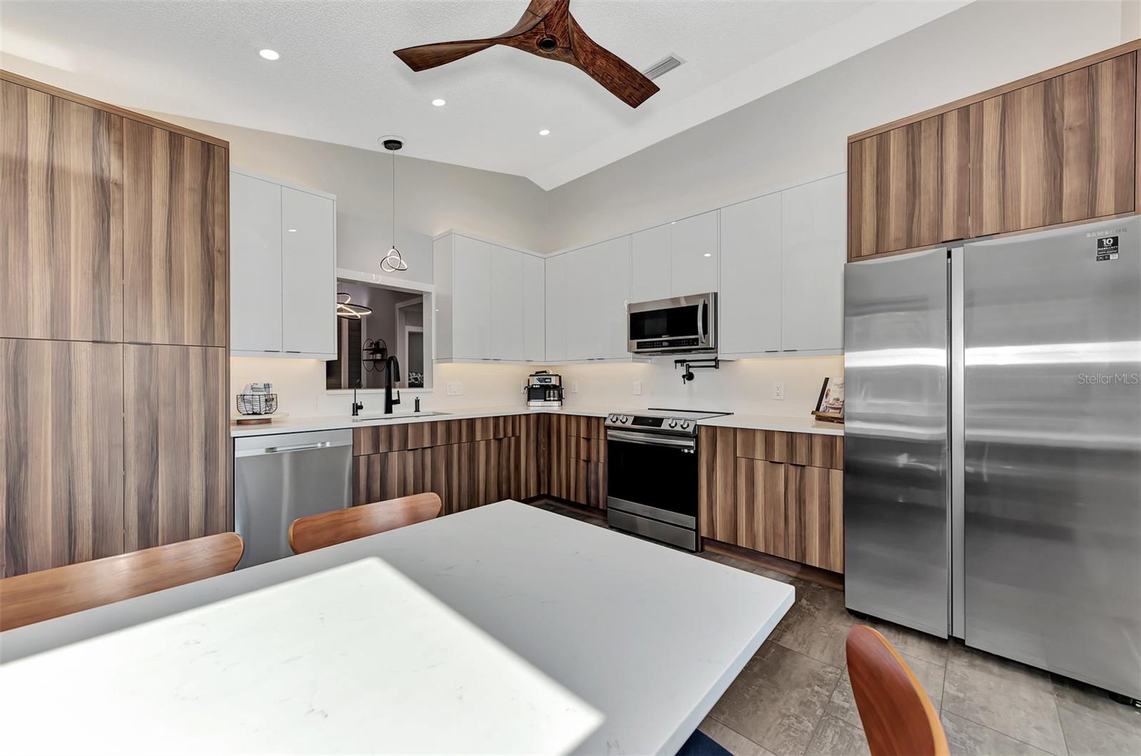 This home is a ONE OF A KIND, It is the ONLY 3 Bedroom, 2 Bathroom, Custom Modern Home in Ironwood. This home is for the buyer who appreciates LUXURY! Completely remodeled with PGT Hurricane Impact Windows and to the Miami Dade Code through-out home. Rear sliding glass doors with custom 8' x 16' Wide Electric Hurricane Roll shutter operated by remote control or manually for added protection. Entire home offers Hurricane Impact Front Door and Side Patio Door along with Insulated Impact Garage Door. Installed Rheem Platinum Gladiator 50 Gallon Hot Water Tank! Updated Electrical Panel Square 200 AMP with Reliance ProTrans Emergency Transfer Switch with a Brand-New WEN DG4500ix Inverter Generator (still in box). UV light bulb installed on A/C Unit for Mold & Bacteria Prevention. This Custom Home has been updated with Modern Euro Cabinets, Samsung Appliance Package with Convection Oven and Basket Fryer. Impeccable Quartz Countertops throughout! Brand New Lighting Fixtures throughout including Over and Under Cabinet Lighting. For the Gourmet Kitchen has POT FILLER and is much appreciated! Love the Pantry Closet Too! Eat In Kitchen is Very Light and Bright! This Custom Home has all New Modern Plumbing Fixtures in Kitchen and Baths, along with New Toilets and Custom Porcelain Tile Showers in both Primary and Second Baths, not to mention Kick Toe Lighting. Wow, Custom Closets in All Bedrooms, perfect for extra storage! Love the Modern Ceiling Fans and all the custom door casing and 6" Baseboards. Brand New Whole house water filtration system with R/O 2023! This home is for the person who appreciates Luxury and Golfing! Back lanai sits on 8th Whole of Capri Isles Golf Course and seller is offering a membership for the Year of Golf for Capri Isles Golf Course! Enjoy! This Home is Minutes from Venice Beach, Shopping, Dining and Medical Centers that includes the Brand New Sarasota Memorial Hospital up the street! Come make this home yours today!