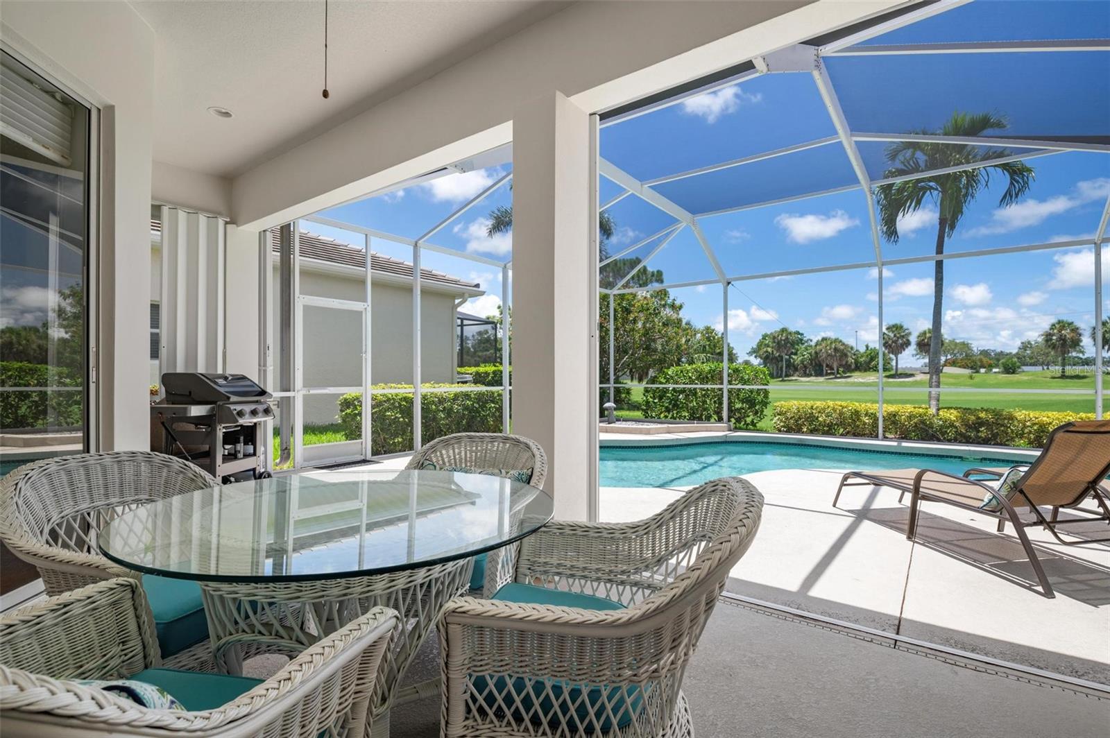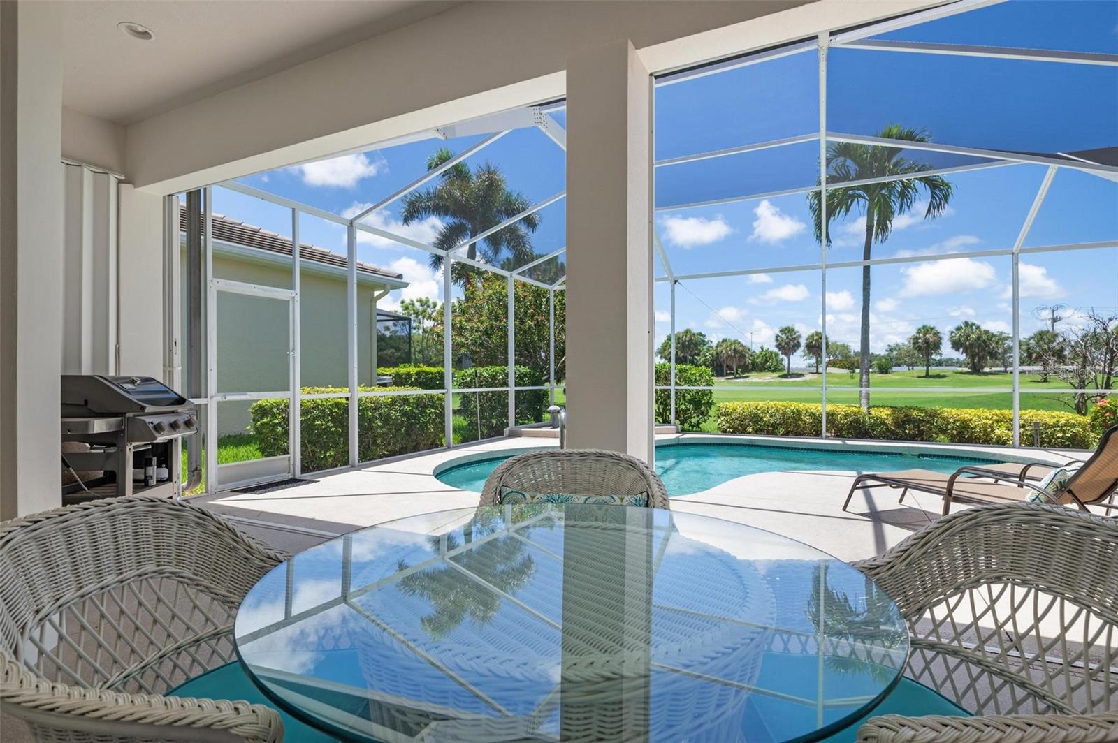 Contemporary in scope. Golf course views. Opportunity to include furniture. A spectacular kitchen, totally remodeled and redesigned with custom shaker cabinets and quartz counters, consistent with today's expectant standards. New tile roof, exterior and interior softly painted in trend-setting colors, evokes a Florida coastal lifestyle. Within 2,510/sq. ft., this skillfully designed Arthur Rutenburg floor plan includes 3 bedrooms, 3 full baths and office/study. Privacy is assured for owner and guests, the primary ensuite with Jacuzzi bath and Roman shower on the west side of the home, guest quarters and secondary bath on the opposite side of the home. The third bath with shower has direct pool access and adjoins the 3rd bedroom. The outdoor entertaining area is accessible and in plain view from virtually every room. Pelican Pointe offers 27 holes of semi-private golf. Ownership includes full social membership at the club, an active women's association with over 45 groups, fitness, dining, tennis, pickleball, heated pool, high-speed internet, cable and 24/7 guard house. Just minutes away are the quaint shops, dining, beaches, biking/walking trails, fishing, performing arts center, cultural venues and other recreational activities of Historic Venice Island, burgeoning Wellen Park and the greater Sarasota Country area.
