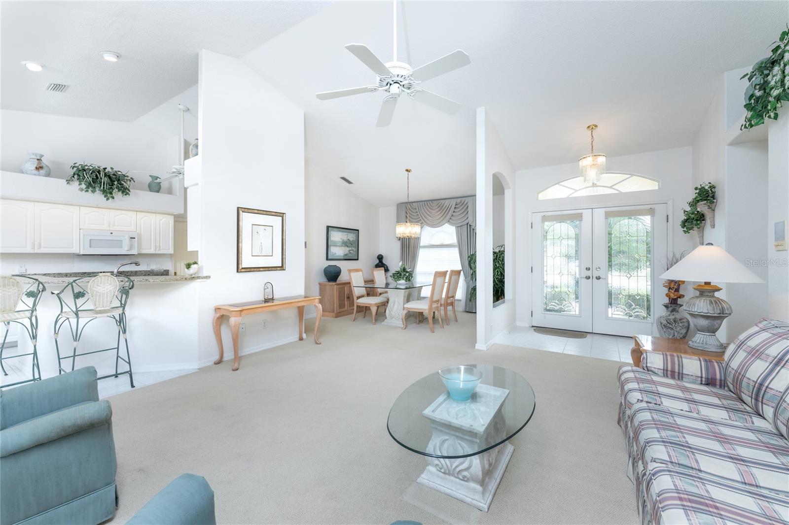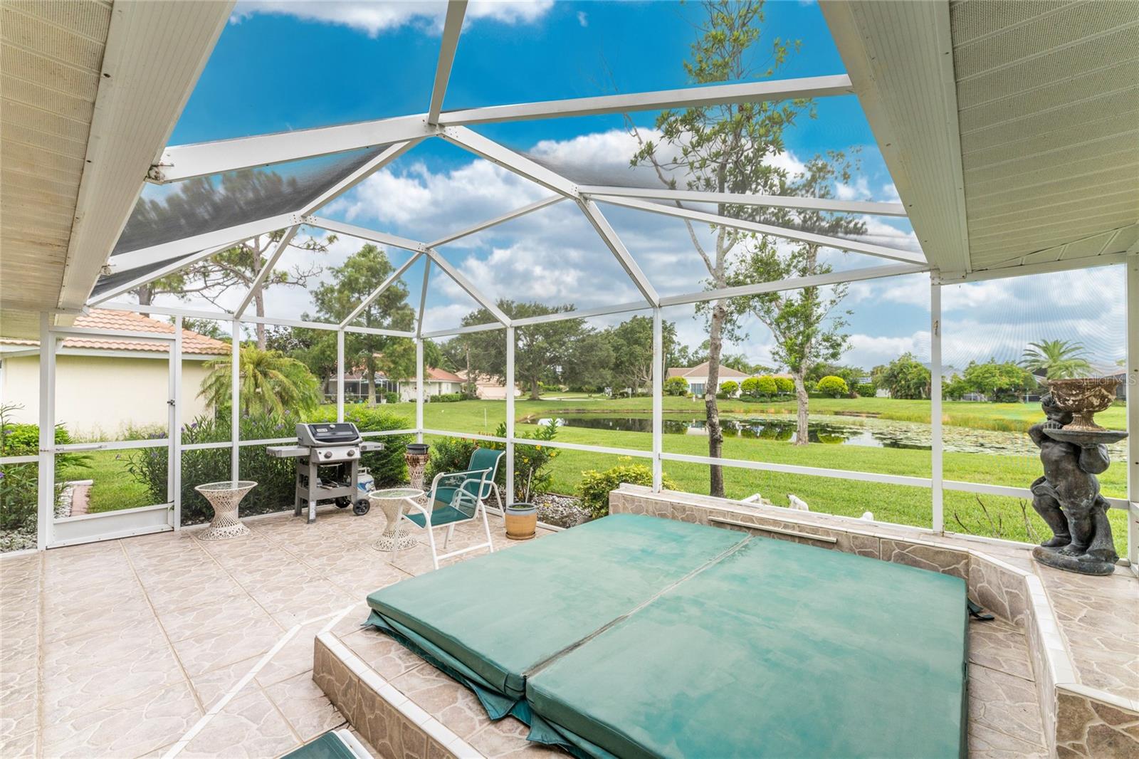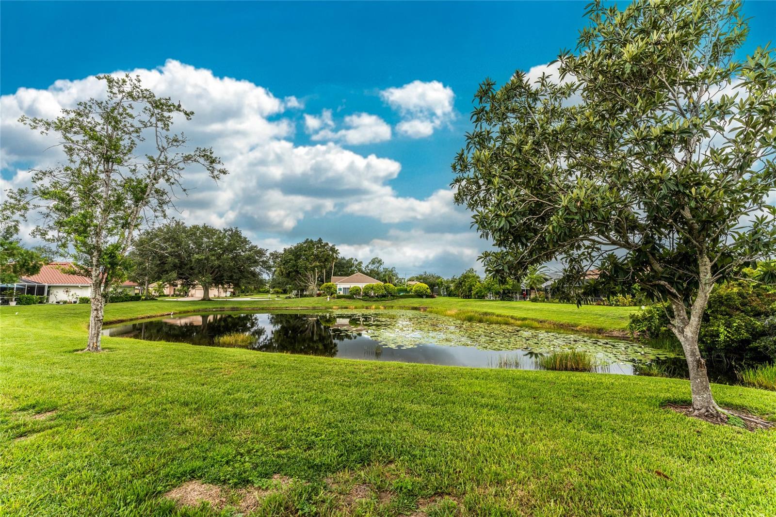 This lovingly cared for home was built in 1995 on one of the largest homesites in Whitestone; 1/4 Acre with 94' frontage on a fresh water pond teeming with wading birds and fish under the lily pads and peaceful and view. You'll enter through Leaded Bevel Glass entry doors and greeted with soaring Cathedral ceilings to a bright and spacious great room with a 12’ x 8’ Sliding Glass Door panorama opening out to a Lanai and an extended Screened Patio with Spa. Features surrounding you are plant shelves, elegant trim and design details, rounded corners and other features, forerunners of many options that became popular in future years. This 3 Bedroom, 2 Bath home with 1851 sf under air has generous room sizes with a separate Formal Dining area, expansive Kitchen and Breakfast area all seamlessly flowing together under high ceilings. There is a Floor Plan of this particular home in the photos and a brochure as an attachment. It has added custom features, a Garden Tub w/whirlpool in the Master Bath, a Den/Study option in the 3rd Bedroom. There are lots of pocket doors everywhere, closets, double walk-ins for the Master Bedroom. The Owners added the screen cage and spa in 2000 and in 2007, Impact windows and in 2010 a powered Roll-Down Hurricane Shutter at the Lanai. In the the recent foul weather, the patio furniture was moved under roof and the whole home protected. A 4-Point Inspection and Wind Mitigation Report were obtained in January 2024 available to a prospective buyer. It suffered minimal damage from Hurricane Ian and the property was insured with Citizens. It is in a non-flood zone. The furnishings present are available by separate agreement. Whitestone is one of several distinct neighborhoods in Southwood developed in the 1990’s at a time when this was “way past Basketville” . Venice has grown remarkably around it. This community is gated, with moderate HOA Fees, no CDD, central water and sewer, sensible deed restrictions and has it’s own clubhouse and pool, a boutique enclave of just over 50 residences. Southwood has one entrance off of South Tamaimi Trail midway between Venice East Blvd and Plantation Golf and Country Club. It is quietly nestled well in from Hwy 41 yet just minutes to the wonderful amenities and attractions Venice offers; Our Historic “Island’ , choices of area beaches, our Symphony, Performing Arts Center, “Little” Theatre, easy access to I-75. The area has every imaginable service, whether shopping, exceptional medical care, fine and and casual dining and entertainment. This is a special home awaiting new Owners. It has good “bones” , and amazingly functional spilt floor plan, friendly neighbors and a great location.