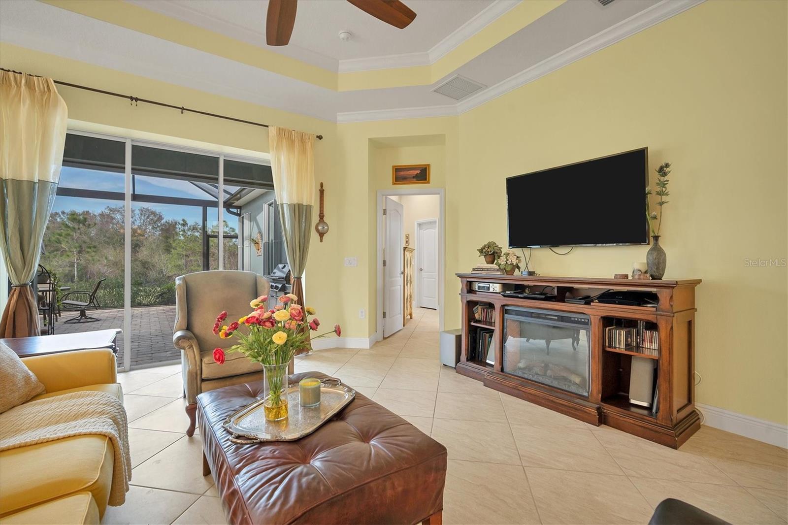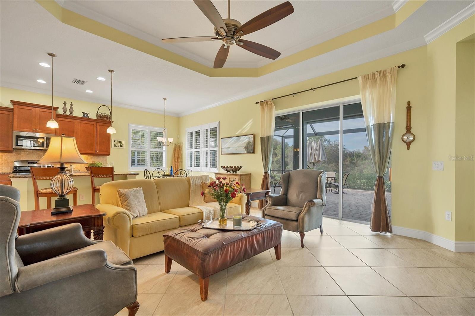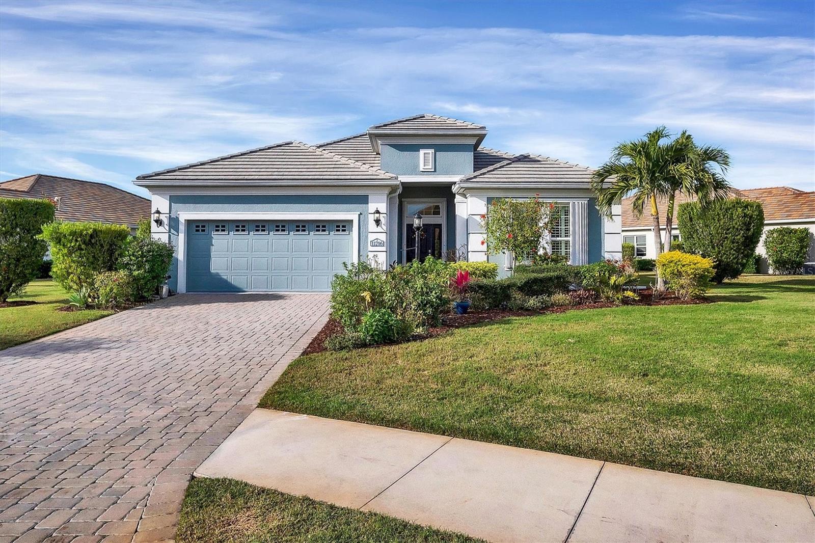 NEW PRICE IMPROVEMENT! Discover your new lifestyle in the gorgeous maintenance-free home new to the market. In the highly sought after Cove enclave in the amenity-rich community of Grand Palm. This lovely endless summer floor plan is sure to please with 2,176 square feet of living space to include three bedrooms, two baths, den-study and two-car garage. Some significant features and upgrades are what makes this worth the investment with a whole-house Kohler generator, water softener system with reverse kitchen osmosis, plantation shutters, stone countertops, wood cabinets, tile flooring and crown molding throughout. On an oversized pie-shaped corner lot, the lanai has beautiful and expansive preserve views and plenty of room to add the pool of your dreams. The extended screened-in patio is a peaceful place to enjoy the outdoors and has natural gas line for grilling and roll-down, high-impact motorized hurricane screens. A spacious owner's suite with private entry boasts a large bath with walk-in tiled Roman shower, dual sink vanity, water closet and two generous walk-in closets. Grand Palm is centrally in Venice, minutes to historic downtown Venice, pristine sandy beaches, mouthwatering restaurants and plenty of shopping. There’s never a shortage of things to keep you busy with a full-time activity coordinator. An array of monthly programs and events along with a full-service fitness center, clubhouse, three additional community pools, tennis, pickleball, and miles of walking and biking trails are always available. For peace of mind, a home warranty protection plan is included with purchase and priced to sell. Schedule your private showing today because living the life you’ve earned can be more than just a dream!