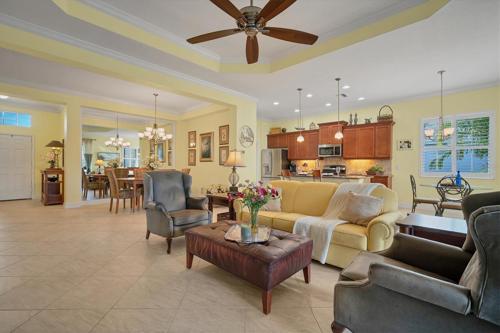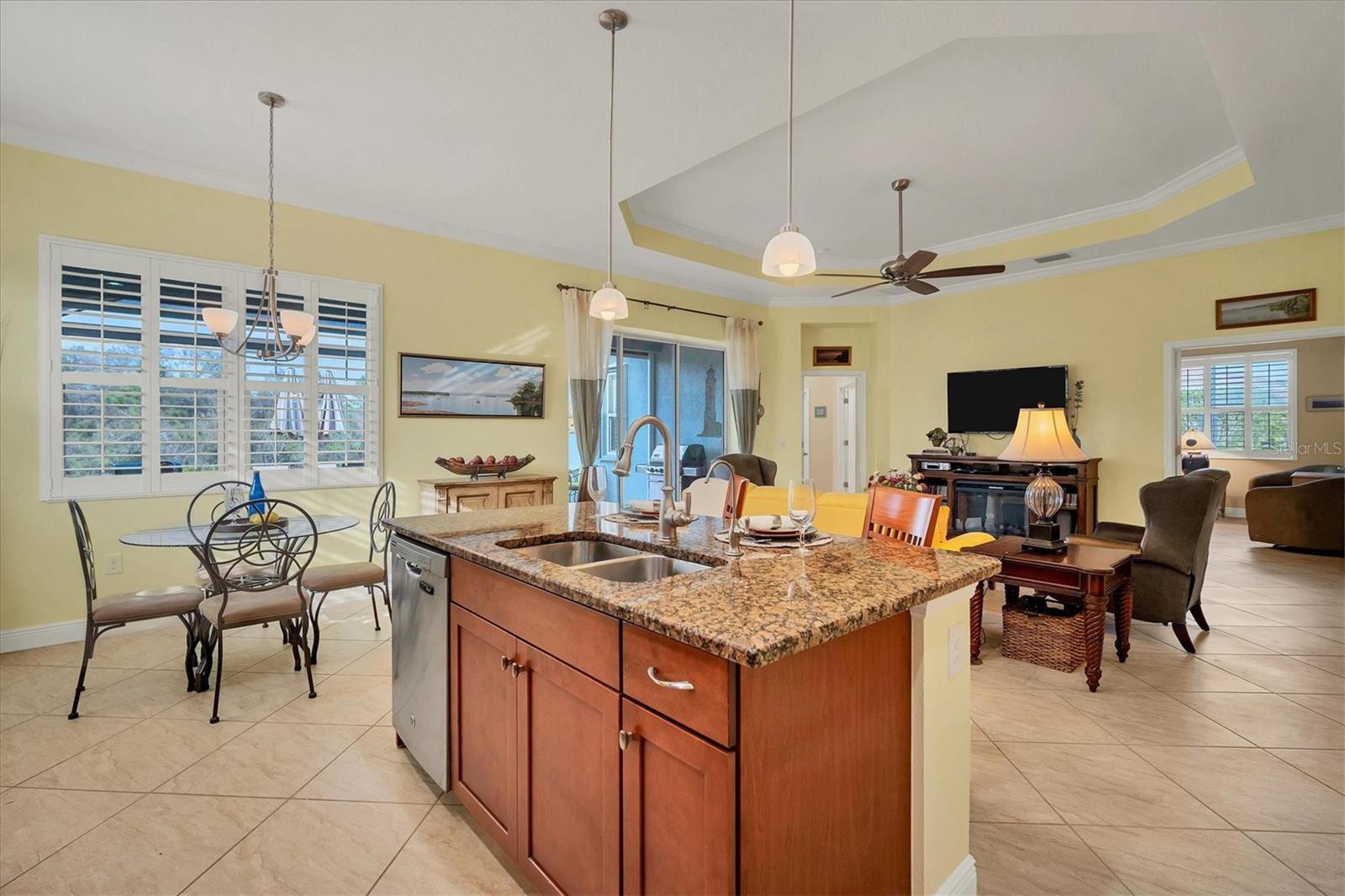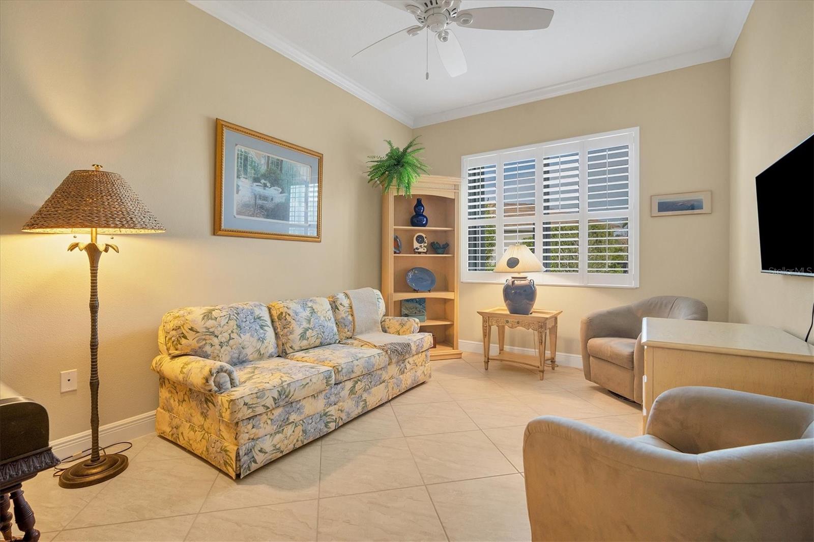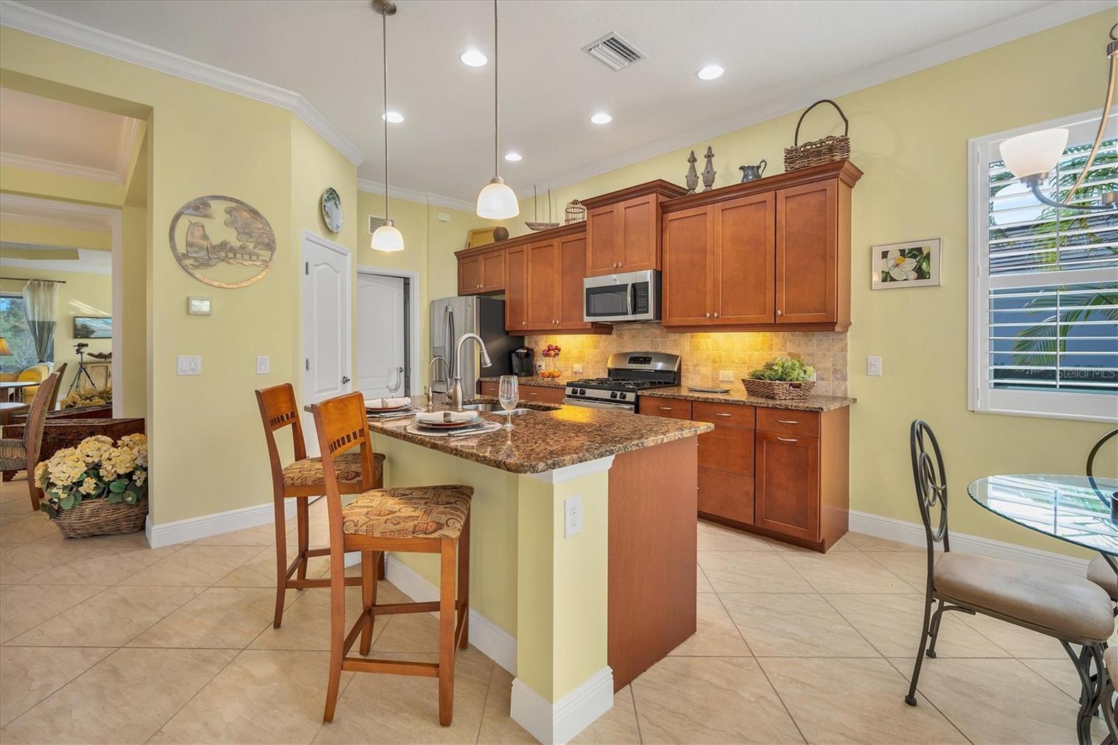 NEW PRICE IMPROVEMENT! Discover your new lifestyle in the gorgeous maintenance-free home new to the market. In the highly sought after Cove enclave in the amenity-rich community of Grand Palm. This lovely endless summer floor plan is sure to please with 2,176 square feet of living space to include three bedrooms, two baths, den-study and two-car garage. Some significant features and upgrades are what makes this worth the investment with a whole-house Kohler generator, water softener system with reverse kitchen osmosis, plantation shutters, stone countertops, wood cabinets, tile flooring and crown molding throughout. On an oversized pie-shaped corner lot, the lanai has beautiful and expansive preserve views and plenty of room to add the pool of your dreams. The extended screened-in patio is a peaceful place to enjoy the outdoors and has natural gas line for grilling and roll-down, high-impact motorized hurricane screens. A spacious owner's suite with private entry boasts a large bath with walk-in tiled Roman shower, dual sink vanity, water closet and two generous walk-in closets. Grand Palm is centrally in Venice, minutes to historic downtown Venice, pristine sandy beaches, mouthwatering restaurants and plenty of shopping. There’s never a shortage of things to keep you busy with a full-time activity coordinator. An array of monthly programs and events along with a full-service fitness center, clubhouse, three additional community pools, tennis, pickleball, and miles of walking and biking trails are always available. For peace of mind, a home warranty protection plan is included with purchase and priced to sell. Schedule your private showing today because living the life you’ve earned can be more than just a dream!
