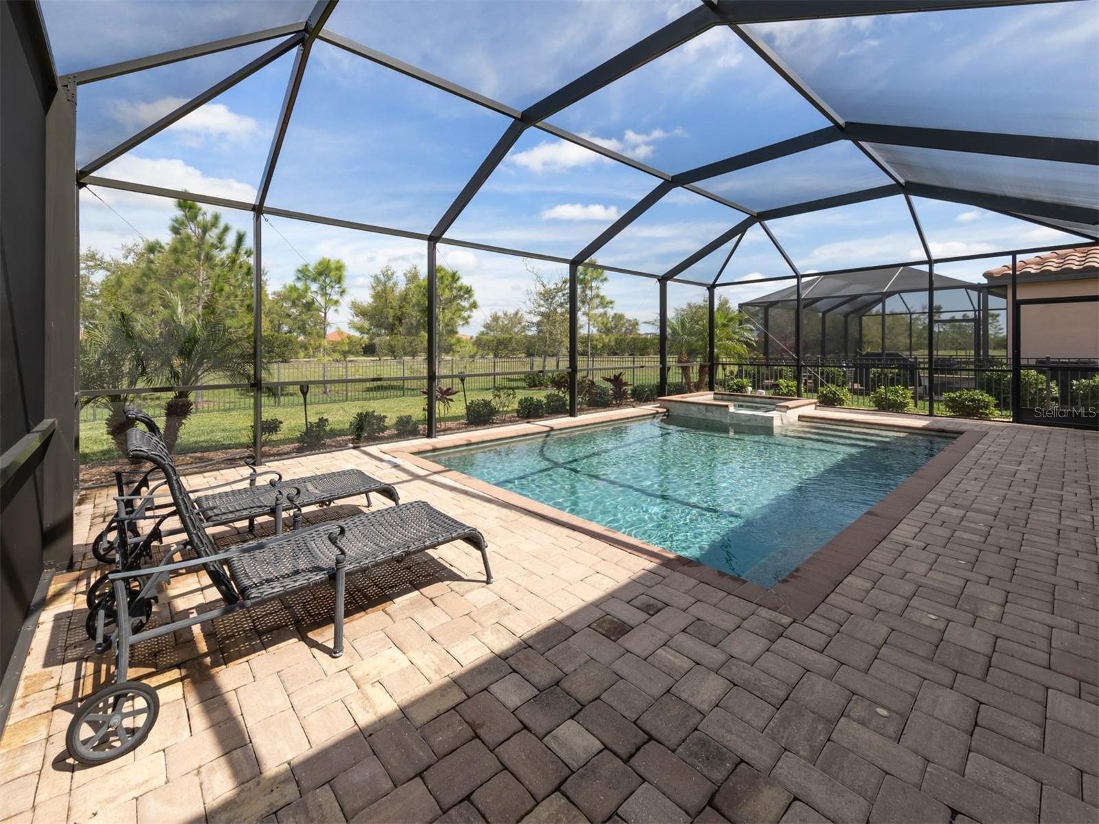 Gran Paradiso in The West Villages, Beautiful 4-bedroom 3- bath pool/spa home. The home is unfurnished. This very open, spacious and bright home has tile throughout, making cleaning a breeze and offering a sleekness to the design. Gorgeous granite is in both the Kitchen and all bathrooms. There is a two-car garage, lots of storage space and a large pantry in the Kitchen. The home and pool overlook a dreamy Greenscape. The pool deck is set with gorgeous pavers and is quite spacious, providing plenty of room for sunning around the pool and lots of space for dining al fresco and entertaining. There is more! A spa for relaxing in the evening. Nothing is quite as enjoyable as being in the spa, gazing at the stars at night. This Tuscan-inspired community of Gran Paradiso is surrounded by the natural beauty of Southwest Florida. There are hundreds of acres of lakes, walking trails and lush natural beauty. Activities include resort-style amenities, a sparkling free form pool and spa with a beach entry, poolside cabanas, pickleball and lighted tennis courts. The Clubhouse is 7,000 square feet of pure luxury. the community can come together to enjoy the well-equipped state of the art fitness center, group classes, private locker rooms, sauna and steam room, game room with billiards, card tables and a craft room. You are just three miles from Jacaranda Boulevard and much shopping and only 10 minutes to Interstate 75. Nearby, is championship golf courses, world class shopping, fine and casual dining and a thriving arts and culture scene. Slightly to the north is Historic Venice and Olde Englewood offering so much in the way of shopping, dining, boutiques, clubs/pubs and breweries. This community is moments from some of the best beaches in the world, and the best fishing in the state. Gran Paradiso is the perfect trifecta: a great place to live, work and play. Don't miss this opportunity!