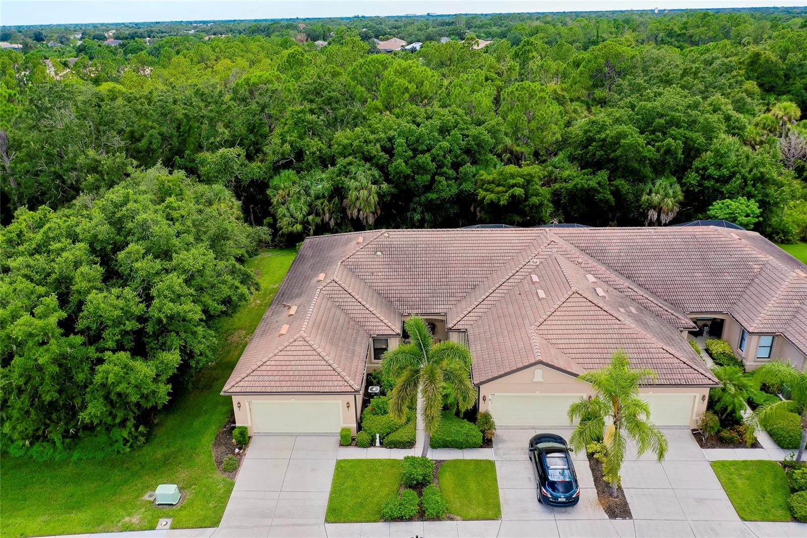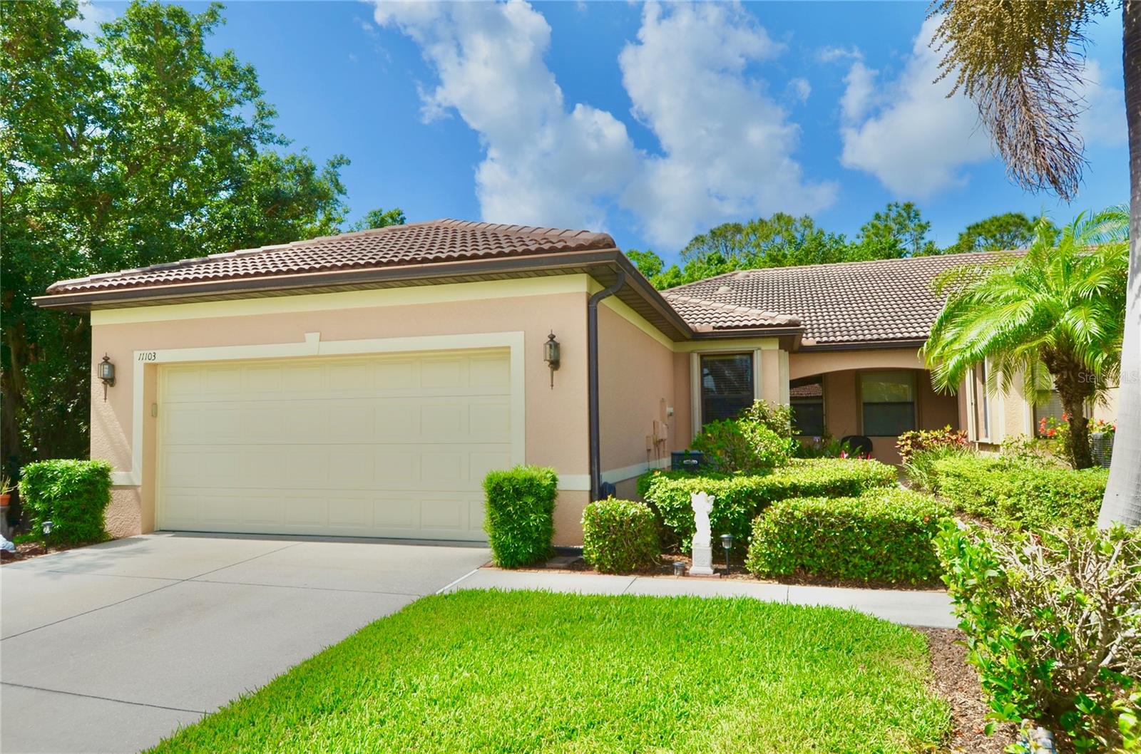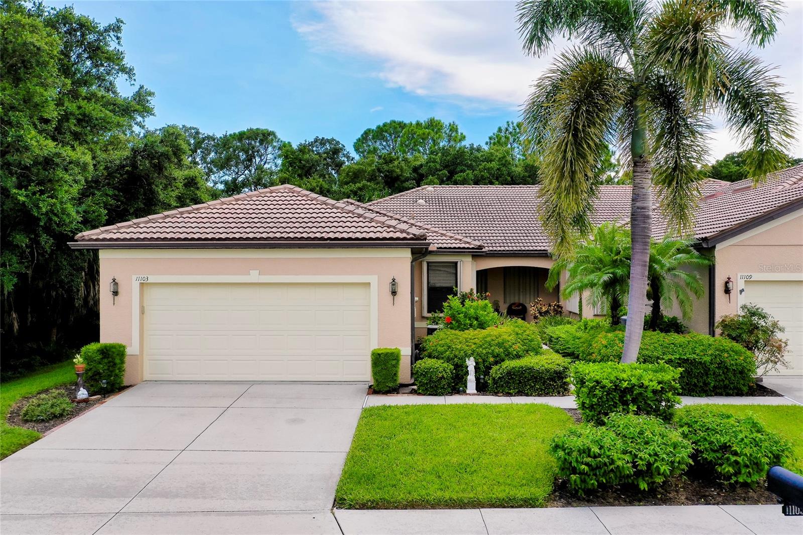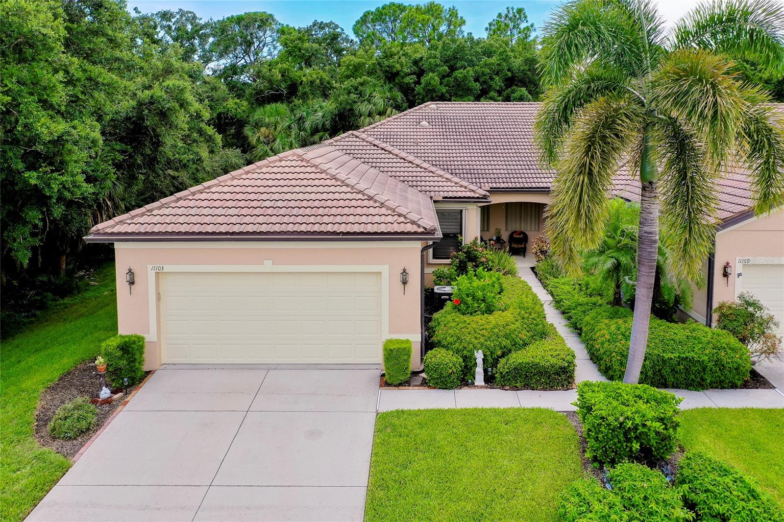 CHARMING VILLA IN VENETIAN FALLS! A VERY UNIQUE SETTING WITH PRESERVE TO THE SIDE AND BACK OF HOME! Welcome to your dream residence in the highly esteemed 55+ community of Venetian Falls in beautiful Venice, Florida. This 2 bedroom + DEN, 2 bathroom, 2 car garage villa provides the ideal blend of comfort and functionality with a thoughtful split bedroom floor plan. Step into the center of the home, where the kitchen has recessed lighting, ample cabinetry, a breakfast bar, and a cozy dinette seating area perfect for a morning meal. The dining room flows seamlessly into the family room, creating an open and inviting space for entertaining. Large sliding doors lead to the outdoor lanai, filling the family room in natural light and presenting a delightful view of native Florida preserve. The primary bedroom, located at the back of the home for added privacy, features a walk-in closet, additional regular closet, and en suite bathroom. The en suite is well-equipped with dual sinks, a large walk-in shower, and a linen closet. The second bedroom, situated on the opposite side of the home, also relishes its own private space with a built-in closet and a full bathroom with a shower/tub combo across the hall. Enjoy the veracious Florida lifestyle on the sizable screened lanai, great for relaxing and taking in the appealing natural preserve. Additional home highlights include a well-maintained curb appeal, inside laundry room, hurricane shutters, utility sink in the garage, and the advantage of being an end unit. Venetian Falls offers residents an array of amenities including a clubhouse, resort-style pool, fitness center, walking and biking trails, meeting rooms, golf practice facilities, and stunning scenic lakes and ponds. This community is also conveniently positioned in close proximity to shopping, restaurants, schools, parks, other golf courses, a hospital, I-75, Historic Downtown Venice, and pristine Gulf beaches. Don’t miss the opportunity to make this remarkable villa your new home!