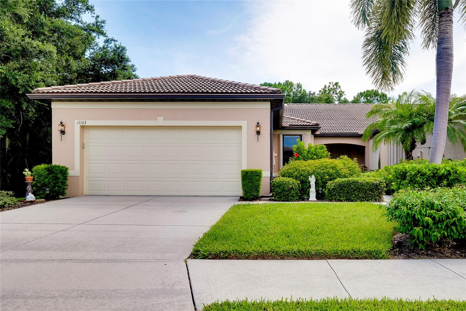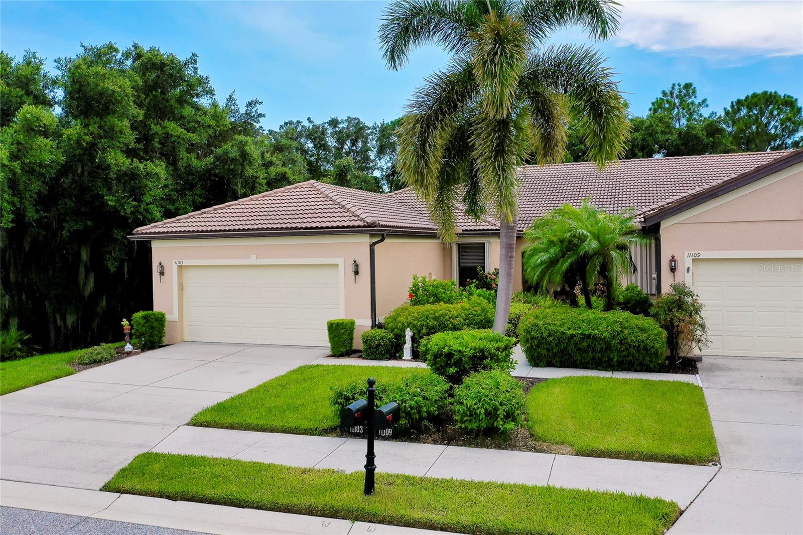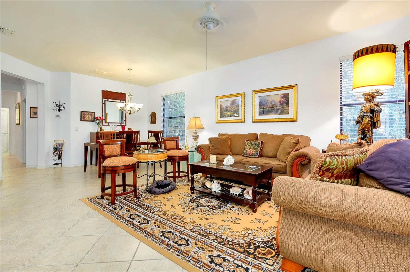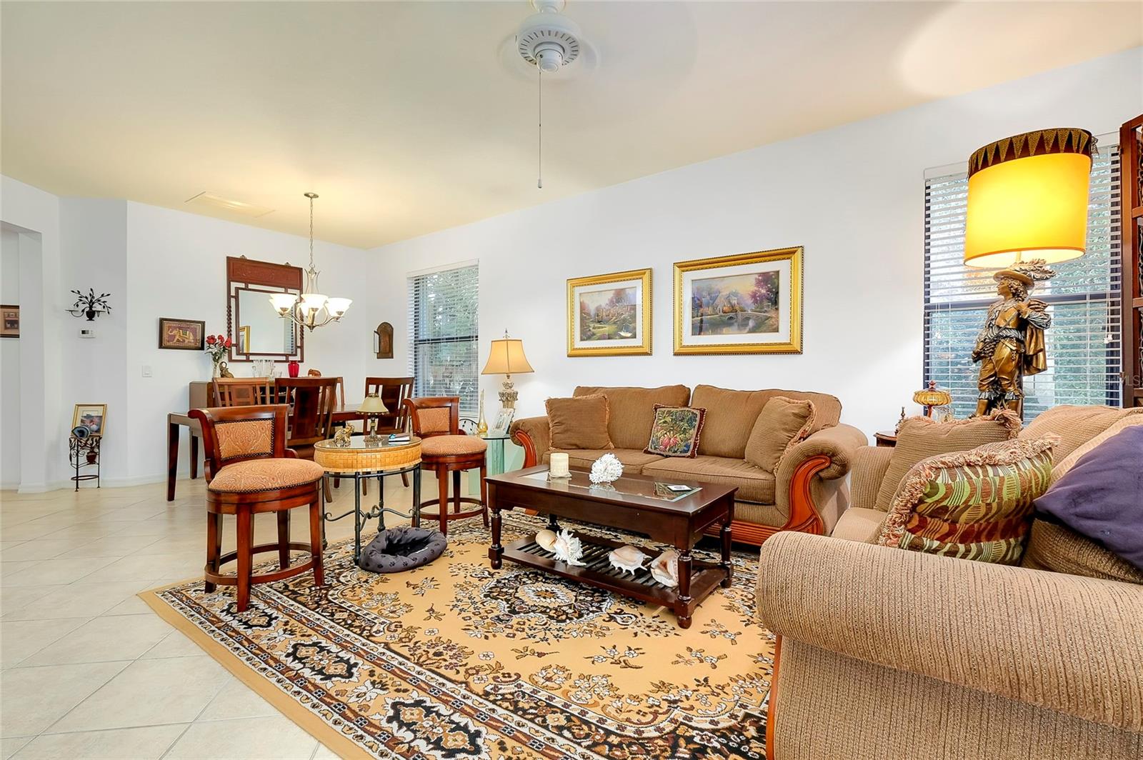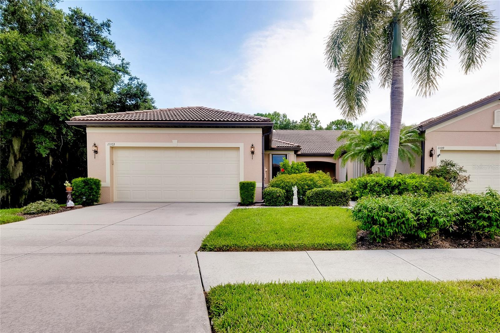 CHARMING VILLA IN VENETIAN FALLS! A VERY UNIQUE SETTING WITH PRESERVE TO THE SIDE AND BACK OF HOME! Welcome to your dream residence in the highly esteemed 55+ community of Venetian Falls in beautiful Venice, Florida. This 2 bedroom + DEN, 2 bathroom, 2 car garage villa provides the ideal blend of comfort and functionality with a thoughtful split bedroom floor plan. Step into the center of the home, where the kitchen has recessed lighting, ample cabinetry, a breakfast bar, and a cozy dinette seating area perfect for a morning meal. The dining room flows seamlessly into the family room, creating an open and inviting space for entertaining. Large sliding doors lead to the outdoor lanai, filling the family room in natural light and presenting a delightful view of native Florida preserve. The primary bedroom, located at the back of the home for added privacy, features a walk-in closet, additional regular closet, and en suite bathroom. The en suite is well-equipped with dual sinks, a large walk-in shower, and a linen closet. The second bedroom, situated on the opposite side of the home, also relishes its own private space with a built-in closet and a full bathroom with a shower/tub combo across the hall. Enjoy the veracious Florida lifestyle on the sizable screened lanai, great for relaxing and taking in the appealing natural preserve. Additional home highlights include a well-maintained curb appeal, inside laundry room, hurricane shutters, utility sink in the garage, and the advantage of being an end unit. Venetian Falls offers residents an array of amenities including a clubhouse, resort-style pool, fitness center, walking and biking trails, meeting rooms, golf practice facilities, and stunning scenic lakes and ponds. This community is also conveniently positioned in close proximity to shopping, restaurants, schools, parks, other golf courses, a hospital, I-75, Historic Downtown Venice, and pristine Gulf beaches. Don’t miss the opportunity to make this remarkable villa your new home!