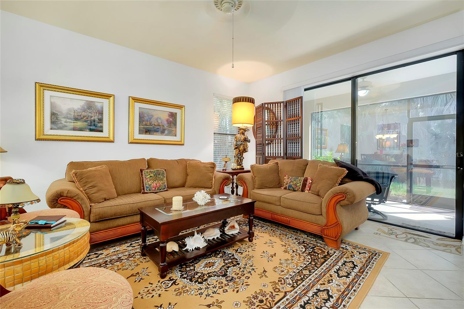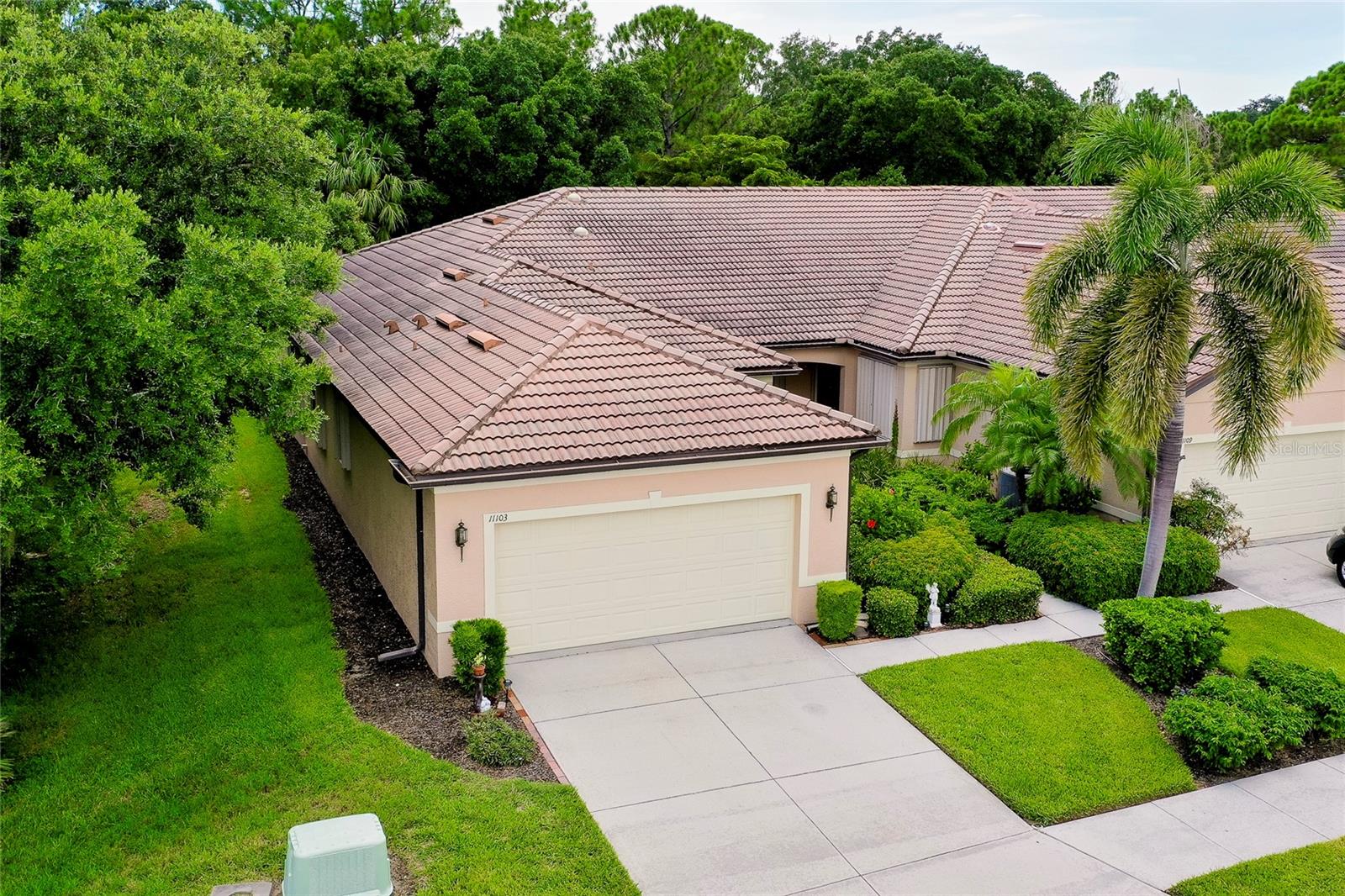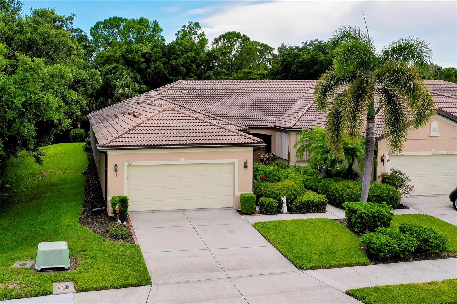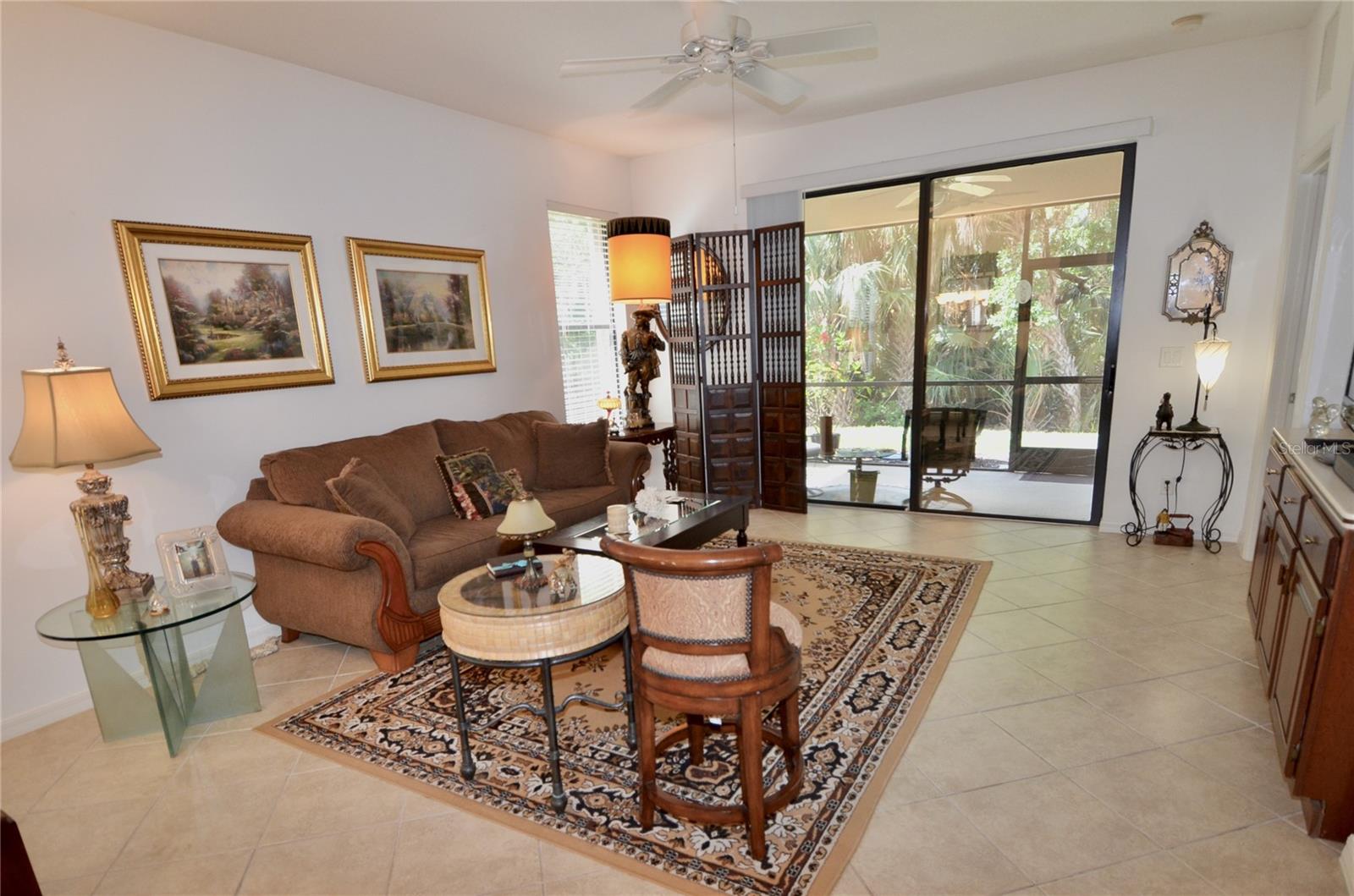 CHARMING VILLA IN VENETIAN FALLS! A VERY UNIQUE SETTING WITH PRESERVE TO THE SIDE AND BACK OF HOME! Welcome to your dream residence in the highly esteemed 55+ community of Venetian Falls in beautiful Venice, Florida. This 2 bedroom + DEN, 2 bathroom, 2 car garage villa provides the ideal blend of comfort and functionality with a thoughtful split bedroom floor plan. Step into the center of the home, where the kitchen has recessed lighting, ample cabinetry, a breakfast bar, and a cozy dinette seating area perfect for a morning meal. The dining room flows seamlessly into the family room, creating an open and inviting space for entertaining. Large sliding doors lead to the outdoor lanai, filling the family room in natural light and presenting a delightful view of native Florida preserve. The primary bedroom, located at the back of the home for added privacy, features a walk-in closet, additional regular closet, and en suite bathroom. The en suite is well-equipped with dual sinks, a large walk-in shower, and a linen closet. The second bedroom, situated on the opposite side of the home, also relishes its own private space with a built-in closet and a full bathroom with a shower/tub combo across the hall. Enjoy the veracious Florida lifestyle on the sizable screened lanai, great for relaxing and taking in the appealing natural preserve. Additional home highlights include a well-maintained curb appeal, inside laundry room, hurricane shutters, utility sink in the garage, and the advantage of being an end unit. Venetian Falls offers residents an array of amenities including a clubhouse, resort-style pool, fitness center, walking and biking trails, meeting rooms, golf practice facilities, and stunning scenic lakes and ponds. This community is also conveniently positioned in close proximity to shopping, restaurants, schools, parks, other golf courses, a hospital, I-75, Historic Downtown Venice, and pristine Gulf beaches. Don’t miss the opportunity to make this remarkable villa your new home!