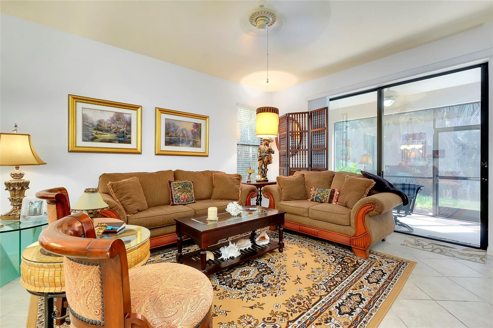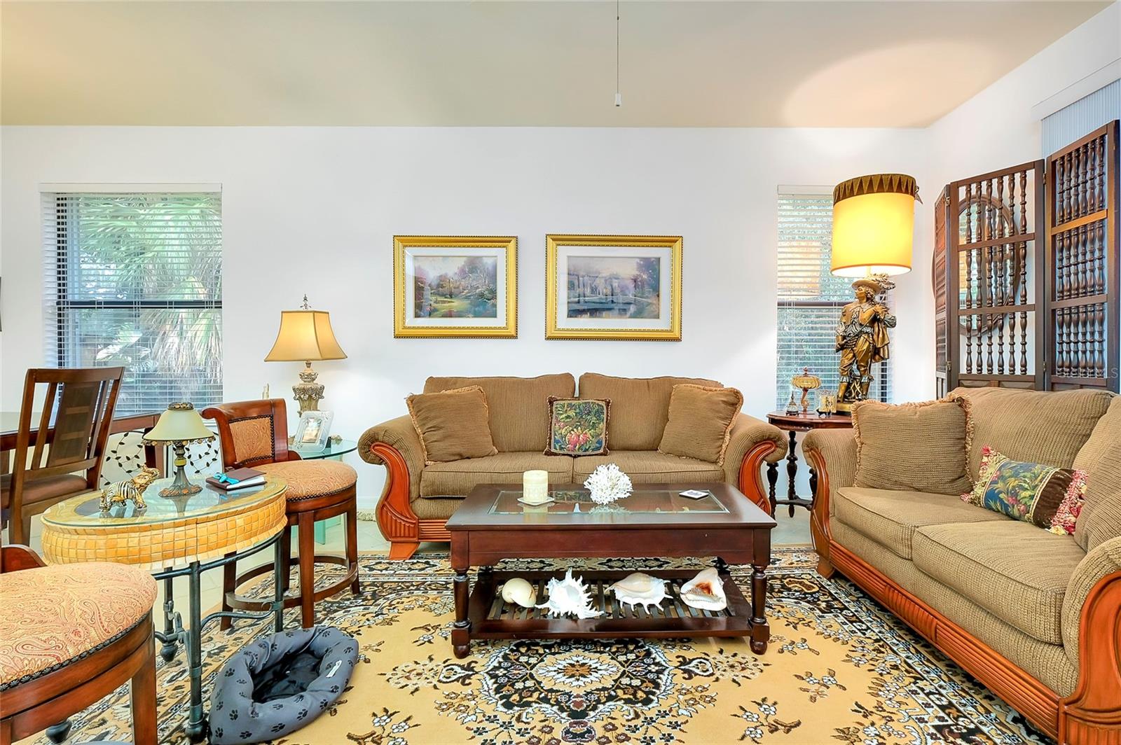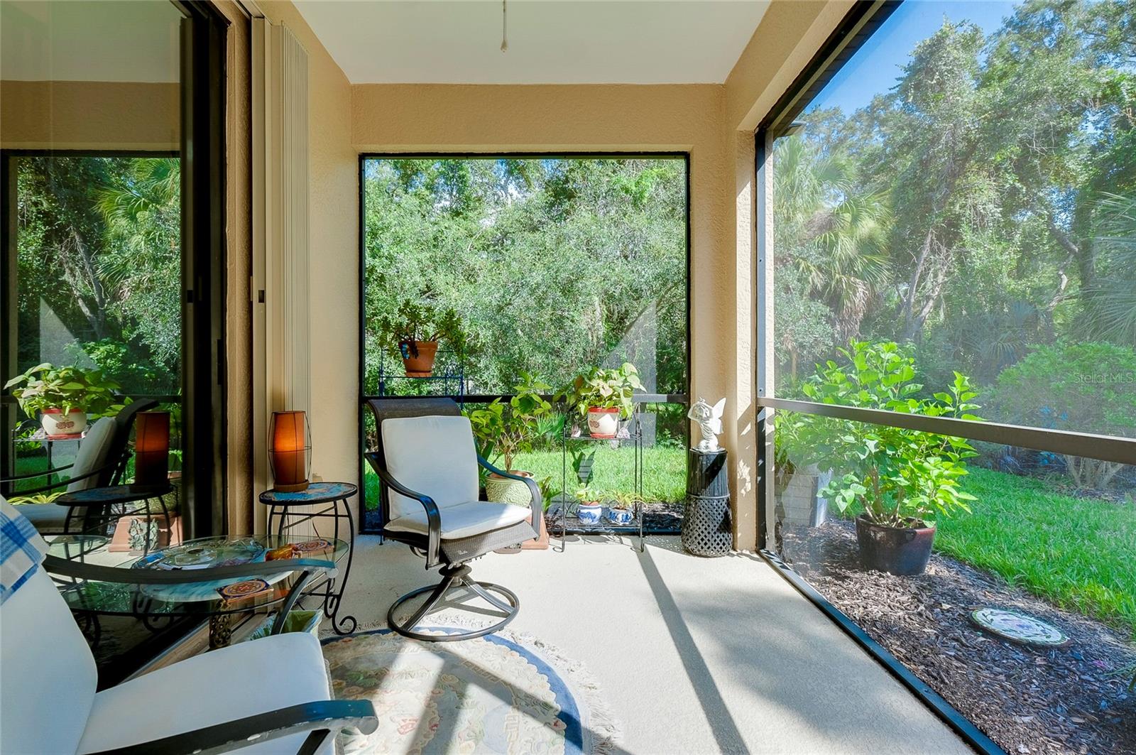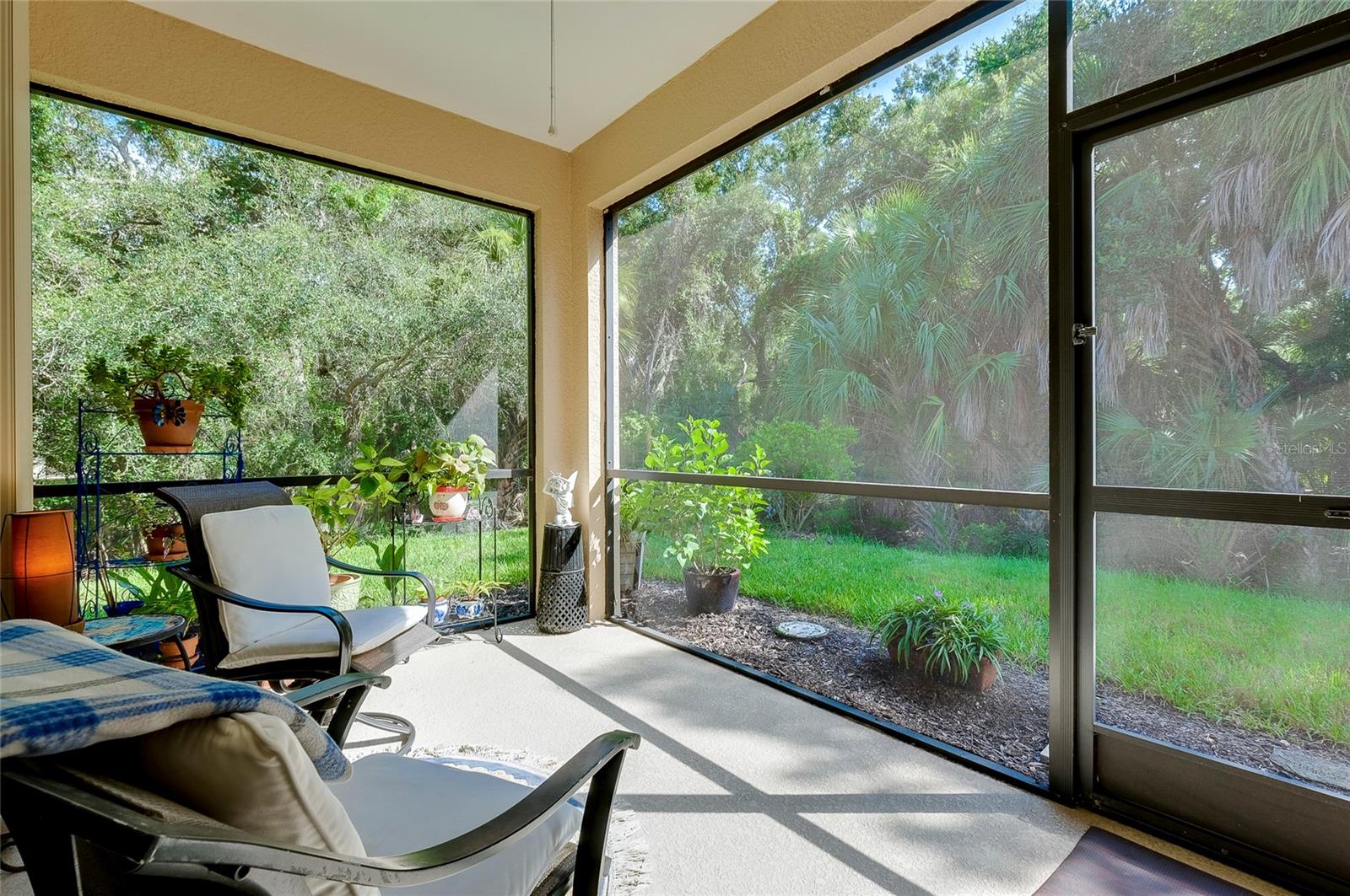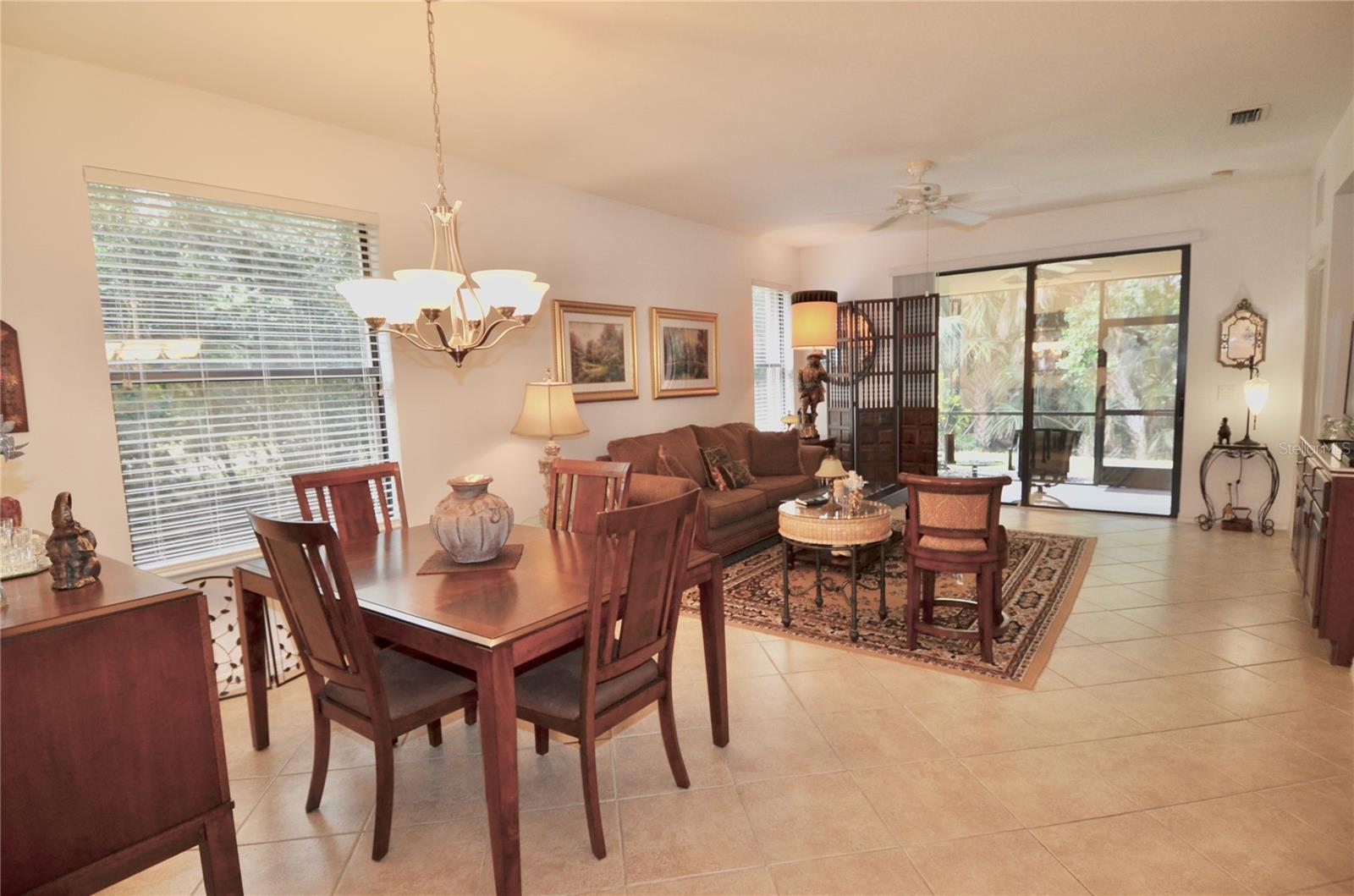 CHARMING VILLA IN VENETIAN FALLS! A VERY UNIQUE SETTING WITH PRESERVE TO THE SIDE AND BACK OF HOME! Welcome to your dream residence in the highly esteemed 55+ community of Venetian Falls in beautiful Venice, Florida. This 2 bedroom + DEN, 2 bathroom, 2 car garage villa provides the ideal blend of comfort and functionality with a thoughtful split bedroom floor plan. Step into the center of the home, where the kitchen has recessed lighting, ample cabinetry, a breakfast bar, and a cozy dinette seating area perfect for a morning meal. The dining room flows seamlessly into the family room, creating an open and inviting space for entertaining. Large sliding doors lead to the outdoor lanai, filling the family room in natural light and presenting a delightful view of native Florida preserve. The primary bedroom, located at the back of the home for added privacy, features a walk-in closet, additional regular closet, and en suite bathroom. The en suite is well-equipped with dual sinks, a large walk-in shower, and a linen closet. The second bedroom, situated on the opposite side of the home, also relishes its own private space with a built-in closet and a full bathroom with a shower/tub combo across the hall. Enjoy the veracious Florida lifestyle on the sizable screened lanai, great for relaxing and taking in the appealing natural preserve. Additional home highlights include a well-maintained curb appeal, inside laundry room, hurricane shutters, utility sink in the garage, and the advantage of being an end unit. Venetian Falls offers residents an array of amenities including a clubhouse, resort-style pool, fitness center, walking and biking trails, meeting rooms, golf practice facilities, and stunning scenic lakes and ponds. This community is also conveniently positioned in close proximity to shopping, restaurants, schools, parks, other golf courses, a hospital, I-75, Historic Downtown Venice, and pristine Gulf beaches. Don’t miss the opportunity to make this remarkable villa your new home!