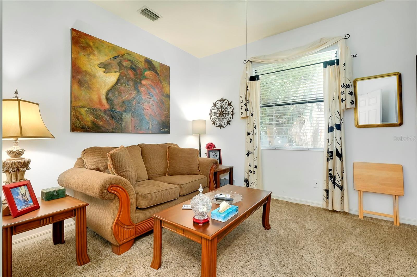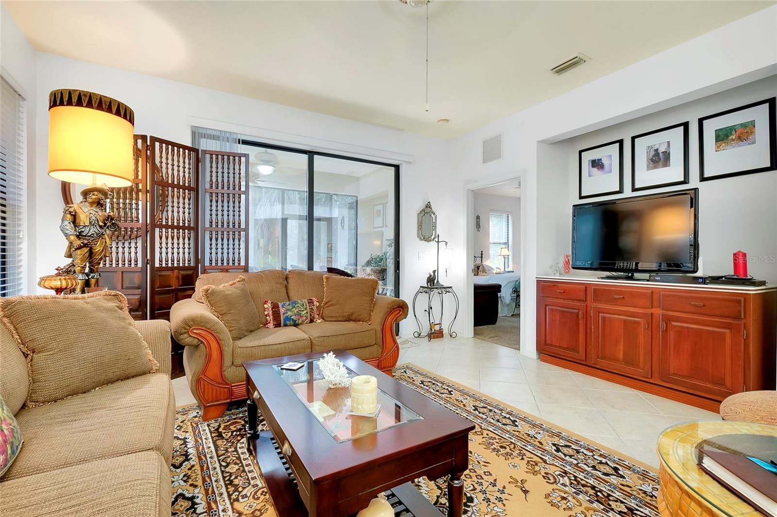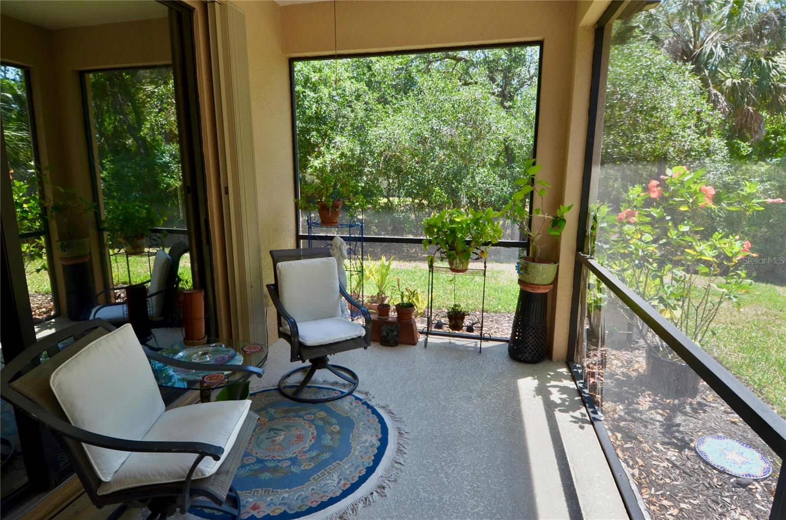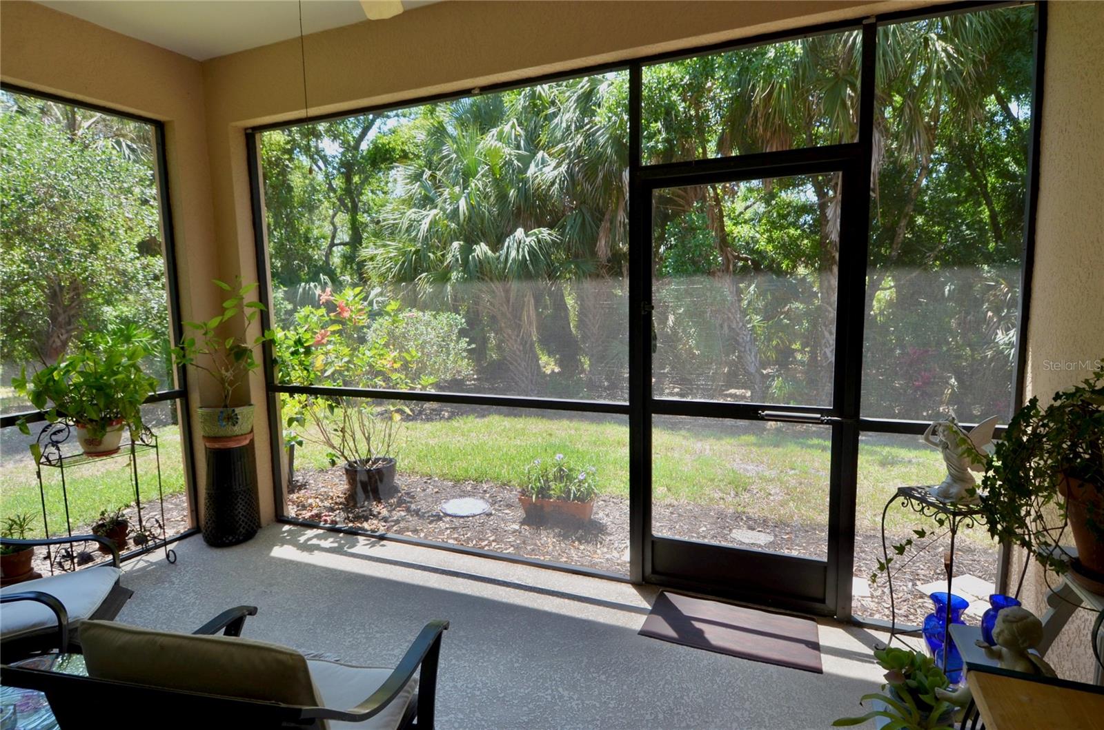 CHARMING VILLA IN VENETIAN FALLS! A VERY UNIQUE SETTING WITH PRESERVE TO THE SIDE AND BACK OF HOME! Welcome to your dream residence in the highly esteemed 55+ community of Venetian Falls in beautiful Venice, Florida. This 2 bedroom + DEN, 2 bathroom, 2 car garage villa provides the ideal blend of comfort and functionality with a thoughtful split bedroom floor plan. Step into the center of the home, where the kitchen has recessed lighting, ample cabinetry, a breakfast bar, and a cozy dinette seating area perfect for a morning meal. The dining room flows seamlessly into the family room, creating an open and inviting space for entertaining. Large sliding doors lead to the outdoor lanai, filling the family room in natural light and presenting a delightful view of native Florida preserve. The primary bedroom, located at the back of the home for added privacy, features a walk-in closet, additional regular closet, and en suite bathroom. The en suite is well-equipped with dual sinks, a large walk-in shower, and a linen closet. The second bedroom, situated on the opposite side of the home, also relishes its own private space with a built-in closet and a full bathroom with a shower/tub combo across the hall. Enjoy the veracious Florida lifestyle on the sizable screened lanai, great for relaxing and taking in the appealing natural preserve. Additional home highlights include a well-maintained curb appeal, inside laundry room, hurricane shutters, utility sink in the garage, and the advantage of being an end unit. Venetian Falls offers residents an array of amenities including a clubhouse, resort-style pool, fitness center, walking and biking trails, meeting rooms, golf practice facilities, and stunning scenic lakes and ponds. This community is also conveniently positioned in close proximity to shopping, restaurants, schools, parks, other golf courses, a hospital, I-75, Historic Downtown Venice, and pristine Gulf beaches. Don’t miss the opportunity to make this remarkable villa your new home!