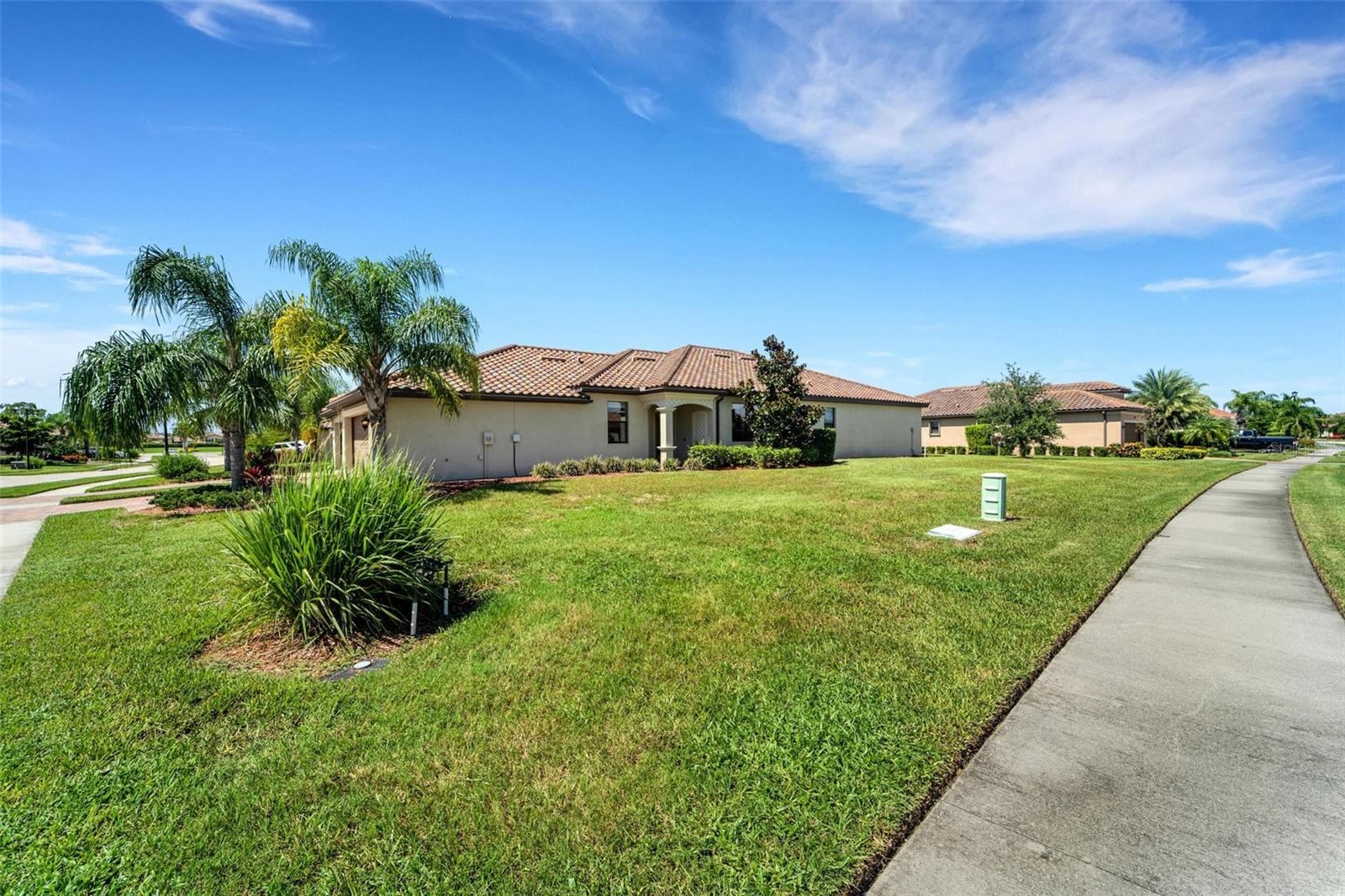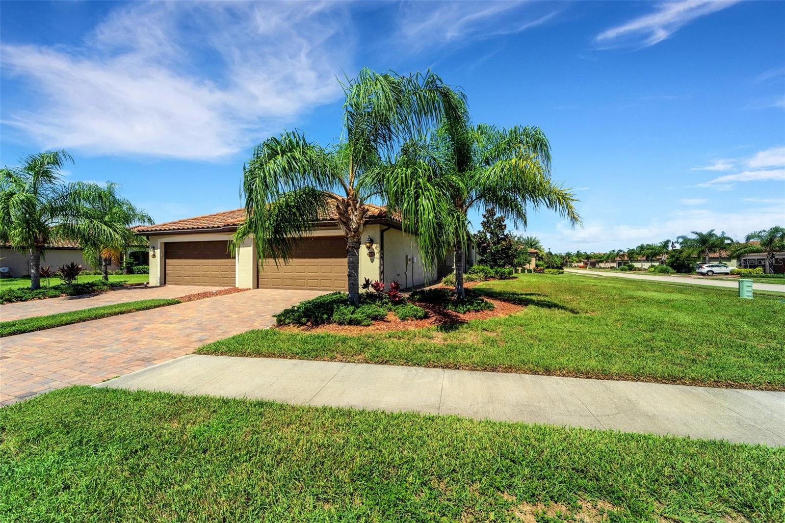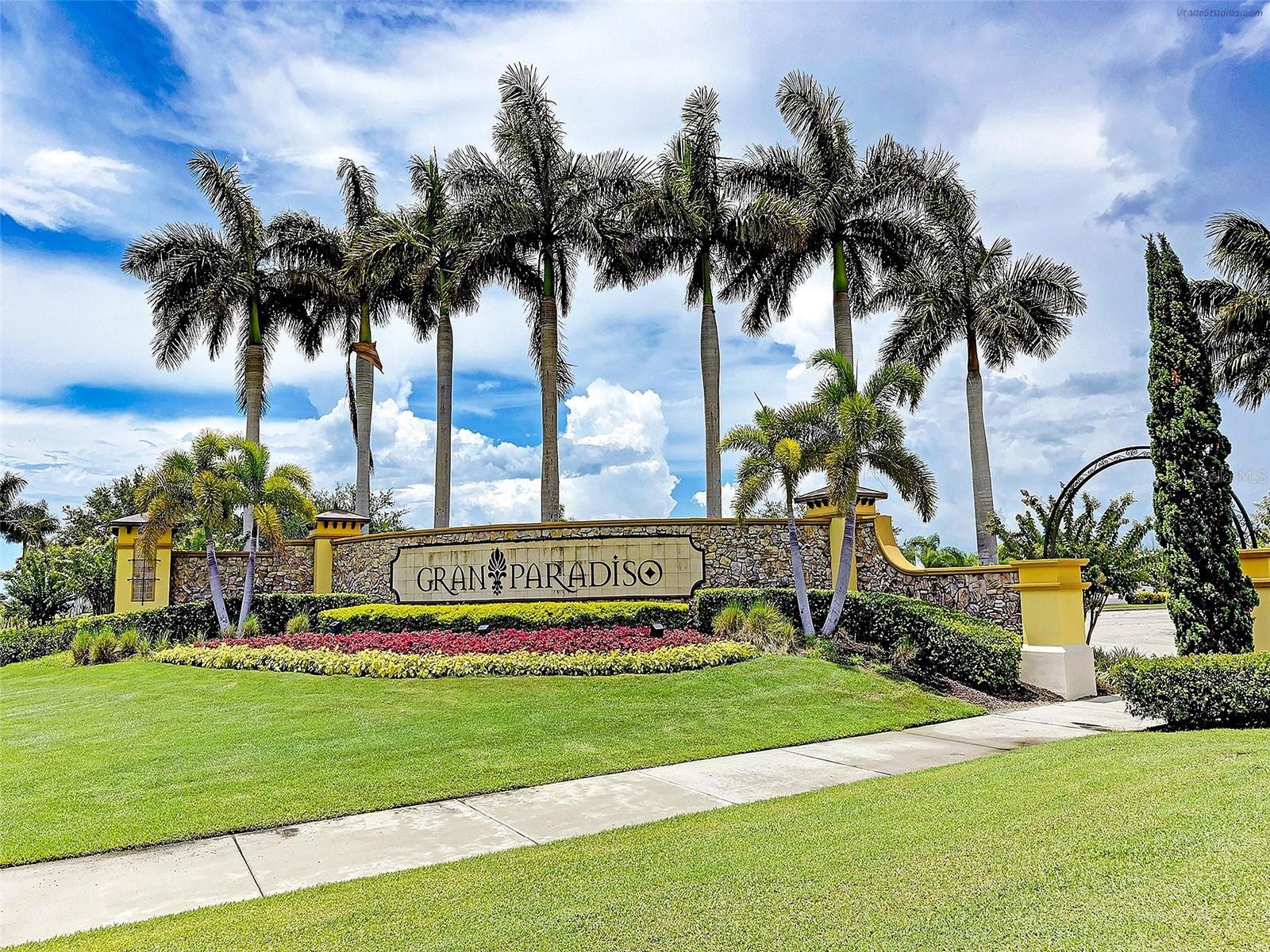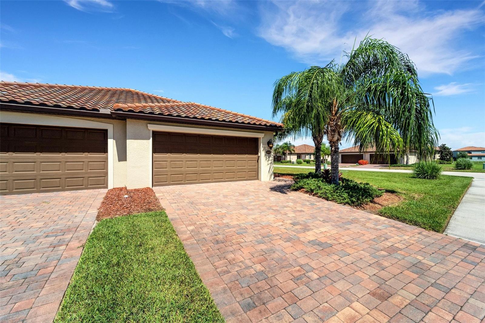 Immerse yourself in the elegance of this meticulously maintained villa in Gran Paradiso, a premier gated community in Wellen Park. This stunning 2-bedroom plus den, 2-bath residence sits on an oversized corner lot, offering a tranquil retreat with every modern comfort. Step inside to discover detailed trim work throughout, exquisite custom ceiling and wall details, and updated fixtures. The open floor plan features high ceilings, crown molding, ceramic tile flooring, and plush carpeting in the bedrooms. The bonus den/office, accessed via French doors, provides a quiet space for work or relaxation. The updated kitchen is a chef's delight with granite counters, stainless steel appliances, ample cabinetry, and a convenient breakfast bar. The main bedroom suite boasts an ensuite bathroom with double sinks, a garden tub, and a spacious walk-in closet. Outside, the landscaped grounds are meticulously maintained with an irrigation system. Enjoy the screened entryway and an extended covered lanai, perfect for savoring morning coffee or evening sunsets. Gran Paradiso offers an exceptional lifestyle with its largest resort-style pool in the area, a state-of-the-art fitness room, tennis and pickleball courts, and a playground. Miles of sidewalks wind through the community, ideal for leisurely strolls or bike rides. Conveniently located near upcoming amenities including a new hospital and Costco, Gran Paradiso ensures easy access to essentials and entertainment. Within Wellen Park, explore diverse dining options, charming shops, and a picturesque lake, all contributing to the community's allure. Escape to Gran Paradiso, where luxury meets tranquility. Contact us today for your private tour of this extraordinary villa. This home is currently rented until October 31, 2025.