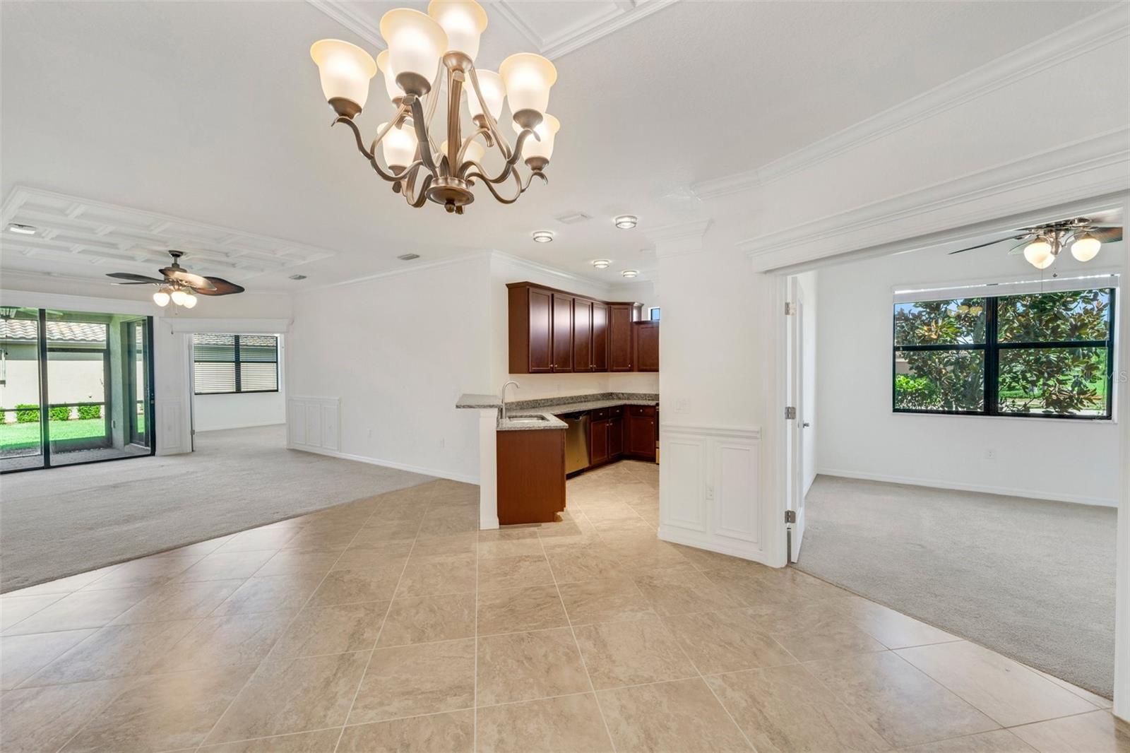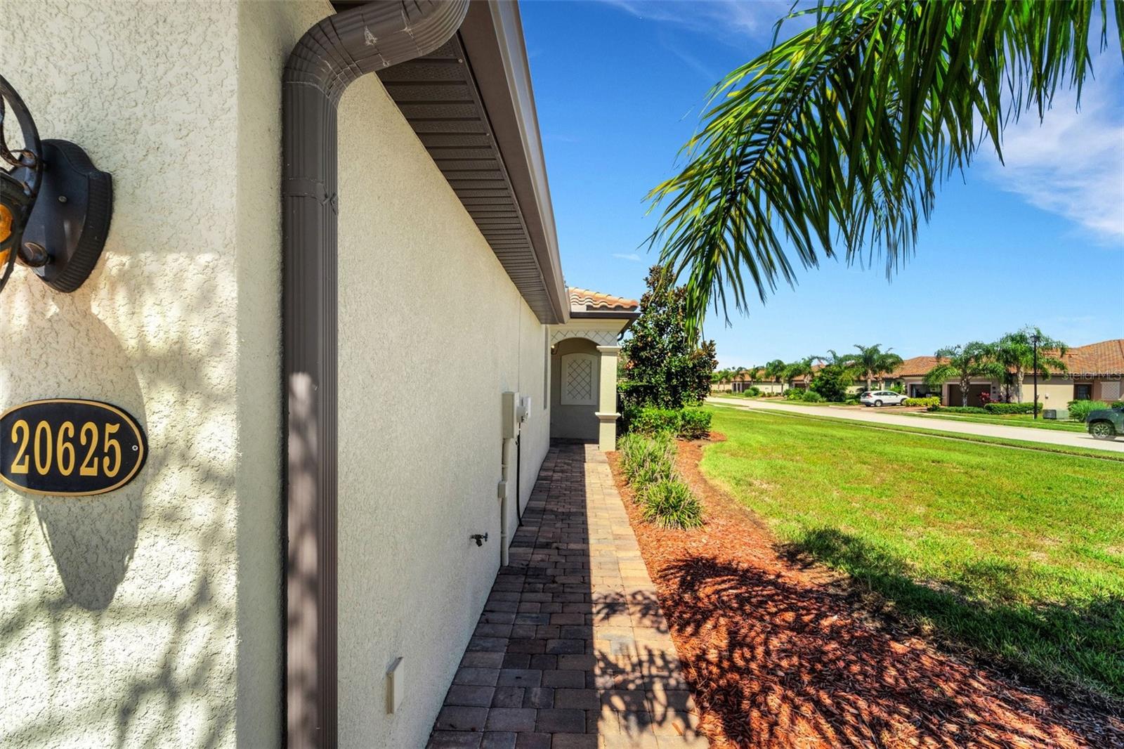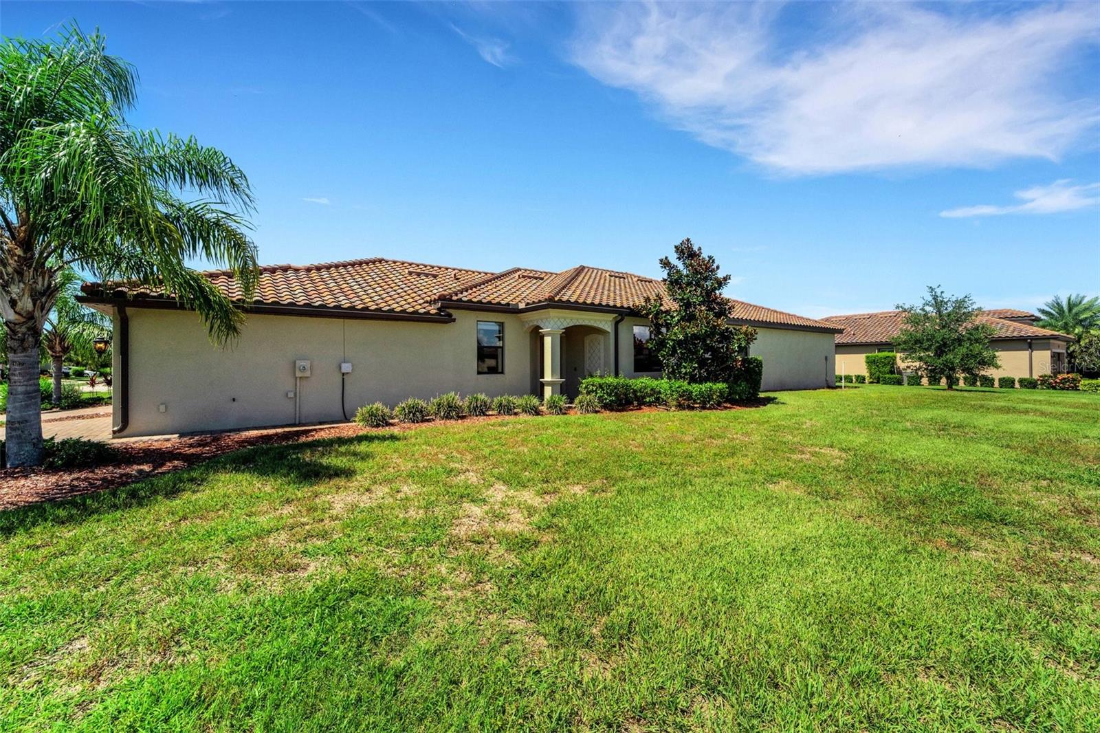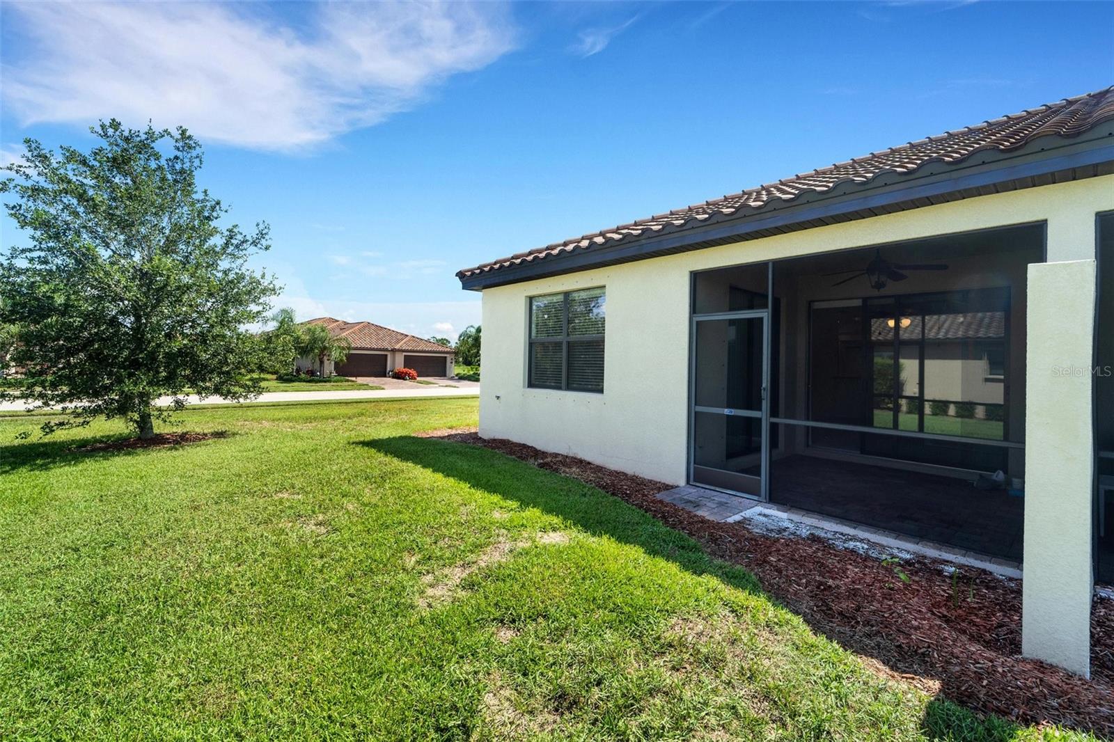 Immerse yourself in the elegance of this meticulously maintained villa in Gran Paradiso, a premier gated community in Wellen Park. This stunning 2-bedroom plus den, 2-bath residence sits on an oversized corner lot, offering a tranquil retreat with every modern comfort. Step inside to discover detailed trim work throughout, exquisite custom ceiling and wall details, and updated fixtures. The open floor plan features high ceilings, crown molding, ceramic tile flooring, and plush carpeting in the bedrooms. The bonus den/office, accessed via French doors, provides a quiet space for work or relaxation. The updated kitchen is a chef's delight with granite counters, stainless steel appliances, ample cabinetry, and a convenient breakfast bar. The main bedroom suite boasts an ensuite bathroom with double sinks, a garden tub, and a spacious walk-in closet. Outside, the landscaped grounds are meticulously maintained with an irrigation system. Enjoy the screened entryway and an extended covered lanai, perfect for savoring morning coffee or evening sunsets. Gran Paradiso offers an exceptional lifestyle with its largest resort-style pool in the area, a state-of-the-art fitness room, tennis and pickleball courts, and a playground. Miles of sidewalks wind through the community, ideal for leisurely strolls or bike rides. Conveniently located near upcoming amenities including a new hospital and Costco, Gran Paradiso ensures easy access to essentials and entertainment. Within Wellen Park, explore diverse dining options, charming shops, and a picturesque lake, all contributing to the community's allure. Escape to Gran Paradiso, where luxury meets tranquility. Contact us today for your private tour of this extraordinary villa. This home is currently rented until October 31, 2025.