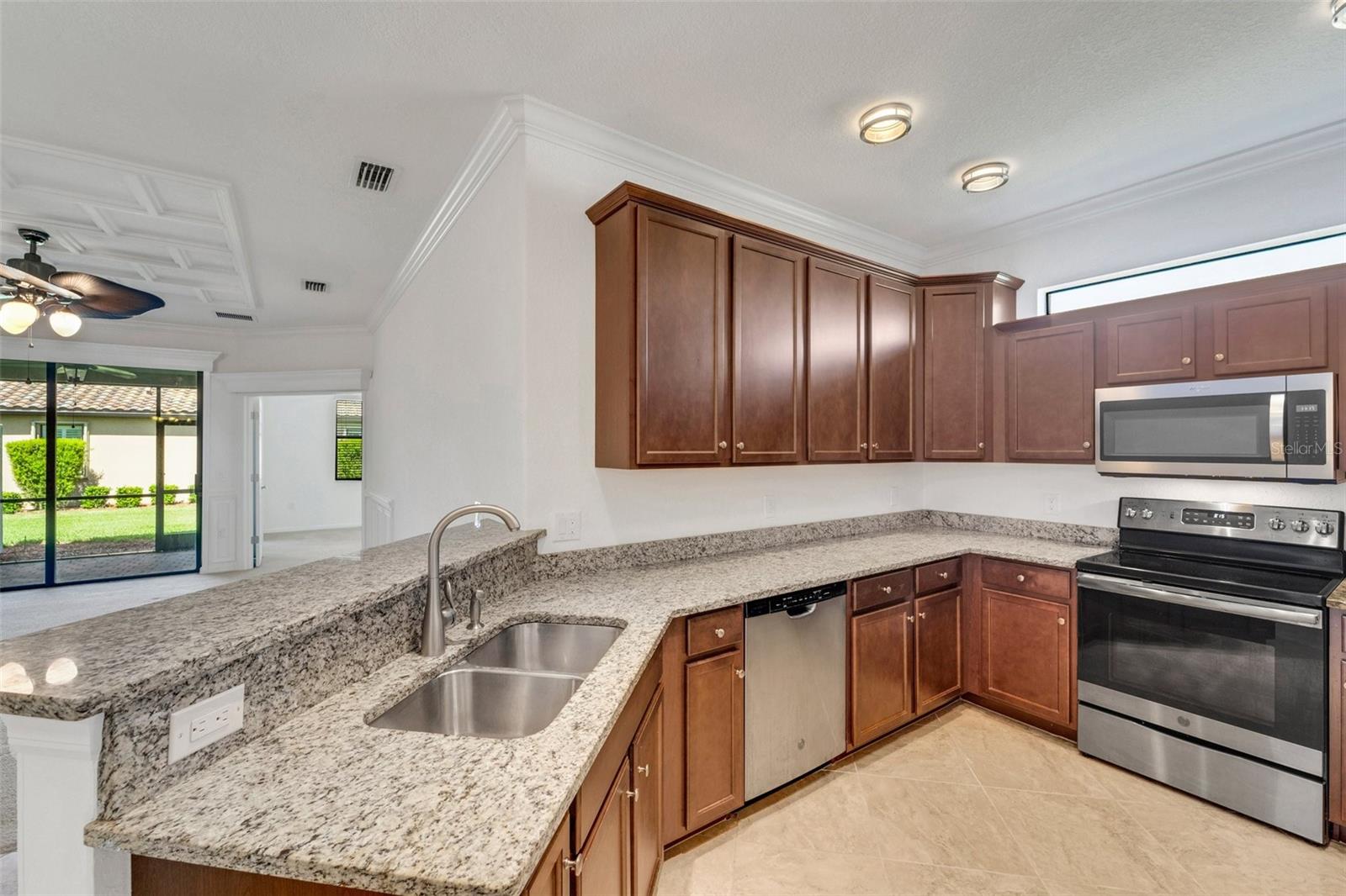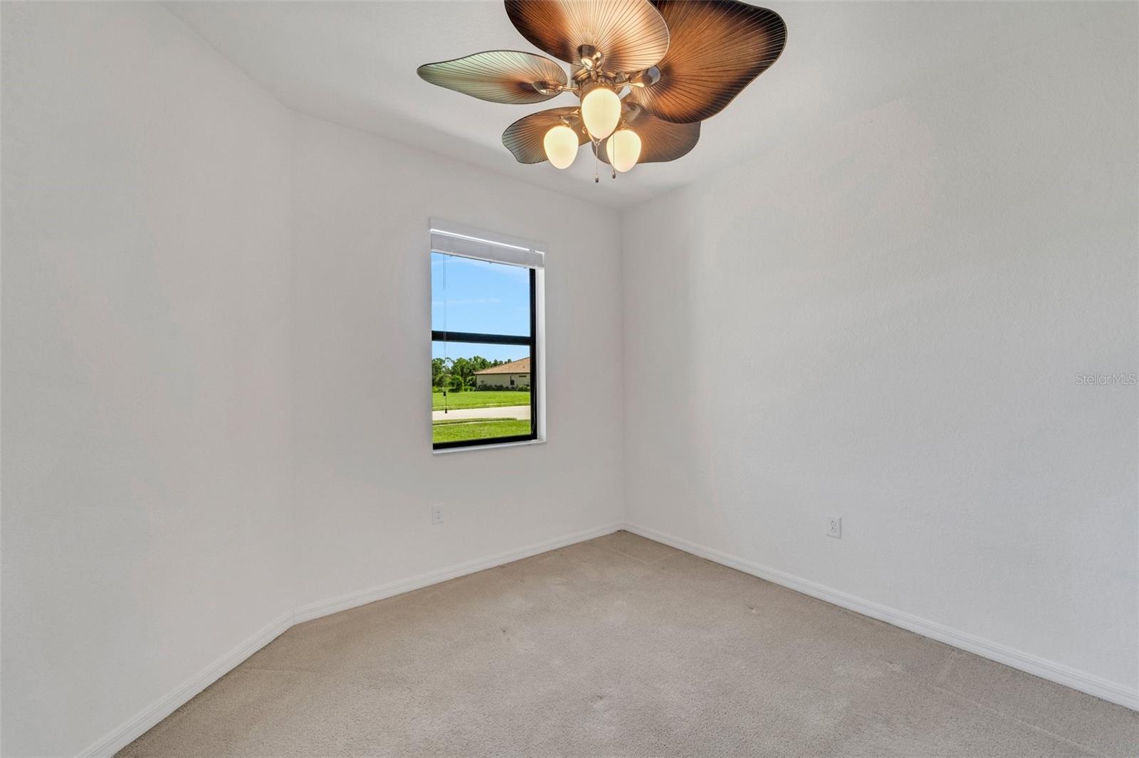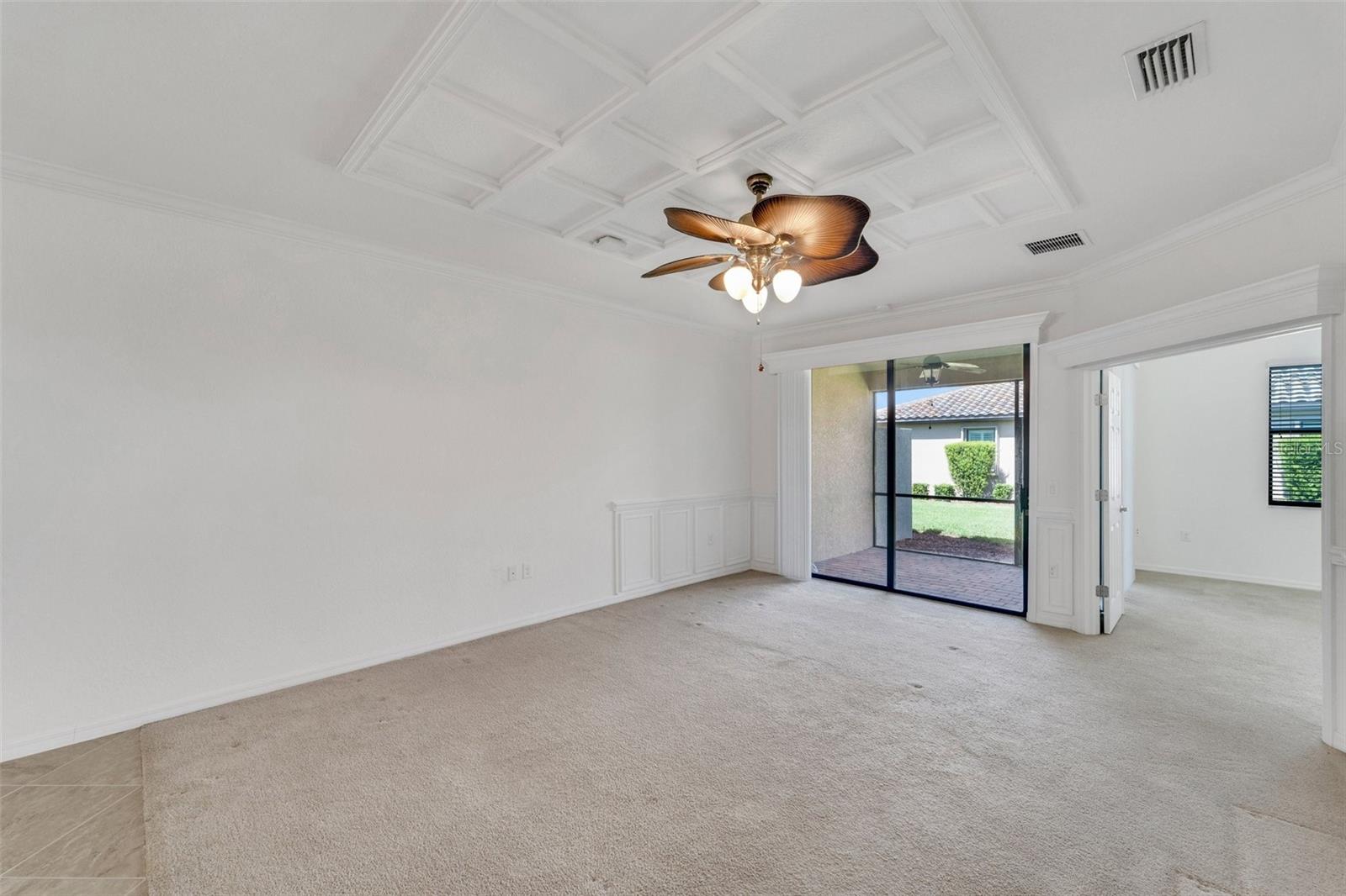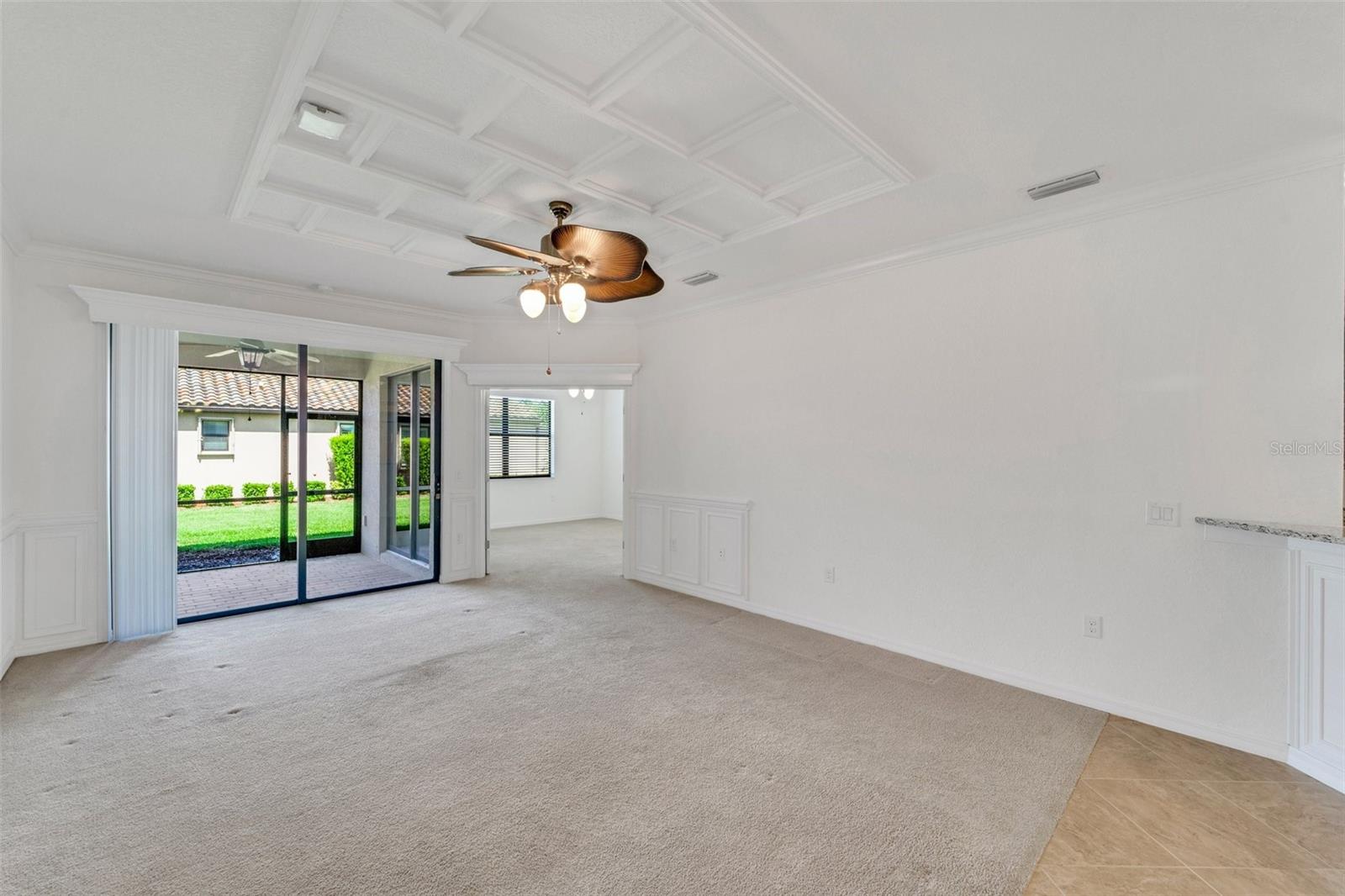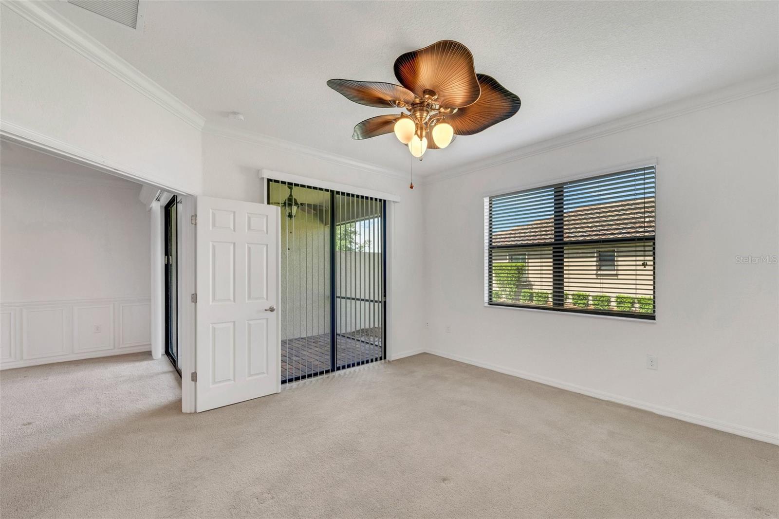 Immerse yourself in the elegance of this meticulously maintained villa in Gran Paradiso, a premier gated community in Wellen Park. This stunning 2-bedroom plus den, 2-bath residence sits on an oversized corner lot, offering a tranquil retreat with every modern comfort. Step inside to discover detailed trim work throughout, exquisite custom ceiling and wall details, and updated fixtures. The open floor plan features high ceilings, crown molding, ceramic tile flooring, and plush carpeting in the bedrooms. The bonus den/office, accessed via French doors, provides a quiet space for work or relaxation. The updated kitchen is a chef's delight with granite counters, stainless steel appliances, ample cabinetry, and a convenient breakfast bar. The main bedroom suite boasts an ensuite bathroom with double sinks, a garden tub, and a spacious walk-in closet. Outside, the landscaped grounds are meticulously maintained with an irrigation system. Enjoy the screened entryway and an extended covered lanai, perfect for savoring morning coffee or evening sunsets. Gran Paradiso offers an exceptional lifestyle with its largest resort-style pool in the area, a state-of-the-art fitness room, tennis and pickleball courts, and a playground. Miles of sidewalks wind through the community, ideal for leisurely strolls or bike rides. Conveniently located near upcoming amenities including a new hospital and Costco, Gran Paradiso ensures easy access to essentials and entertainment. Within Wellen Park, explore diverse dining options, charming shops, and a picturesque lake, all contributing to the community's allure. Escape to Gran Paradiso, where luxury meets tranquility. Contact us today for your private tour of this extraordinary villa. This home is currently rented until October 31, 2025.