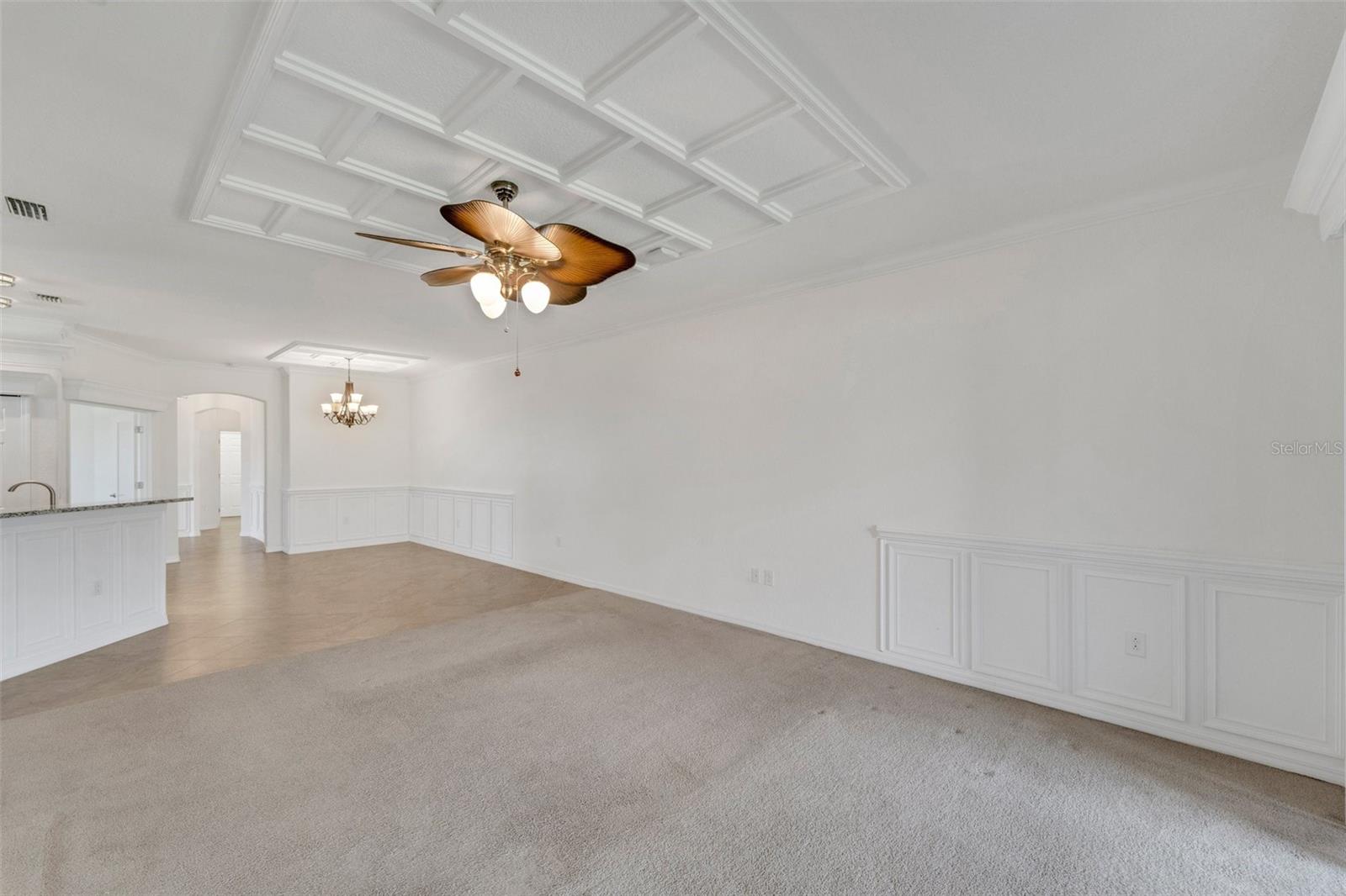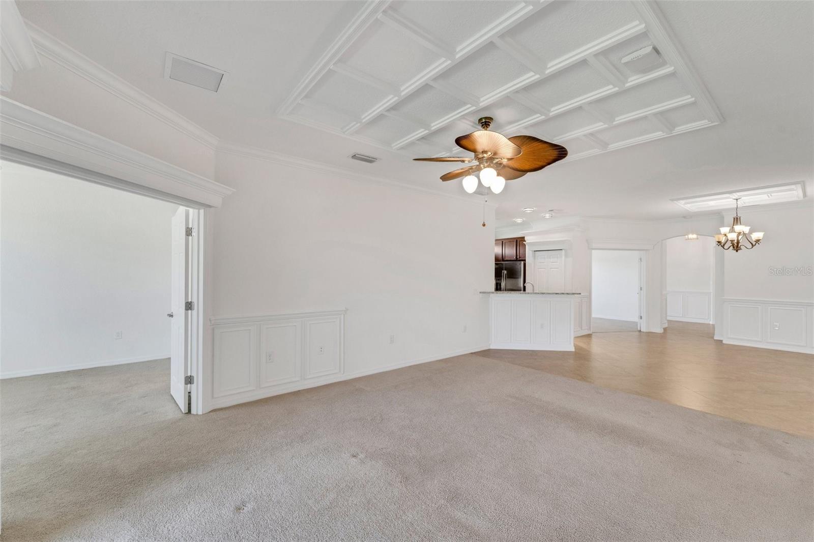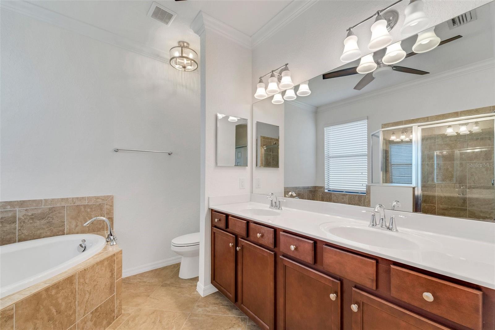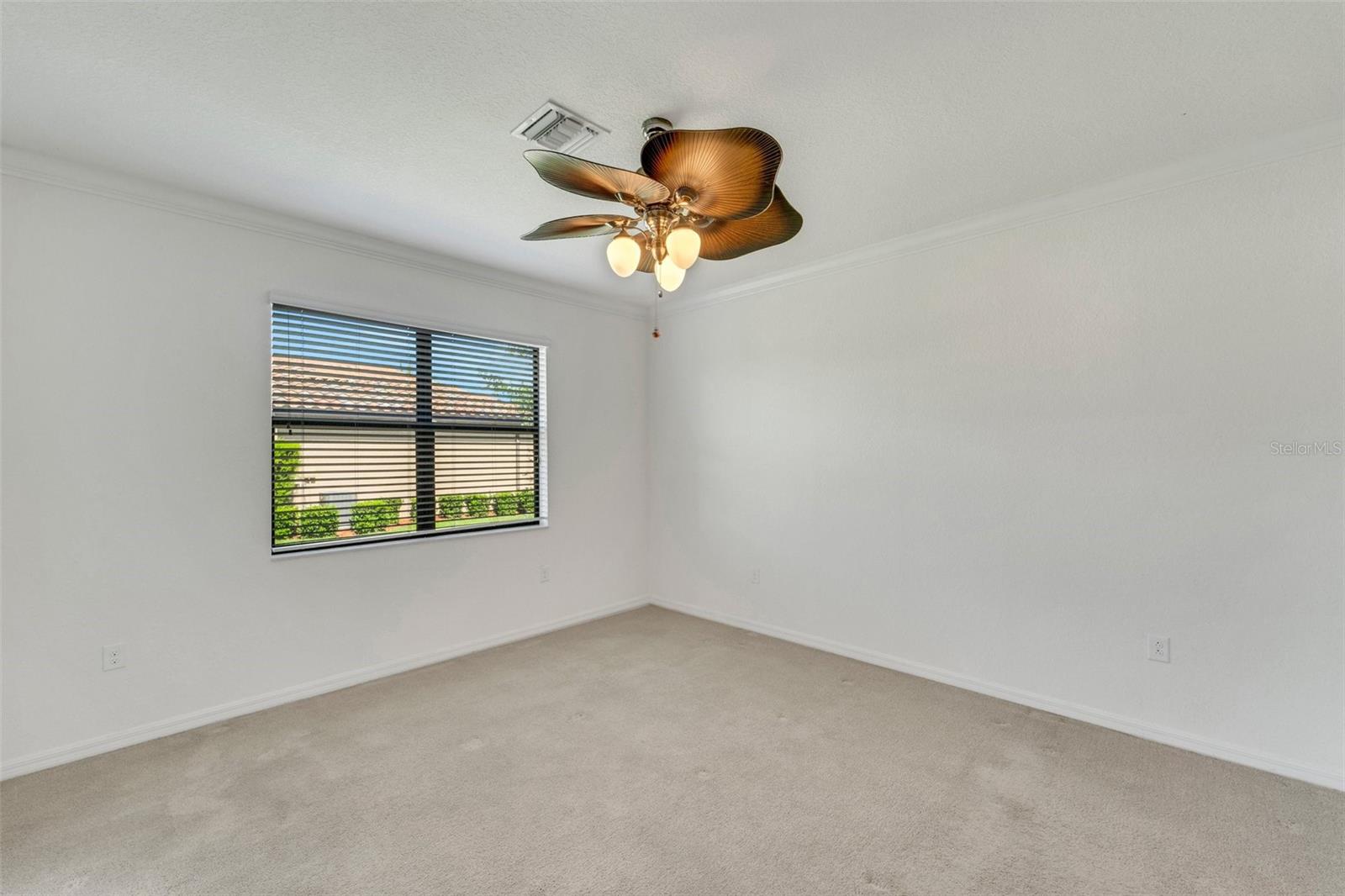Immerse yourself in the elegance of this meticulously maintained villa in Gran Paradiso, a premier gated community in Wellen Park. This stunning 2-bedroom plus den, 2-bath residence sits on an oversized corner lot, offering a tranquil retreat with every modern comfort. Step inside to discover detailed trim work throughout, exquisite custom ceiling and wall details, and updated fixtures. The open floor plan features high ceilings, crown molding, ceramic tile flooring, and plush carpeting in the bedrooms. The bonus den/office, accessed via French doors, provides a quiet space for work or relaxation. The updated kitchen is a chef's delight with granite counters, stainless steel appliances, ample cabinetry, and a convenient breakfast bar. The main bedroom suite boasts an ensuite bathroom with double sinks, a garden tub, and a spacious walk-in closet. Outside, the landscaped grounds are meticulously maintained with an irrigation system. Enjoy the screened entryway and an extended covered lanai, perfect for savoring morning coffee or evening sunsets. Gran Paradiso offers an exceptional lifestyle with its largest resort-style pool in the area, a state-of-the-art fitness room, tennis and pickleball courts, and a playground. Miles of sidewalks wind through the community, ideal for leisurely strolls or bike rides. Conveniently located near upcoming amenities including a new hospital and Costco, Gran Paradiso ensures easy access to essentials and entertainment. Within Wellen Park, explore diverse dining options, charming shops, and a picturesque lake, all contributing to the community's allure. Escape to Gran Paradiso, where luxury meets tranquility. Contact us today for your private tour of this extraordinary villa. This home is currently rented until October 31, 2025.