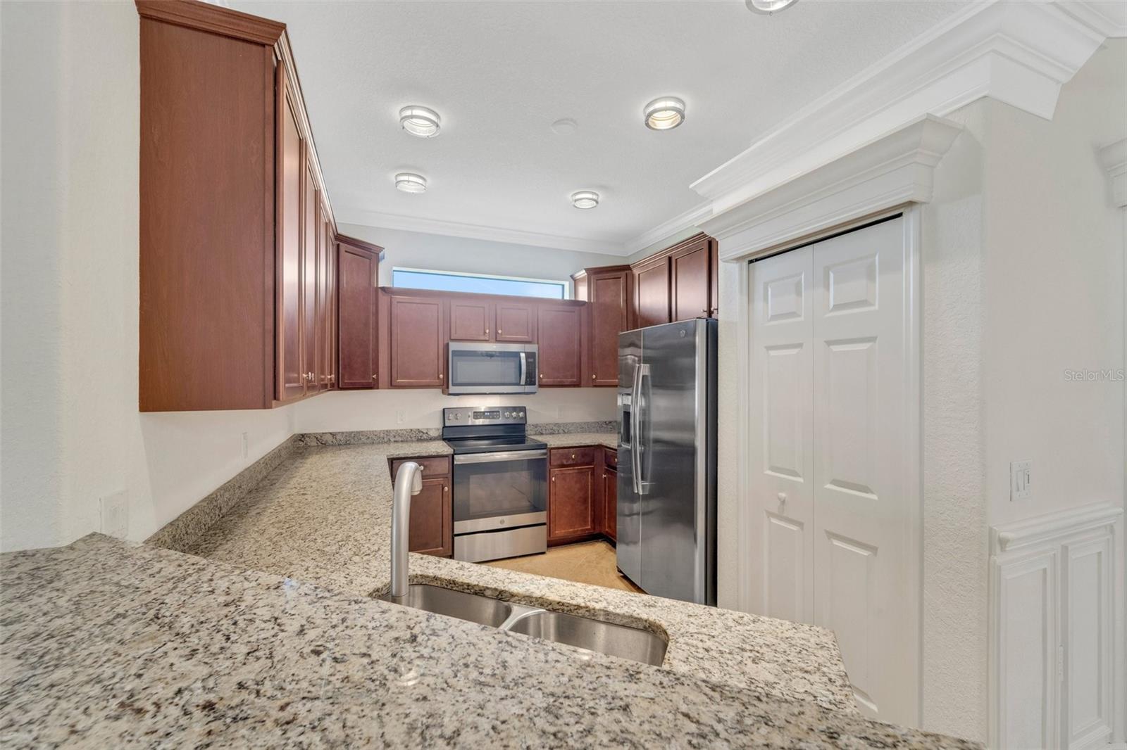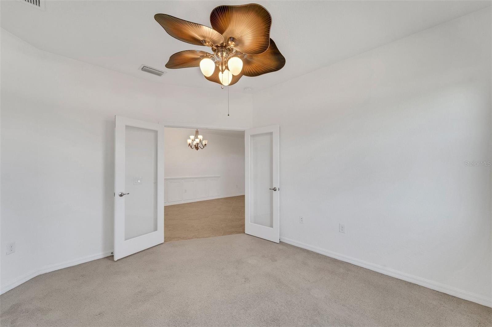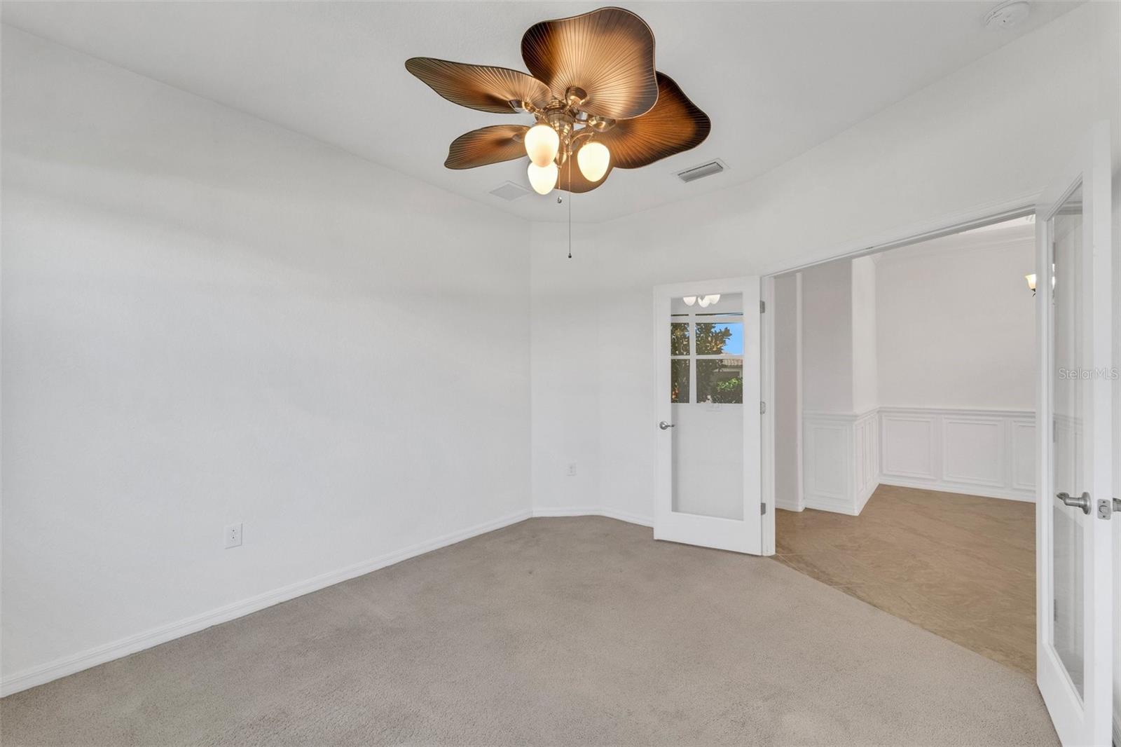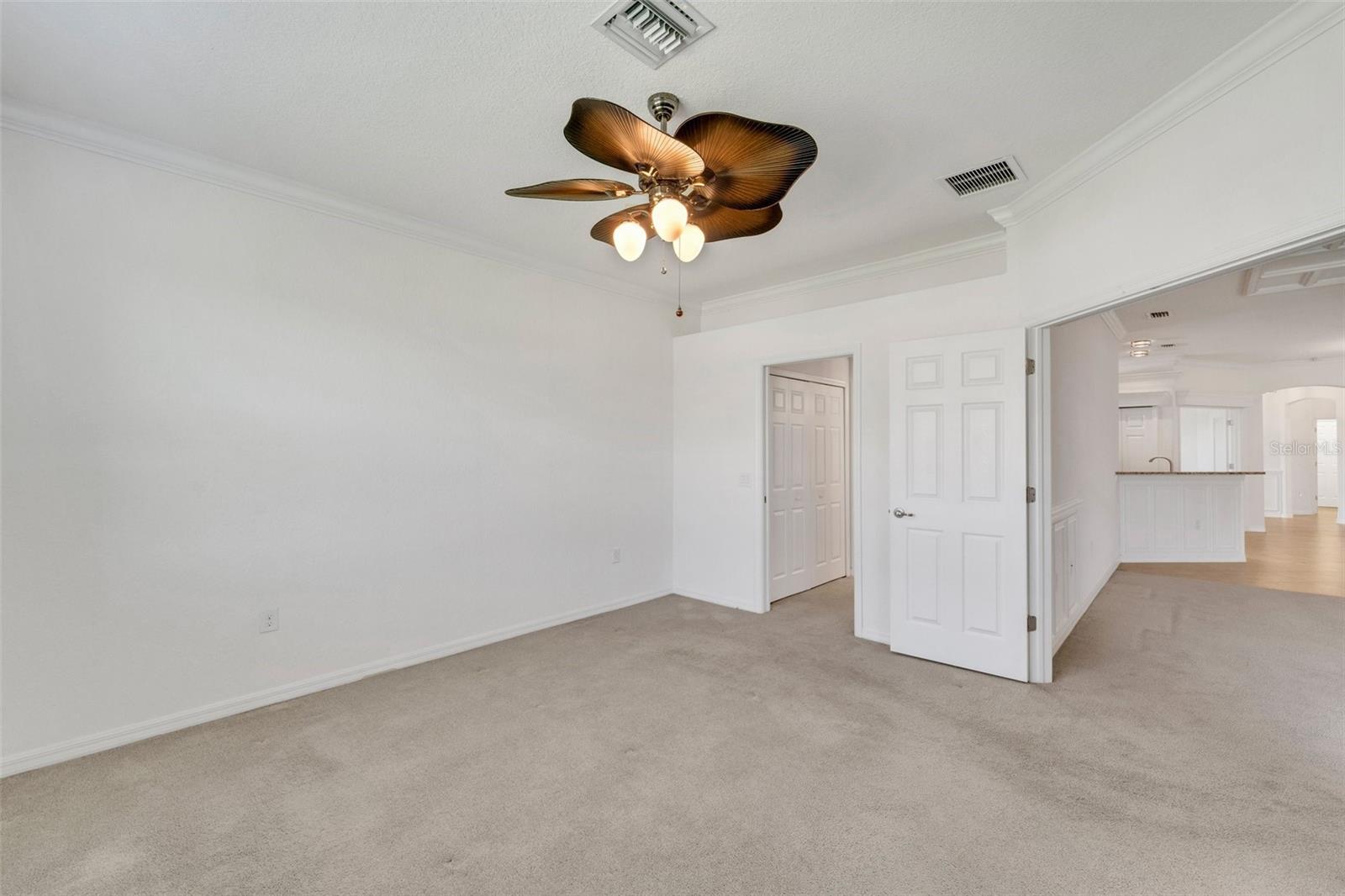 Immerse yourself in the elegance of this meticulously maintained villa in Gran Paradiso, a premier gated community in Wellen Park. This stunning 2-bedroom plus den, 2-bath residence sits on an oversized corner lot, offering a tranquil retreat with every modern comfort. Step inside to discover detailed trim work throughout, exquisite custom ceiling and wall details, and updated fixtures. The open floor plan features high ceilings, crown molding, ceramic tile flooring, and plush carpeting in the bedrooms. The bonus den/office, accessed via French doors, provides a quiet space for work or relaxation. The updated kitchen is a chef's delight with granite counters, stainless steel appliances, ample cabinetry, and a convenient breakfast bar. The main bedroom suite boasts an ensuite bathroom with double sinks, a garden tub, and a spacious walk-in closet. Outside, the landscaped grounds are meticulously maintained with an irrigation system. Enjoy the screened entryway and an extended covered lanai, perfect for savoring morning coffee or evening sunsets. Gran Paradiso offers an exceptional lifestyle with its largest resort-style pool in the area, a state-of-the-art fitness room, tennis and pickleball courts, and a playground. Miles of sidewalks wind through the community, ideal for leisurely strolls or bike rides. Conveniently located near upcoming amenities including a new hospital and Costco, Gran Paradiso ensures easy access to essentials and entertainment. Within Wellen Park, explore diverse dining options, charming shops, and a picturesque lake, all contributing to the community's allure. Escape to Gran Paradiso, where luxury meets tranquility. Contact us today for your private tour of this extraordinary villa. This home is currently rented until October 31, 2025.