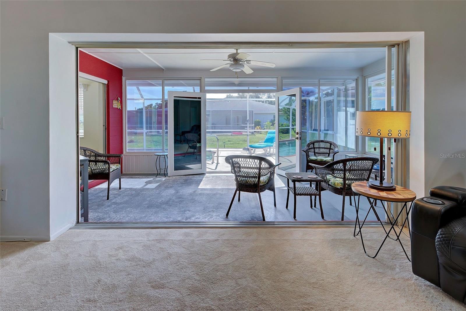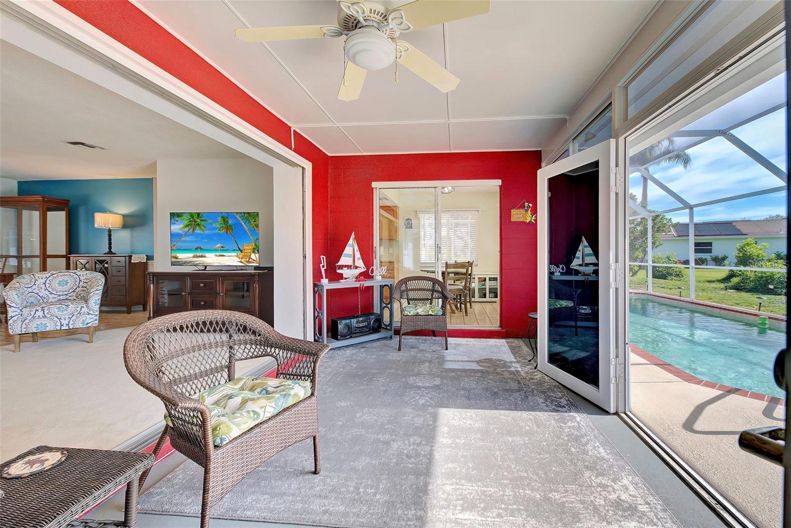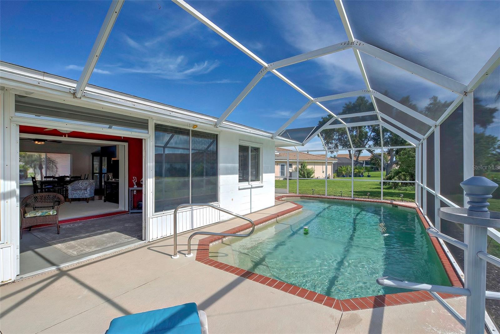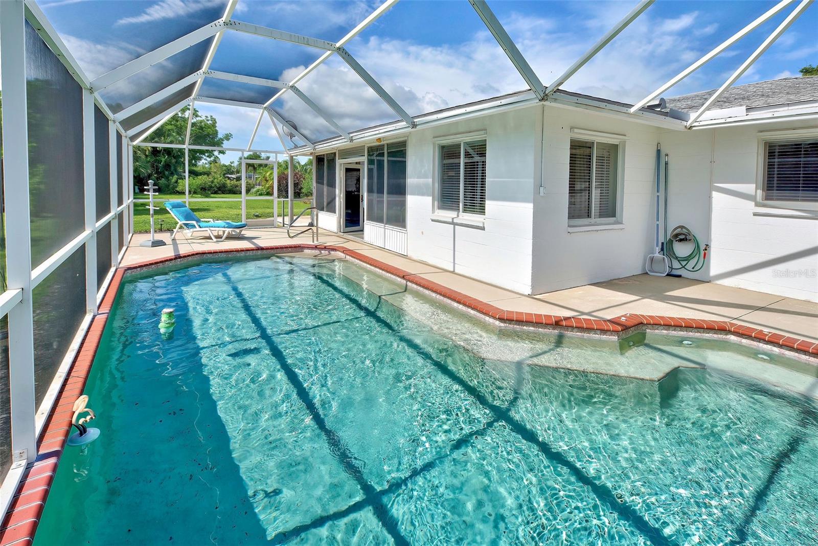 POOL HOME! A good, solid, well built POOL home tucked back on a great CUL-DE-SAC on a good sized lot in the highly sought after area of Jacaranda West with a SPLIT FLOOR plan. Step inside to discover an open Dining and living room area that leads to large windows and 4 pocket sliders that flood the home with natural light from the glassed in Florida Room that can be used as an office. The property features 2 spacious bedrooms with WALK-IN Closets, 2 bathrooms, an eat in kitchen and an oversized 2-car garage. The Kitchen has new Stainless Steel appliances installed in 2022-2023, Granite counter tops, soft close cabinets and there is a HUGE PANTRY with plenty of space for all your kitchen gadgets. The Primary Shower has been beautifully updated with cascading tile from the ceiling to the floor. The home was RE-PIPED in Sept 2023, NEW WATER HEATER July 2023, A/C unit installed 2021 so you’re set on those essentials. LED lighting, energy efficient fans and solar landscape lighting has been installed as well. No need to worry about an extra water bill with a SEPARATE WELL FOR IRRIGATION with recently updated irrigation. LOW HOA fees ($120.00 per year), NO CDD fee and located in an X ZONE so no flood insurance required. Conveniently located close to the beautiful beaches, downtown Venice, Shamrock Park, shops, restaurants, US41 and I-75. Motivated Seller due to job transfer. Explore this opportunity as an investment rental or enjoy it as your own home.