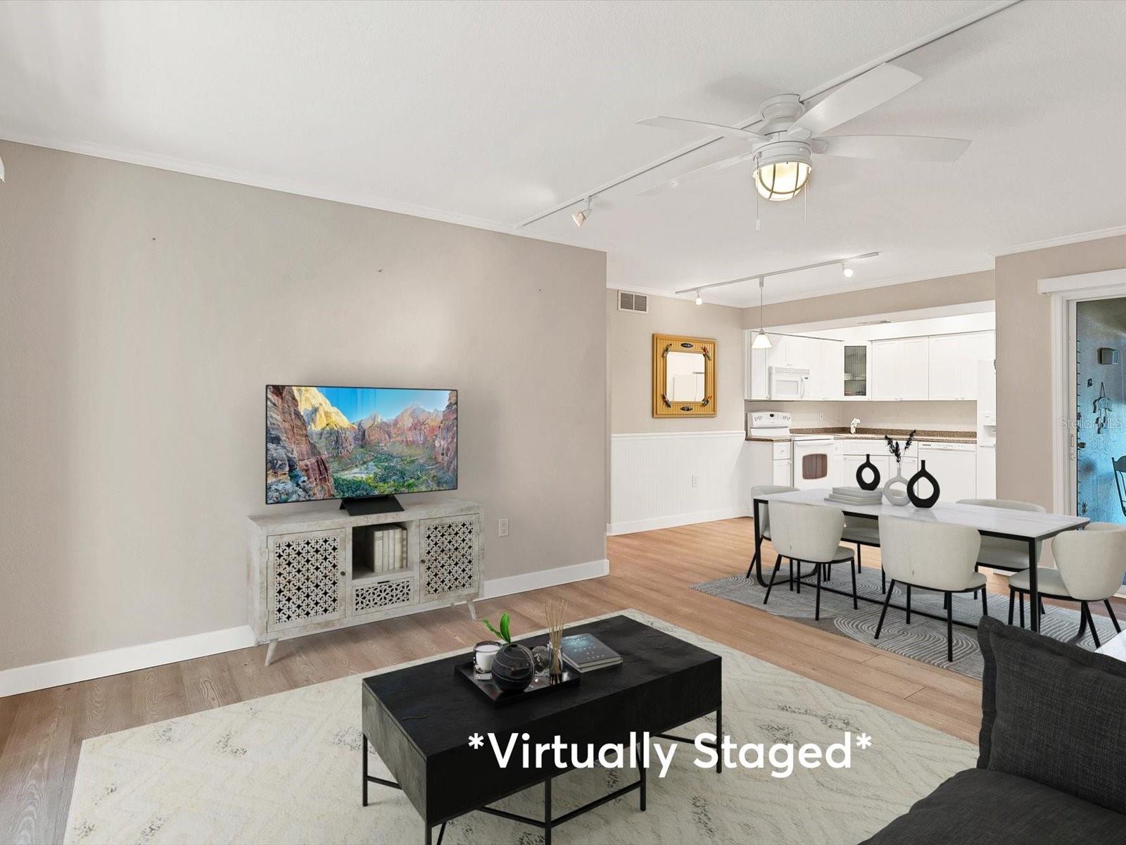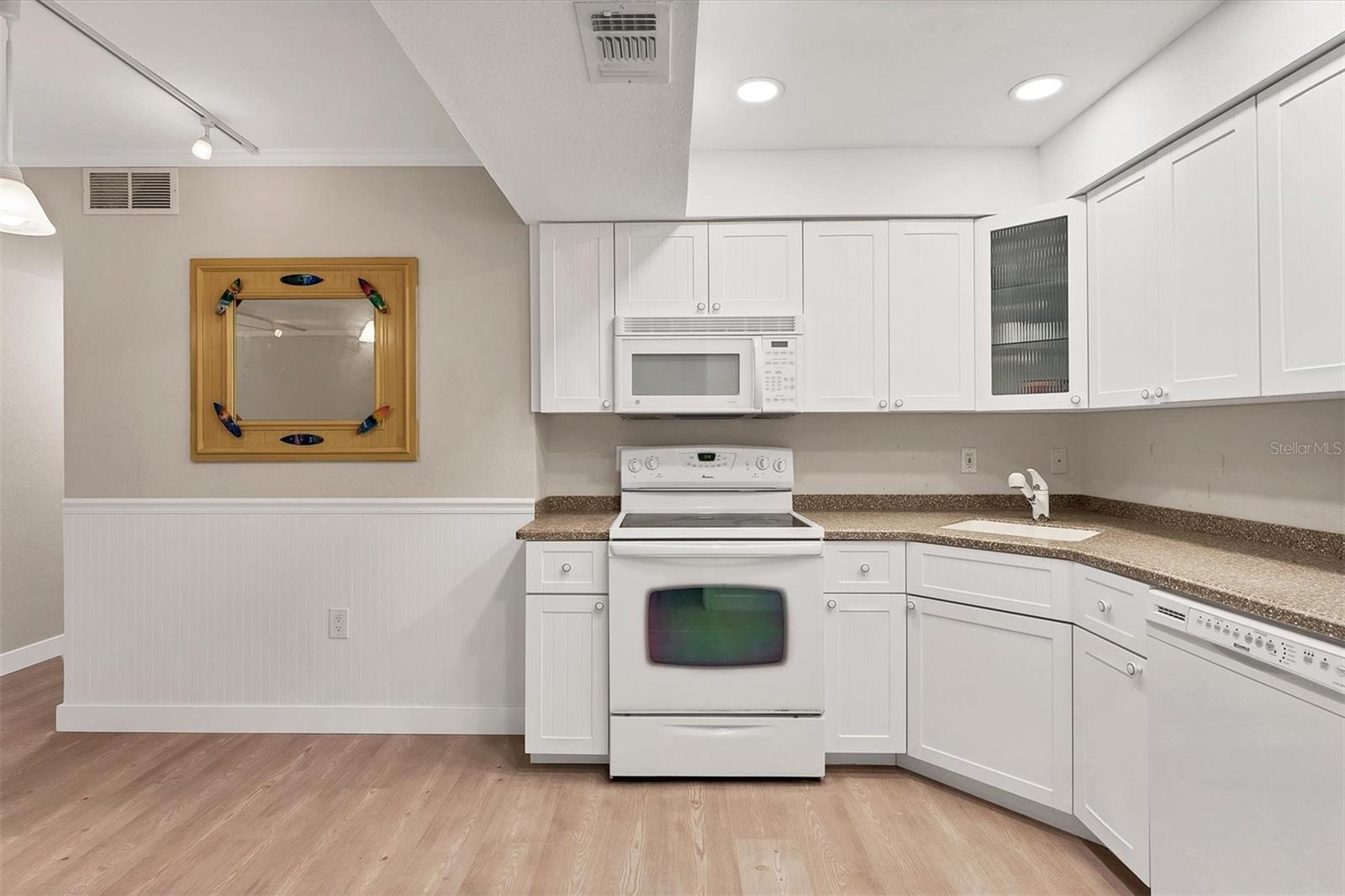 Welcome to your new oasis on Venice Island! This beautifully updated 3-bedroom, 2-bathroom condo is ideally located across from the serene Prentiss French Park, offering a peaceful retreat while being just a short walk from Downtown Venice and the pristine Gulf beaches. With 991 sqft of well-designed living space, this condo combines comfort, style, and the ultimate convenience of island living. Step inside and be greeted by the brand new Durvana luxury vinyl floors that flow throughout the home. The kitchen, thoughtfully opened up and enhanced with modern LED recessed lighting, is perfect for preparing meals and entertaining. The gorgeously updated hall bath adds a touch of luxury to your daily routine. Outside, both the front and back patios invite you to relax and soak up the Florida sunshine. This condo also features a sparkling community pool, ideal for cooling off on warm days. The low HOA fee of just $380 per month ensures that you can enjoy all these amenities without breaking the bank. Recent updates add to the appeal: a new AC was installed in 2014, the TPO roof was replaced in 2015, and the water heater was replaced in 2021. Living on Venice Island means access to a wealth of activities, from golf and pickleball to boating and beachcombing. Experience the best of Florida living in a location that offers it all. Don’t miss out—schedule your private tour today and discover why this condo is the perfect place to call home!