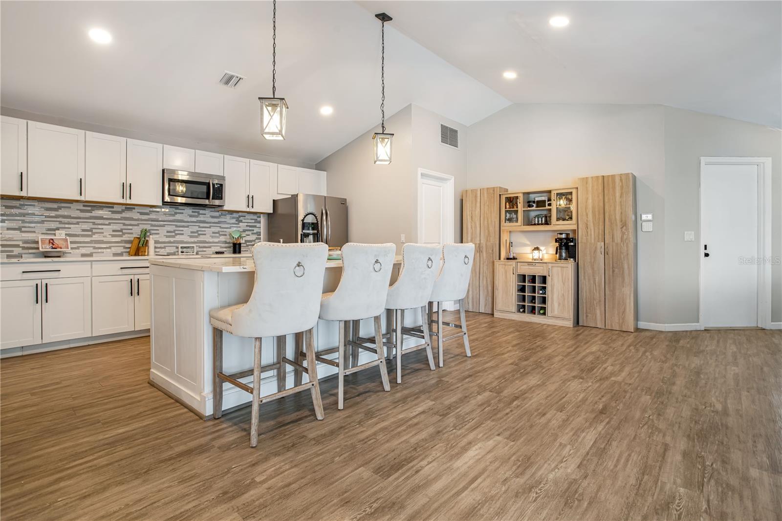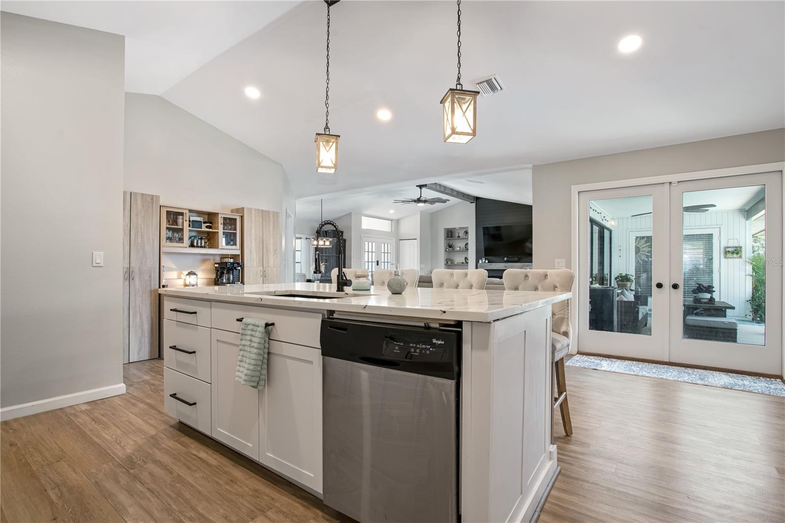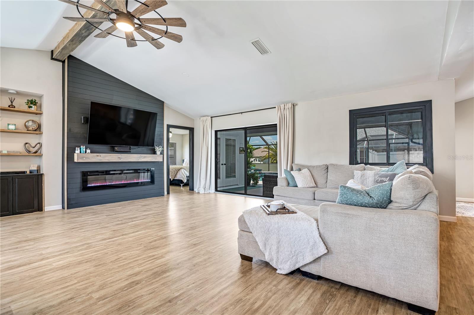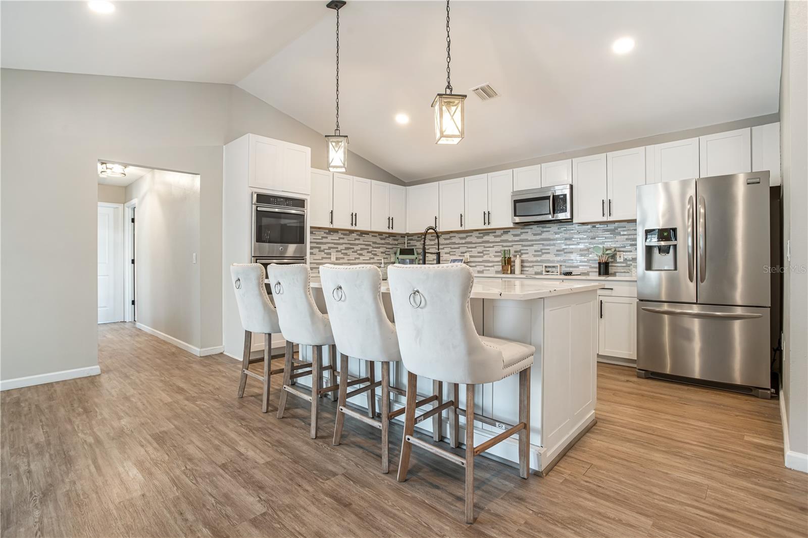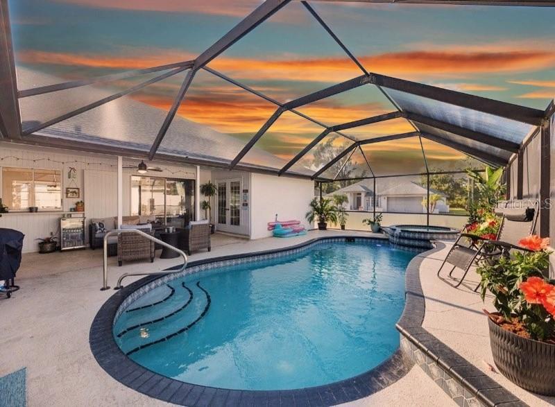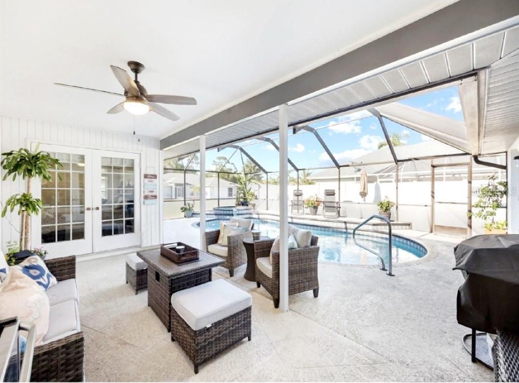 Stunning Custom residence, Updated from top to bottom, Move-In-Ready, OPEN CONCEPT GREAT ROOM – Light and Bright Split Bedroom Floor plan with Cathedral Ceilings, over 2100 square feet of indoor living space, plus Heated Pool with Spill-Over-Spa, located in the highly desirable Gulf View Estates, and less than five minutes to have your toes in the sand at the beach! Major Infrastructure Upgrades include NEW Roof 2023, AC replaced in 2019, updated electrical panel, switches & receptacles, new hot water tank, plus the whole house is replumbed. A Cook’s Kitchen with quartz countertops, Center Island, New stainless appliances, built-in double ovens, microwave, cooktop, deep sink, pantry, abundance of cabinets, drawers and counters! Exceptional Master-Suite with French doors opening to the pool, large custom walk-in closet, luxurious Master Bathroom with quartz double vanity plus sit-down make-up vanity, large walk-in shower, and garden tub. Other upgrades and features include Luxury Vinyl flooring throughout (except baths), New lighting fixtures, Three sets of glass doors opening to the lanai and pool area, plus the 2nd bathroom with quartz vanity also opens to the pool, indoor laundry room with a window, outdoor shower, covered pool-side lanai, Extra-Large Lot and more! Gulf View Estates has public water and sewer, NO CDD, and the LOW HOA is $265 year! Another Bonus is the Qualifying ASSUMABLE VA LOAN with a 5.75 Fixed Rate and NO FLOOD ZONE! Convenient location to the Island of Venice with Historic Downtown, plus numerous beaches, shopping, dining, golf, medical, top-rated schools and much more! This gorgeous home is a must see because it makes you feel great and will not last long!