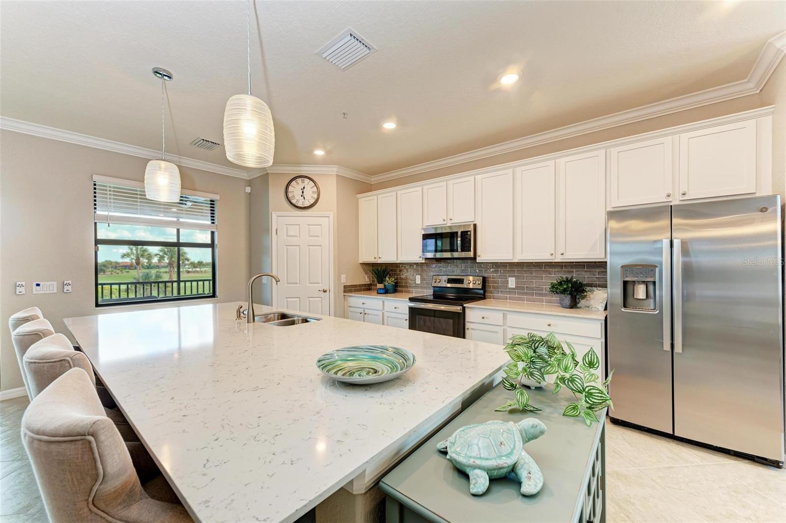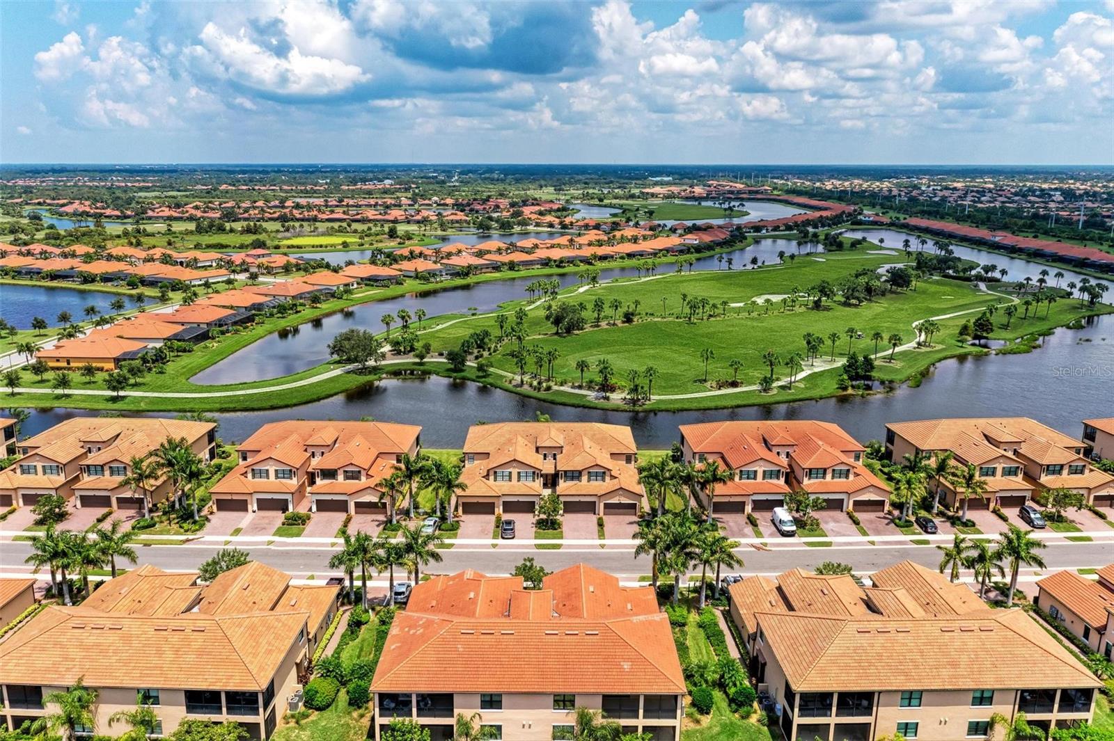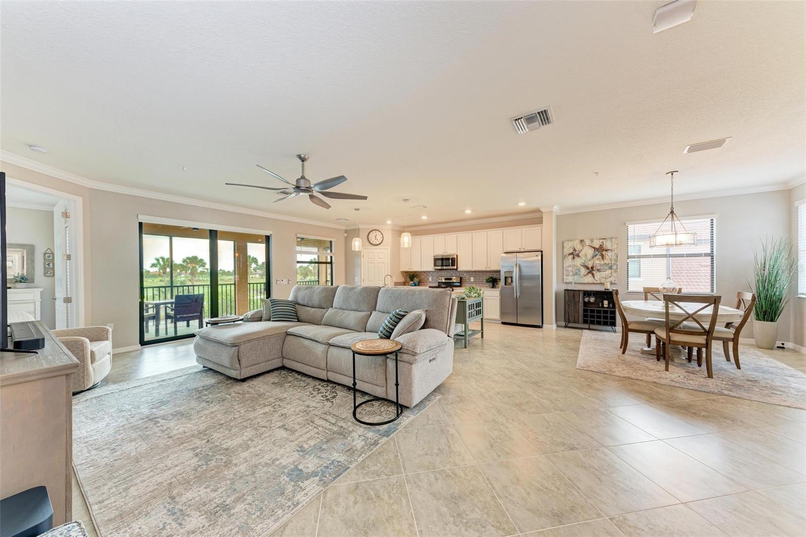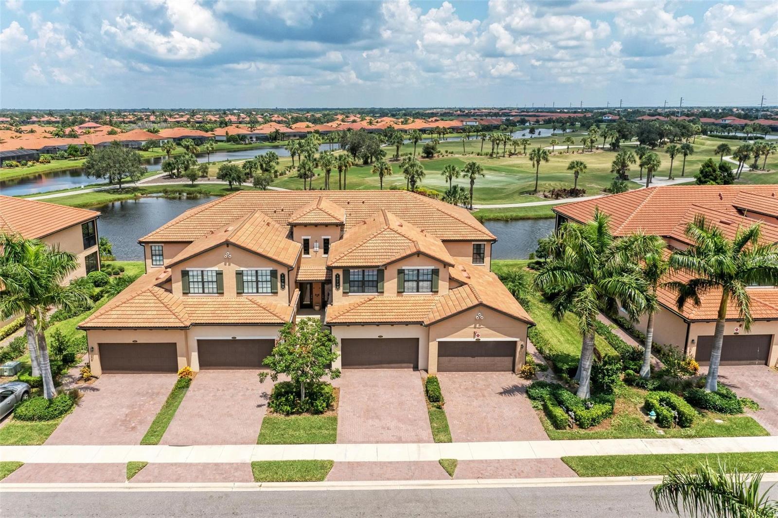 Available for IMMEDIATE OCCUPANCY and Partially Furnished Optional. HIGH IMPACT WORLD CLASS SHOWCASE VIEWS! No Flood Zone. Welcome to a life of unparalleled luxury and comfort in the sought after Sarasota National Golf Club, a gated community that embodies the essence of Florida living. Nestled within this sprawling 2,500-acre haven, this exquisite three-bedroom, two-bath, 2.5 car garage condominium offers the ultimate blend of elegance and tranquility. Situated in a coveted location within an 18-hole championship golf course community, this home overlooks the 3rd and 4th holes and comes with 2 golf memberships included. It's a golfer's paradise, offering direct access to meticulously manicured fairways and greens. Residents can also enjoy a resort-style pool, an upscale restaurant, a professional golf shop, tennis courts, pickle ball court, bocce ball and a state-of-the-art fitness center, all within the community. This newer, expansive retreat boasts breathtaking water and golf course views that are simply unmatched. The residence is ideally situated just 10 minutes from pristine, uncrowded beaches, offering the perfect balance between serene golf course living and the vibrant coastal lifestyle. Located in the esteemed Sarasota National Community in charming Venice, Florida, this home is a testament to refined living. Upon entering this polished condo, you are greeted by an abundance of natural light, thanks to the 9-foot ceilings, large windows, and oversized sliding doors, all equipped with the highest-rated hurricane impact glass for added peace of mind. The open floor plan seamlessly connects the living room, kitchen, and dining room, all adorned with crown molding and designed to maximize the stunning views. The kitchen is a culinary haven, featuring a large island, custom backsplash, upgraded refrigerator, and stylish pendant lights, making it perfect for both casual meals and entertaining. The primary bedroom is a sanctuary of comfort, featuring new high-end carpet and padding throughout the room and closets, custom window treatments, and an upgraded ceiling fan. This tranquil space includes two spacious walk-in closets and an en suite bathroom that exudes luxury with its split vanities and expansive walk-in shower. The additional two bedrooms are equally inviting, each featuring carpets and walk-in closets, offering both elegance and practicality. The second bathroom is thoughtfully designed with a tub and shower combination, providing ample space and comfort. Additionally, the home includes a designated laundry room, complete with a washer and dryer for added convenience. A true gem of this condo is the spacious 20-foot lanai, offering panoramic views of the state-of-the-art golf course and serene waterways. This outdoor space is perfect for relaxing or entertaining, allowing you to fully immerse yourself in the beauty of your surroundings. Beyond the community's luxurious offerings, the location is equally impressive. Just minutes away, you'll find the charm of Historic Downtown Venice, with its quaint shops, gourmet restaurants, and cultural attractions. The home is also close to the Atlanta Braves' spring training camp at CoolToday Park Stadium, as well as the vibrant town center of Wellen Park. With Venice Beach, Nokomis Beach and the historic downtown Venice all within a short drive, this residence offers an opportunity to experience the best of Florida living.