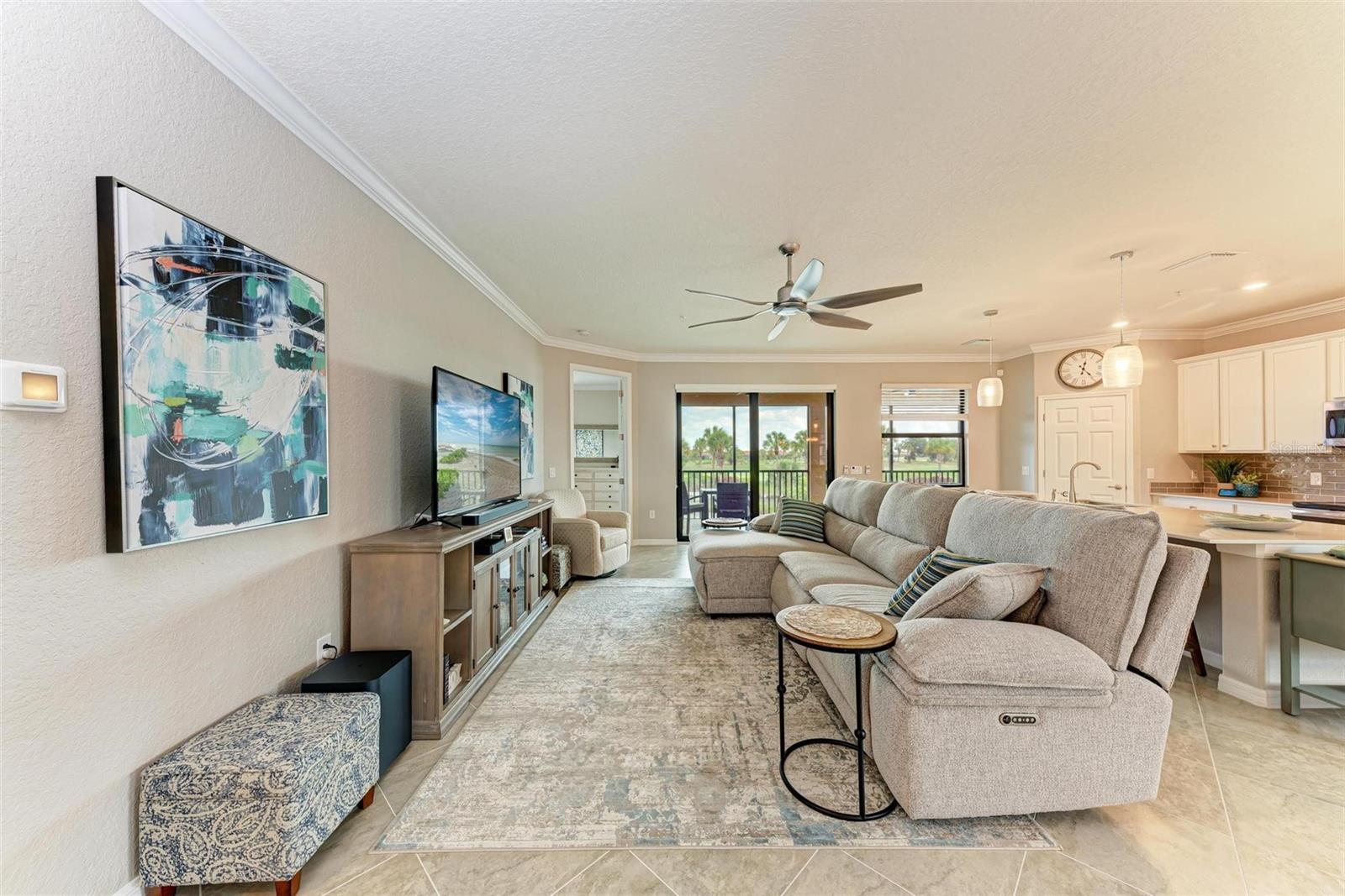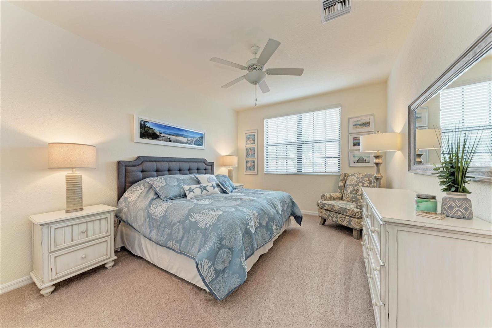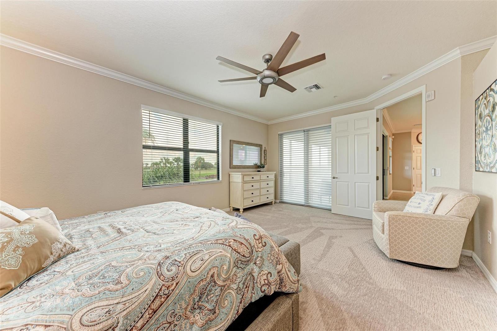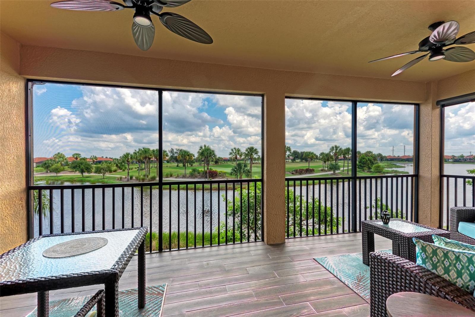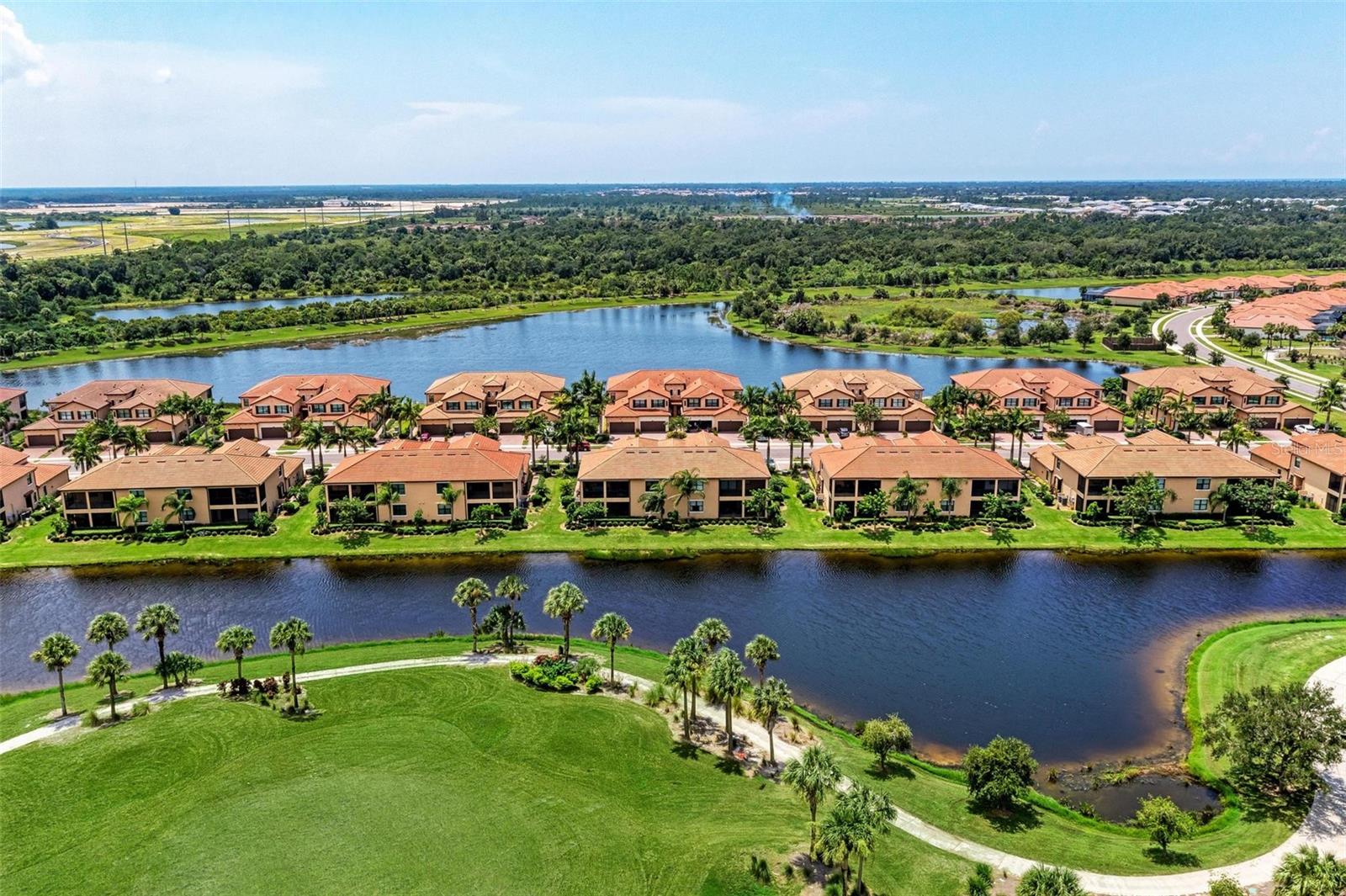 Available for IMMEDIATE OCCUPANCY and Partially Furnished Optional. HIGH IMPACT WORLD CLASS SHOWCASE VIEWS! No Flood Zone. Welcome to a life of unparalleled luxury and comfort in the sought after Sarasota National Golf Club, a gated community that embodies the essence of Florida living. Nestled within this sprawling 2,500-acre haven, this exquisite three-bedroom, two-bath, 2.5 car garage condominium offers the ultimate blend of elegance and tranquility. Situated in a coveted location within an 18-hole championship golf course community, this home overlooks the 3rd and 4th holes and comes with 2 golf memberships included. It's a golfer's paradise, offering direct access to meticulously manicured fairways and greens. Residents can also enjoy a resort-style pool, an upscale restaurant, a professional golf shop, tennis courts, pickle ball court, bocce ball and a state-of-the-art fitness center, all within the community. This newer, expansive retreat boasts breathtaking water and golf course views that are simply unmatched. The residence is ideally situated just 10 minutes from pristine, uncrowded beaches, offering the perfect balance between serene golf course living and the vibrant coastal lifestyle. Located in the esteemed Sarasota National Community in charming Venice, Florida, this home is a testament to refined living. Upon entering this polished condo, you are greeted by an abundance of natural light, thanks to the 9-foot ceilings, large windows, and oversized sliding doors, all equipped with the highest-rated hurricane impact glass for added peace of mind. The open floor plan seamlessly connects the living room, kitchen, and dining room, all adorned with crown molding and designed to maximize the stunning views. The kitchen is a culinary haven, featuring a large island, custom backsplash, upgraded refrigerator, and stylish pendant lights, making it perfect for both casual meals and entertaining. The primary bedroom is a sanctuary of comfort, featuring new high-end carpet and padding throughout the room and closets, custom window treatments, and an upgraded ceiling fan. This tranquil space includes two spacious walk-in closets and an en suite bathroom that exudes luxury with its split vanities and expansive walk-in shower. The additional two bedrooms are equally inviting, each featuring carpets and walk-in closets, offering both elegance and practicality. The second bathroom is thoughtfully designed with a tub and shower combination, providing ample space and comfort. Additionally, the home includes a designated laundry room, complete with a washer and dryer for added convenience. A true gem of this condo is the spacious 20-foot lanai, offering panoramic views of the state-of-the-art golf course and serene waterways. This outdoor space is perfect for relaxing or entertaining, allowing you to fully immerse yourself in the beauty of your surroundings. Beyond the community's luxurious offerings, the location is equally impressive. Just minutes away, you'll find the charm of Historic Downtown Venice, with its quaint shops, gourmet restaurants, and cultural attractions. The home is also close to the Atlanta Braves' spring training camp at CoolToday Park Stadium, as well as the vibrant town center of Wellen Park. With Venice Beach, Nokomis Beach and the historic downtown Venice all within a short drive, this residence offers an opportunity to experience the best of Florida living.