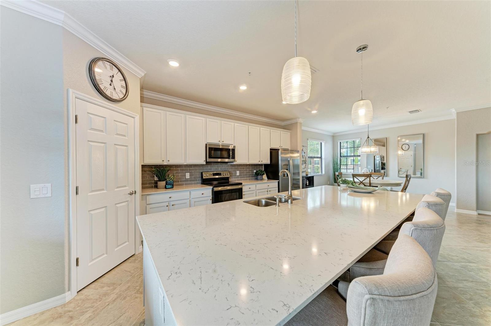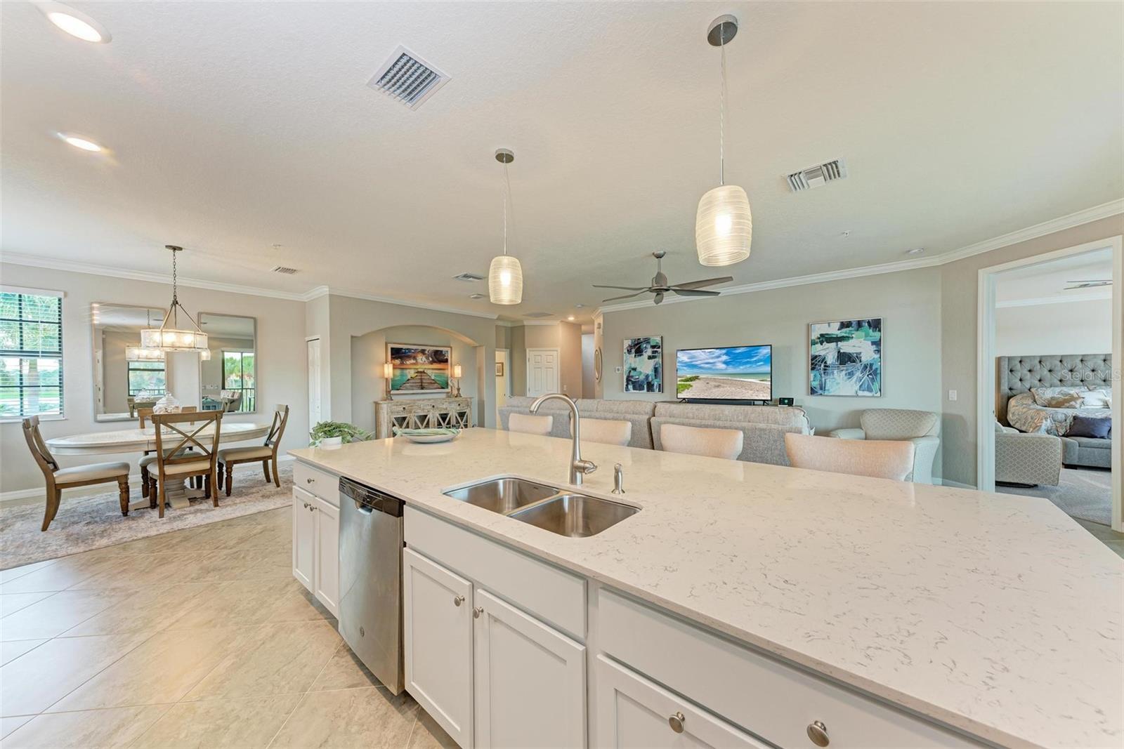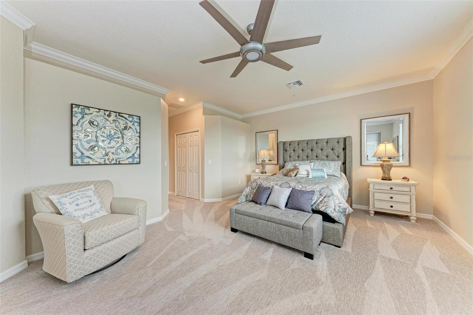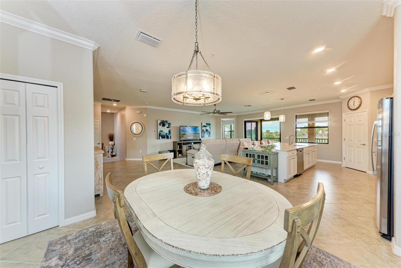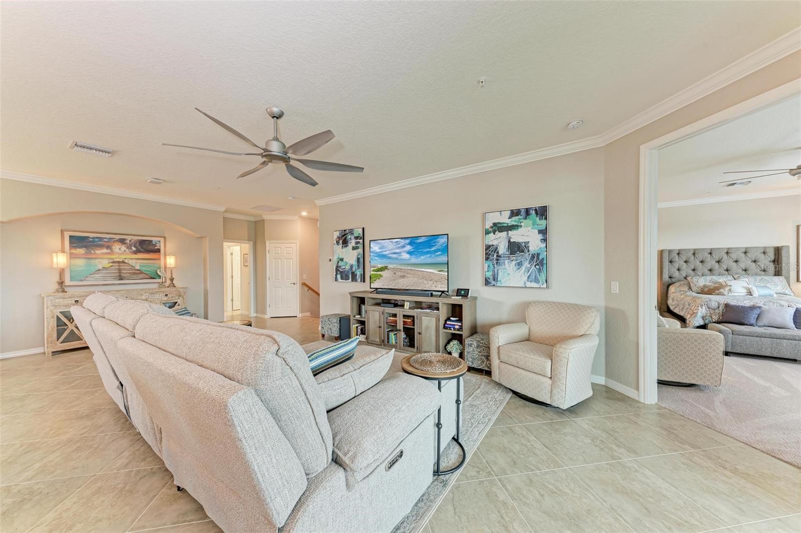 Available for IMMEDIATE OCCUPANCY and Partially Furnished Optional. HIGH IMPACT WORLD CLASS SHOWCASE VIEWS! No Flood Zone. Welcome to a life of unparalleled luxury and comfort in the sought after Sarasota National Golf Club, a gated community that embodies the essence of Florida living. Nestled within this sprawling 2,500-acre haven, this exquisite three-bedroom, two-bath, 2.5 car garage condominium offers the ultimate blend of elegance and tranquility. Situated in a coveted location within an 18-hole championship golf course community, this home overlooks the 3rd and 4th holes and comes with 2 golf memberships included. It's a golfer's paradise, offering direct access to meticulously manicured fairways and greens. Residents can also enjoy a resort-style pool, an upscale restaurant, a professional golf shop, tennis courts, pickle ball court, bocce ball and a state-of-the-art fitness center, all within the community. This newer, expansive retreat boasts breathtaking water and golf course views that are simply unmatched. The residence is ideally situated just 10 minutes from pristine, uncrowded beaches, offering the perfect balance between serene golf course living and the vibrant coastal lifestyle. Located in the esteemed Sarasota National Community in charming Venice, Florida, this home is a testament to refined living. Upon entering this polished condo, you are greeted by an abundance of natural light, thanks to the 9-foot ceilings, large windows, and oversized sliding doors, all equipped with the highest-rated hurricane impact glass for added peace of mind. The open floor plan seamlessly connects the living room, kitchen, and dining room, all adorned with crown molding and designed to maximize the stunning views. The kitchen is a culinary haven, featuring a large island, custom backsplash, upgraded refrigerator, and stylish pendant lights, making it perfect for both casual meals and entertaining. The primary bedroom is a sanctuary of comfort, featuring new high-end carpet and padding throughout the room and closets, custom window treatments, and an upgraded ceiling fan. This tranquil space includes two spacious walk-in closets and an en suite bathroom that exudes luxury with its split vanities and expansive walk-in shower. The additional two bedrooms are equally inviting, each featuring carpets and walk-in closets, offering both elegance and practicality. The second bathroom is thoughtfully designed with a tub and shower combination, providing ample space and comfort. Additionally, the home includes a designated laundry room, complete with a washer and dryer for added convenience. A true gem of this condo is the spacious 20-foot lanai, offering panoramic views of the state-of-the-art golf course and serene waterways. This outdoor space is perfect for relaxing or entertaining, allowing you to fully immerse yourself in the beauty of your surroundings. Beyond the community's luxurious offerings, the location is equally impressive. Just minutes away, you'll find the charm of Historic Downtown Venice, with its quaint shops, gourmet restaurants, and cultural attractions. The home is also close to the Atlanta Braves' spring training camp at CoolToday Park Stadium, as well as the vibrant town center of Wellen Park. With Venice Beach, Nokomis Beach and the historic downtown Venice all within a short drive, this residence offers an opportunity to experience the best of Florida living.