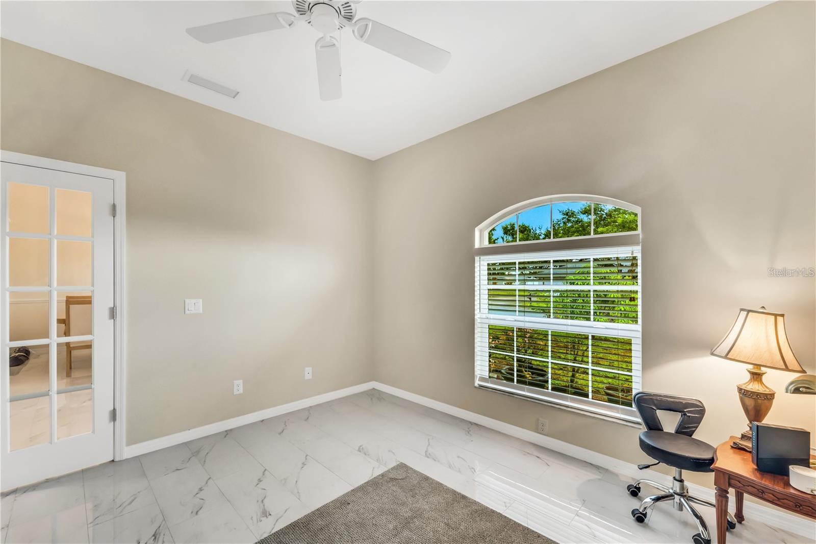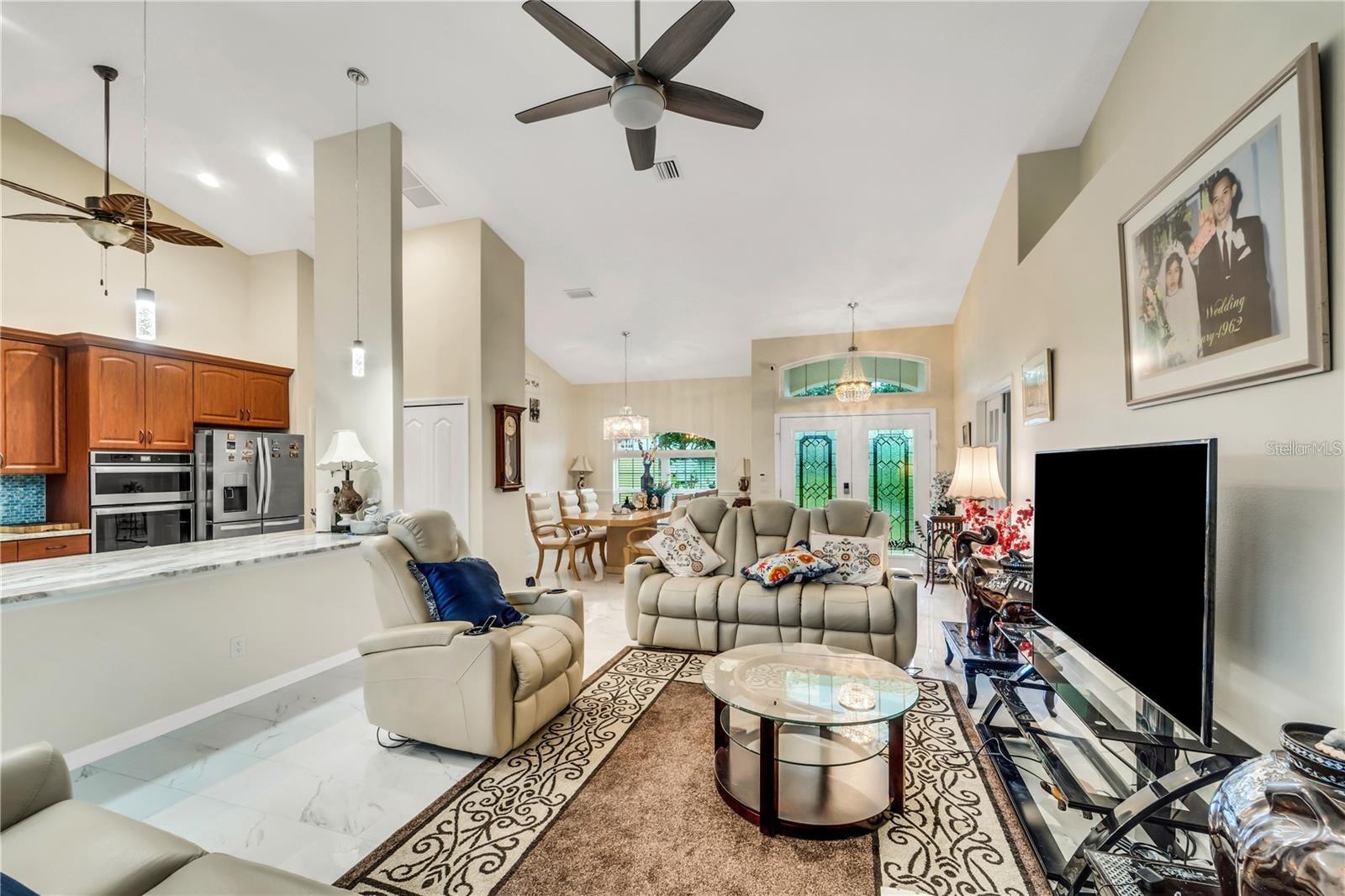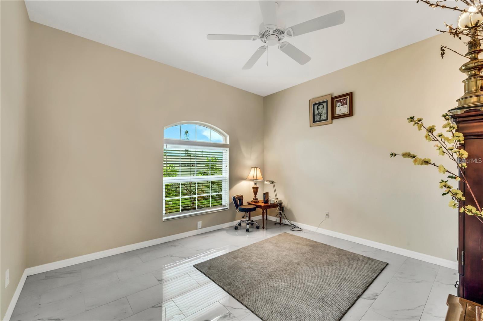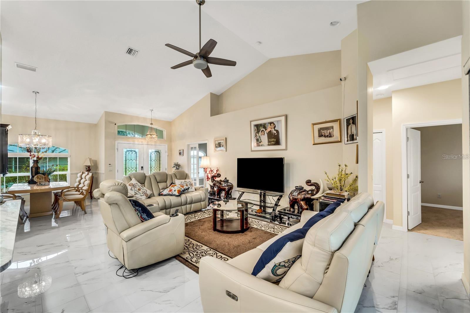 Welcome to your dream home in Venice Gardens, where comfort, style, and functionality come together in perfect harmony. This stunning residence features 3 bedrooms plus a versatile den, offering plenty of space for your family’s needs, with 2 bathrooms and a 2-car garage, convenience is paramount. Nestled in a charming neighborhood with public water and sewer services, this property provides a serene and private retreat. The fenced lot enhances your privacy, while the open floor plan ensures a seamless flow throughout the home, bathed in natural light that brightens every room. The thoughtfully designed split bedroom layout offers personal space for everyone, complemented by ceiling fans throughout to maintain a comfortable atmosphere year-round. Elegant ceramic tile flooring combines beauty with easy maintenance, and high-impact glass windows add both security and sophistication. The property’s curb appeal is enhanced by a stylish brick paver driveway, well-maintained gutters and downspouts, and a freshly installed fence. The beautifully landscaped yard invites you to relax on the screened lanai or enjoy the privacy of the fenced backyard. Step inside to find an expansive and open floor plan that connects the formal dining room and living room effortlessly. Cathedral ceilings and recessed lighting create an inviting ambiance, while sliding glass doors open to the extended lanai, seamlessly blending indoor and outdoor living. The heart of the home is its exquisite kitchen, designed for both functionality and style. Featuring granite countertops, upgraded stainless steel appliances, a flat cooktop with a modern hood that vents outside, and a wall-mounted oven and microwave, this kitchen is perfect for culinary enthusiasts. Ample storage, including two closet pantries, and a spacious breakfast bar make it ideal for family gatherings. The dinette area, surrounded by windows and with two French doors leading to the lanai, is perfect for casual meals and morning coffee. The master bedroom, located for privacy, is a spacious sanctuary with a luxurious en-suite bathroom. Enjoy the dual vanity, jetted bathtub, large tiled shower, and a generous walk-in closet. The expansive study/den overlooks the front yard and offers a versatile space for work or relaxation. The additional bedrooms are equally inviting and generously sized. This property is a masterpiece of modern living, combining stylish design with practical features for an exceptional experience. Located just two miles from Venice Island and the Gulf of Mexico, as well as close to Legacy Trail, dining options, and the quaint shops of historic downtown Venice, it’s ready to welcome you home.