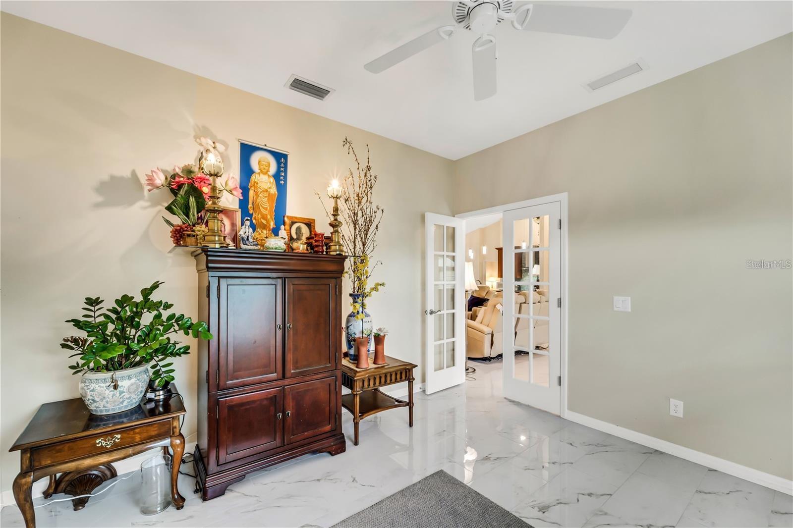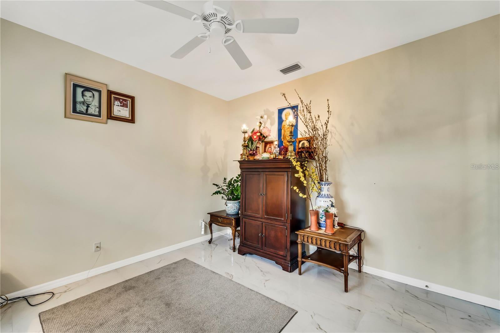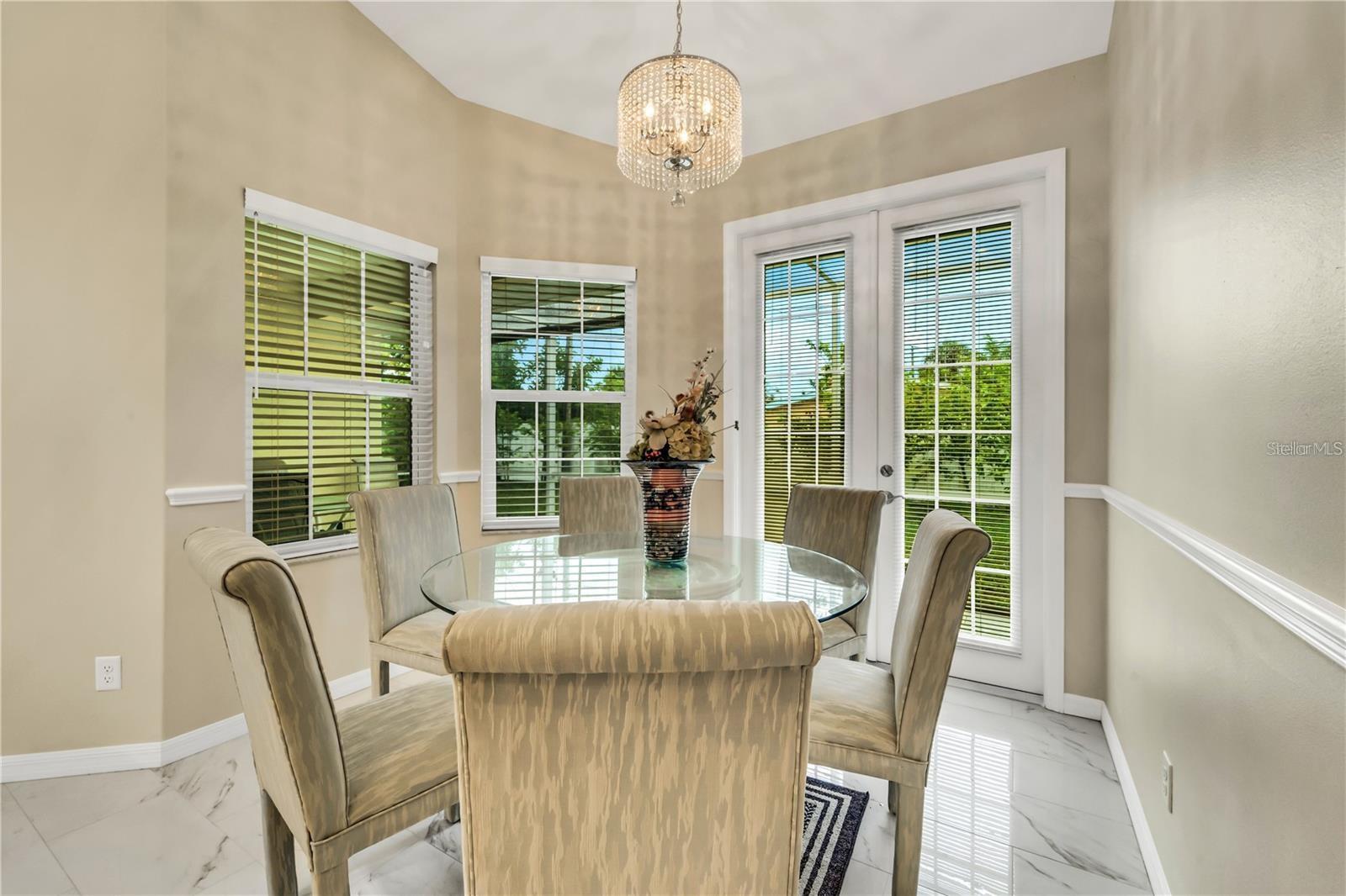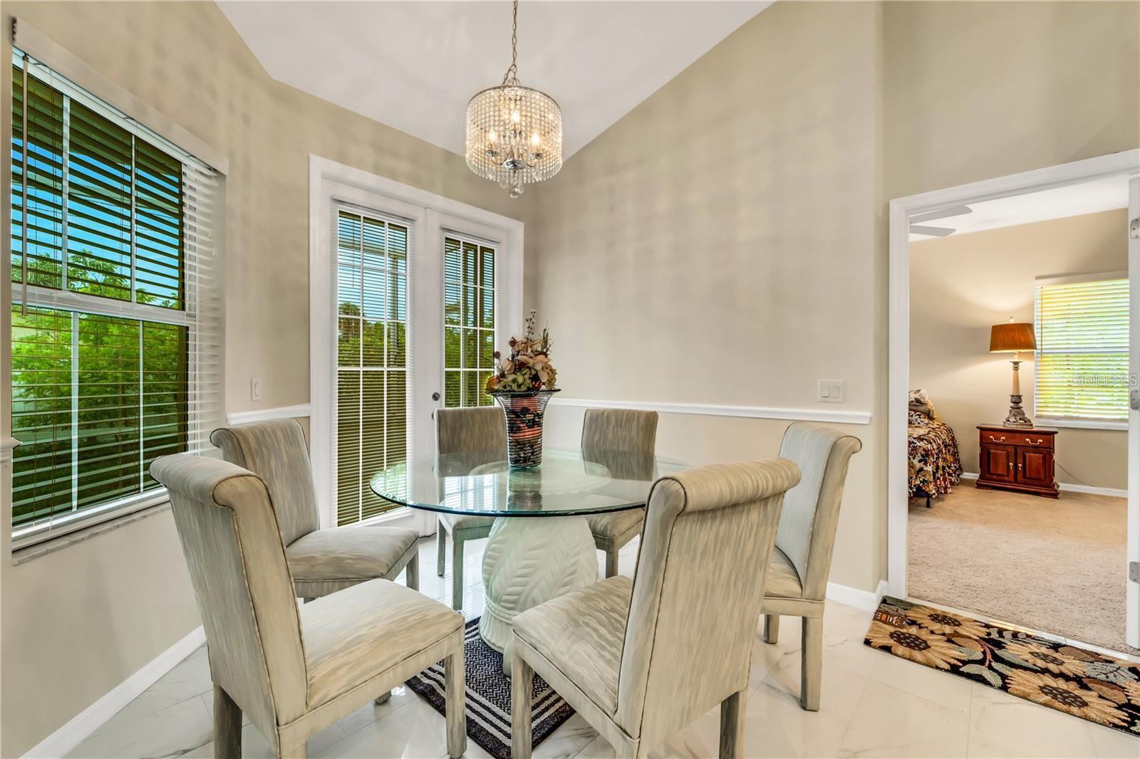 Welcome to your dream home in Venice Gardens, where comfort, style, and functionality come together in perfect harmony. This stunning residence features 3 bedrooms plus a versatile den, offering plenty of space for your family’s needs, with 2 bathrooms and a 2-car garage, convenience is paramount. Nestled in a charming neighborhood with public water and sewer services, this property provides a serene and private retreat. The fenced lot enhances your privacy, while the open floor plan ensures a seamless flow throughout the home, bathed in natural light that brightens every room. The thoughtfully designed split bedroom layout offers personal space for everyone, complemented by ceiling fans throughout to maintain a comfortable atmosphere year-round. Elegant ceramic tile flooring combines beauty with easy maintenance, and high-impact glass windows add both security and sophistication. The property’s curb appeal is enhanced by a stylish brick paver driveway, well-maintained gutters and downspouts, and a freshly installed fence. The beautifully landscaped yard invites you to relax on the screened lanai or enjoy the privacy of the fenced backyard. Step inside to find an expansive and open floor plan that connects the formal dining room and living room effortlessly. Cathedral ceilings and recessed lighting create an inviting ambiance, while sliding glass doors open to the extended lanai, seamlessly blending indoor and outdoor living. The heart of the home is its exquisite kitchen, designed for both functionality and style. Featuring granite countertops, upgraded stainless steel appliances, a flat cooktop with a modern hood that vents outside, and a wall-mounted oven and microwave, this kitchen is perfect for culinary enthusiasts. Ample storage, including two closet pantries, and a spacious breakfast bar make it ideal for family gatherings. The dinette area, surrounded by windows and with two French doors leading to the lanai, is perfect for casual meals and morning coffee. The master bedroom, located for privacy, is a spacious sanctuary with a luxurious en-suite bathroom. Enjoy the dual vanity, jetted bathtub, large tiled shower, and a generous walk-in closet. The expansive study/den overlooks the front yard and offers a versatile space for work or relaxation. The additional bedrooms are equally inviting and generously sized. This property is a masterpiece of modern living, combining stylish design with practical features for an exceptional experience. Located just two miles from Venice Island and the Gulf of Mexico, as well as close to Legacy Trail, dining options, and the quaint shops of historic downtown Venice, it’s ready to welcome you home.