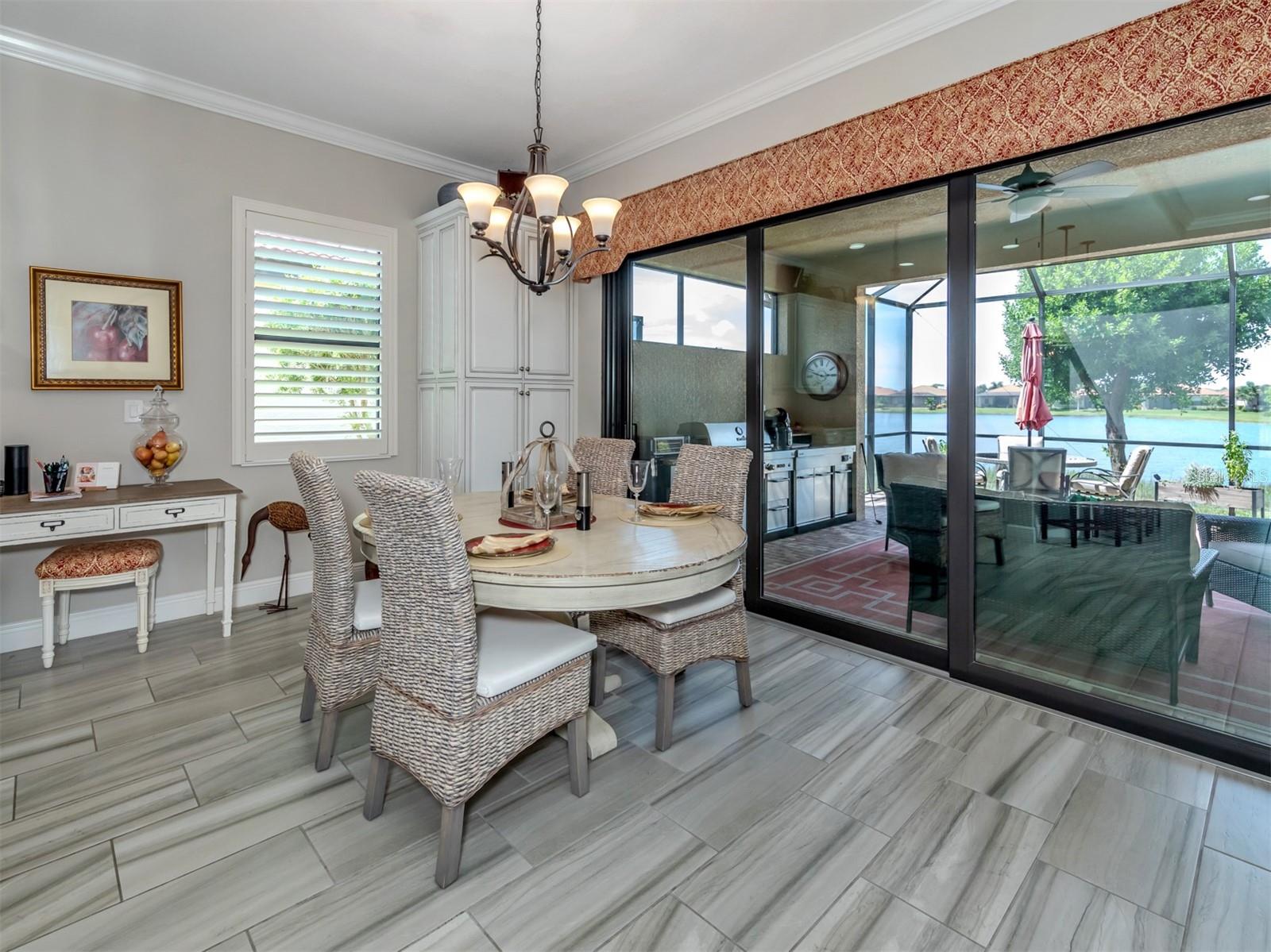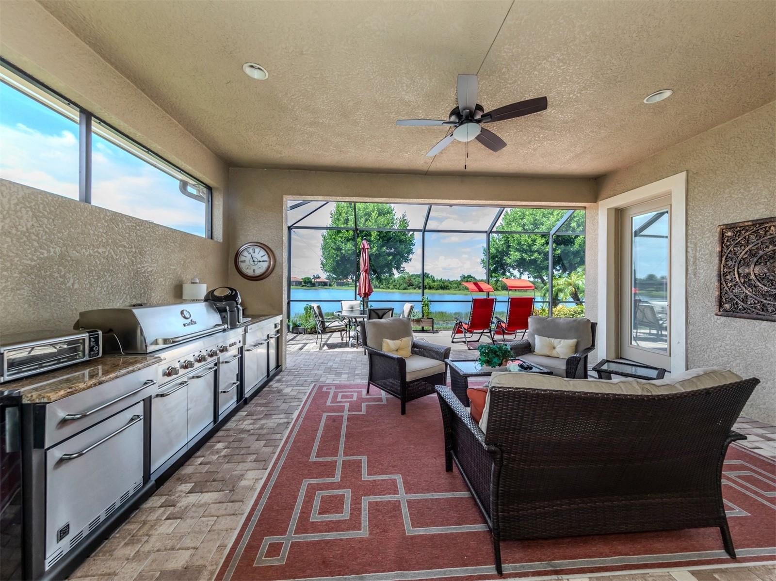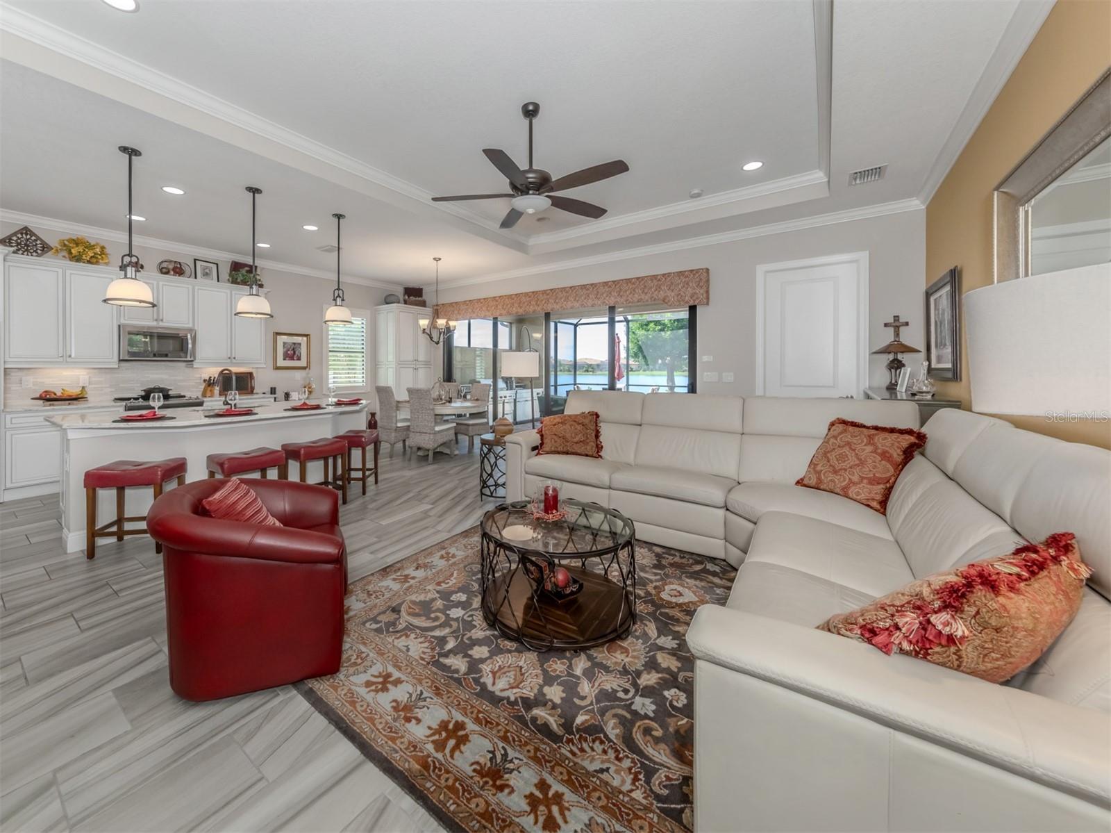 Your search is over. You finally found Motivated Sellers with the perfect home for entertaining or to enjoy a private al fresco dinner in a beautiful setting. Nestled in the Lake Community of Sarasota National, this highly sought-after WCI Florencia model is graciously appointed with numerous upgrades: coffered ceilings, crown molding, custom plank porcelain flooring and plantation shutters. From the moment you enter, the inviting open floor plan flows to a wall of sliders that expands the living area to an extended screened lanai with a summer kitchen, pavers and a spa overlooking a lovely lake view with a preserve. The gourmet kitchen is complete with a coffee nook, large pantry, extra wooden cabinets, a large breakfast bar and quartz countertops. Your primary suite includes access to the lanai, lake view, spacious ensuite and custom closets. Guests will appreciate their own private bedroom and bath. All the details have been attended to including a garage with built-in storage. Enjoy the peace of mind that only comes with hurricane-impact glass windows and doors as well as roll down screen and no flood zone. With the HOA caring for your landscape, you will have plenty of time to enjoy the 30,000-square-foot clubhouse with multiple dining opportunities, a spectacular zero-entry pool, a 7,000-square-foot fitness center, an 18-hole golf course and many other amenities. Sarasota National has the unique designation as an Audubon Bird Sanctuary with more than half of the community in preserves. The home is conveniently located by the Wellen Park area with shopping, dining, Atlanta Braves baseball and beaches nearby. Plus, the arts and activities of quaint downtown Venice are only a few miles away. Just pack you bag and begin enjoying your new Florida lifestyle. Call for a private showing before it is sold.