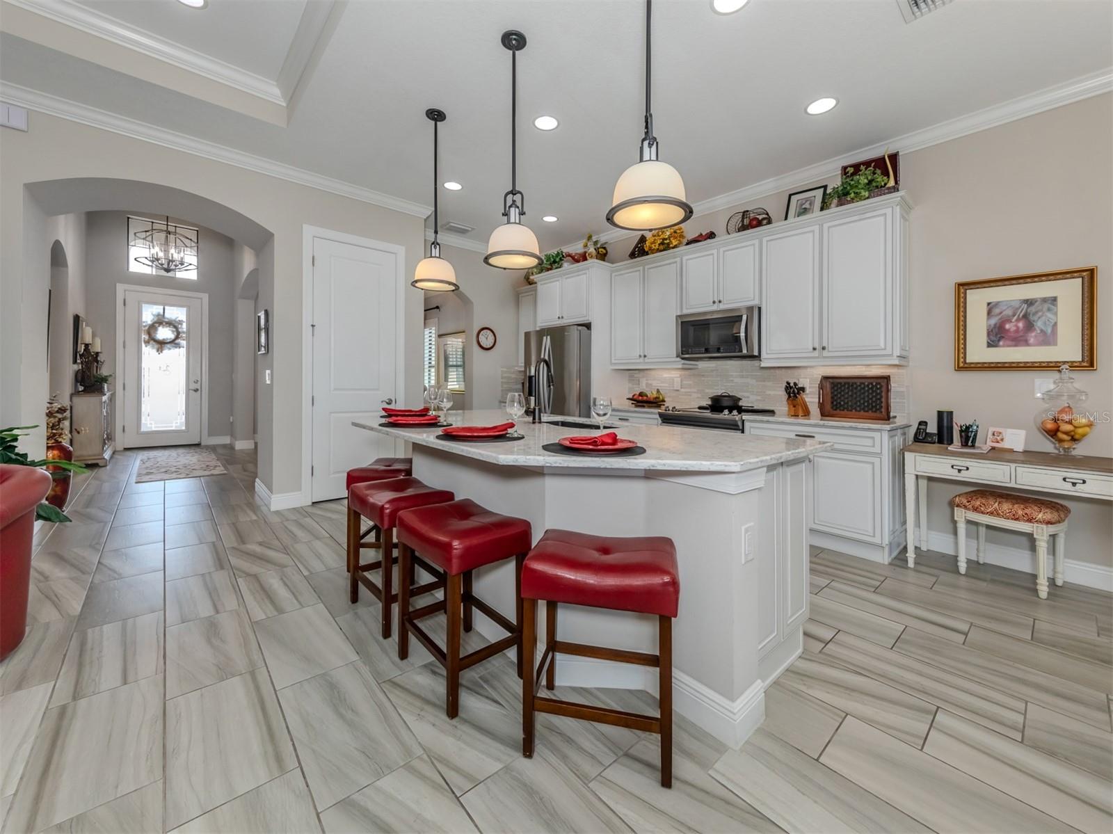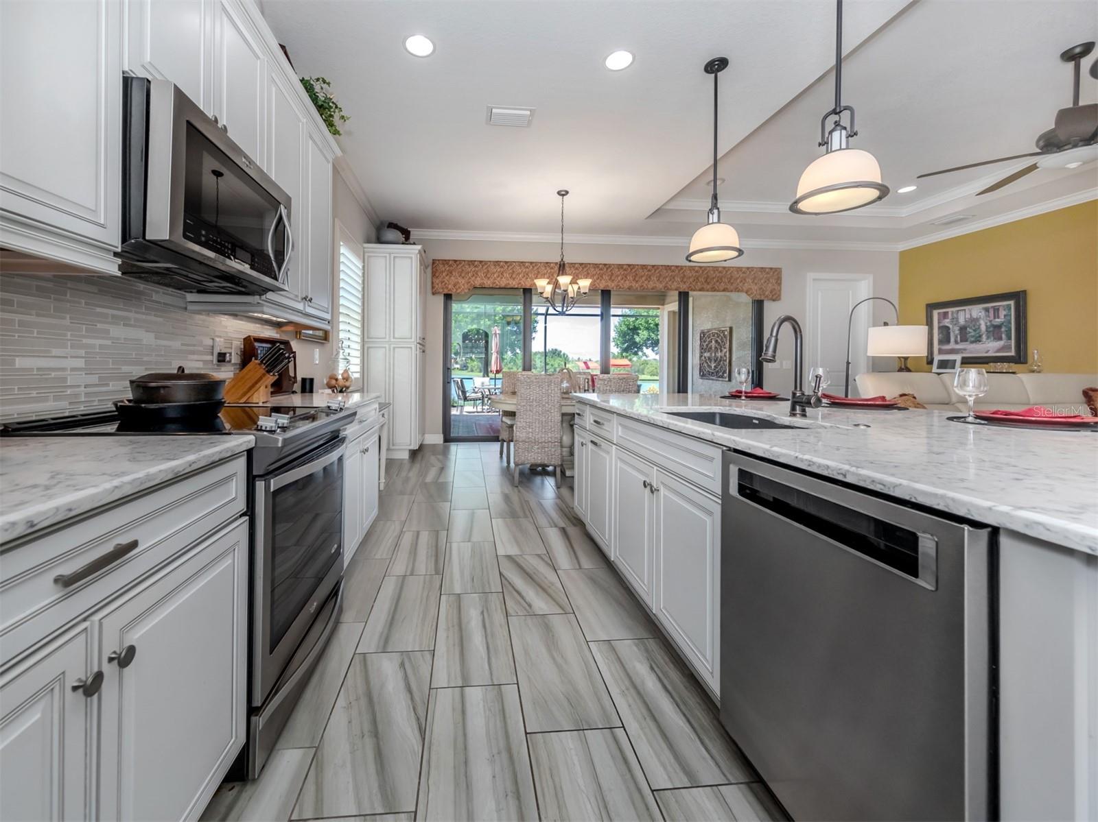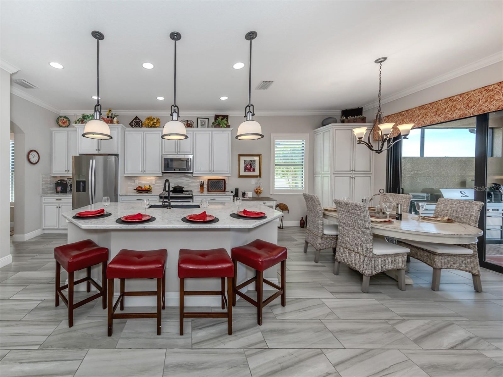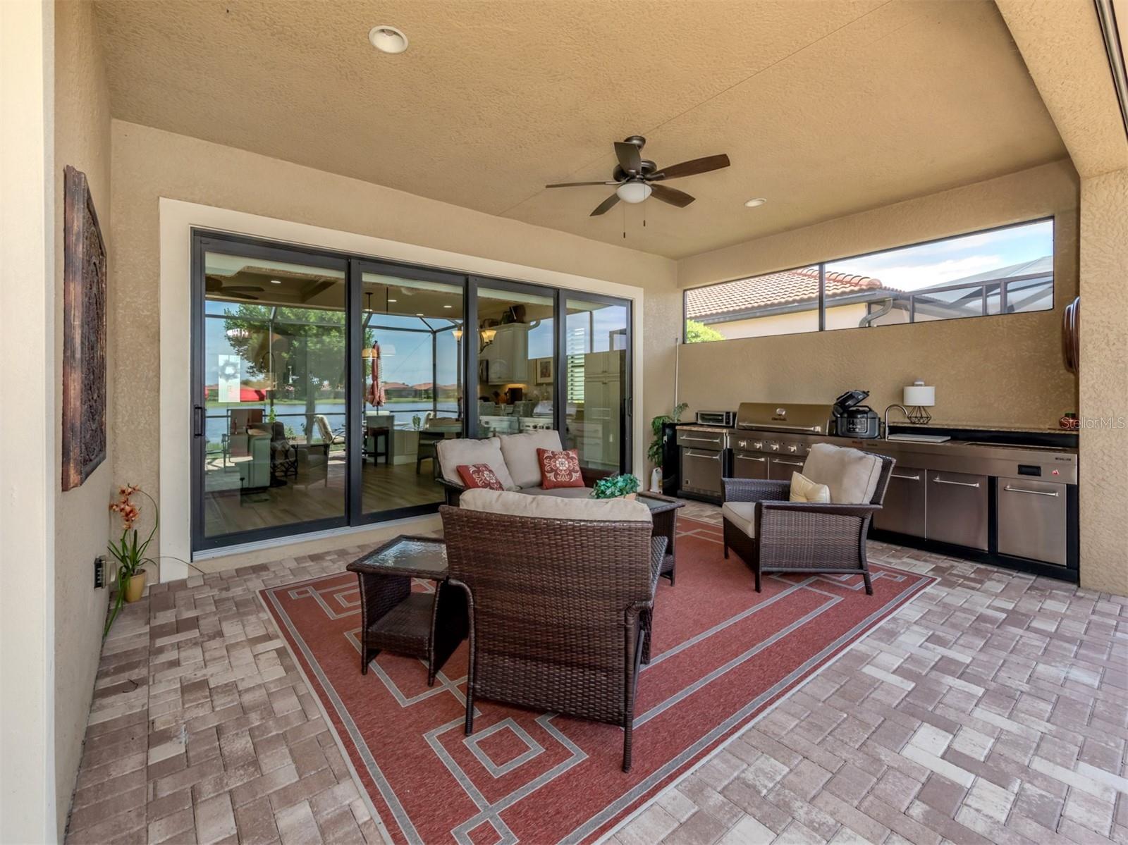 Your search is over. You finally found Motivated Sellers with the perfect home for entertaining or to enjoy a private al fresco dinner in a beautiful setting. Nestled in the Lake Community of Sarasota National, this highly sought-after WCI Florencia model is graciously appointed with numerous upgrades: coffered ceilings, crown molding, custom plank porcelain flooring and plantation shutters. From the moment you enter, the inviting open floor plan flows to a wall of sliders that expands the living area to an extended screened lanai with a summer kitchen, pavers and a spa overlooking a lovely lake view with a preserve. The gourmet kitchen is complete with a coffee nook, large pantry, extra wooden cabinets, a large breakfast bar and quartz countertops. Your primary suite includes access to the lanai, lake view, spacious ensuite and custom closets. Guests will appreciate their own private bedroom and bath. All the details have been attended to including a garage with built-in storage. Enjoy the peace of mind that only comes with hurricane-impact glass windows and doors as well as roll down screen and no flood zone. With the HOA caring for your landscape, you will have plenty of time to enjoy the 30,000-square-foot clubhouse with multiple dining opportunities, a spectacular zero-entry pool, a 7,000-square-foot fitness center, an 18-hole golf course and many other amenities. Sarasota National has the unique designation as an Audubon Bird Sanctuary with more than half of the community in preserves. The home is conveniently located by the Wellen Park area with shopping, dining, Atlanta Braves baseball and beaches nearby. Plus, the arts and activities of quaint downtown Venice are only a few miles away. Just pack you bag and begin enjoying your new Florida lifestyle. Call for a private showing before it is sold.