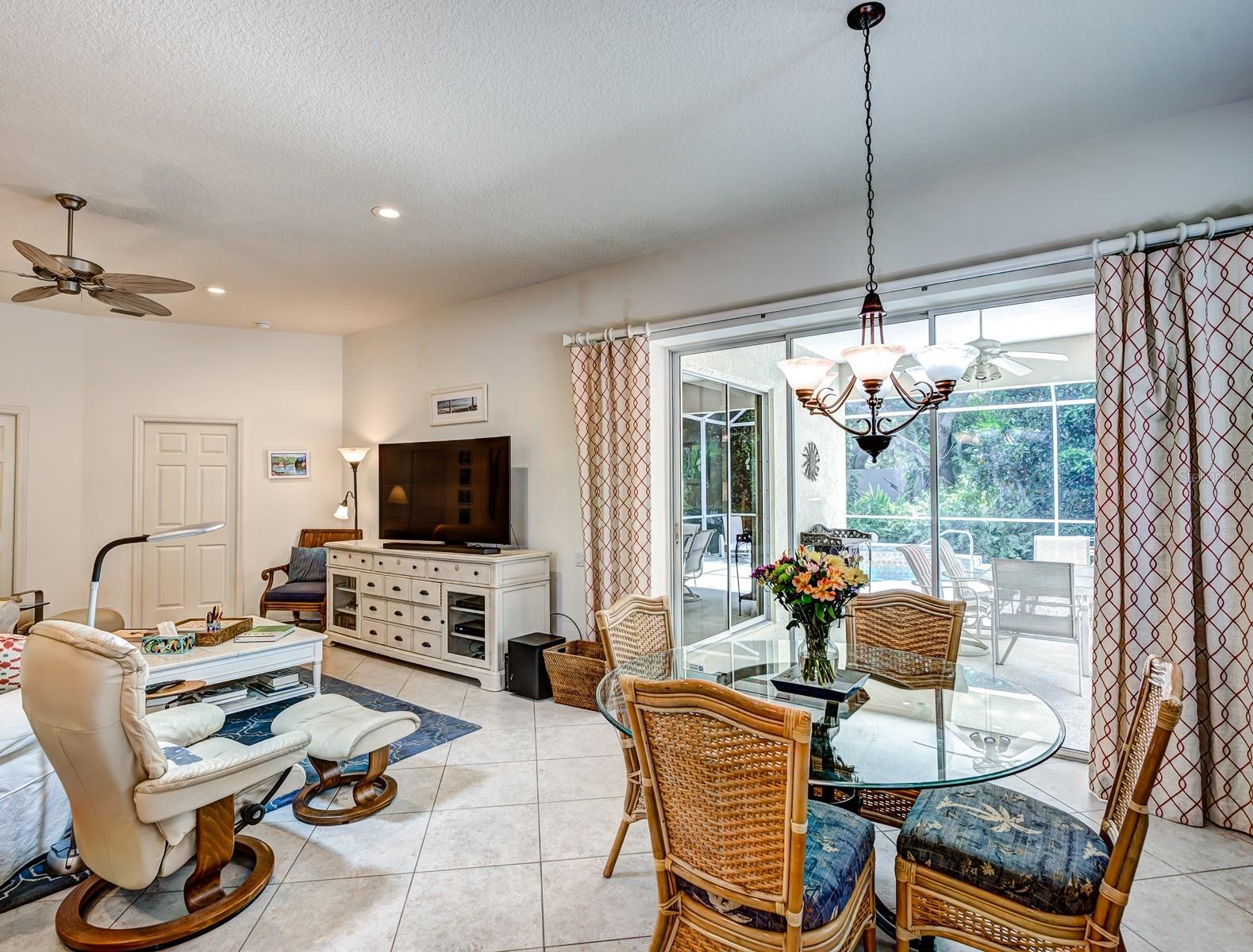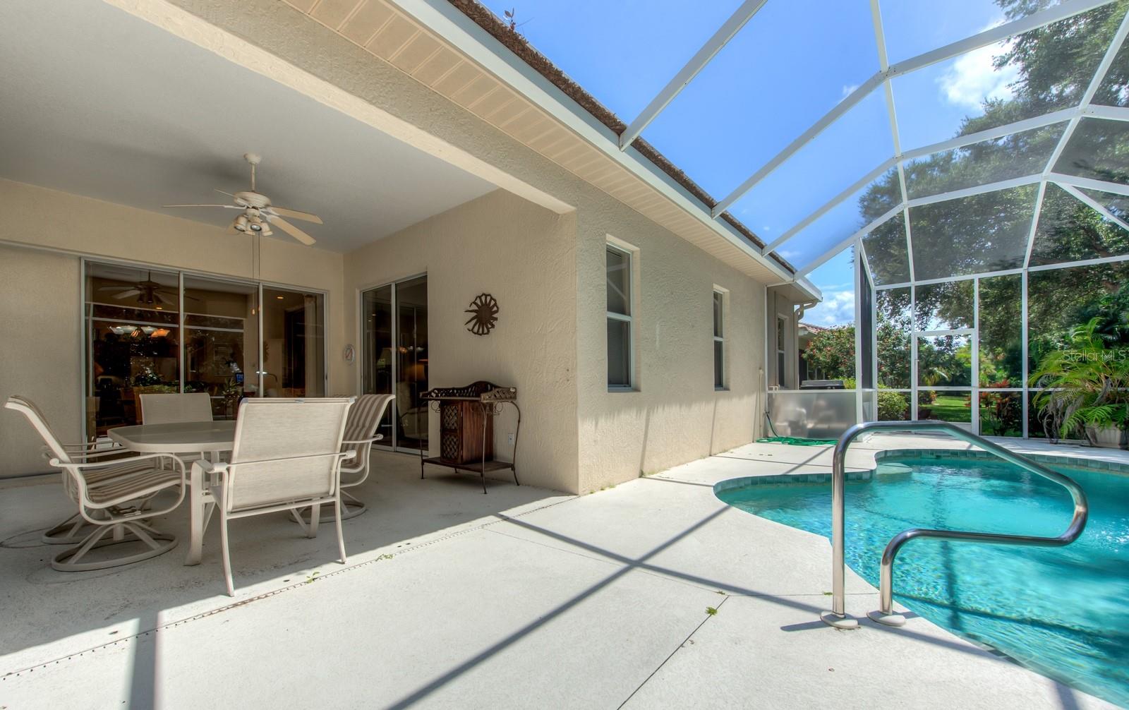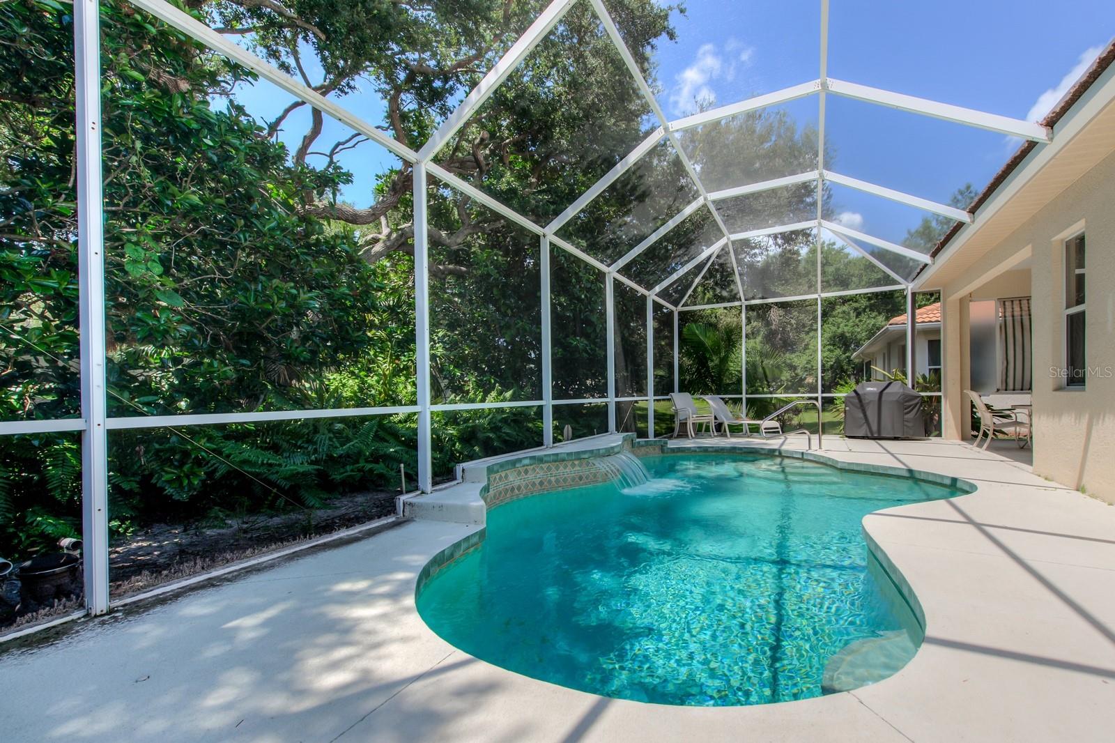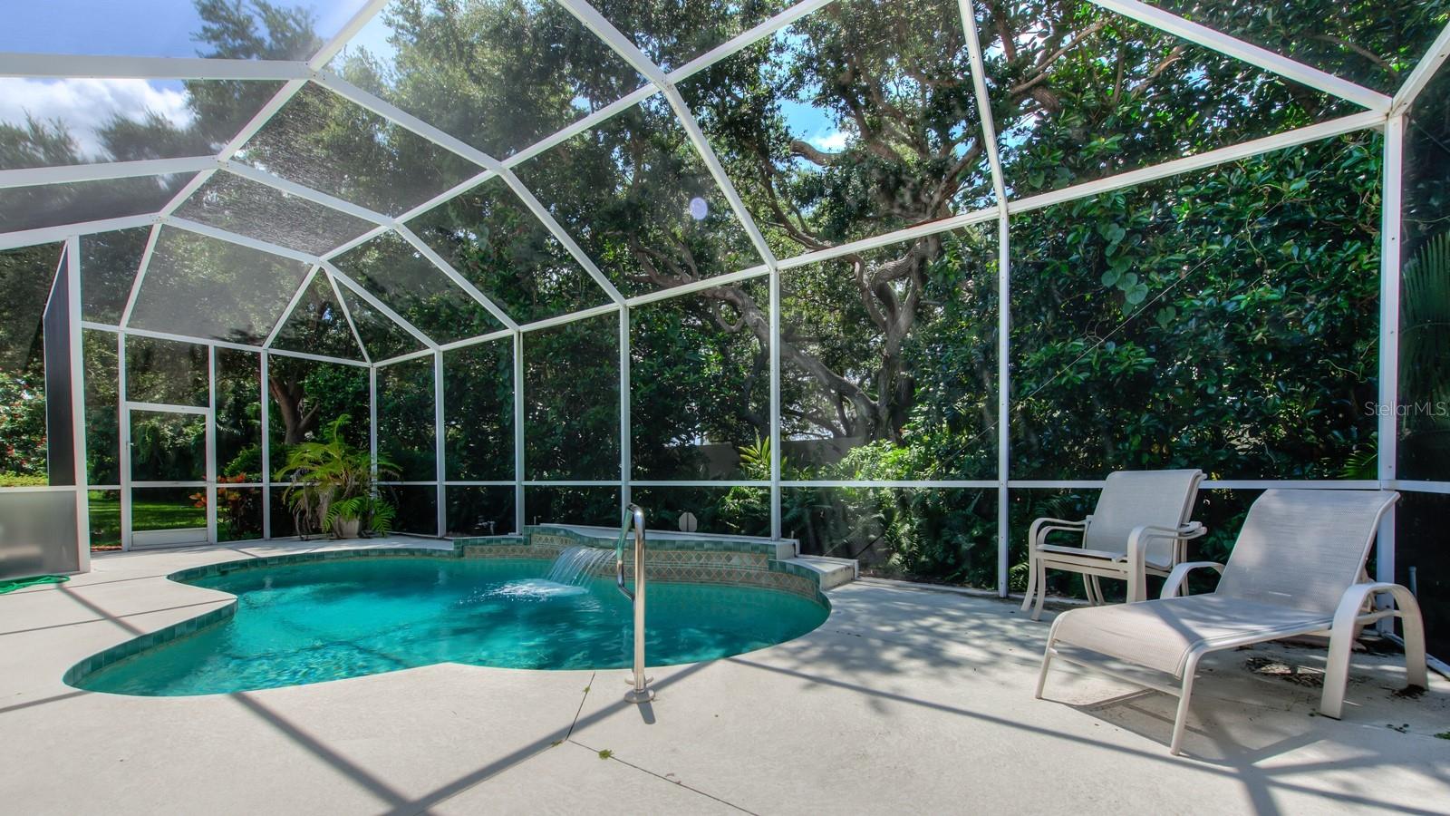 Enjoy the Florida Life style. This lovely 3 bedroom furnished pool home on cul-de-sac is located in Pelican Pointe Golf & Country Club. This light, open floor plan features 20" diagonal tile throughout hallway, great room and kitchen. Great room, with vaulted ceiling opens to your spacious screened lanai overlooking gorgeous tropical landscaping. The private heated pool has a waterfall feature. Oversized kitchen with maple cabinets, large island and a closet pantry. The primary suite has a tray ceiling, sliding doors to the lanai, spacious bathroom with dual sinks, shower and soaking tub. The HOA fee includes lawn care and irrigation, internet, cable TV, clubhouse, heated pool, fitness room, plus tennis and pickleball courts. Pelican Pointe Golf and Country Club has a 27 hole golf course and an active social life. Golf membership is not mandatory. Community has central location. Minutes of historic Venice downtown, beaches, shopping and restaurants.