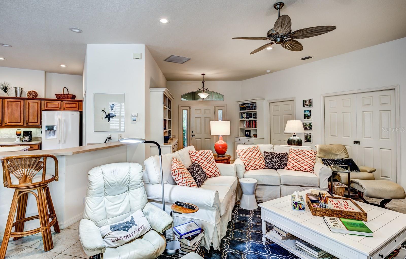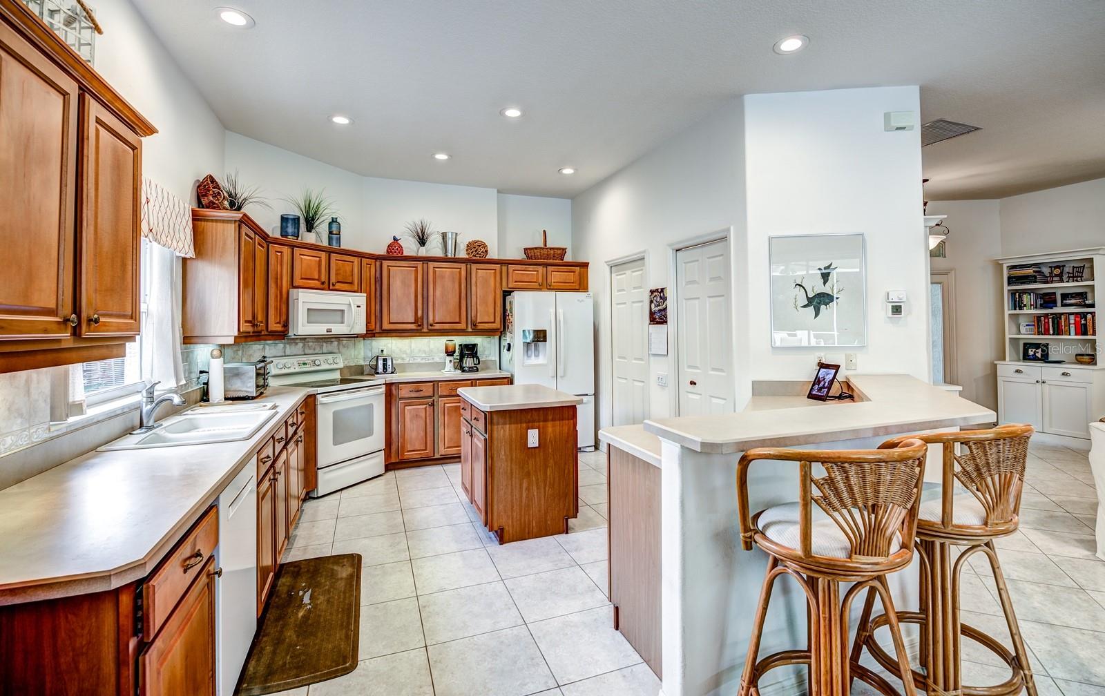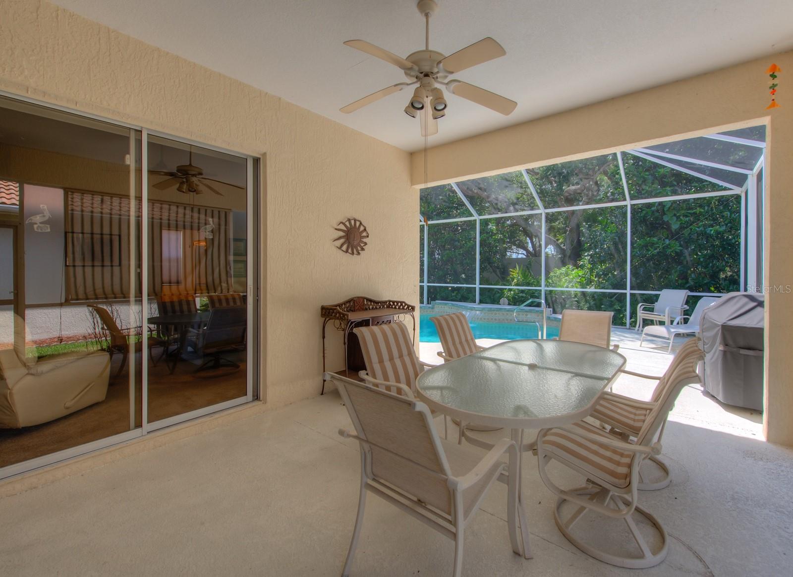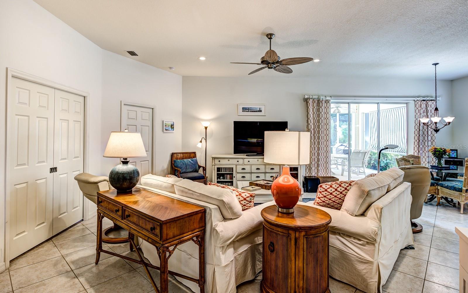 Enjoy the Florida Life style. This lovely 3 bedroom furnished pool home on cul-de-sac is located in Pelican Pointe Golf & Country Club. This light, open floor plan features 20" diagonal tile throughout hallway, great room and kitchen. Great room, with vaulted ceiling opens to your spacious screened lanai overlooking gorgeous tropical landscaping. The private heated pool has a waterfall feature. Oversized kitchen with maple cabinets, large island and a closet pantry. The primary suite has a tray ceiling, sliding doors to the lanai, spacious bathroom with dual sinks, shower and soaking tub. The HOA fee includes lawn care and irrigation, internet, cable TV, clubhouse, heated pool, fitness room, plus tennis and pickleball courts. Pelican Pointe Golf and Country Club has a 27 hole golf course and an active social life. Golf membership is not mandatory. Community has central location. Minutes of historic Venice downtown, beaches, shopping and restaurants.