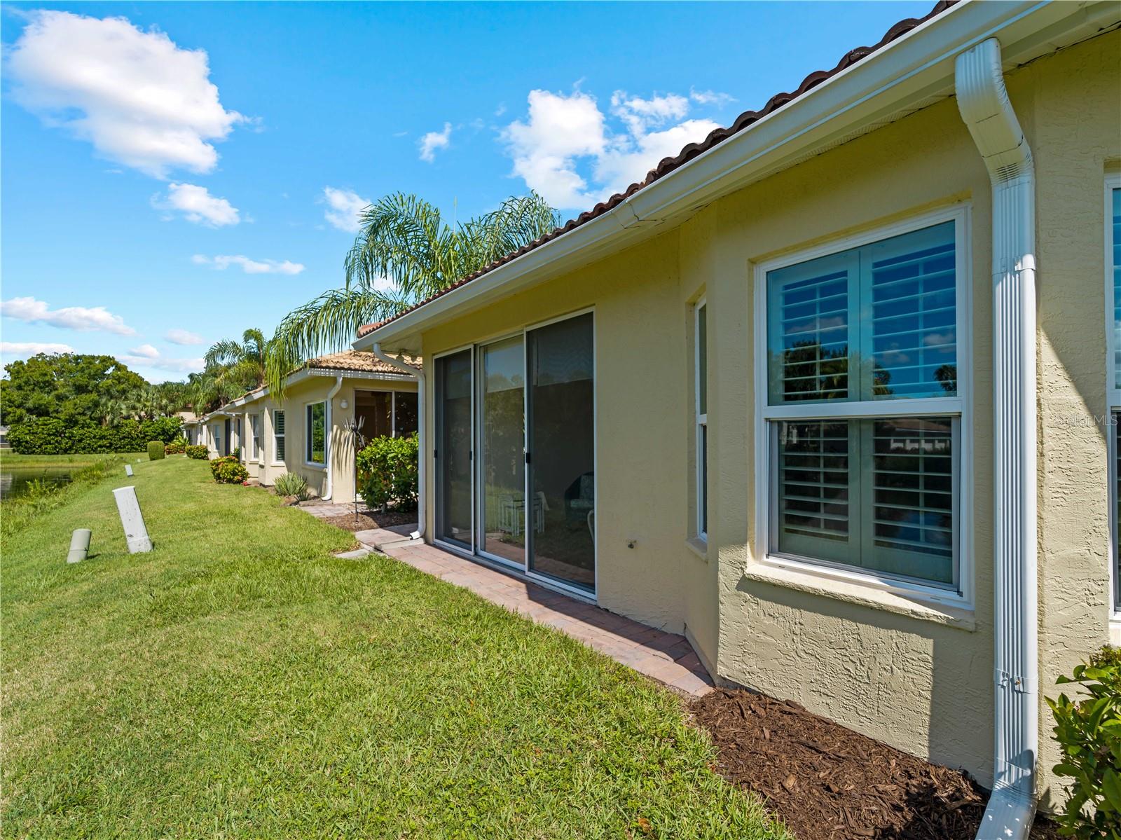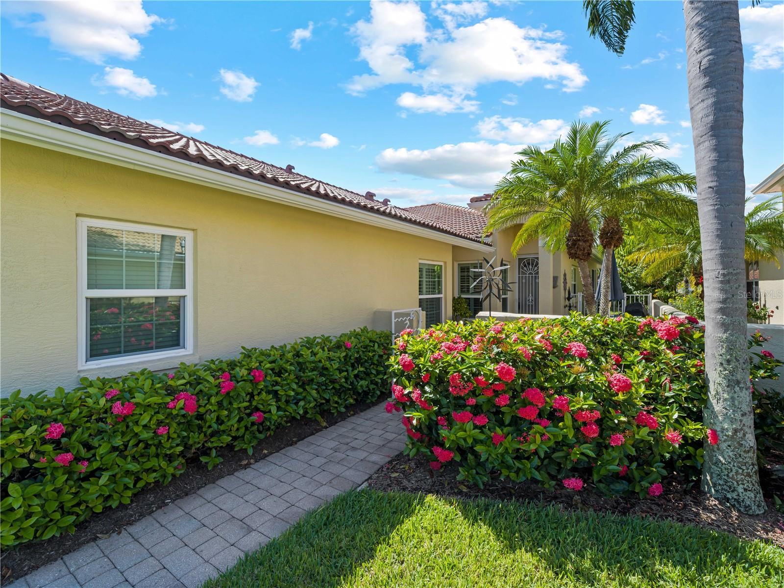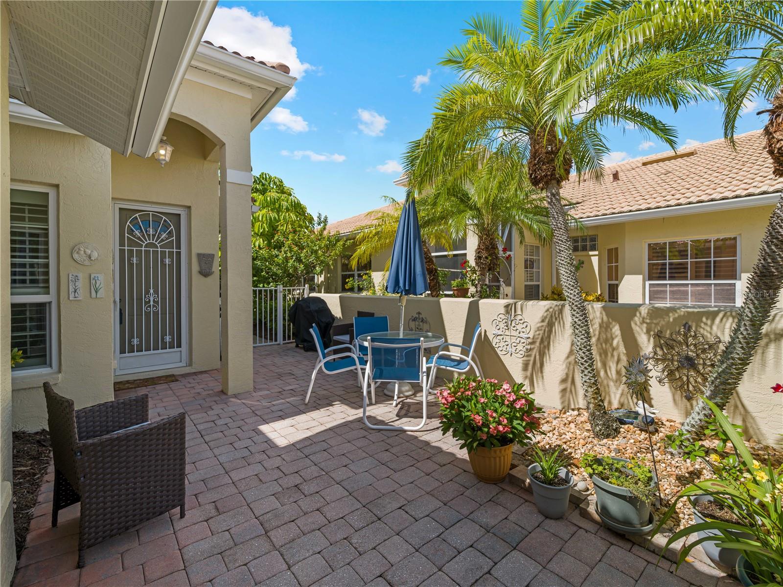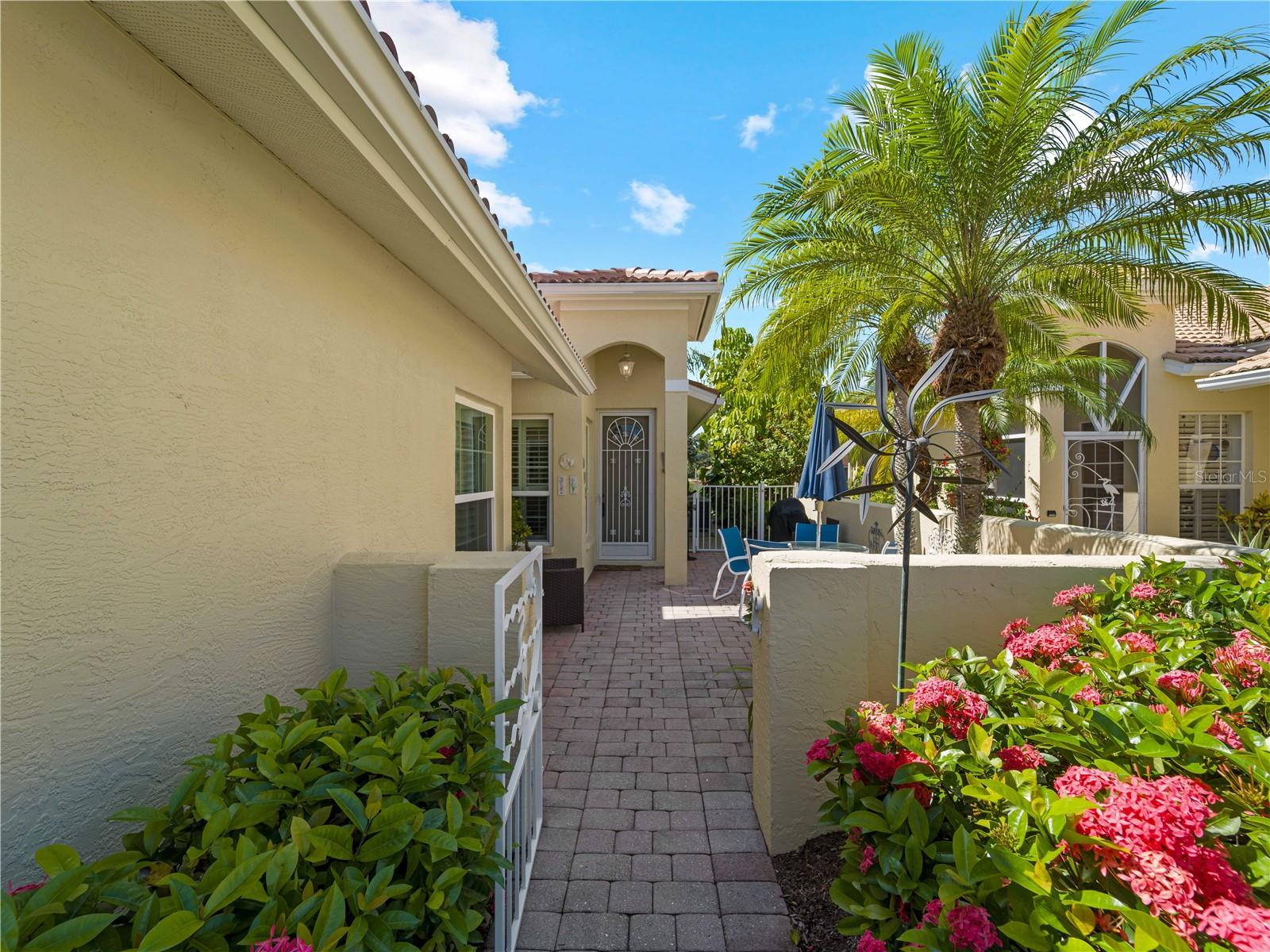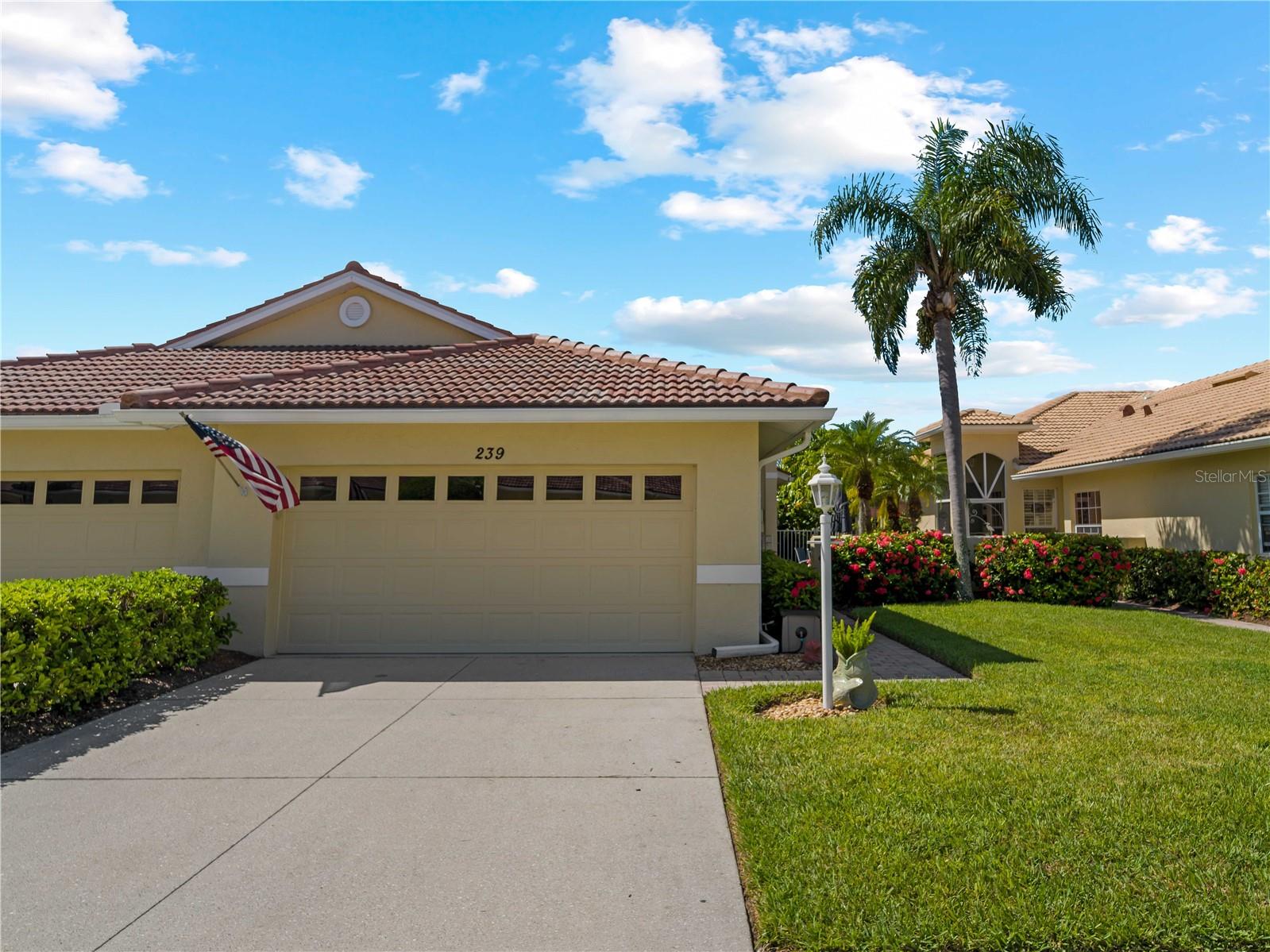 Take a look at this lovely 2 bedroom, 2 bathroom, 2 car garage villa with a den in Vista Del Lago. Located in the heart of Venice. This unit has everything you need to enjoy the gulf coast lifestyle. The exterior of the home includes a new tile roof, upgraded impact resistant windows, an expertly designed and maintained lawn and landscape, and tranquil views of the lake with lighted fountain to the south. Enter through your private courtyard into the open concept living and dining space. High ceilings and wood laminate floors are perfect accents for the space. The plantation shutters provide you with privacy and control over the natural light that you allow into your space. The bay window in the primary bedroom provides ample natural light and views of the lake. The en-suite bathroom has a walk-in shower with upgraded tile. Off the main living space is the office or den. Large enough to accommodate a desk and bookshelves, or a couch and chairs for extra TV space, or could be used as an extra guest bedroom. The kitchen and breakfast nook has tile floors, solid surface countertops, tile backsplash, and custom lighting above and underneath the cabinets. Past the kitchen is a large pantry, a guest bathroom, and the guest bedroom which can accommodate a queen size bedroom set. The home also has a large laundry space on the way to the garage. The all-weather Florida room has sliders that can be opened to allow the cool breeze to flow throughout the home. The community pool provides a relaxing place to cool off and socialize with the neighbors. This cared for home is right in the middle of everything Venice has to offer. Minutes away from beaches, downtown, restaurants, shopping, entertainment, every type of doctors office you may need, and multiple hiking and biking trails. Don’t miss your opportunity to own this piece of paradise. Welcome Home!