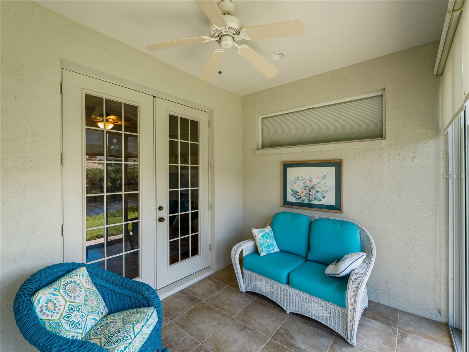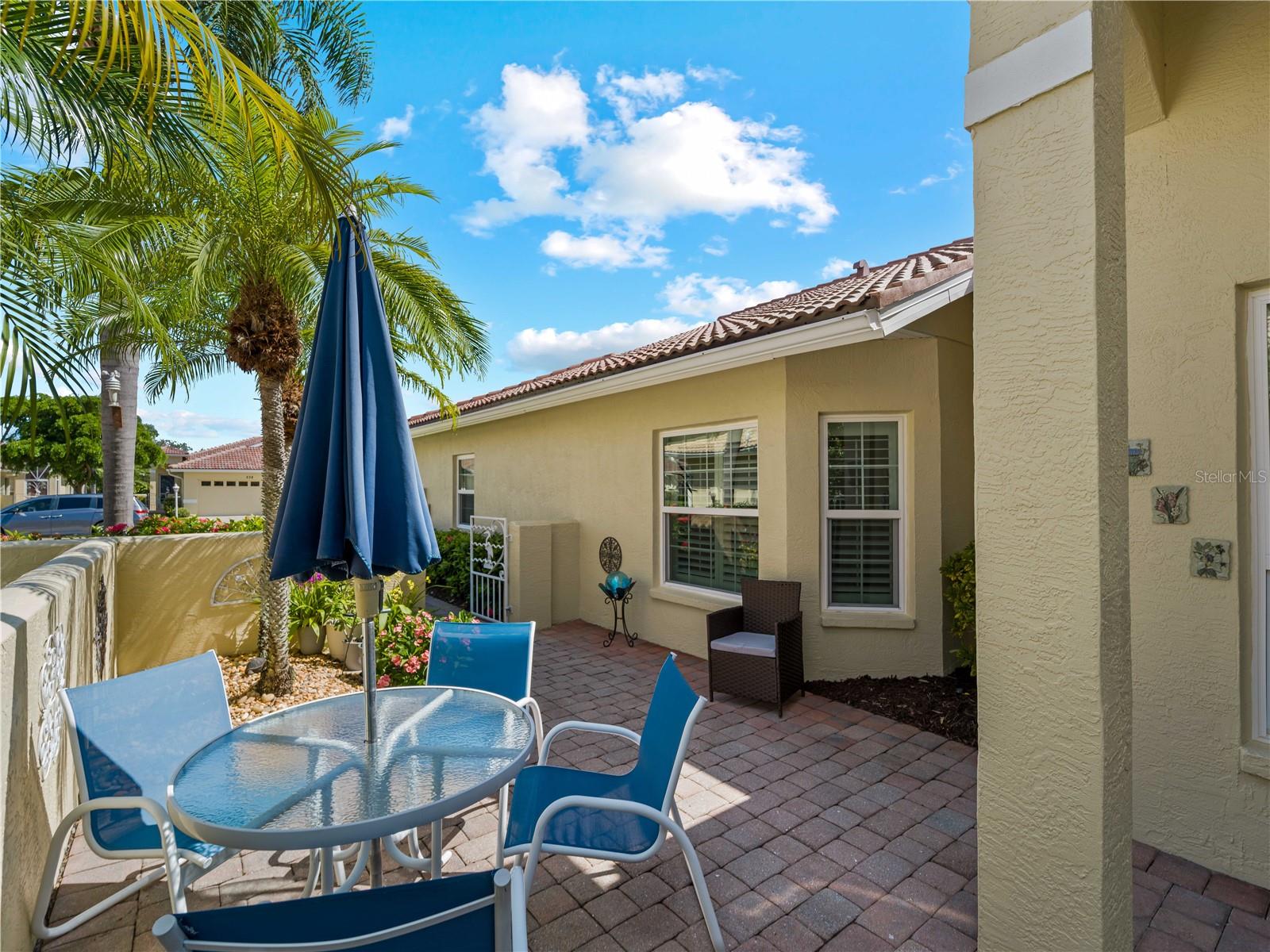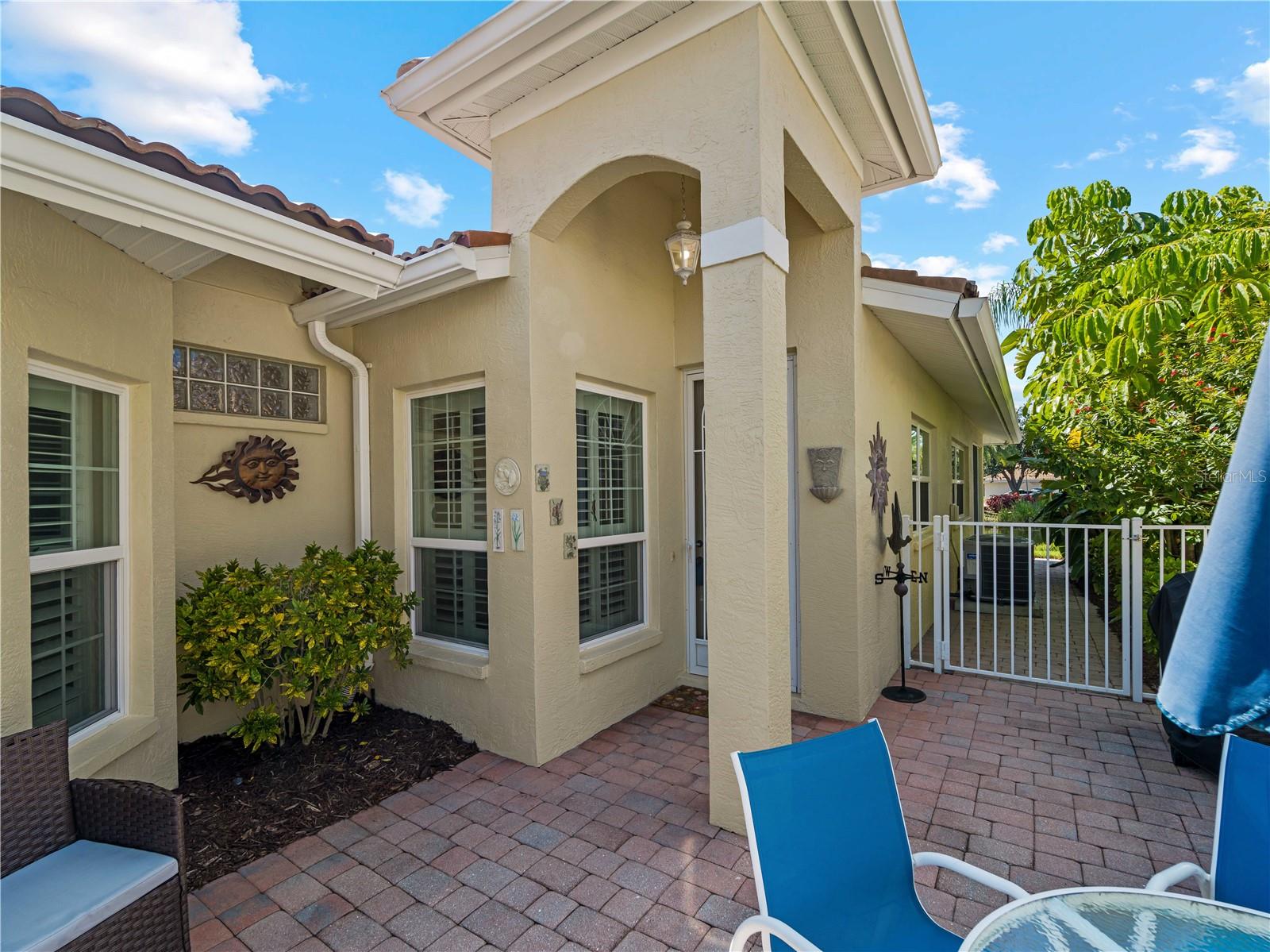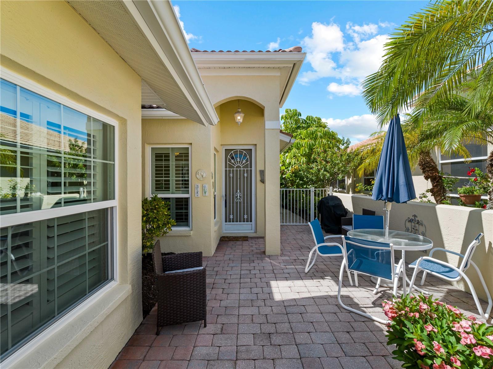 Take a look at this lovely 2 bedroom, 2 bathroom, 2 car garage villa with a den in Vista Del Lago. Located in the heart of Venice. This unit has everything you need to enjoy the gulf coast lifestyle. The exterior of the home includes a new tile roof, upgraded impact resistant windows, an expertly designed and maintained lawn and landscape, and tranquil views of the lake with lighted fountain to the south. Enter through your private courtyard into the open concept living and dining space. High ceilings and wood laminate floors are perfect accents for the space. The plantation shutters provide you with privacy and control over the natural light that you allow into your space. The bay window in the primary bedroom provides ample natural light and views of the lake. The en-suite bathroom has a walk-in shower with upgraded tile. Off the main living space is the office or den. Large enough to accommodate a desk and bookshelves, or a couch and chairs for extra TV space, or could be used as an extra guest bedroom. The kitchen and breakfast nook has tile floors, solid surface countertops, tile backsplash, and custom lighting above and underneath the cabinets. Past the kitchen is a large pantry, a guest bathroom, and the guest bedroom which can accommodate a queen size bedroom set. The home also has a large laundry space on the way to the garage. The all-weather Florida room has sliders that can be opened to allow the cool breeze to flow throughout the home. The community pool provides a relaxing place to cool off and socialize with the neighbors. This cared for home is right in the middle of everything Venice has to offer. Minutes away from beaches, downtown, restaurants, shopping, entertainment, every type of doctors office you may need, and multiple hiking and biking trails. Don’t miss your opportunity to own this piece of paradise. Welcome Home!