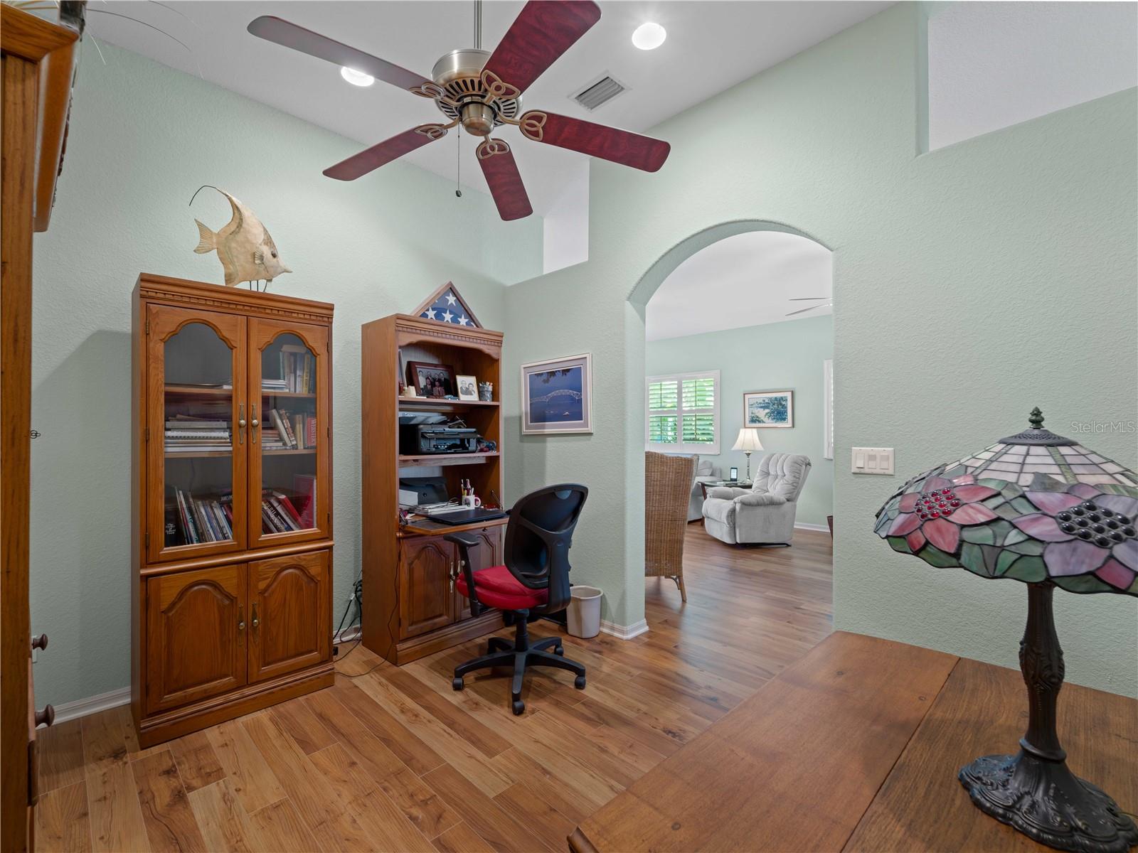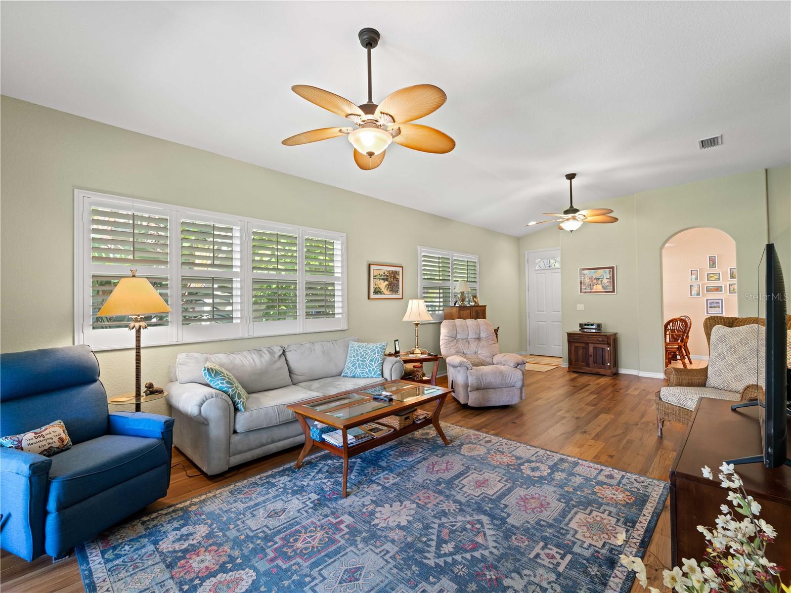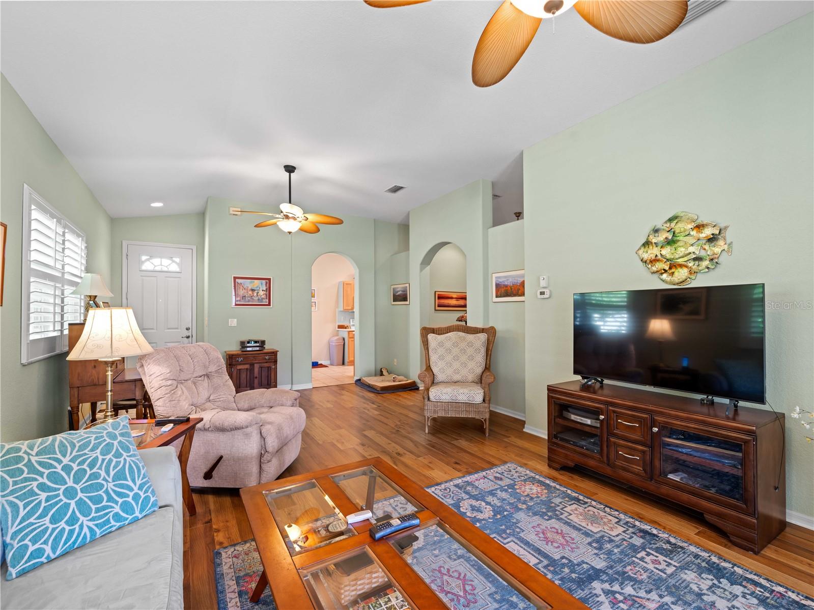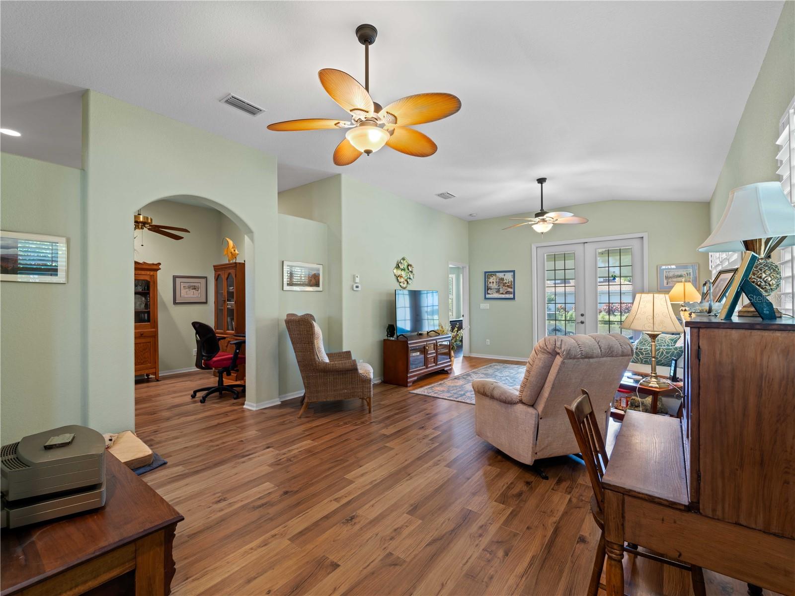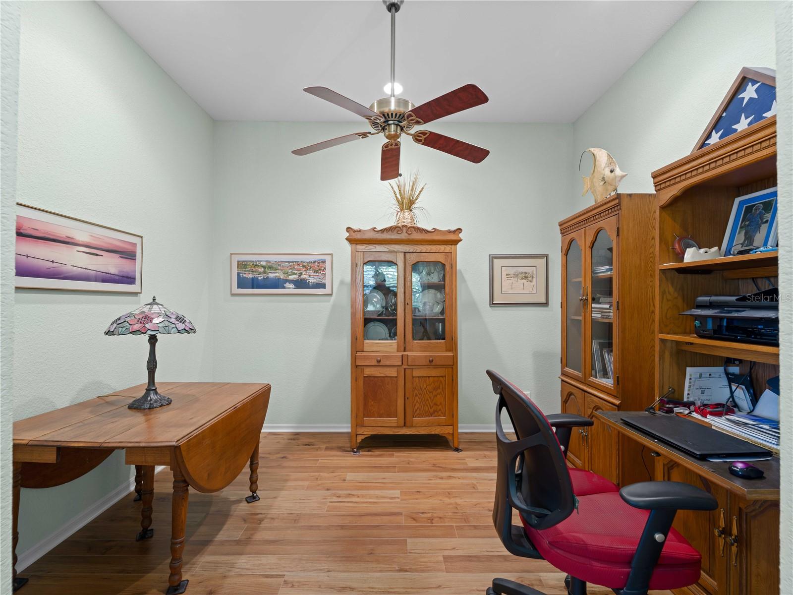Take a look at this lovely 2 bedroom, 2 bathroom, 2 car garage villa with a den in Vista Del Lago. Located in the heart of Venice. This unit has everything you need to enjoy the gulf coast lifestyle. The exterior of the home includes a new tile roof, upgraded impact resistant windows, an expertly designed and maintained lawn and landscape, and tranquil views of the lake with lighted fountain to the south. Enter through your private courtyard into the open concept living and dining space. High ceilings and wood laminate floors are perfect accents for the space. The plantation shutters provide you with privacy and control over the natural light that you allow into your space. The bay window in the primary bedroom provides ample natural light and views of the lake. The en-suite bathroom has a walk-in shower with upgraded tile. Off the main living space is the office or den. Large enough to accommodate a desk and bookshelves, or a couch and chairs for extra TV space, or could be used as an extra guest bedroom. The kitchen and breakfast nook has tile floors, solid surface countertops, tile backsplash, and custom lighting above and underneath the cabinets. Past the kitchen is a large pantry, a guest bathroom, and the guest bedroom which can accommodate a queen size bedroom set. The home also has a large laundry space on the way to the garage. The all-weather Florida room has sliders that can be opened to allow the cool breeze to flow throughout the home. The community pool provides a relaxing place to cool off and socialize with the neighbors. This cared for home is right in the middle of everything Venice has to offer. Minutes away from beaches, downtown, restaurants, shopping, entertainment, every type of doctors office you may need, and multiple hiking and biking trails. Don’t miss your opportunity to own this piece of paradise. Welcome Home!