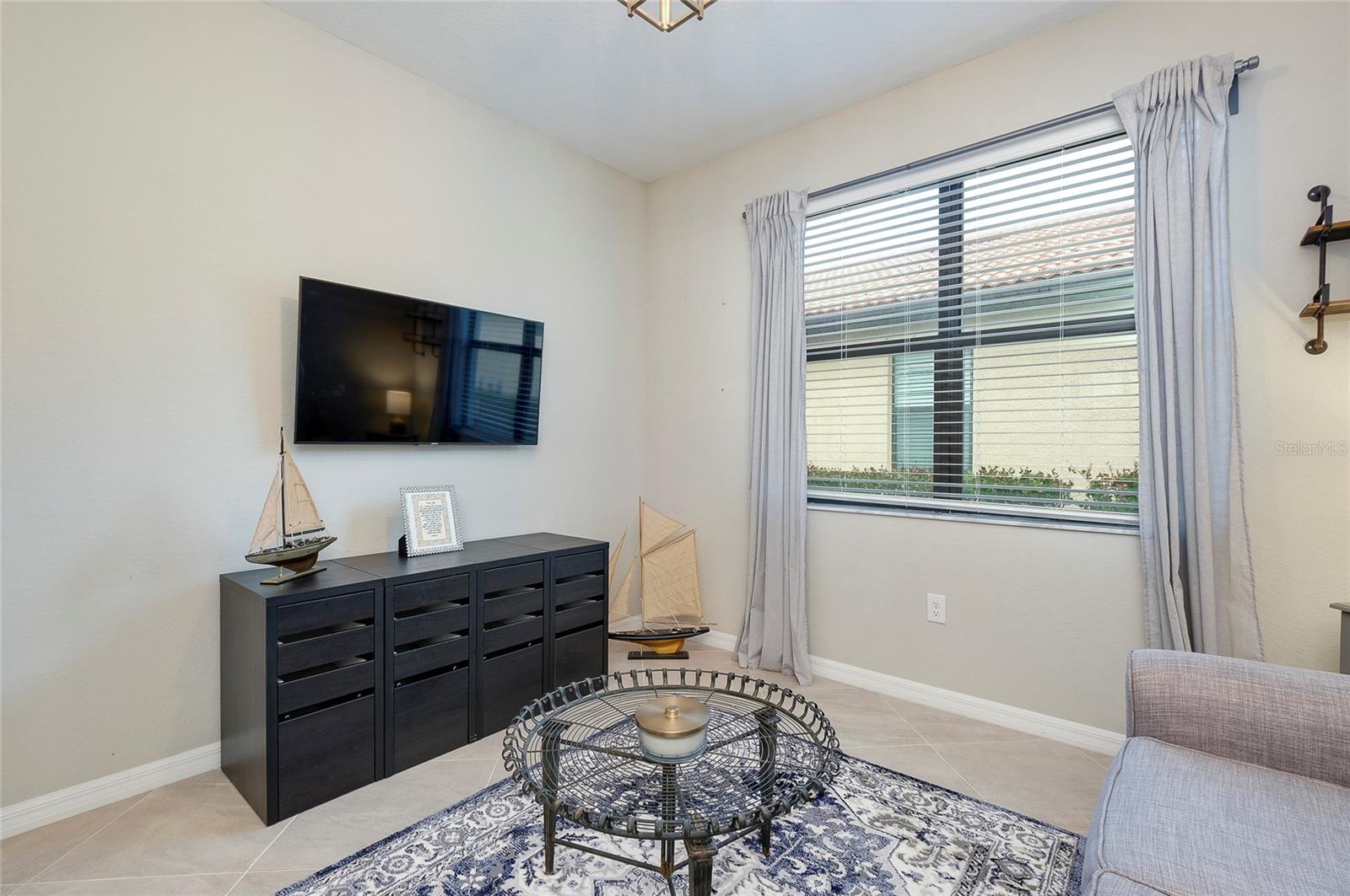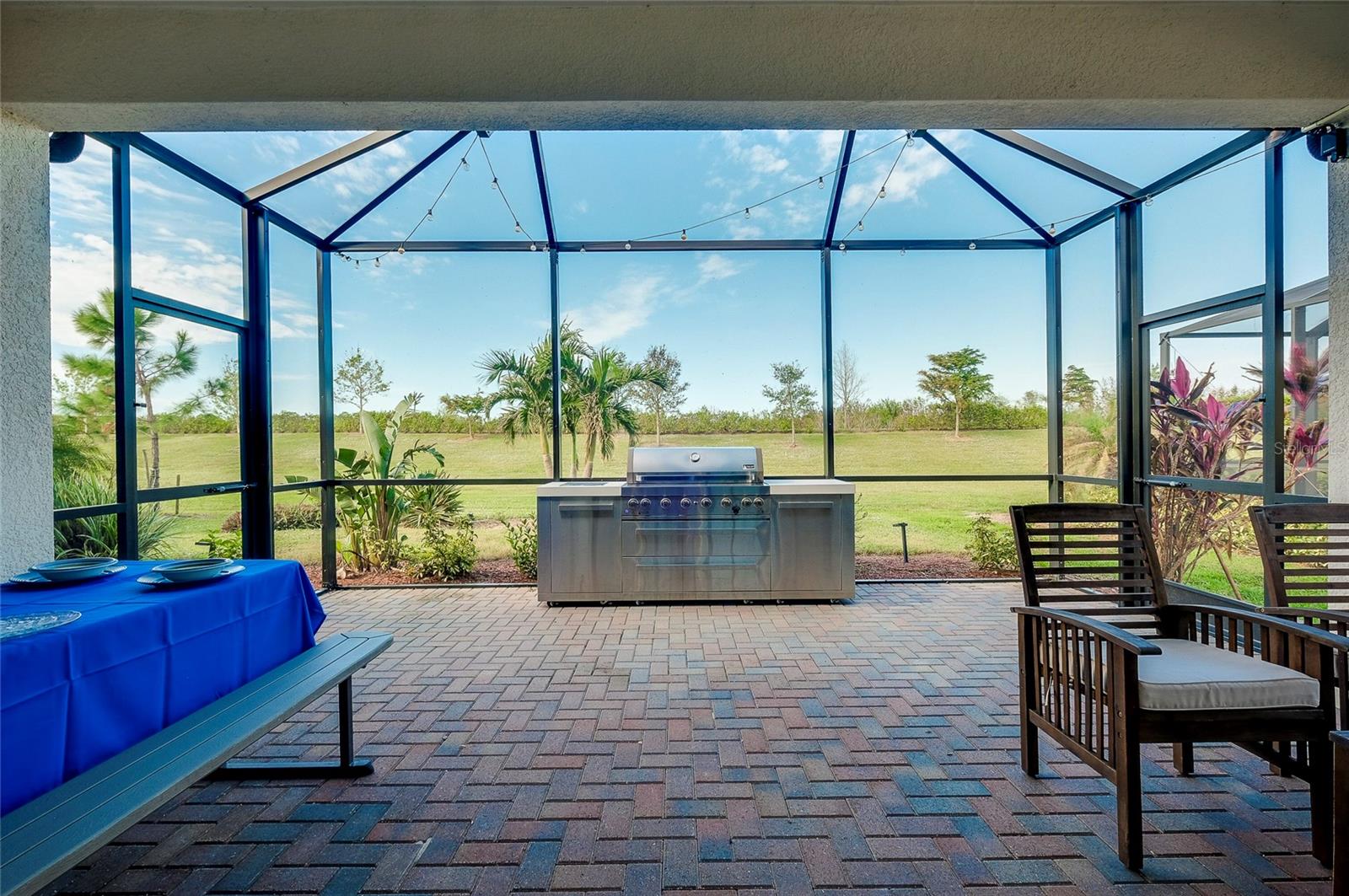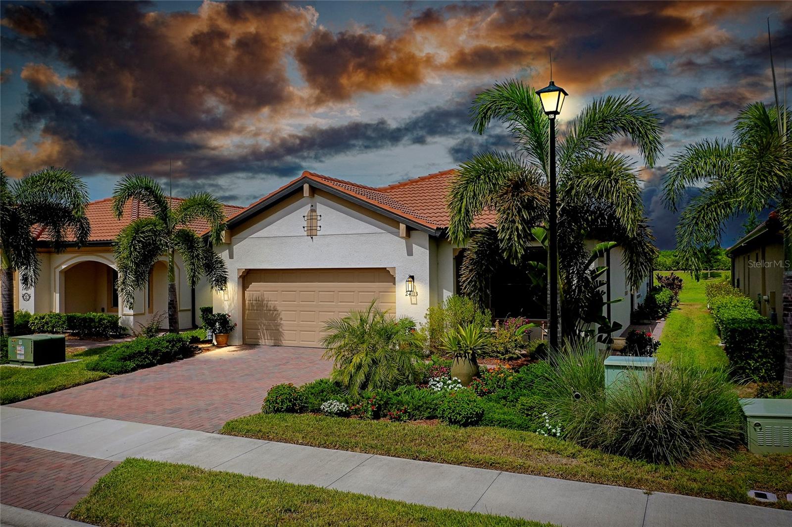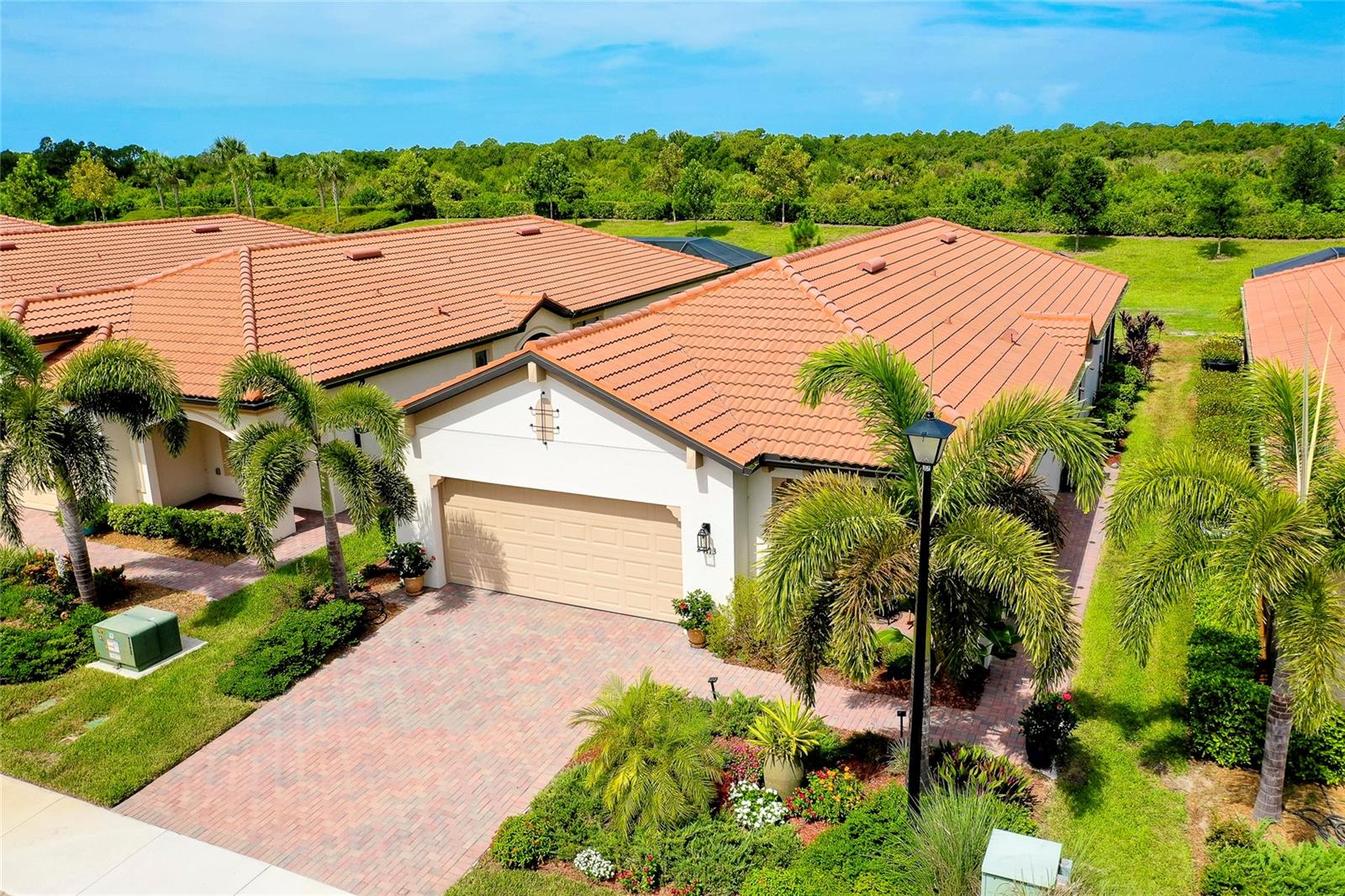 This SARASOTA NATIONAL home is only 3 years old and MOVE-IN READY and is TURN KEY MOVE-IN READY (minus a few personal items in and on the living room TV console)! Beautifully decorated and landscaped, this home is located in the golf community of Sarasota National and includes 2 GOLF MEMBERSHIPS to the Gordon Lewis designed 18 hole golf course along with access to the exclusive 19TH HOLE DINING facility. This smart home in pristine condition offers 1,907 sq ft of living space with high ceilings, tile floors in common areas, 2 spacious bedrooms, 2 full baths, and an enclosed office/den. The bright kitchen features light cabinets and granite countertops, new SUBWAY TILE BACKSPLASH, countertop seating, LG range with a builtin air fryer, and Bosch dishwasher, and an ample dining area. The laundry room features an upgraded LG front-load washer & dryer. A super shower with a frameless glass door and dual sinks complete the en-suite primary bath. In the living room, the triple sliding glass doors open up to an 18 x 20 screened-in EXTENDED LANAI, which is complete with a 7’ stainless grill with a gas burner and TV which both convey with the home. The lanai provides a peaceful space on the PRESERVE and there is also an ADDITIONAL GRASSY AREA behind the home (very convenient for those with pets). NEW MOTORIZED BLINDS were recently installed on the triple sliding glass doors. There is a generous 2-car garage with EPOXY flooring as well as a whole home surge protector and hurricane shutters. PULL-DOWN STEPS to the ATTIC as well as flooring in the attic were added recently for ease of access. Sarasota National is a private guard-gated community on a stunning 2,400 Acre AUDUBON Sanctuary, with a dog park, endless walking & bike trails, and beautiful lakes throughout the community. It has every imaginable amenity inside the 30,000 sq ft clubhouse, including a RESORT-STYLE swimming pool with lap lanes, UPSCALE AND CASUAL DINING (indoor palm club dining and outdoor TIKI BAR dining by the pool), 7,000, sq ft fitness center, a complementary DRIVING RANGE, full service SPA, tennis, and pickle ball - you won't be bored! The HOA fee includes landscaping maintenance, irrigation, basic cable, pest control, all the amenities including TWO GOLF MEMBERSHIPS and access to the 19th Hole (additional on-site bar/restaurant for golf members only). Sarasota National is centrally located near 11 county beaches, Historic Venice, Wellen Park, shopping, dining, medical facilities, Atlanta Braves Stadium, and airports.