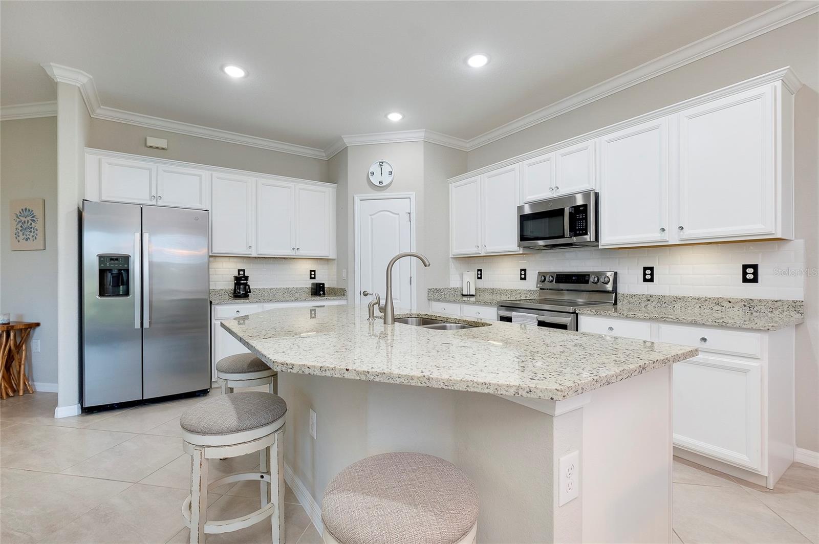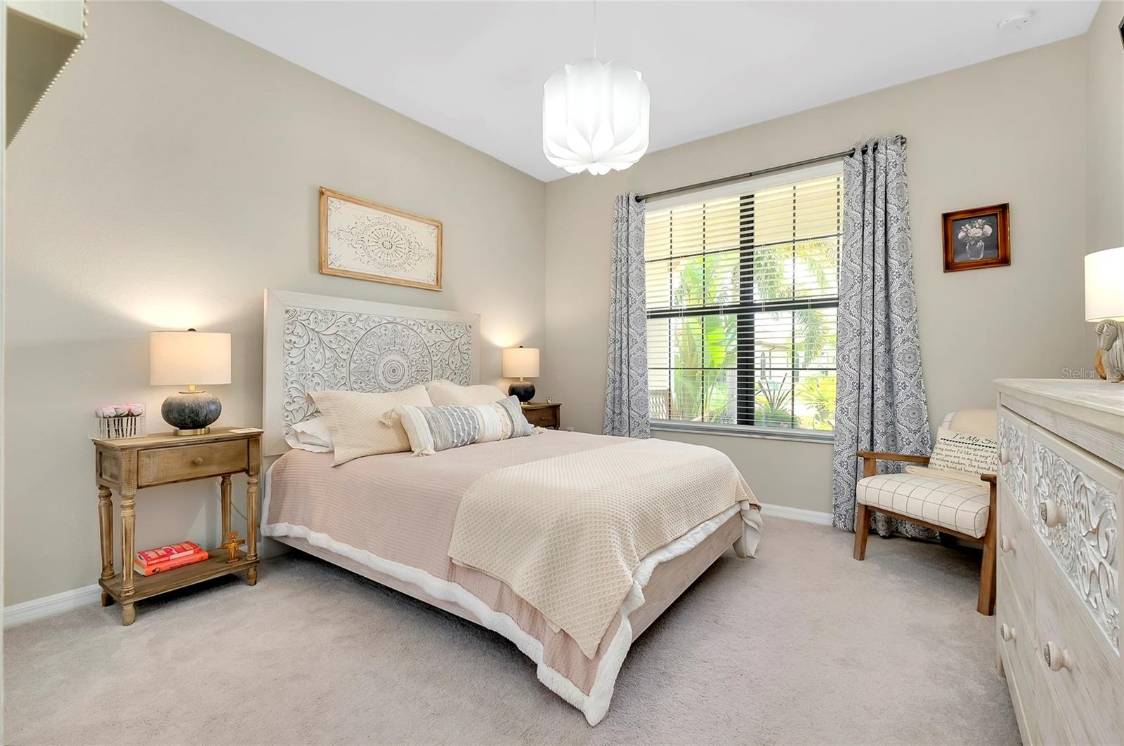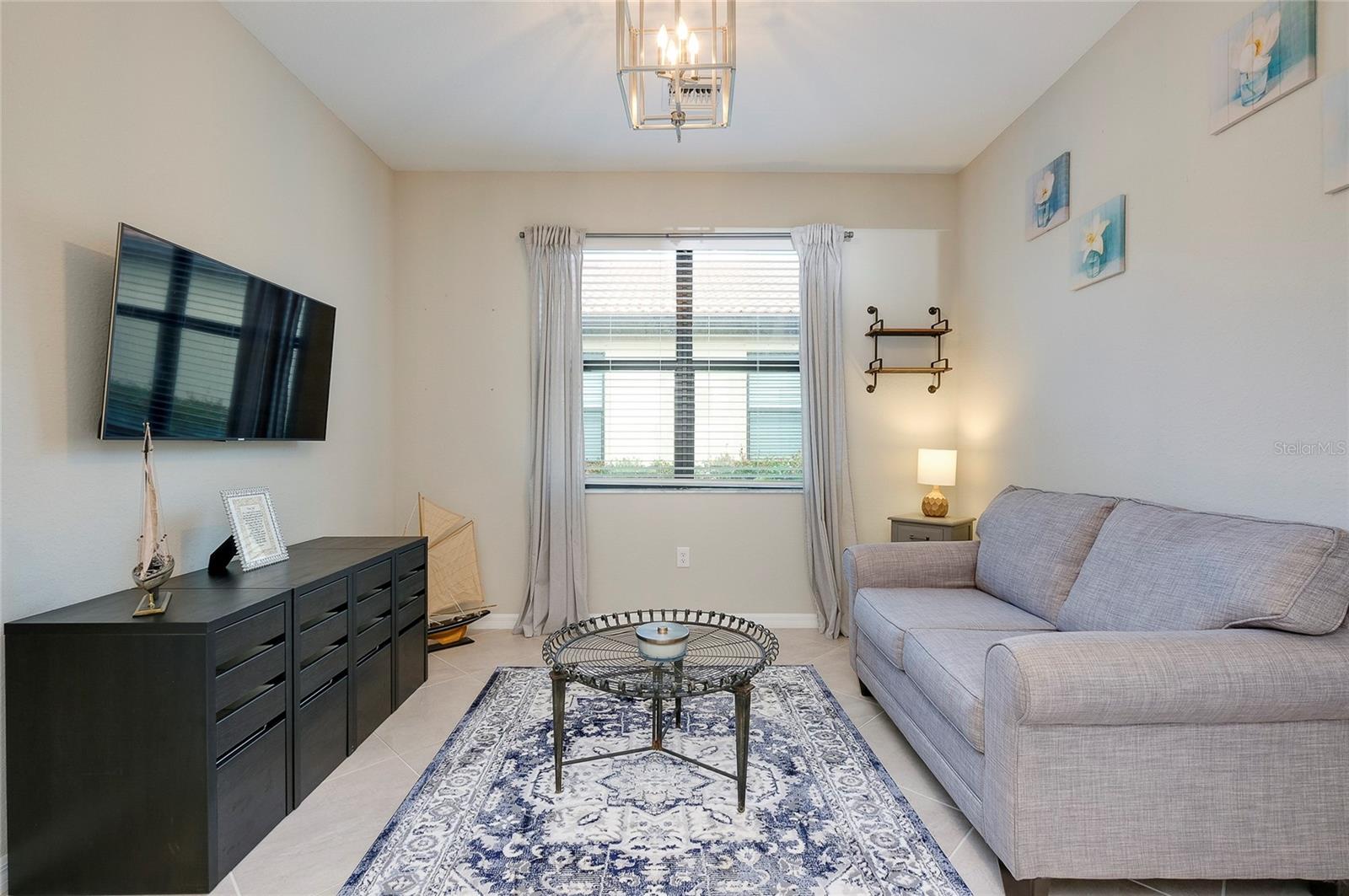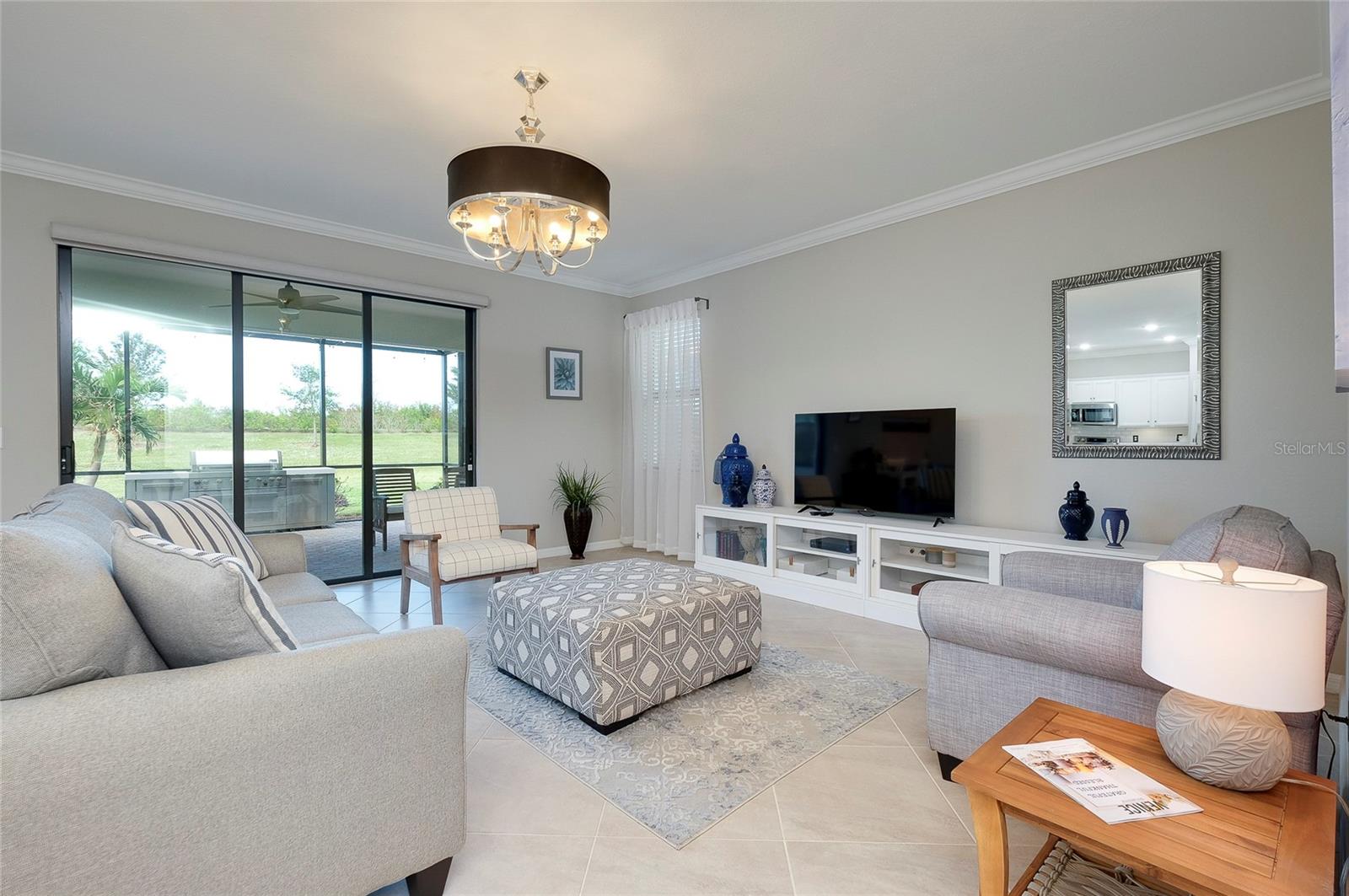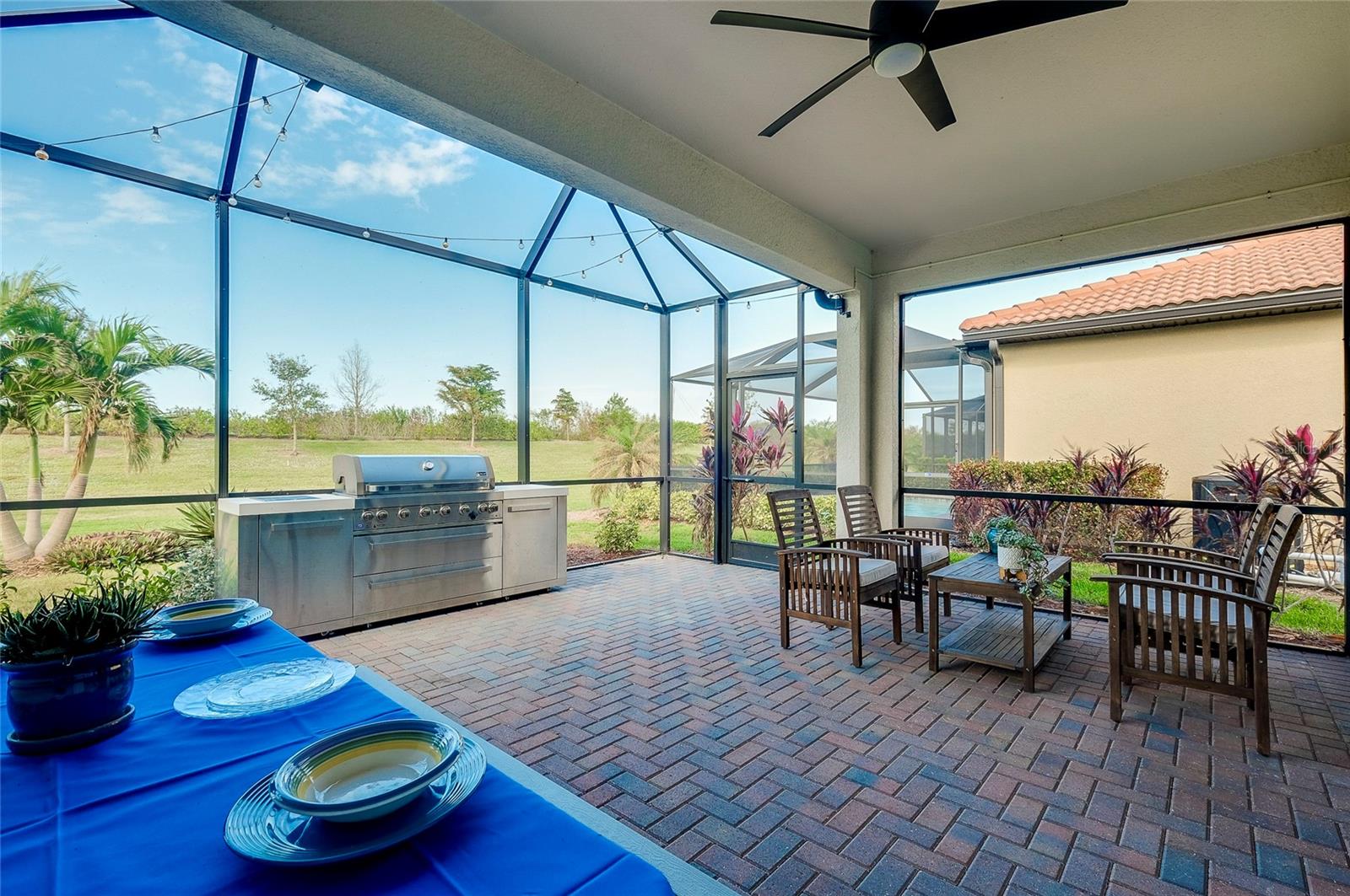 This SARASOTA NATIONAL home is only 3 years old and MOVE-IN READY and is TURN KEY MOVE-IN READY (minus a few personal items in and on the living room TV console)! Beautifully decorated and landscaped, this home is located in the golf community of Sarasota National and includes 2 GOLF MEMBERSHIPS to the Gordon Lewis designed 18 hole golf course along with access to the exclusive 19TH HOLE DINING facility. This smart home in pristine condition offers 1,907 sq ft of living space with high ceilings, tile floors in common areas, 2 spacious bedrooms, 2 full baths, and an enclosed office/den. The bright kitchen features light cabinets and granite countertops, new SUBWAY TILE BACKSPLASH, countertop seating, LG range with a builtin air fryer, and Bosch dishwasher, and an ample dining area. The laundry room features an upgraded LG front-load washer & dryer. A super shower with a frameless glass door and dual sinks complete the en-suite primary bath. In the living room, the triple sliding glass doors open up to an 18 x 20 screened-in EXTENDED LANAI, which is complete with a 7’ stainless grill with a gas burner and TV which both convey with the home. The lanai provides a peaceful space on the PRESERVE and there is also an ADDITIONAL GRASSY AREA behind the home (very convenient for those with pets). NEW MOTORIZED BLINDS were recently installed on the triple sliding glass doors. There is a generous 2-car garage with EPOXY flooring as well as a whole home surge protector and hurricane shutters. PULL-DOWN STEPS to the ATTIC as well as flooring in the attic were added recently for ease of access. Sarasota National is a private guard-gated community on a stunning 2,400 Acre AUDUBON Sanctuary, with a dog park, endless walking & bike trails, and beautiful lakes throughout the community. It has every imaginable amenity inside the 30,000 sq ft clubhouse, including a RESORT-STYLE swimming pool with lap lanes, UPSCALE AND CASUAL DINING (indoor palm club dining and outdoor TIKI BAR dining by the pool), 7,000, sq ft fitness center, a complementary DRIVING RANGE, full service SPA, tennis, and pickle ball - you won't be bored! The HOA fee includes landscaping maintenance, irrigation, basic cable, pest control, all the amenities including TWO GOLF MEMBERSHIPS and access to the 19th Hole (additional on-site bar/restaurant for golf members only). Sarasota National is centrally located near 11 county beaches, Historic Venice, Wellen Park, shopping, dining, medical facilities, Atlanta Braves Stadium, and airports.