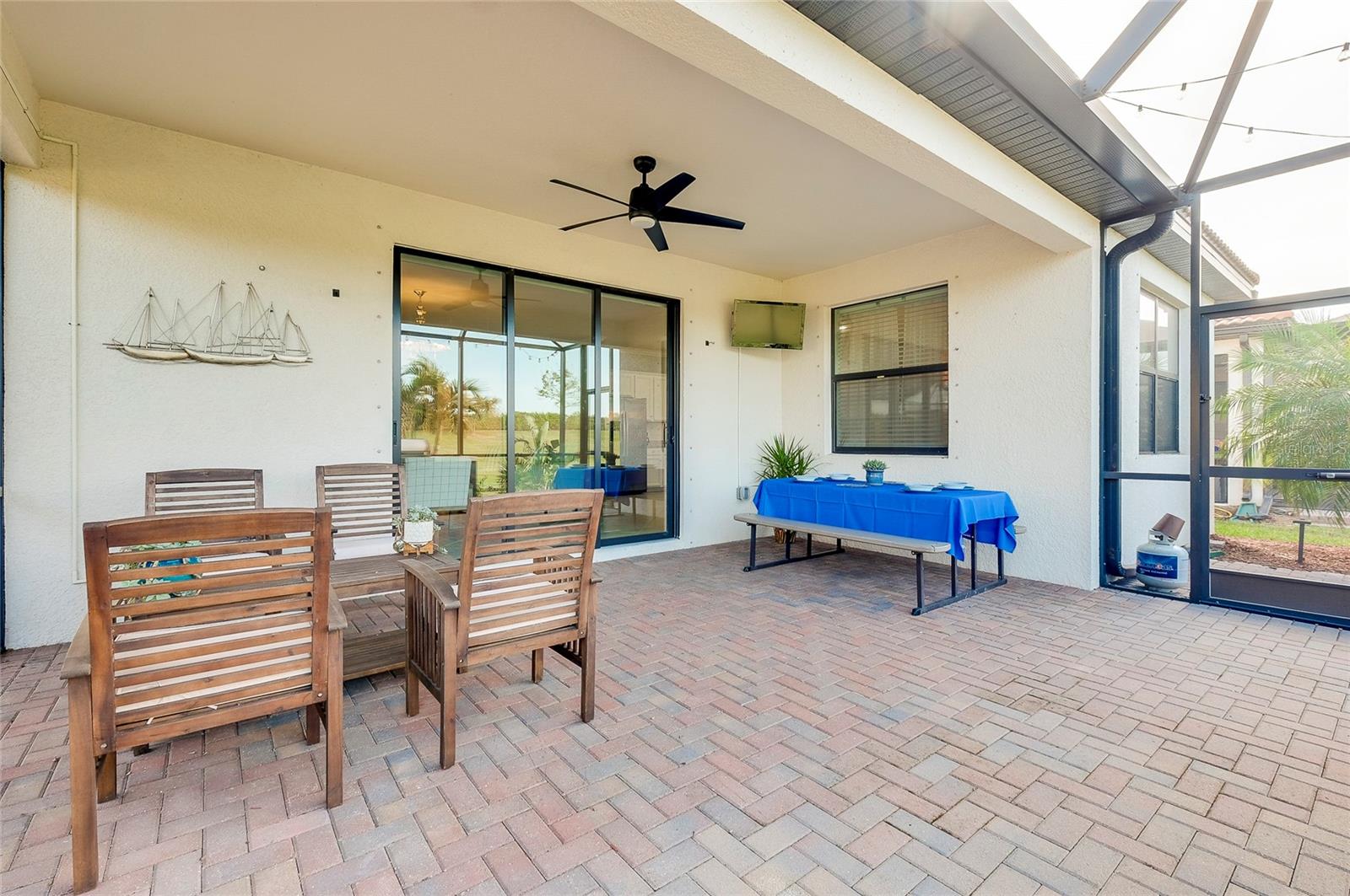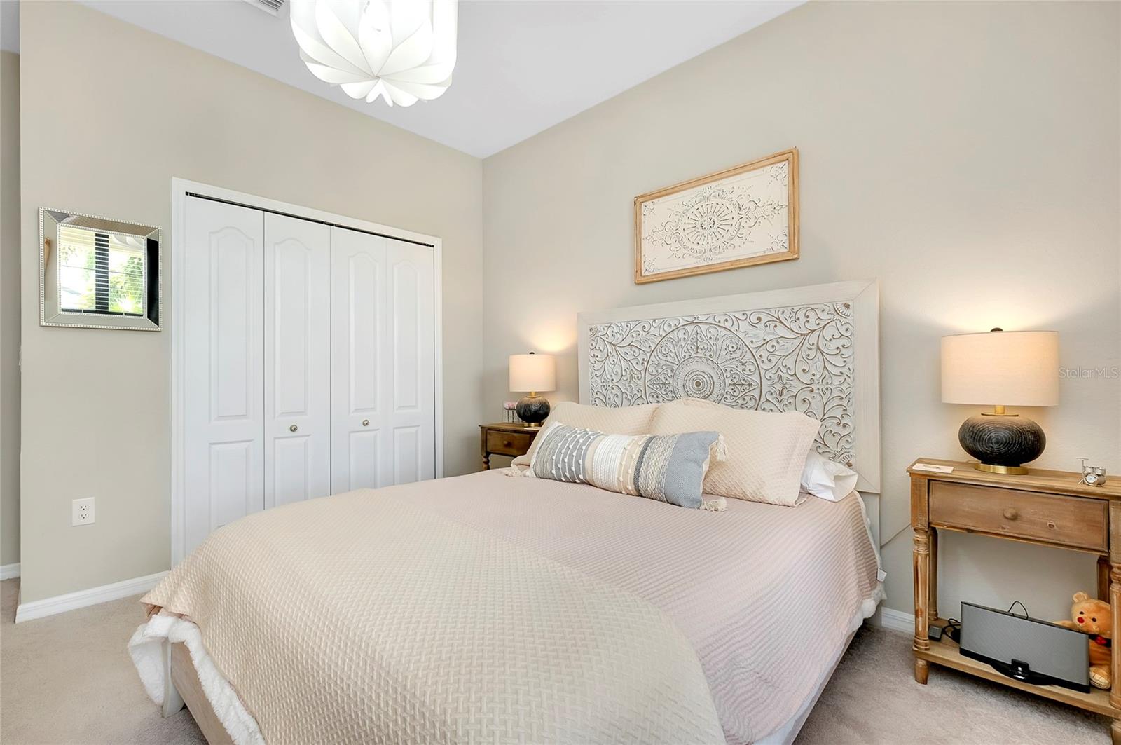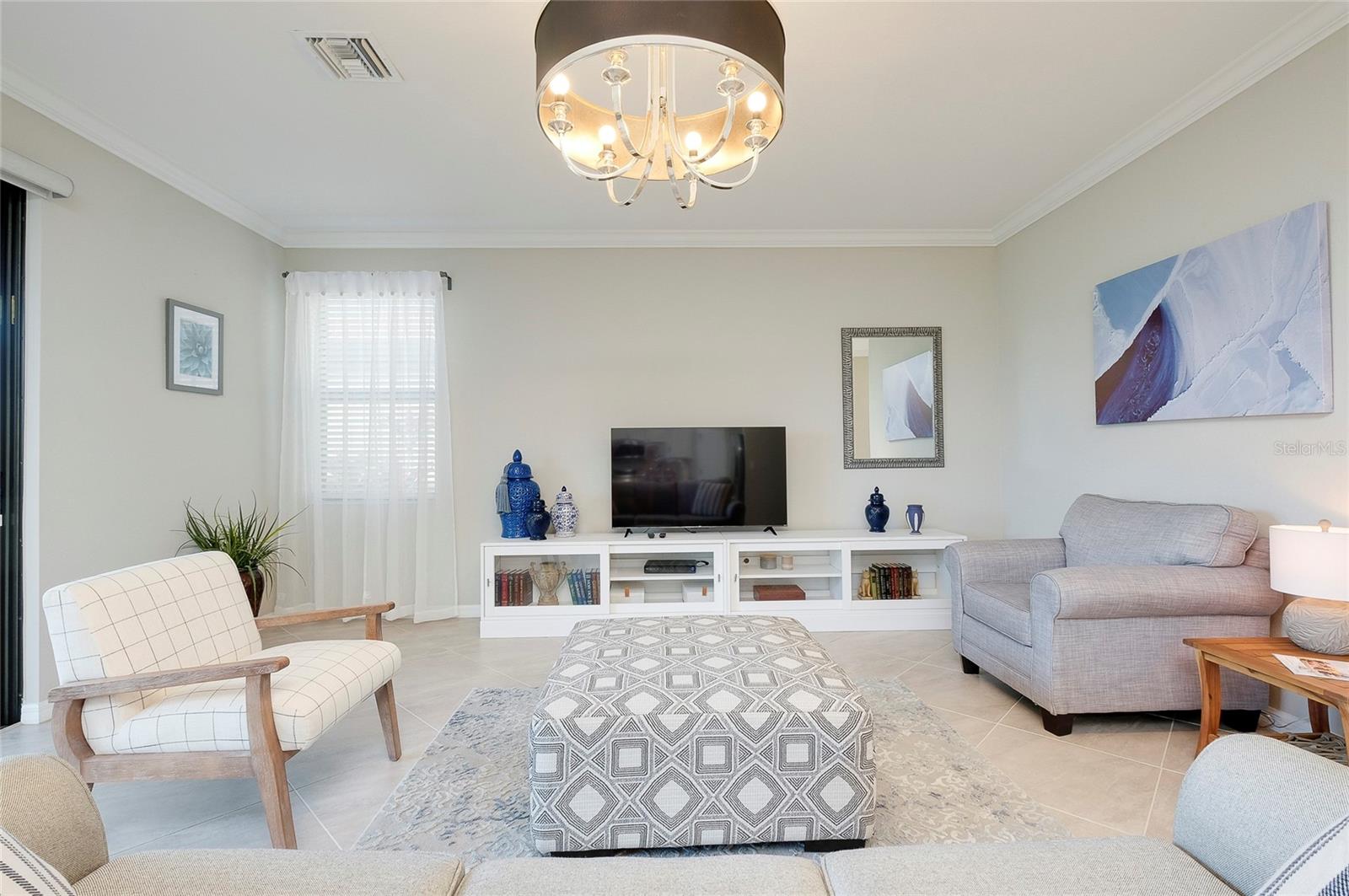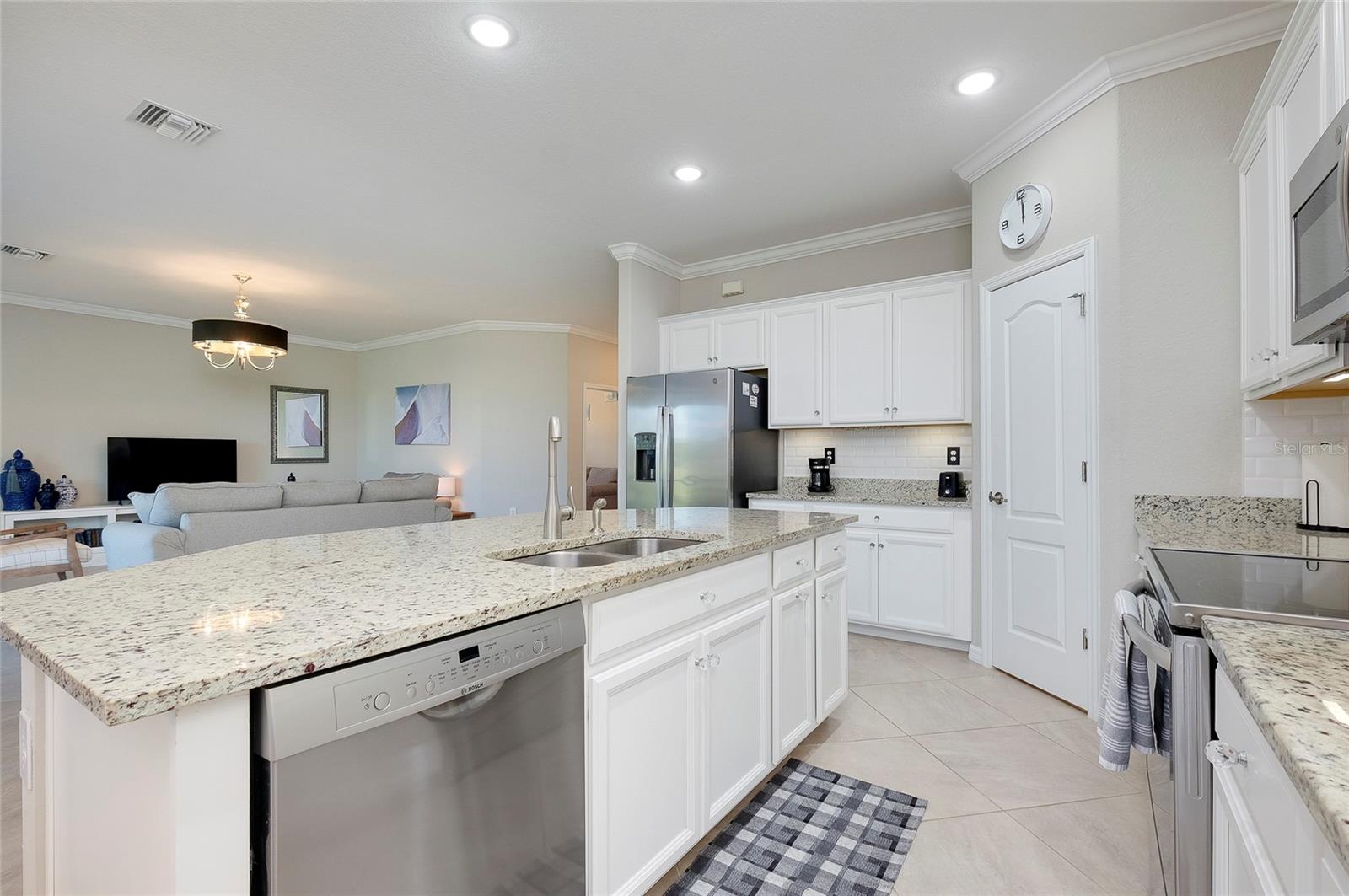 This SARASOTA NATIONAL home is only 3 years old and MOVE-IN READY and is TURN KEY MOVE-IN READY (minus a few personal items in and on the living room TV console)! Beautifully decorated and landscaped, this home is located in the golf community of Sarasota National and includes 2 GOLF MEMBERSHIPS to the Gordon Lewis designed 18 hole golf course along with access to the exclusive 19TH HOLE DINING facility. This smart home in pristine condition offers 1,907 sq ft of living space with high ceilings, tile floors in common areas, 2 spacious bedrooms, 2 full baths, and an enclosed office/den. The bright kitchen features light cabinets and granite countertops, new SUBWAY TILE BACKSPLASH, countertop seating, LG range with a builtin air fryer, and Bosch dishwasher, and an ample dining area. The laundry room features an upgraded LG front-load washer & dryer. A super shower with a frameless glass door and dual sinks complete the en-suite primary bath. In the living room, the triple sliding glass doors open up to an 18 x 20 screened-in EXTENDED LANAI, which is complete with a 7’ stainless grill with a gas burner and TV which both convey with the home. The lanai provides a peaceful space on the PRESERVE and there is also an ADDITIONAL GRASSY AREA behind the home (very convenient for those with pets). NEW MOTORIZED BLINDS were recently installed on the triple sliding glass doors. There is a generous 2-car garage with EPOXY flooring as well as a whole home surge protector and hurricane shutters. PULL-DOWN STEPS to the ATTIC as well as flooring in the attic were added recently for ease of access. Sarasota National is a private guard-gated community on a stunning 2,400 Acre AUDUBON Sanctuary, with a dog park, endless walking & bike trails, and beautiful lakes throughout the community. It has every imaginable amenity inside the 30,000 sq ft clubhouse, including a RESORT-STYLE swimming pool with lap lanes, UPSCALE AND CASUAL DINING (indoor palm club dining and outdoor TIKI BAR dining by the pool), 7,000, sq ft fitness center, a complementary DRIVING RANGE, full service SPA, tennis, and pickle ball - you won't be bored! The HOA fee includes landscaping maintenance, irrigation, basic cable, pest control, all the amenities including TWO GOLF MEMBERSHIPS and access to the 19th Hole (additional on-site bar/restaurant for golf members only). Sarasota National is centrally located near 11 county beaches, Historic Venice, Wellen Park, shopping, dining, medical facilities, Atlanta Braves Stadium, and airports.
