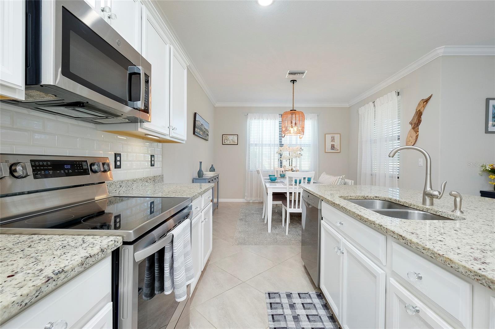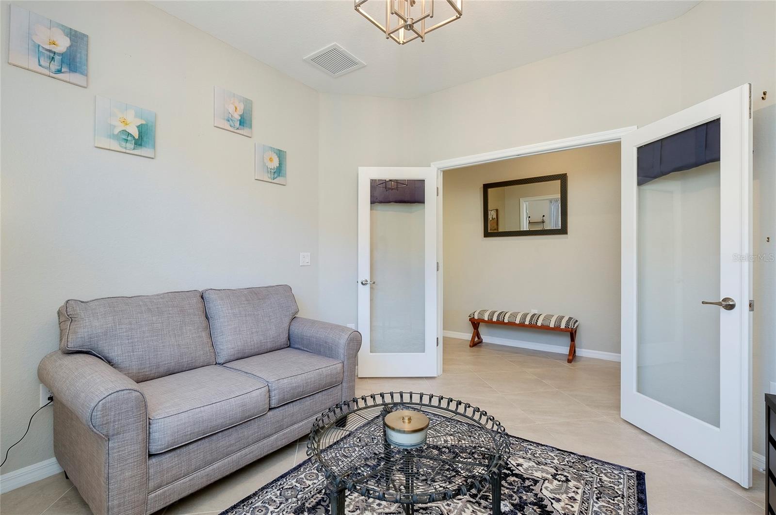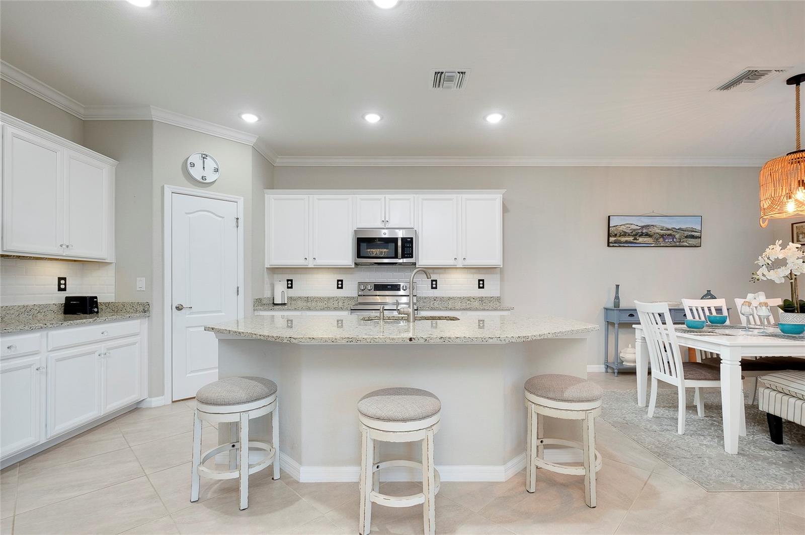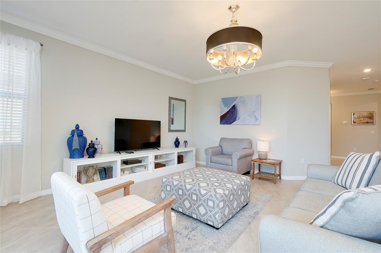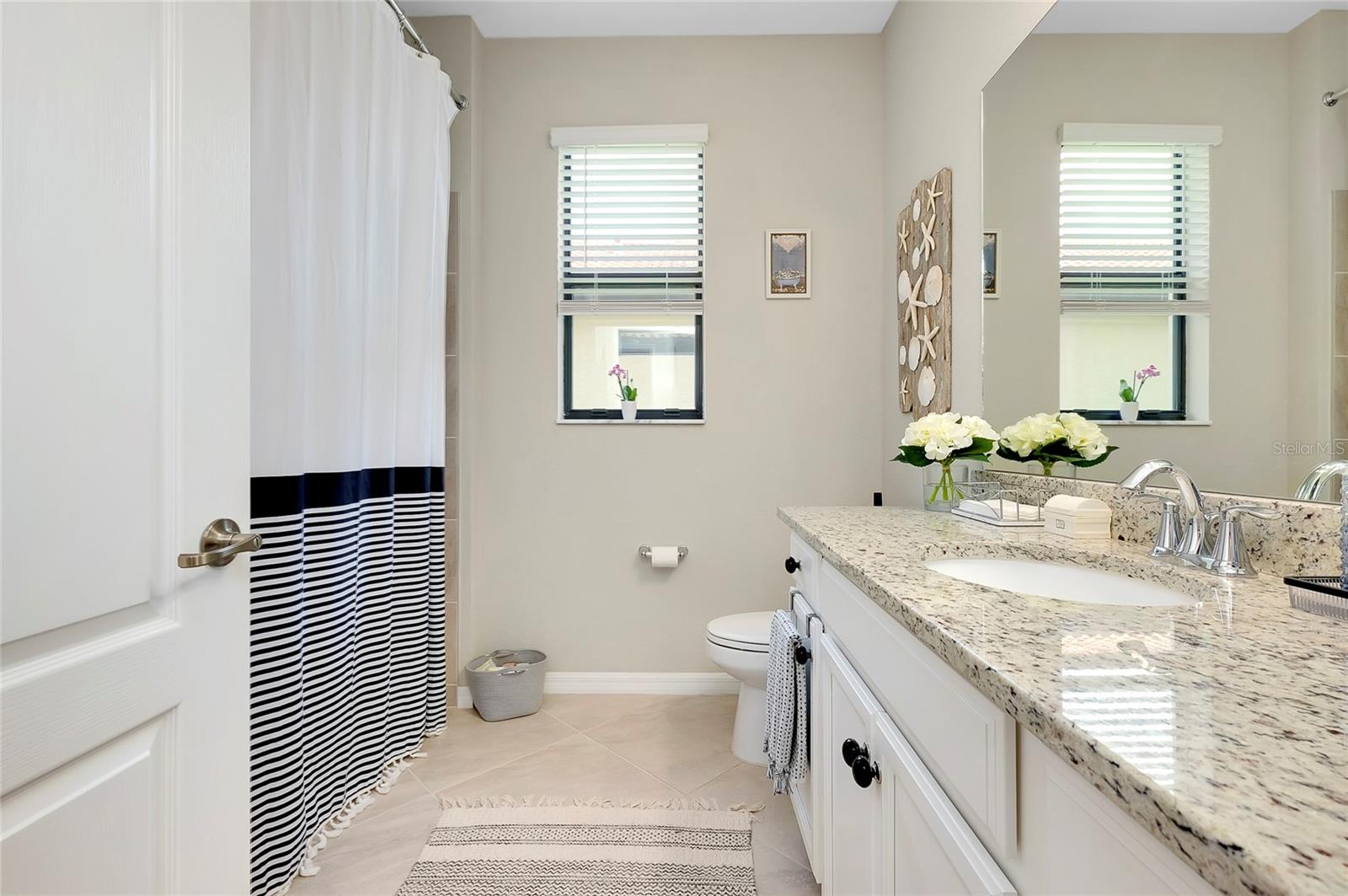 This SARASOTA NATIONAL home is only 3 years old and MOVE-IN READY and is TURN KEY MOVE-IN READY (minus a few personal items in and on the living room TV console)! Beautifully decorated and landscaped, this home is located in the golf community of Sarasota National and includes 2 GOLF MEMBERSHIPS to the Gordon Lewis designed 18 hole golf course along with access to the exclusive 19TH HOLE DINING facility. This smart home in pristine condition offers 1,907 sq ft of living space with high ceilings, tile floors in common areas, 2 spacious bedrooms, 2 full baths, and an enclosed office/den. The bright kitchen features light cabinets and granite countertops, new SUBWAY TILE BACKSPLASH, countertop seating, LG range with a builtin air fryer, and Bosch dishwasher, and an ample dining area. The laundry room features an upgraded LG front-load washer & dryer. A super shower with a frameless glass door and dual sinks complete the en-suite primary bath. In the living room, the triple sliding glass doors open up to an 18 x 20 screened-in EXTENDED LANAI, which is complete with a 7’ stainless grill with a gas burner and TV which both convey with the home. The lanai provides a peaceful space on the PRESERVE and there is also an ADDITIONAL GRASSY AREA behind the home (very convenient for those with pets). NEW MOTORIZED BLINDS were recently installed on the triple sliding glass doors. There is a generous 2-car garage with EPOXY flooring as well as a whole home surge protector and hurricane shutters. PULL-DOWN STEPS to the ATTIC as well as flooring in the attic were added recently for ease of access. Sarasota National is a private guard-gated community on a stunning 2,400 Acre AUDUBON Sanctuary, with a dog park, endless walking & bike trails, and beautiful lakes throughout the community. It has every imaginable amenity inside the 30,000 sq ft clubhouse, including a RESORT-STYLE swimming pool with lap lanes, UPSCALE AND CASUAL DINING (indoor palm club dining and outdoor TIKI BAR dining by the pool), 7,000, sq ft fitness center, a complementary DRIVING RANGE, full service SPA, tennis, and pickle ball - you won't be bored! The HOA fee includes landscaping maintenance, irrigation, basic cable, pest control, all the amenities including TWO GOLF MEMBERSHIPS and access to the 19th Hole (additional on-site bar/restaurant for golf members only). Sarasota National is centrally located near 11 county beaches, Historic Venice, Wellen Park, shopping, dining, medical facilities, Atlanta Braves Stadium, and airports.