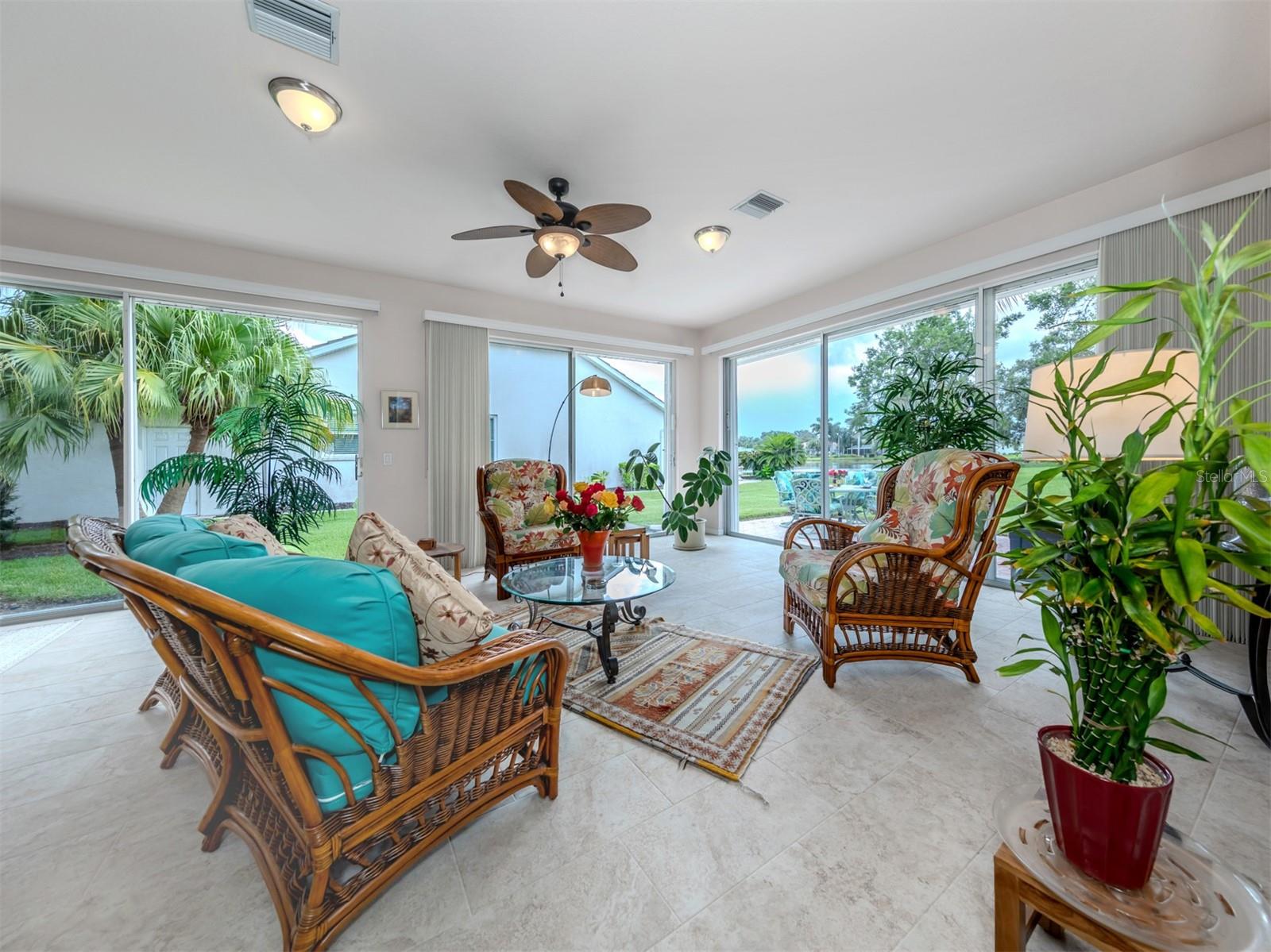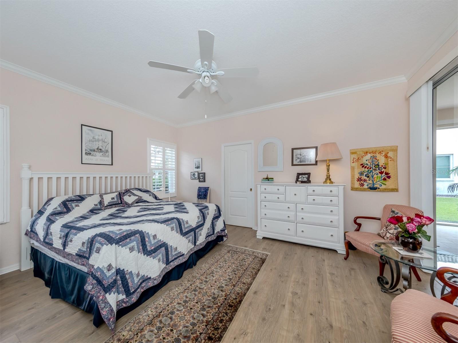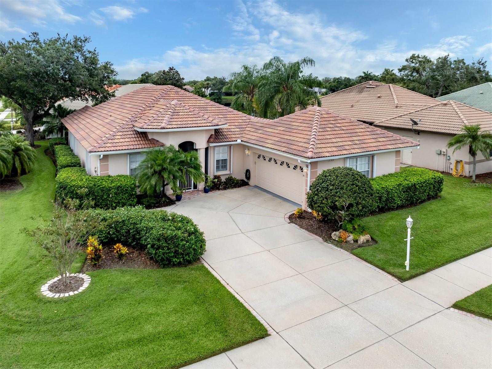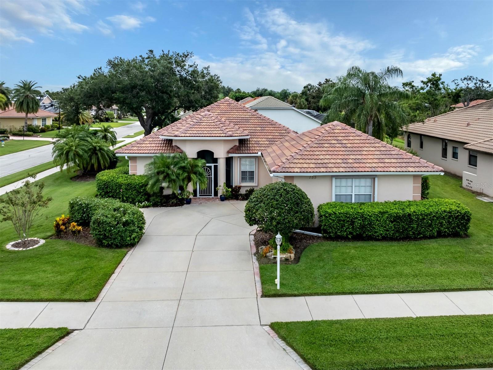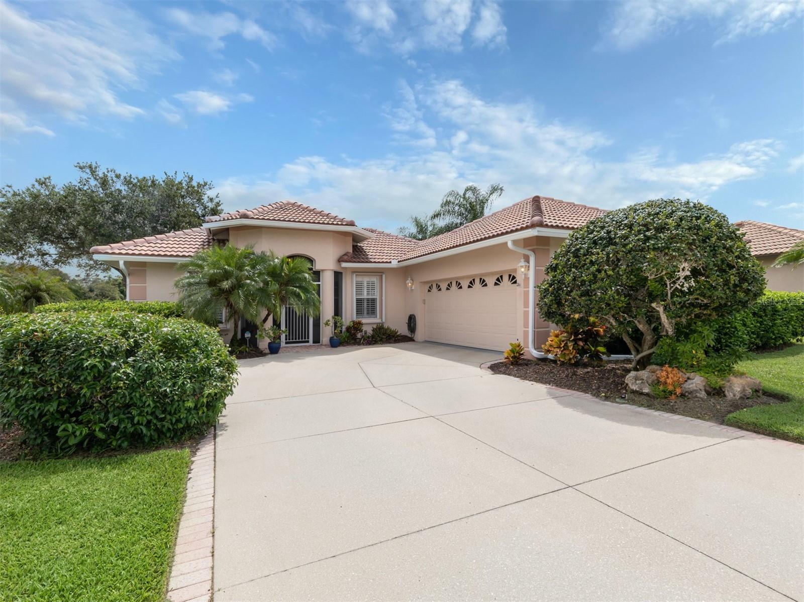 Beautiful community pool nearby. Enjoy the delights of Florida living while knowing you are protected from Mother Nature’s unpredictable weather events in this beautifully maintained, strong constructed home situated on the higher elevation (Flood zone code X) of Hidden Lakes Club, a gem of a small community (90+ homes) featuring mature landscaping, easy access to I-75 and shopping. With NO proximity to the Gulf, rivers or creeks, this home has never been vulnerable to flooding. This three-bedroom, two-bath, double garage, corner lot residence, with views to one of the three lakes, has a new roof (2023) and user-friendly accordion hurricane shutters for safety. Its centerpiece is a stunning under-air, four-season Florida room overlooking the lake. The spacious and sunlit living and dining areas are perfectly positioned across from the updated kitchen, making it an ideal space for entertaining. The floor plan offers easy access to all rooms including wide double doors to the three bedrooms. The large, bright kitchen boasts cherrywood cabinets, granite countertops and space for a breakfast nook in a bay window with French doors. Two well-sized guest bedrooms, one currently used as an office, are at the front of the house with a full bath conveniently located nearby, offering privacy for guests. The primary suite is a private retreat, featuring a delightful sitting area in front of glass doors leading to the Florida room The large sunlit ensuite bathroom features double vanities, an oval tub, a cabinet shower, and European separate toilet. Not to be missed is the enormous walk-in closet off the primary bedroom! Step out of the Florida room onto the patio to enjoy the plant-filled garden, lake view and Florida birdlife. The home is designed for both beauty and practicality, with features like cathedral ceilings, crown moldings, plantation shutters, ample closet space, and ceiling fans in all rooms. The community clubhouse is a short walk away and offers a pool/spa, tennis/pickleball/bocce, and a well-appointed fitness center. Here homeowners find friends as they participate in water aerobics, book club, yoga, poker, Bingo, and social events organized throughout the year. Situated just minutes from the turquoise waters of the Gulf and downtown Venice's vibrant restaurants, cafes, shops, and theater, this home offers the perfect blend of tranquility, convenience and fun. This meticulously cared-for property is not just a must-see but a must-own. Schedule your appointment today.