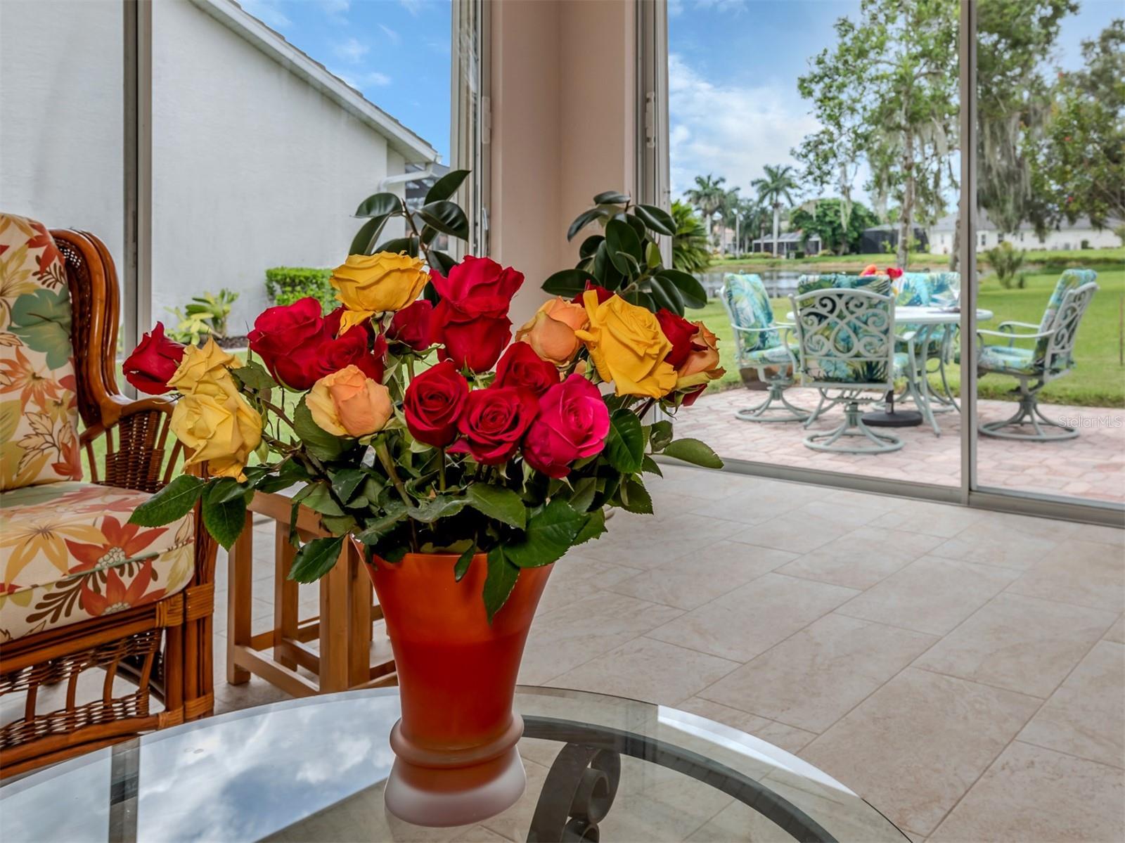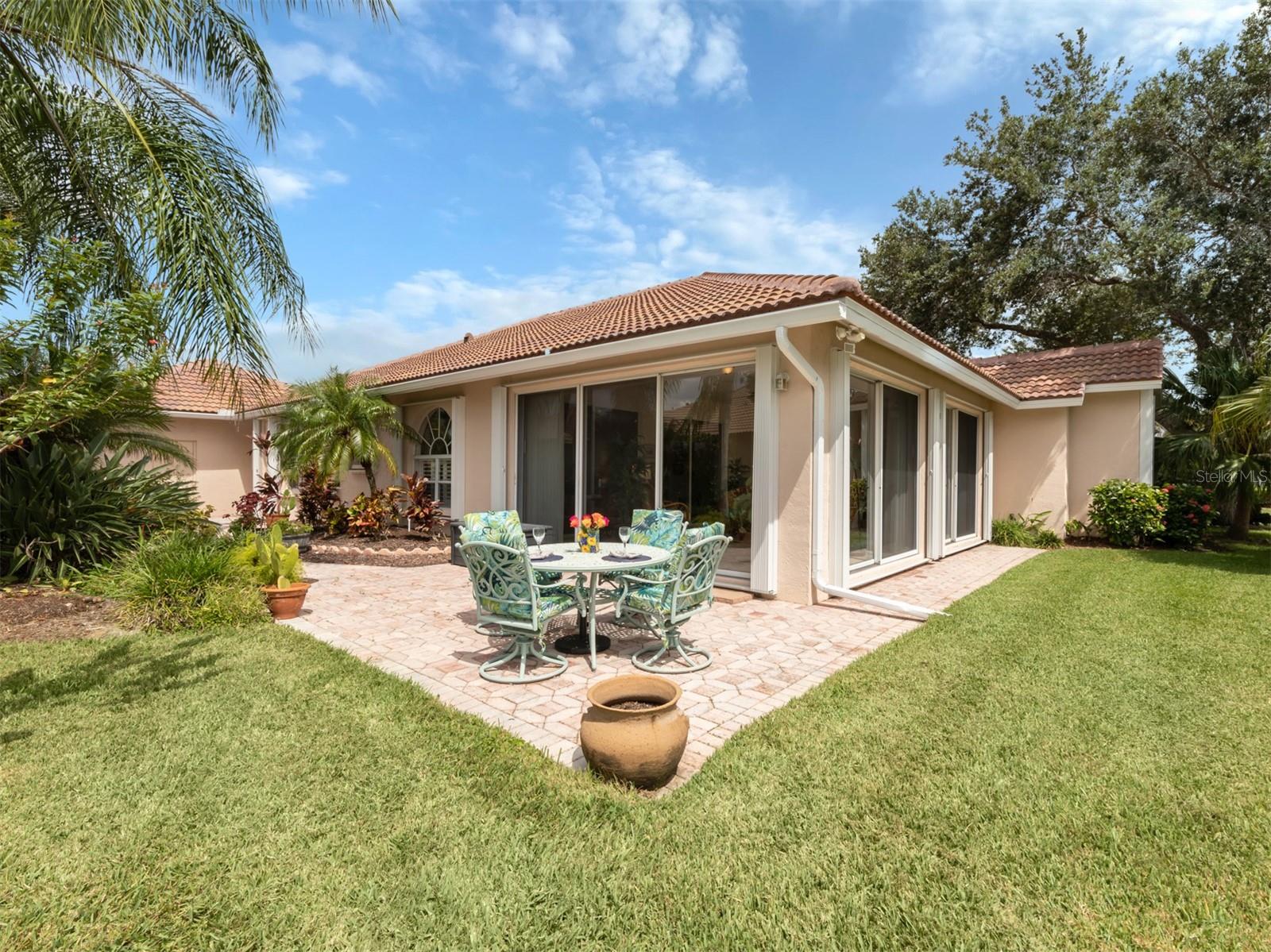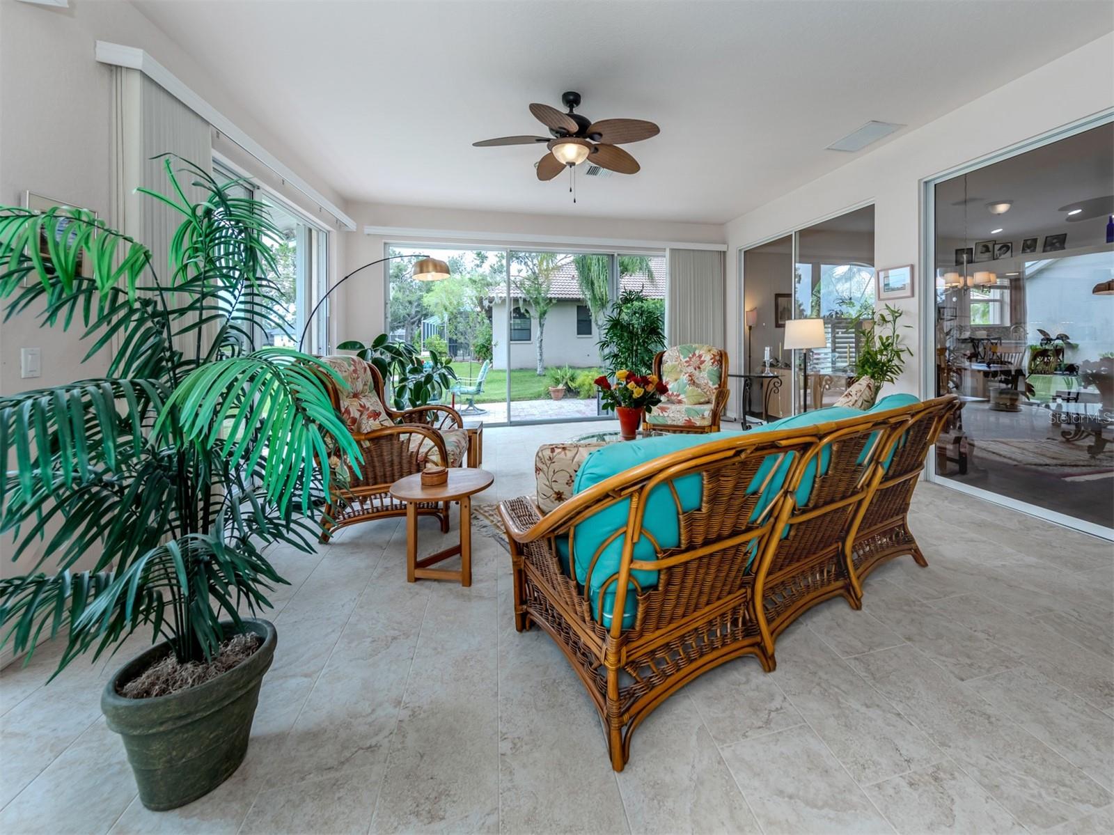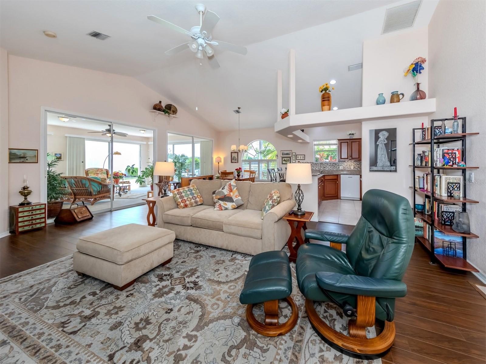 Beautiful community pool nearby. Enjoy the delights of Florida living while knowing you are protected from Mother Nature’s unpredictable weather events in this beautifully maintained, strong constructed home situated on the higher elevation (Flood zone code X) of Hidden Lakes Club, a gem of a small community (90+ homes) featuring mature landscaping, easy access to I-75 and shopping. With NO proximity to the Gulf, rivers or creeks, this home has never been vulnerable to flooding. This three-bedroom, two-bath, double garage, corner lot residence, with views to one of the three lakes, has a new roof (2023) and user-friendly accordion hurricane shutters for safety. Its centerpiece is a stunning under-air, four-season Florida room overlooking the lake. The spacious and sunlit living and dining areas are perfectly positioned across from the updated kitchen, making it an ideal space for entertaining. The floor plan offers easy access to all rooms including wide double doors to the three bedrooms. The large, bright kitchen boasts cherrywood cabinets, granite countertops and space for a breakfast nook in a bay window with French doors. Two well-sized guest bedrooms, one currently used as an office, are at the front of the house with a full bath conveniently located nearby, offering privacy for guests. The primary suite is a private retreat, featuring a delightful sitting area in front of glass doors leading to the Florida room The large sunlit ensuite bathroom features double vanities, an oval tub, a cabinet shower, and European separate toilet. Not to be missed is the enormous walk-in closet off the primary bedroom! Step out of the Florida room onto the patio to enjoy the plant-filled garden, lake view and Florida birdlife. The home is designed for both beauty and practicality, with features like cathedral ceilings, crown moldings, plantation shutters, ample closet space, and ceiling fans in all rooms. The community clubhouse is a short walk away and offers a pool/spa, tennis/pickleball/bocce, and a well-appointed fitness center. Here homeowners find friends as they participate in water aerobics, book club, yoga, poker, Bingo, and social events organized throughout the year. Situated just minutes from the turquoise waters of the Gulf and downtown Venice's vibrant restaurants, cafes, shops, and theater, this home offers the perfect blend of tranquility, convenience and fun. This meticulously cared-for property is not just a must-see but a must-own. Schedule your appointment today.