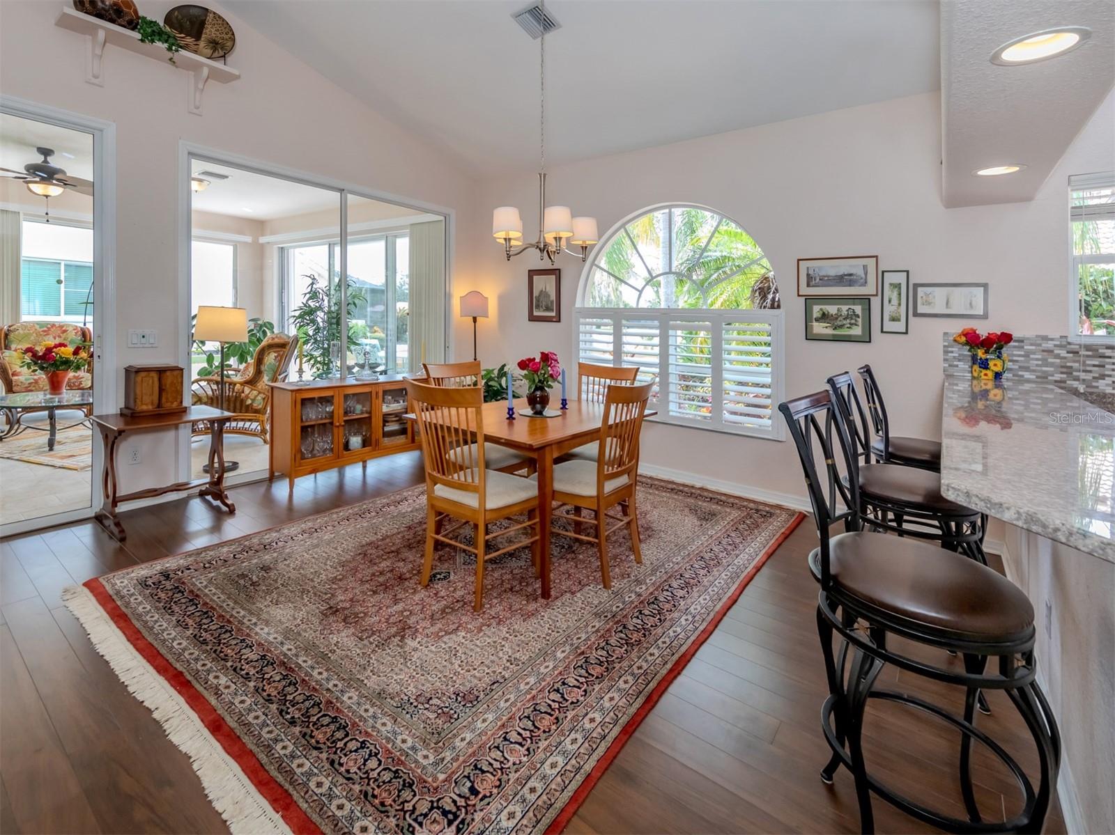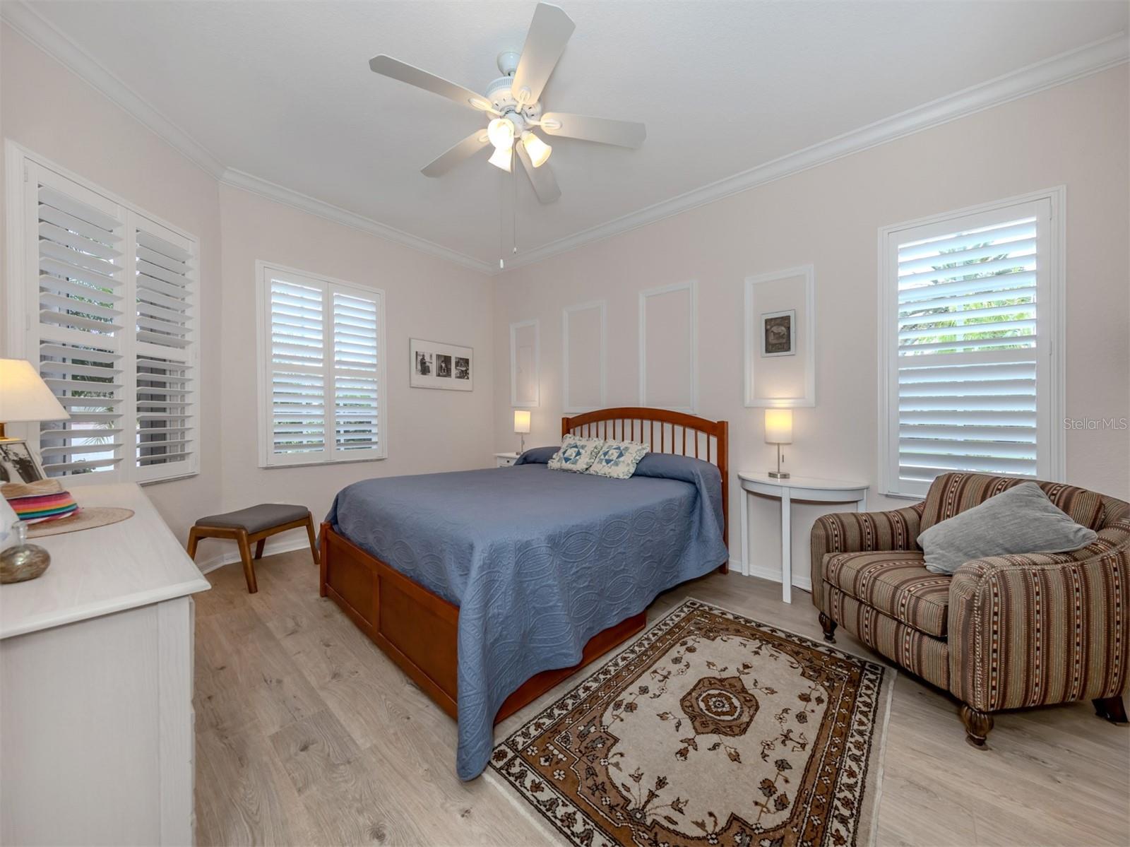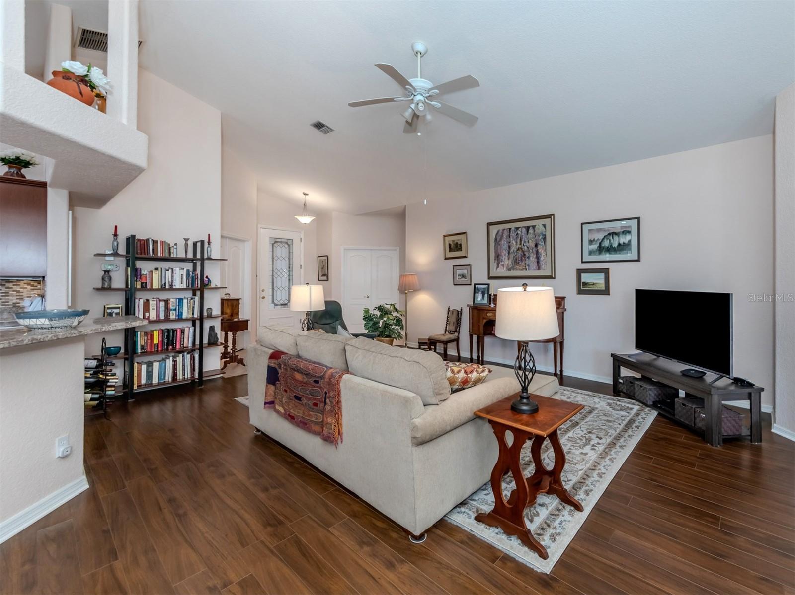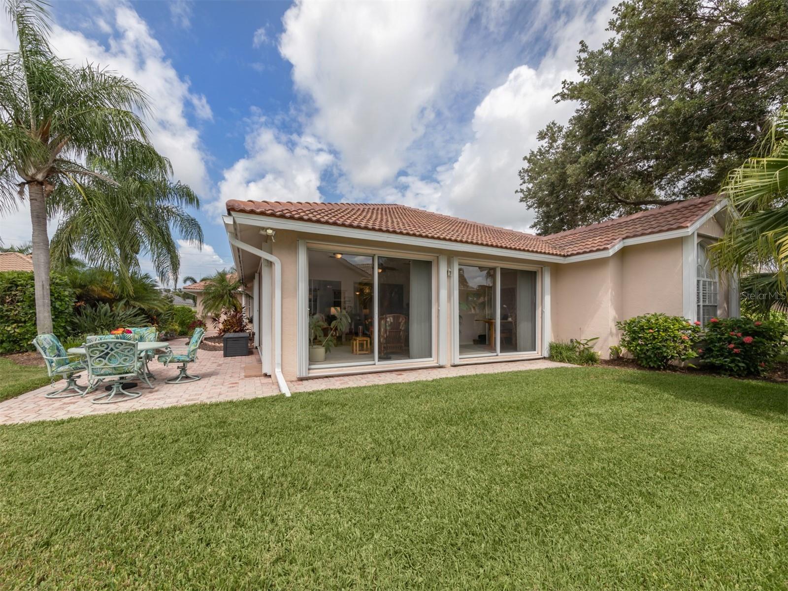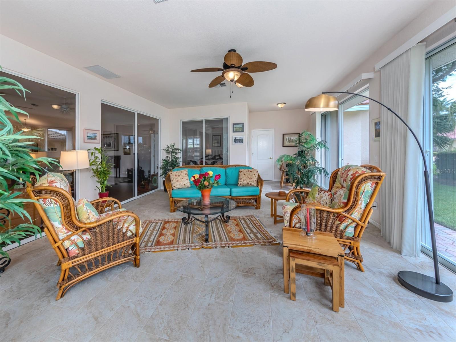 Beautiful community pool nearby. Enjoy the delights of Florida living while knowing you are protected from Mother Nature’s unpredictable weather events in this beautifully maintained, strong constructed home situated on the higher elevation (Flood zone code X) of Hidden Lakes Club, a gem of a small community (90+ homes) featuring mature landscaping, easy access to I-75 and shopping. With NO proximity to the Gulf, rivers or creeks, this home has never been vulnerable to flooding. This three-bedroom, two-bath, double garage, corner lot residence, with views to one of the three lakes, has a new roof (2023) and user-friendly accordion hurricane shutters for safety. Its centerpiece is a stunning under-air, four-season Florida room overlooking the lake. The spacious and sunlit living and dining areas are perfectly positioned across from the updated kitchen, making it an ideal space for entertaining. The floor plan offers easy access to all rooms including wide double doors to the three bedrooms. The large, bright kitchen boasts cherrywood cabinets, granite countertops and space for a breakfast nook in a bay window with French doors. Two well-sized guest bedrooms, one currently used as an office, are at the front of the house with a full bath conveniently located nearby, offering privacy for guests. The primary suite is a private retreat, featuring a delightful sitting area in front of glass doors leading to the Florida room The large sunlit ensuite bathroom features double vanities, an oval tub, a cabinet shower, and European separate toilet. Not to be missed is the enormous walk-in closet off the primary bedroom! Step out of the Florida room onto the patio to enjoy the plant-filled garden, lake view and Florida birdlife. The home is designed for both beauty and practicality, with features like cathedral ceilings, crown moldings, plantation shutters, ample closet space, and ceiling fans in all rooms. The community clubhouse is a short walk away and offers a pool/spa, tennis/pickleball/bocce, and a well-appointed fitness center. Here homeowners find friends as they participate in water aerobics, book club, yoga, poker, Bingo, and social events organized throughout the year. Situated just minutes from the turquoise waters of the Gulf and downtown Venice's vibrant restaurants, cafes, shops, and theater, this home offers the perfect blend of tranquility, convenience and fun. This meticulously cared-for property is not just a must-see but a must-own. Schedule your appointment today.