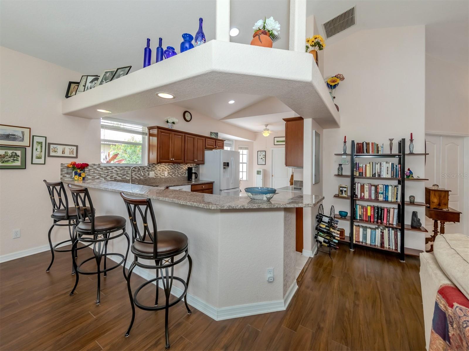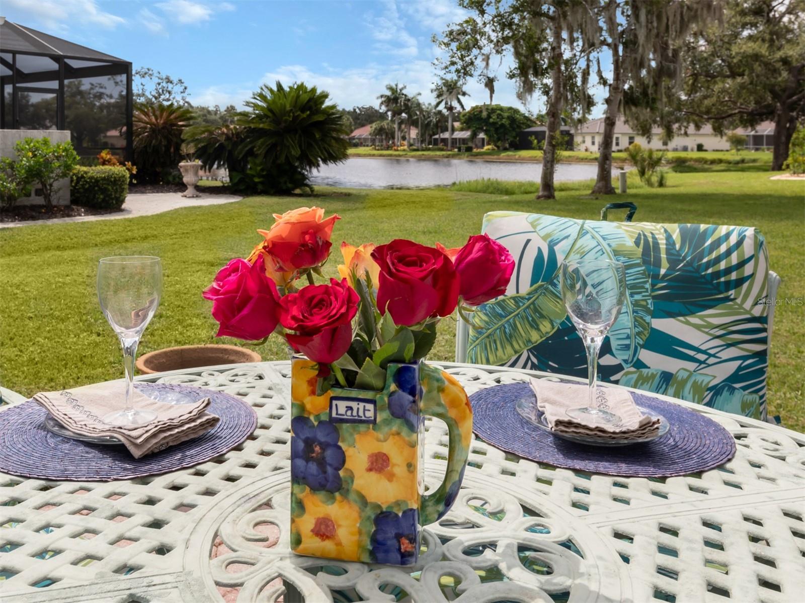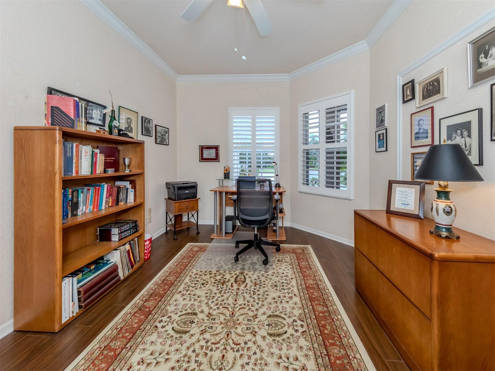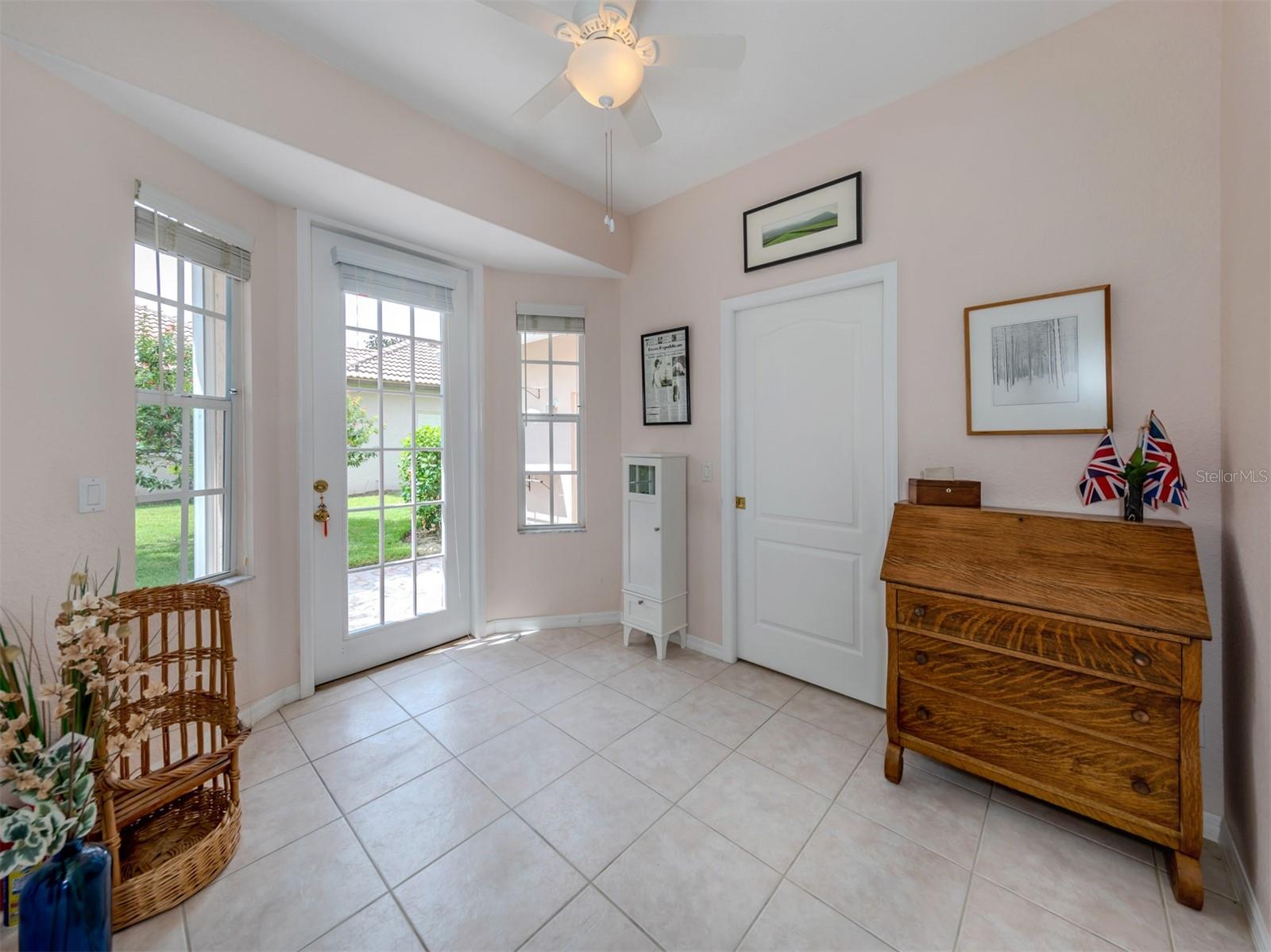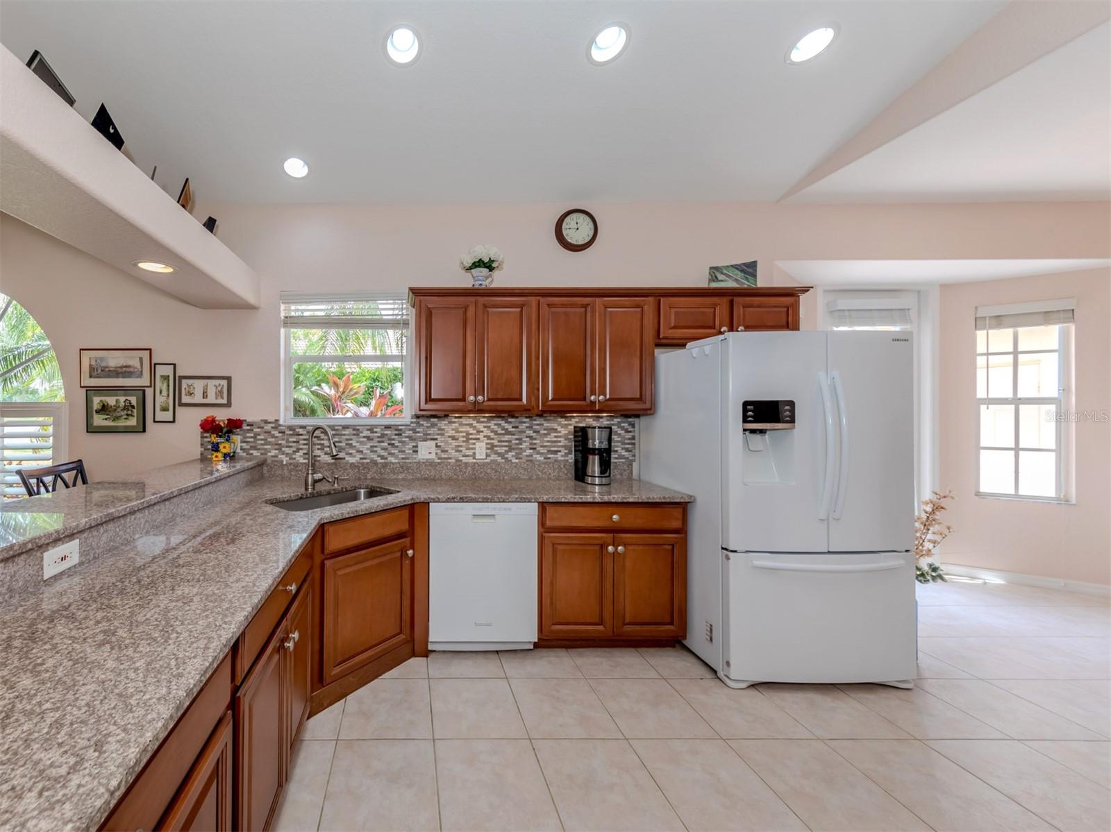 Beautiful community pool nearby. Enjoy the delights of Florida living while knowing you are protected from Mother Nature’s unpredictable weather events in this beautifully maintained, strong constructed home situated on the higher elevation (Flood zone code X) of Hidden Lakes Club, a gem of a small community (90+ homes) featuring mature landscaping, easy access to I-75 and shopping. With NO proximity to the Gulf, rivers or creeks, this home has never been vulnerable to flooding. This three-bedroom, two-bath, double garage, corner lot residence, with views to one of the three lakes, has a new roof (2023) and user-friendly accordion hurricane shutters for safety. Its centerpiece is a stunning under-air, four-season Florida room overlooking the lake. The spacious and sunlit living and dining areas are perfectly positioned across from the updated kitchen, making it an ideal space for entertaining. The floor plan offers easy access to all rooms including wide double doors to the three bedrooms. The large, bright kitchen boasts cherrywood cabinets, granite countertops and space for a breakfast nook in a bay window with French doors. Two well-sized guest bedrooms, one currently used as an office, are at the front of the house with a full bath conveniently located nearby, offering privacy for guests. The primary suite is a private retreat, featuring a delightful sitting area in front of glass doors leading to the Florida room The large sunlit ensuite bathroom features double vanities, an oval tub, a cabinet shower, and European separate toilet. Not to be missed is the enormous walk-in closet off the primary bedroom! Step out of the Florida room onto the patio to enjoy the plant-filled garden, lake view and Florida birdlife. The home is designed for both beauty and practicality, with features like cathedral ceilings, crown moldings, plantation shutters, ample closet space, and ceiling fans in all rooms. The community clubhouse is a short walk away and offers a pool/spa, tennis/pickleball/bocce, and a well-appointed fitness center. Here homeowners find friends as they participate in water aerobics, book club, yoga, poker, Bingo, and social events organized throughout the year. Situated just minutes from the turquoise waters of the Gulf and downtown Venice's vibrant restaurants, cafes, shops, and theater, this home offers the perfect blend of tranquility, convenience and fun. This meticulously cared-for property is not just a must-see but a must-own. Schedule your appointment today.
